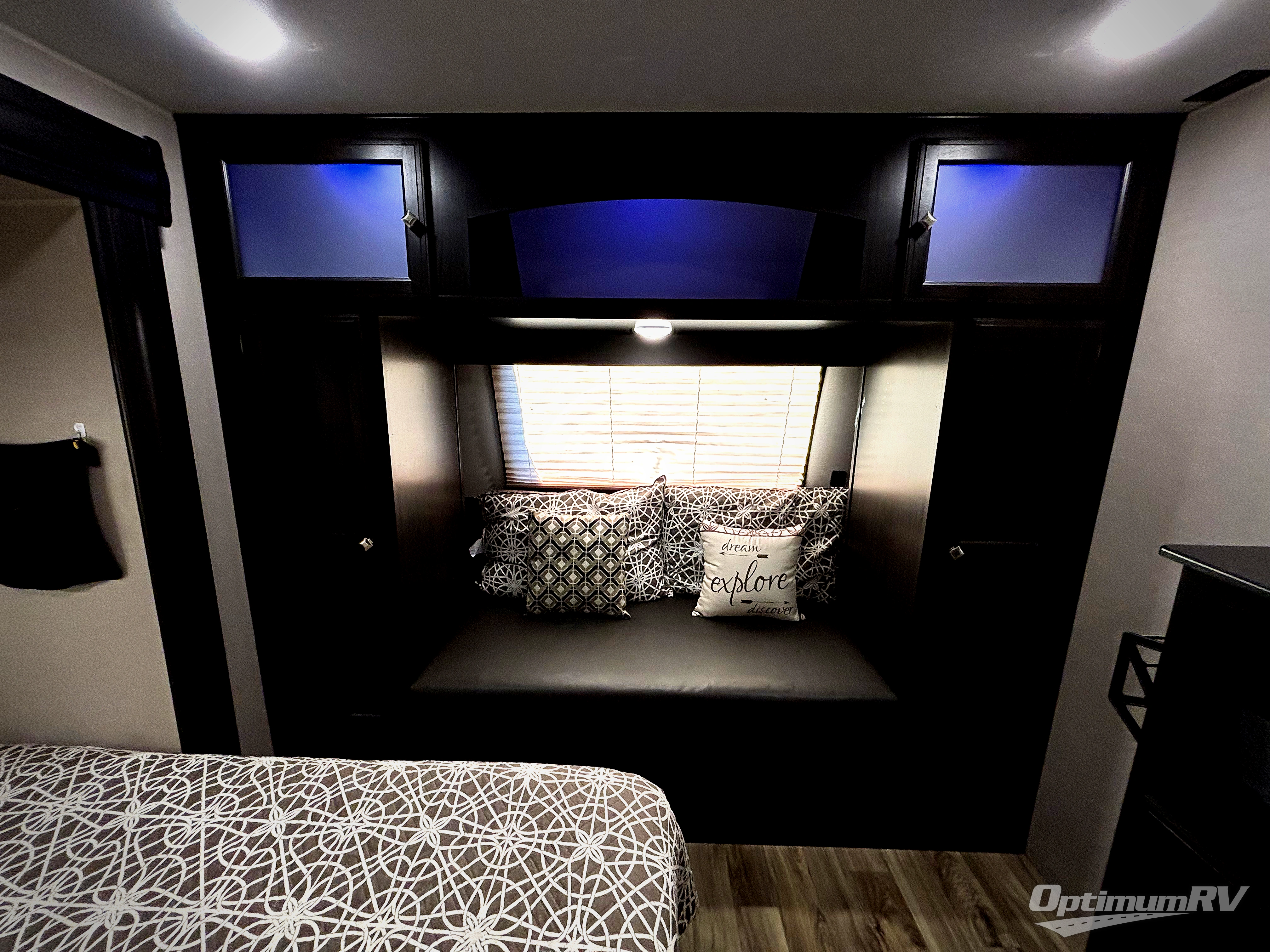 Pack your bags and head to your favorite campground in this travel trailer that features a rear kitchen with tons of floor space. The fireplace gives this area an at-home feel while the chef is preparing dinner and you'll find a second fireplace in the bedroom for added comfort. If the weather is nice, you may want to head outdoors to grill burgers on the campfire cafe and everyone will love to sit under the power awning with LED lights. When it's time to turn in for the night, your guests can sleep on the tri-fold sofa bed while you and your spouse enjoy the front private bedroom with a slide out king bed. You'll also enjoy the front window seat to catch up on your book and there is plenty of space to hang your clothes for the next day.