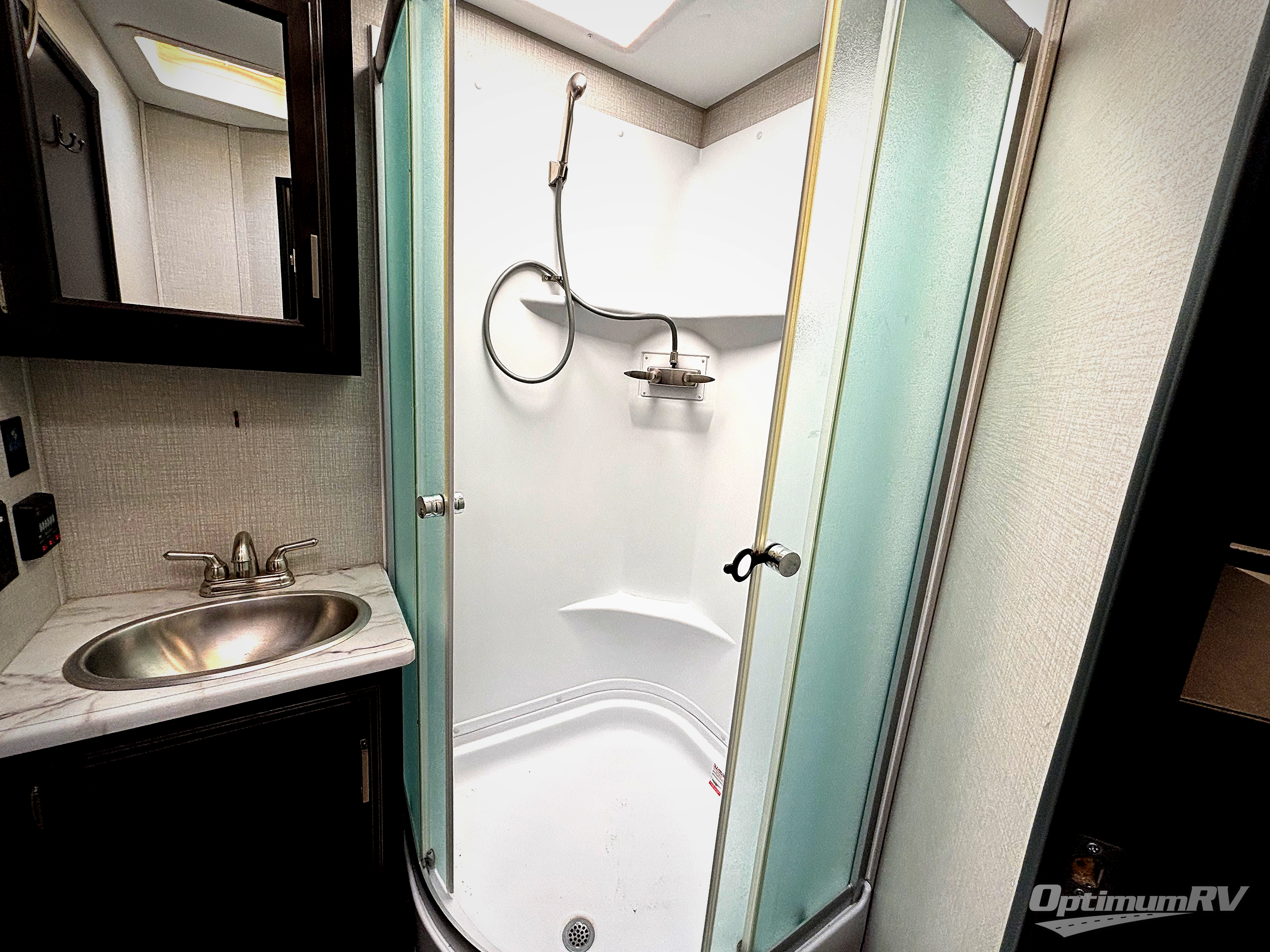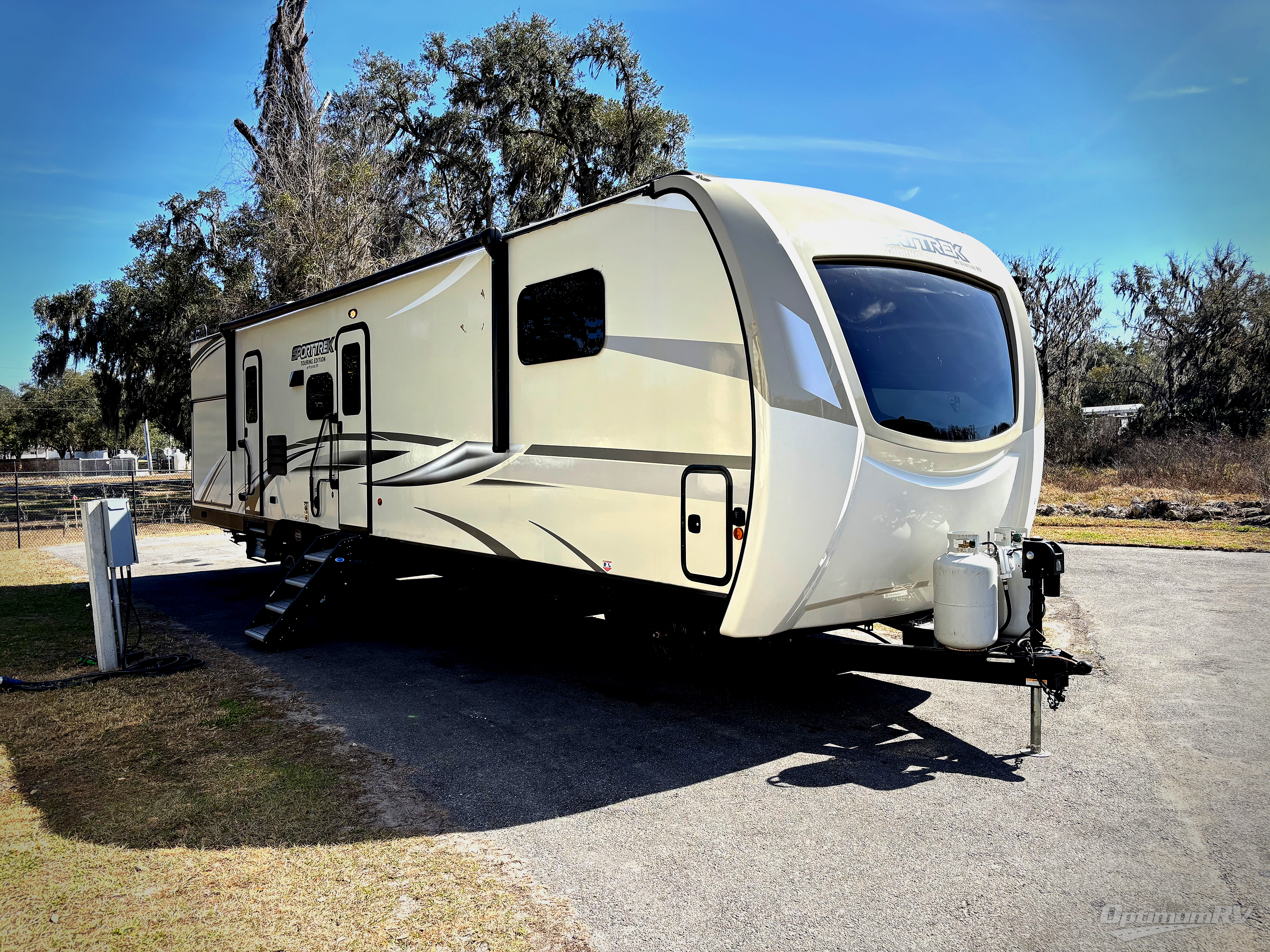 Every SportTrek Touring Edition travel trailer by Venture RV features a pearl infused exterior fiberglass for a luxurious, sleek look and a NXG Frame to provide a lightweight, but sturdy unit. The Exterior Luxury Package includes new features such as a screen shot screen door and a Venture bottle opener and doggie tie down that will come in handy for your furry friends. Each model includes a stainless steel sink and a skylight in the bath, along with solid surface countertops and a stainless steel pull down faucet in the kitchen for easy clean-up. Arriving at your destination will be made easy with the Wide-Trek Axles and self-adjusting brakes, plus you can bring along all your larger camp gear with the lighted pass through storage.