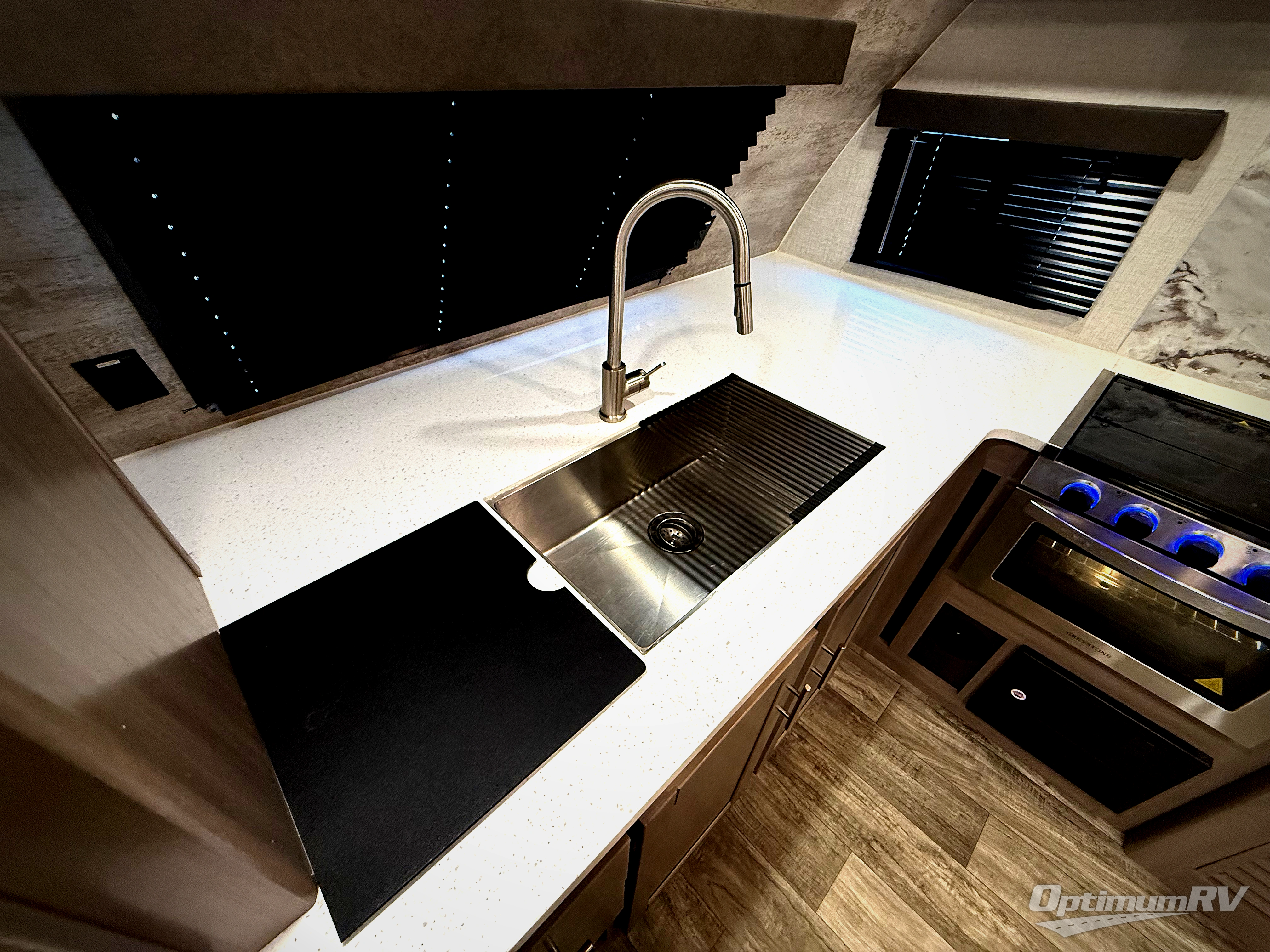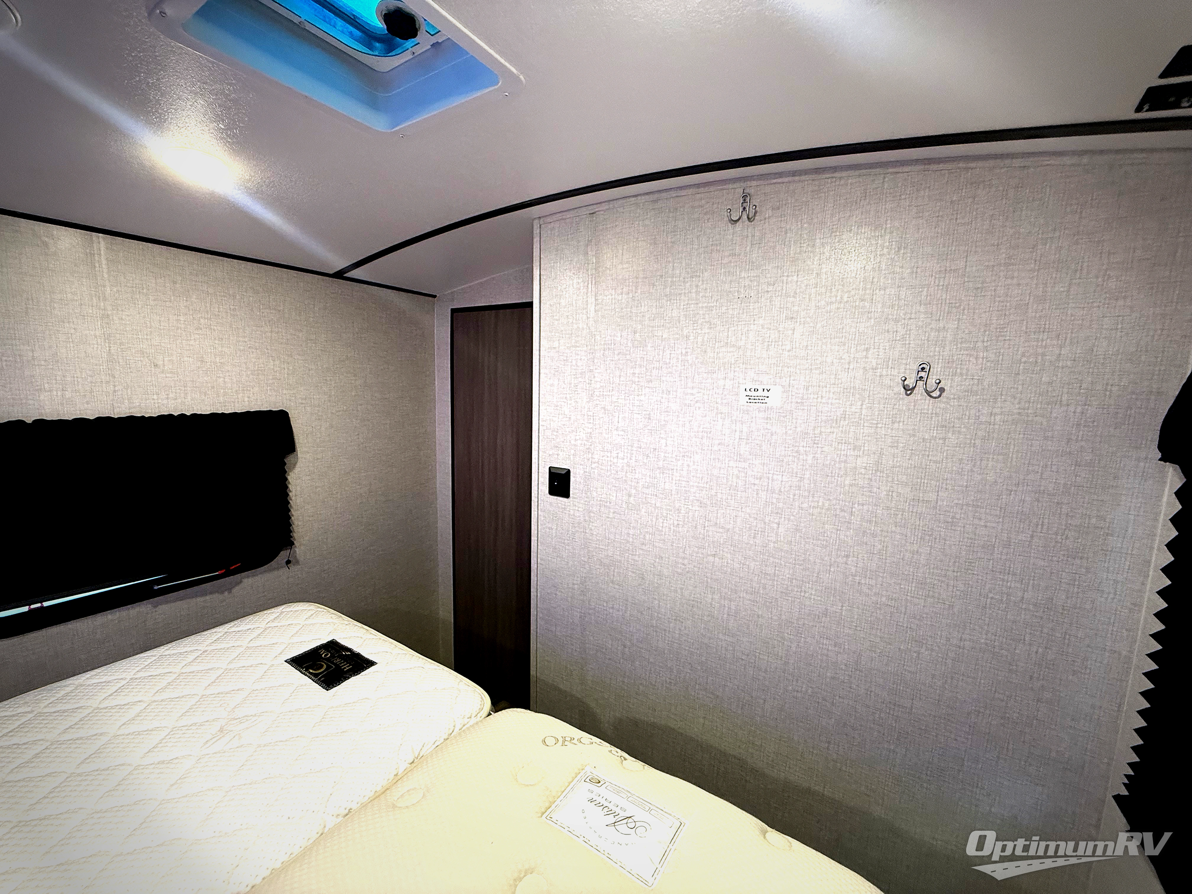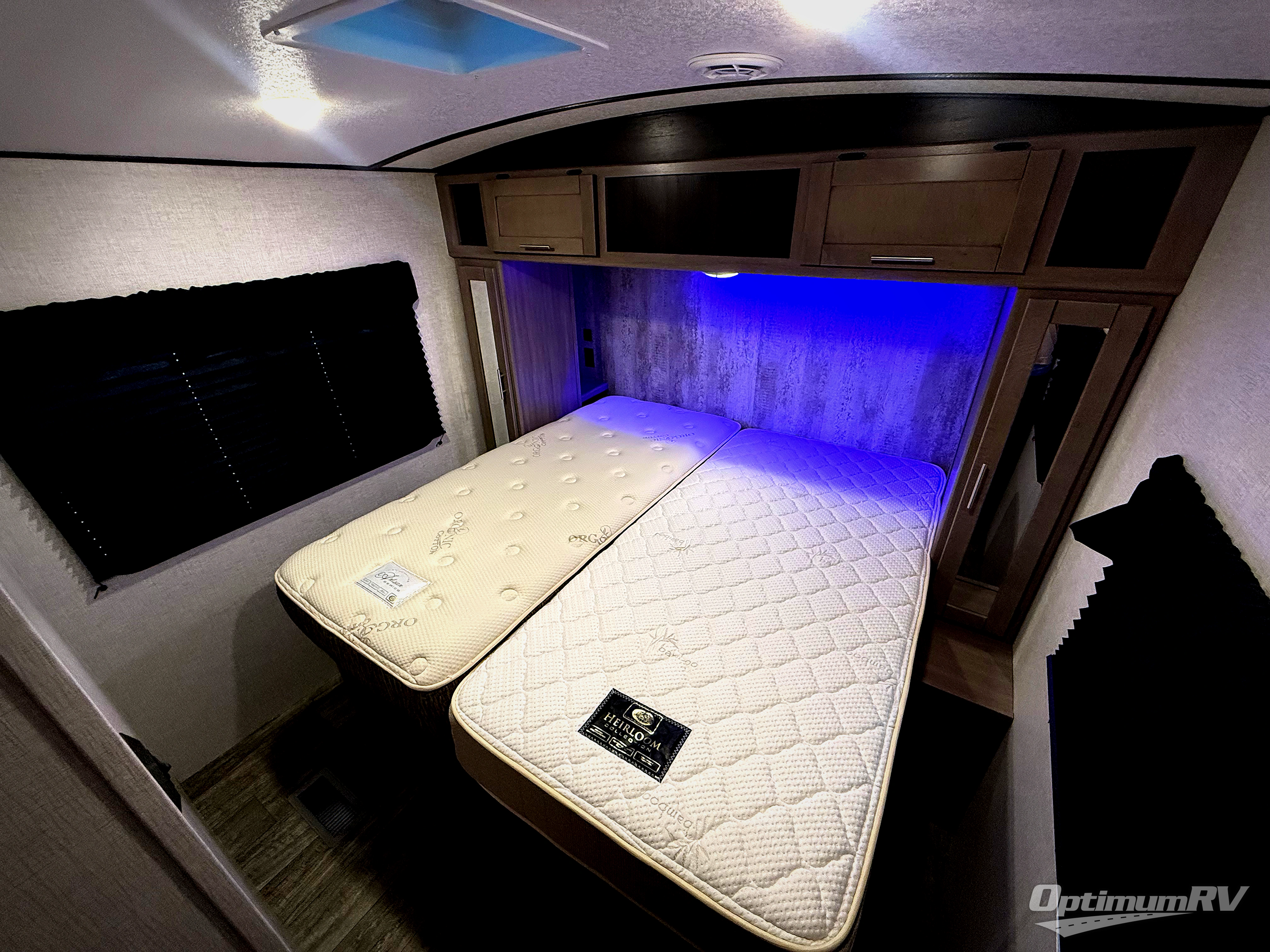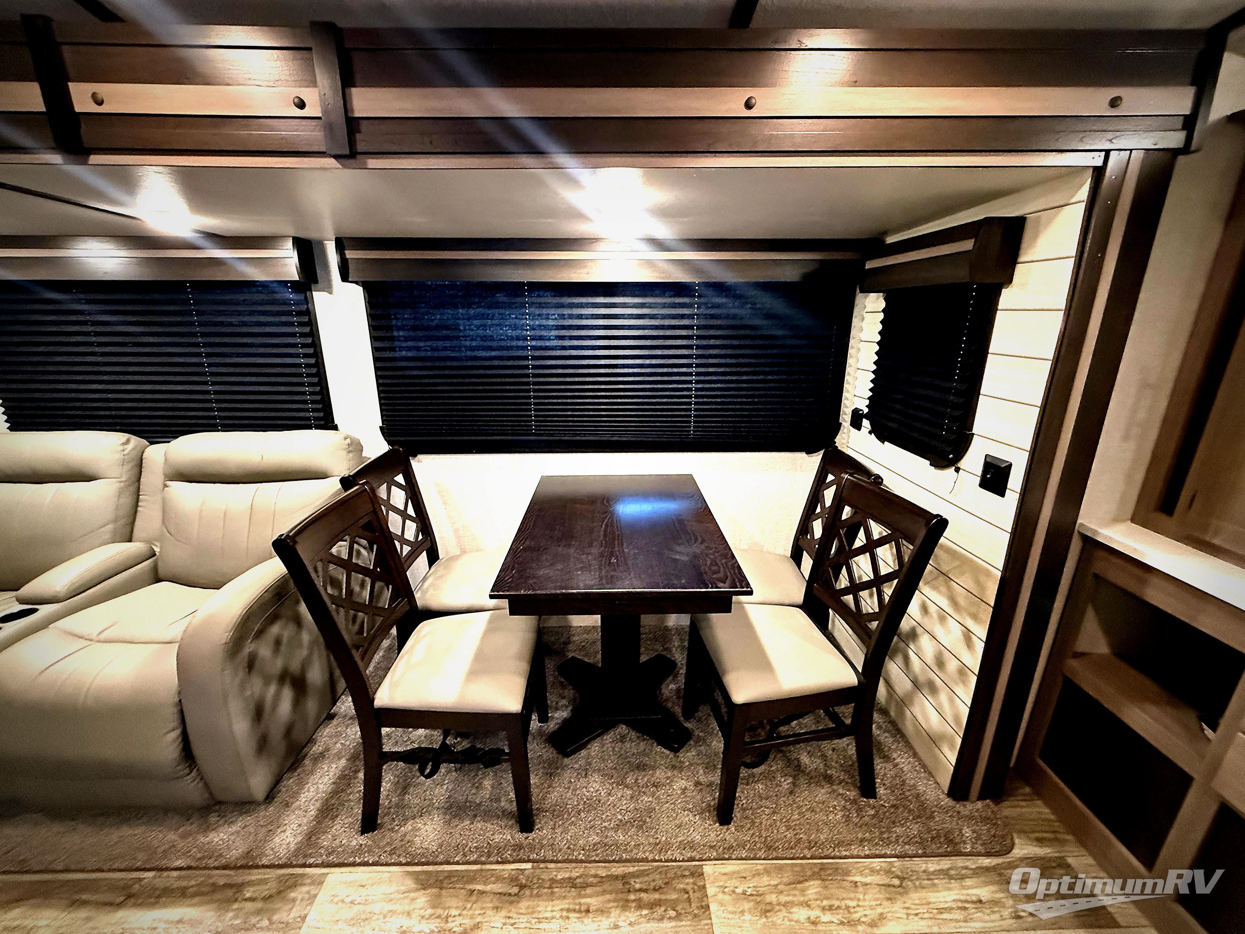 Pack your bags and head to the lake in this spacious travel trailer. Once you arrive you can prepare a quick lunch on the glass top range or use the convenient stainless steel microwave. Take a look around the campground or find a trail or two, and when you return you can freshen up in the full bath. The XL booth dinette provides a place to dine and two can comfortably sleep here. You'll also find a tri-fold sofa or you can choose optional theater seating if you're not needing the extra sleeping space. Mom and dad will enjoy the rear private bedroom with its king bed, dual wardrobes, plus a shoe storage and pet station for convenience.