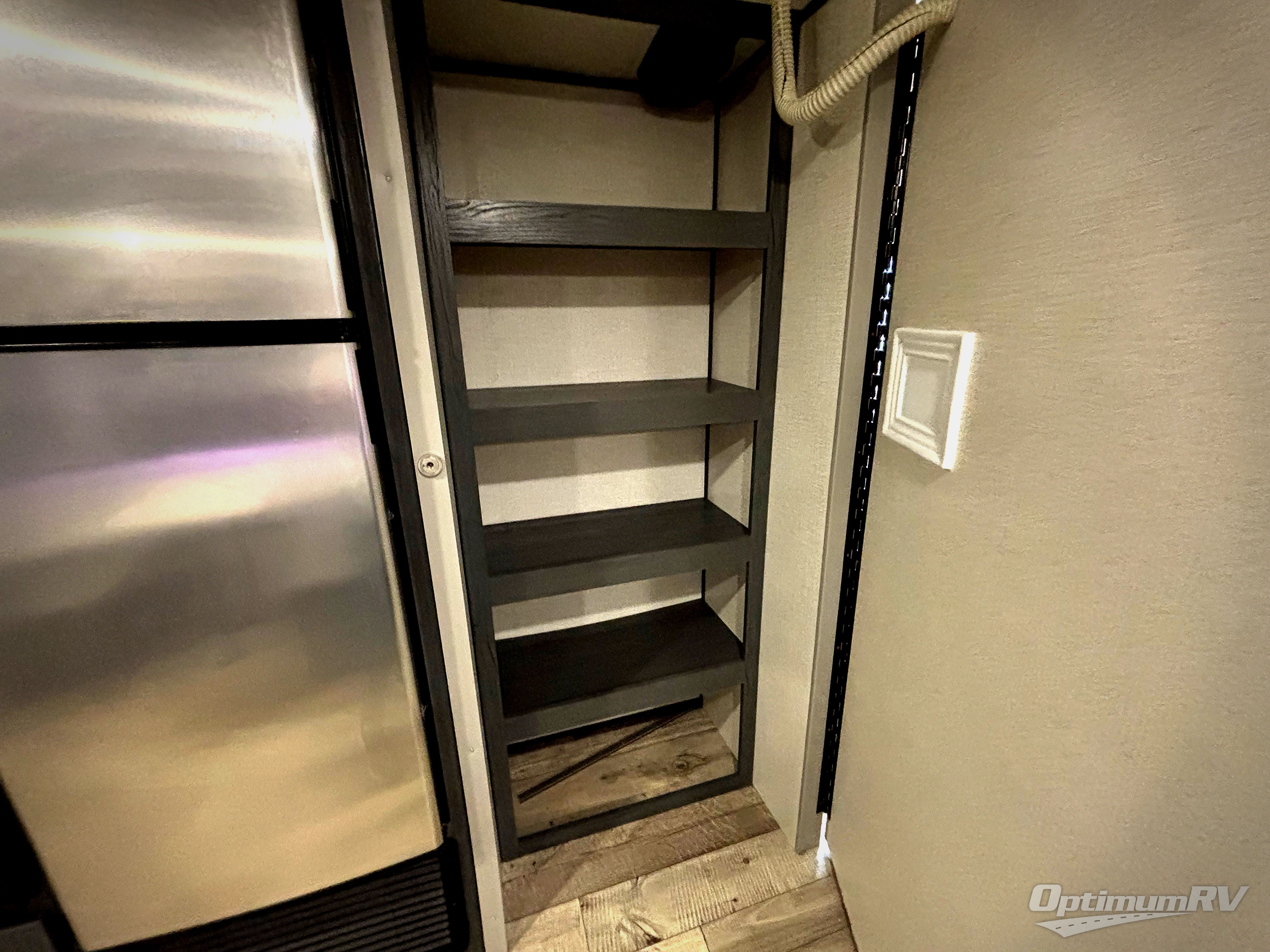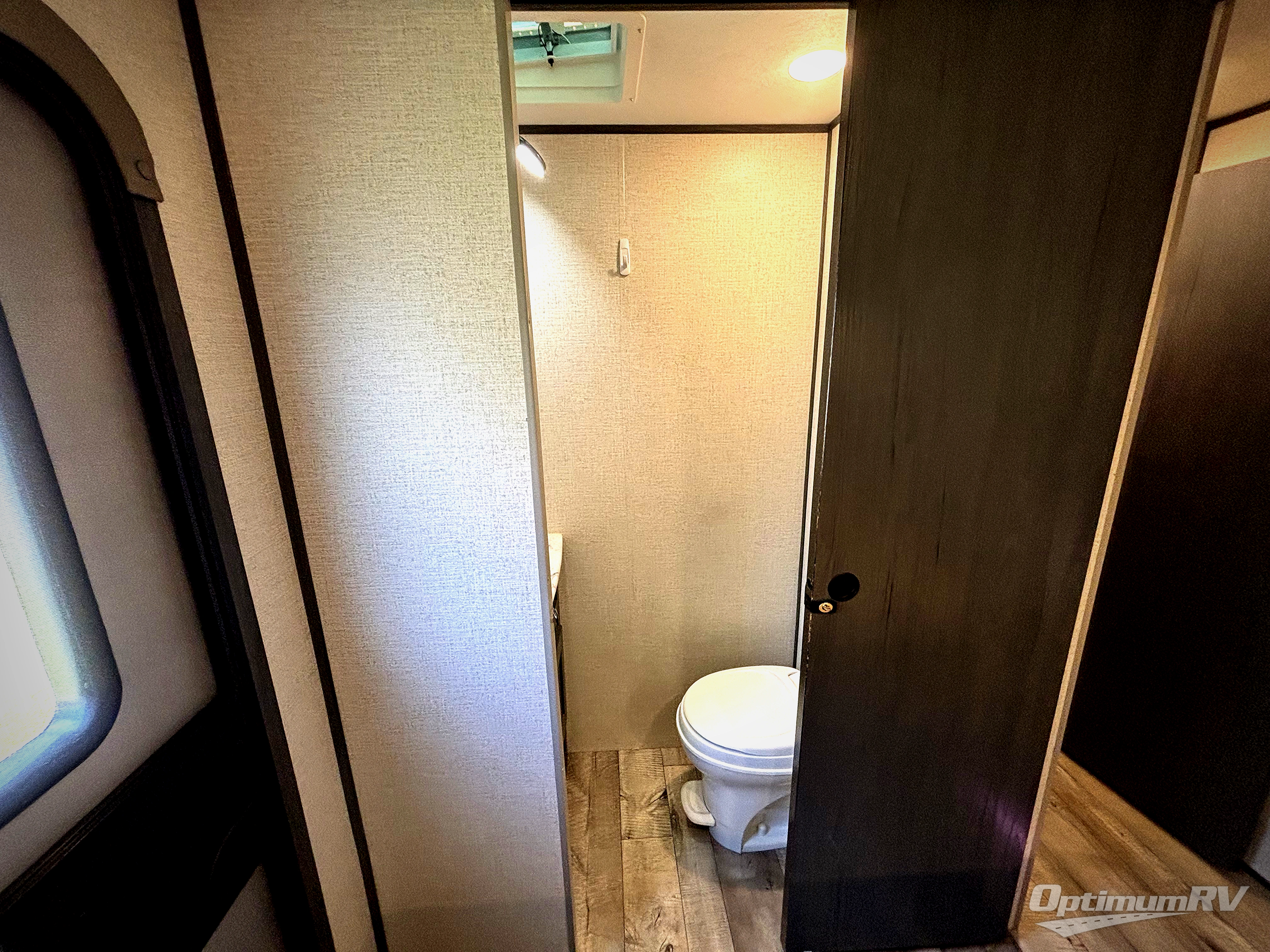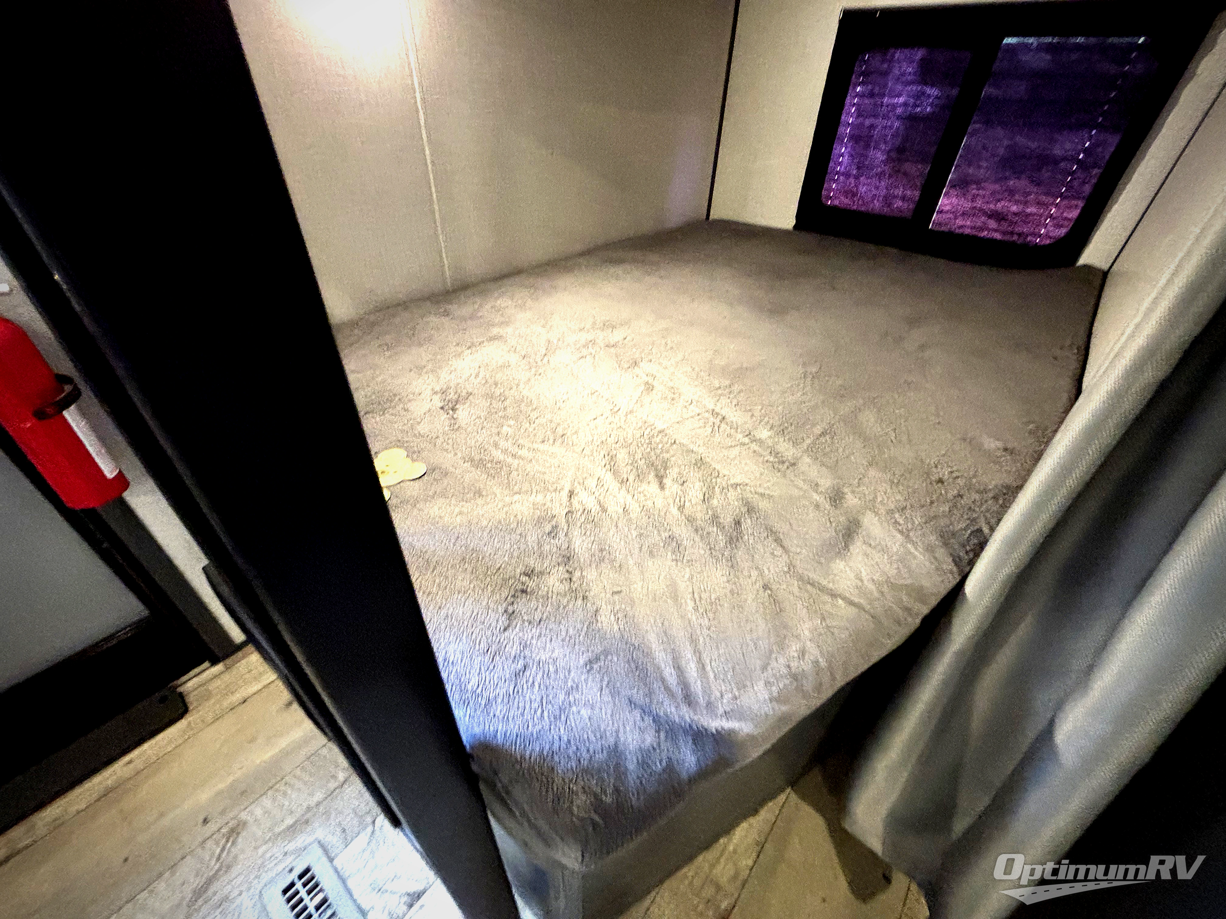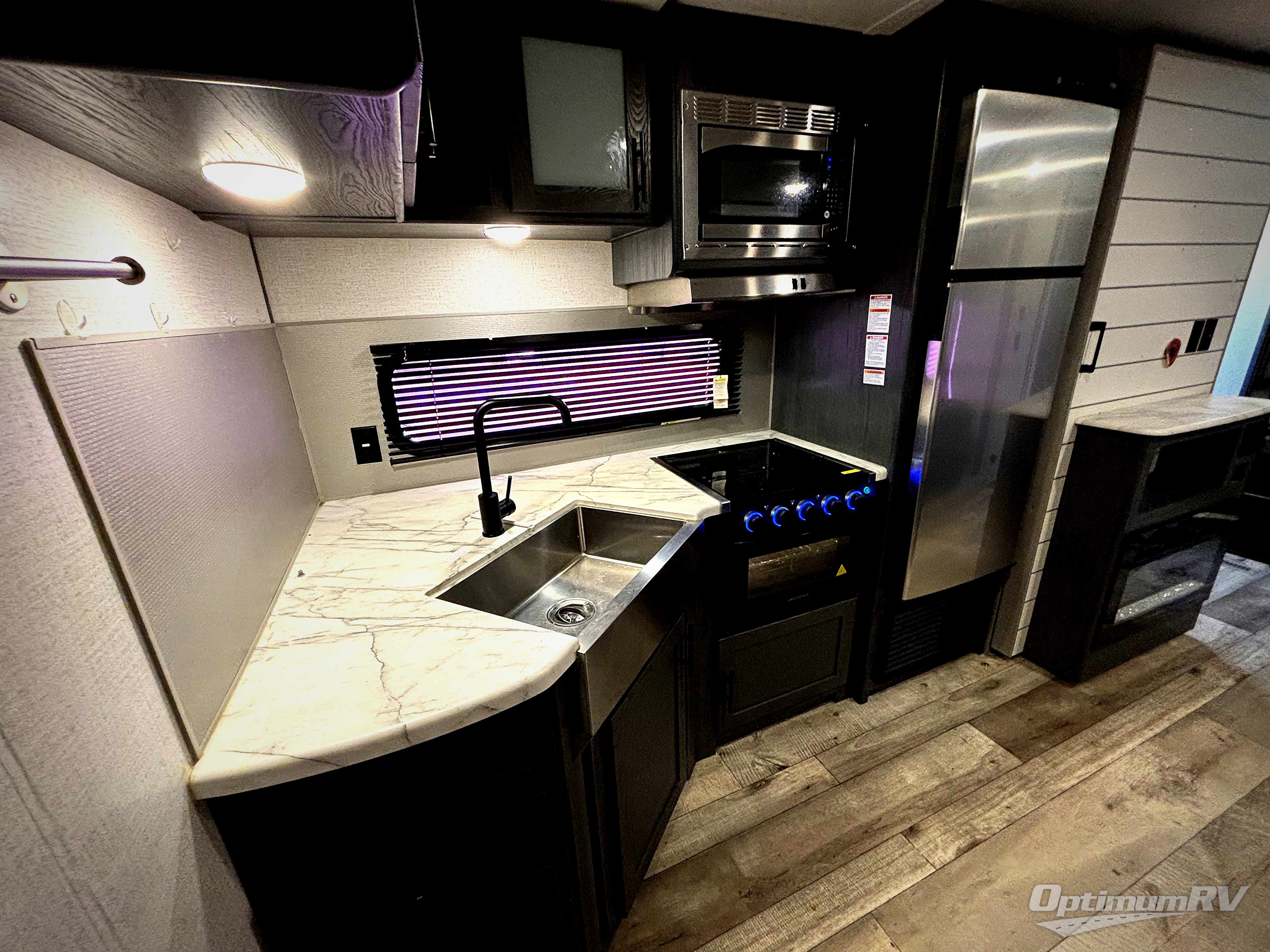 This travel trailer is decked out in features you will love! From the U-shaped dinette and sofa slide across from the hinged entertainment center with a fireplace to the front private bedroom with its very own private half bathroom. The kids will also have their own private bathroom with it being conveniently right next to the set of rear corner bunk beds. Whether you cook indoors on the three burner cooktop and oven or at the outdoor kitchen, you are sure to enjoy a delicious meal.