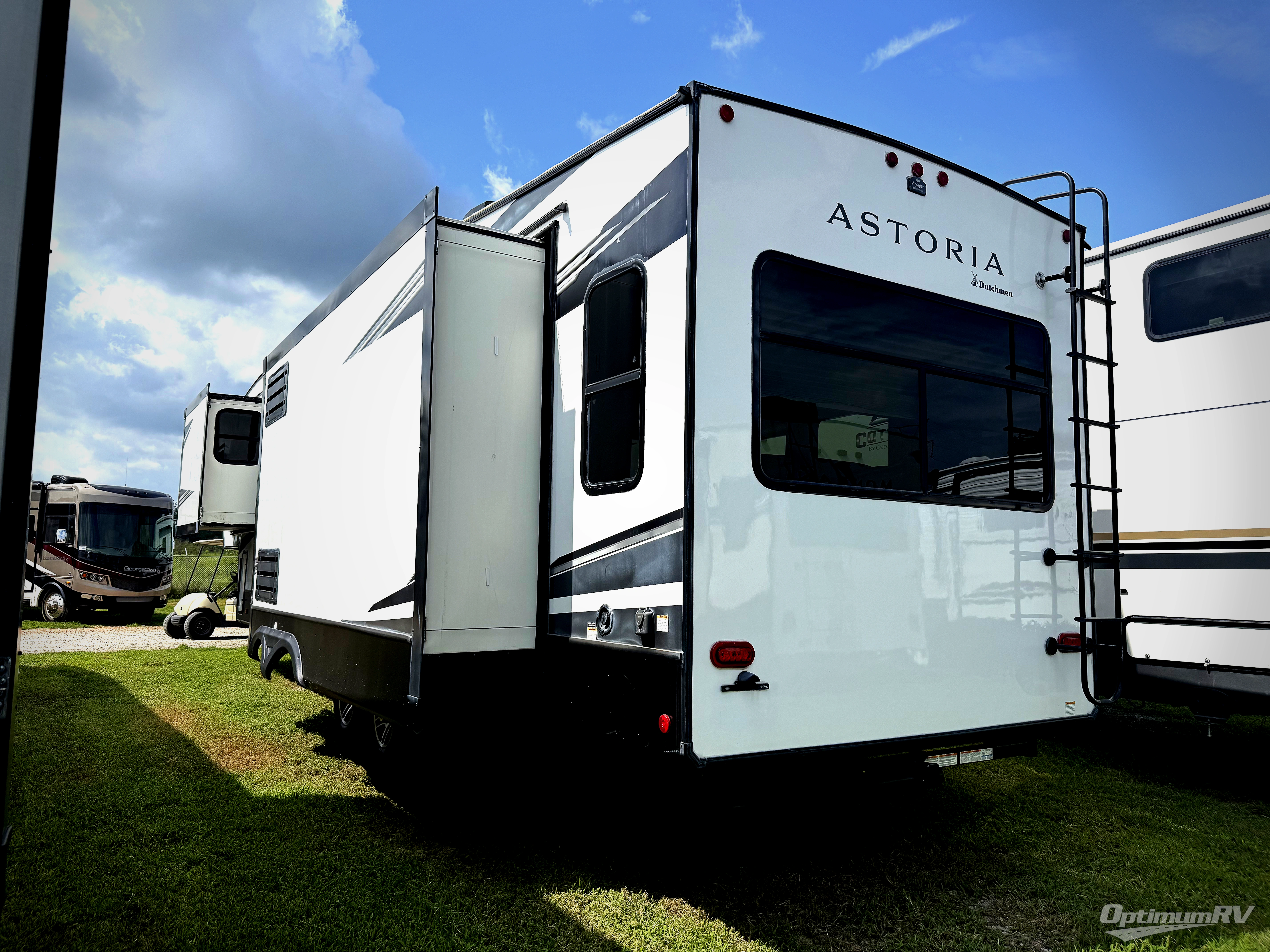 With any Astoria fifth wheel, you'll get the Dutchmen construction advantage with features such as HyperDeck floor construction which includes linoleum flooring, a steel powder coated main frame, and a fully enclosed underbelly, plus a painted fiberglass cap with LED lights. Some standard features that will impress you include the patio and hitch lights, USB ports to keep all the electronics charged, dual 30 lb. propane tanks, automatic leveling system, dark-tinted safety glass windows, and stainless steel appliances so you can keep your bellies full with home cooked meals. Choose your favorite today!