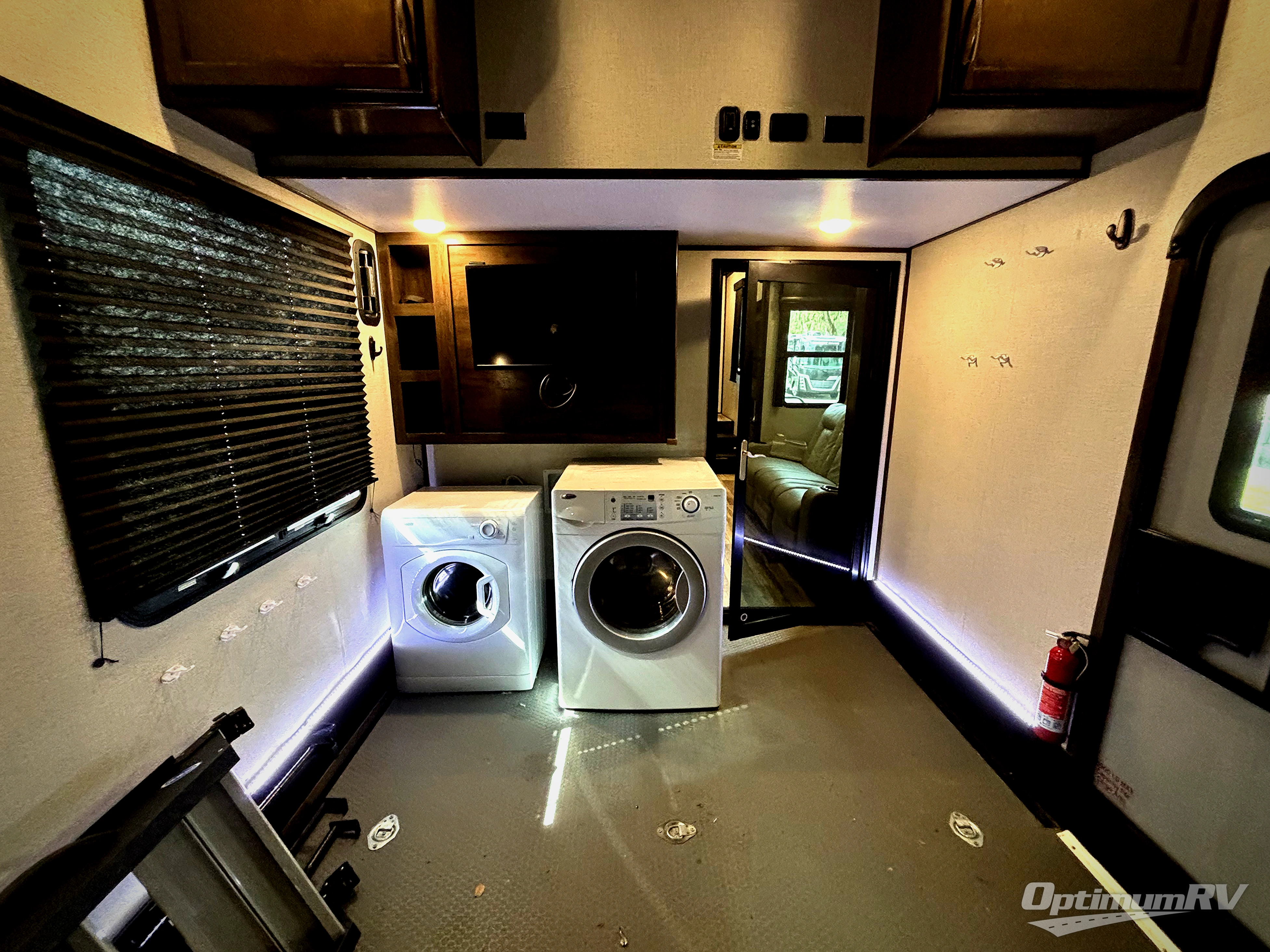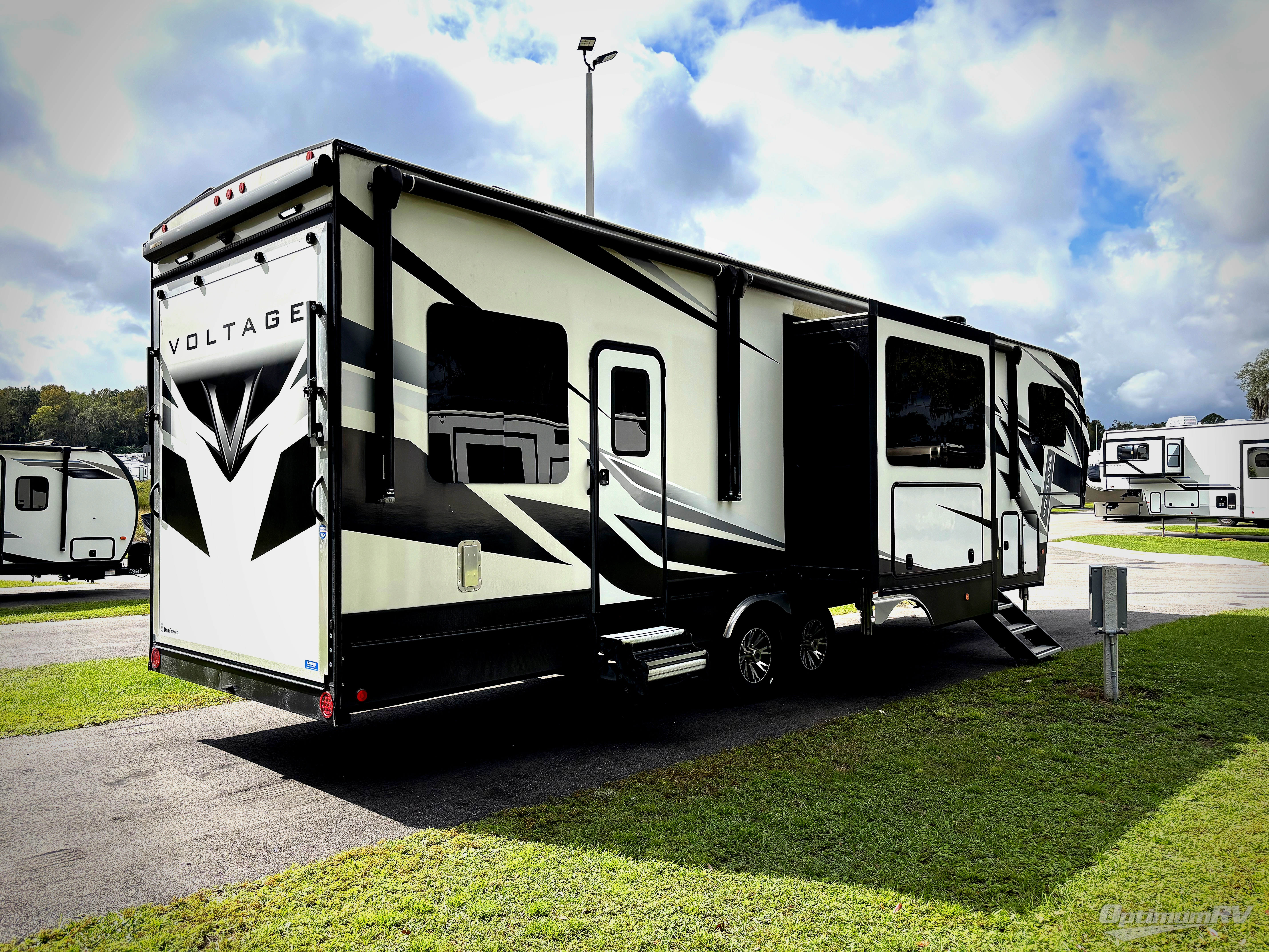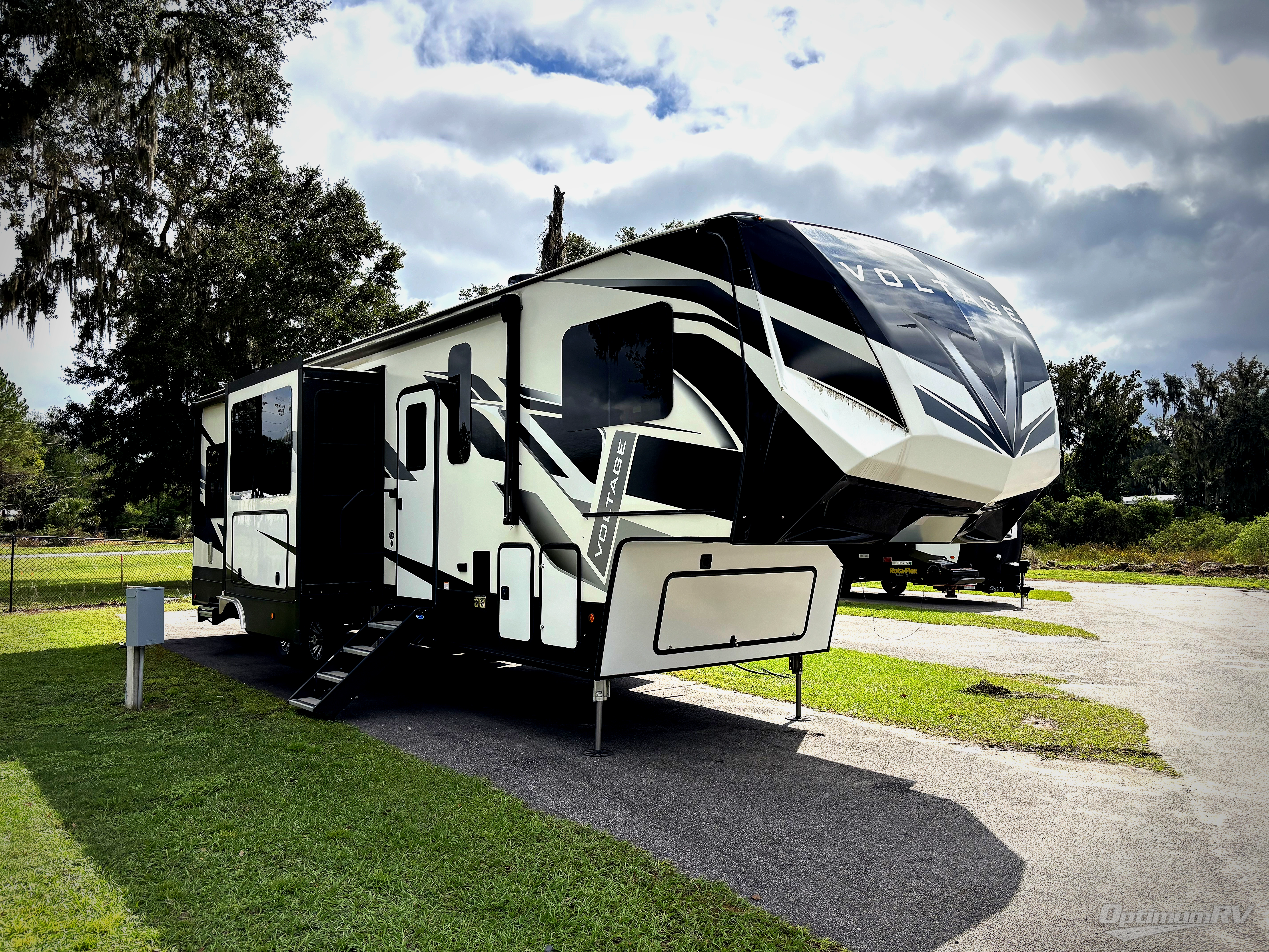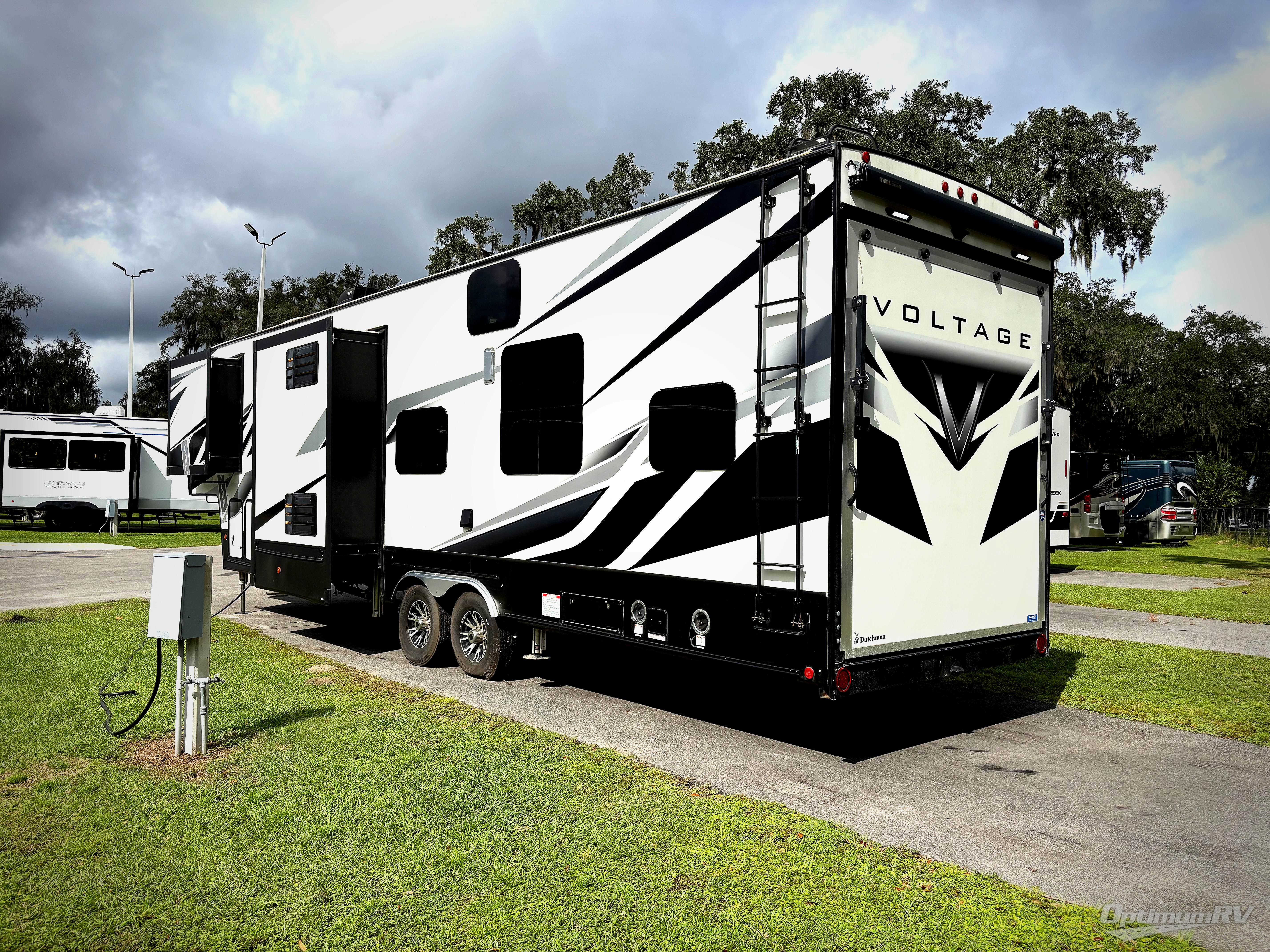 You will be extremely impressed by the amount of luxury found on the Dutchmen Voltage fifth wheel toy hauler! Some of the premium features that you will find on the Voltage are the Zero-Gravity ramp door that lets you access your toys with very little effort and the king-size bed which offers you extra space for sleeping comfortably. The Voltage also has industry-leading 7'-tall slides so that you can feel free to stretch your legs while inside. The ramp door patio system is certainly going to be an appealing factor because it provides you with an extra party space, and the dedicated heat ducts for the underbelly and the All-Weather Package with additional insulation will ensure that your Voltage is protected and prepared for all sorts of weather.