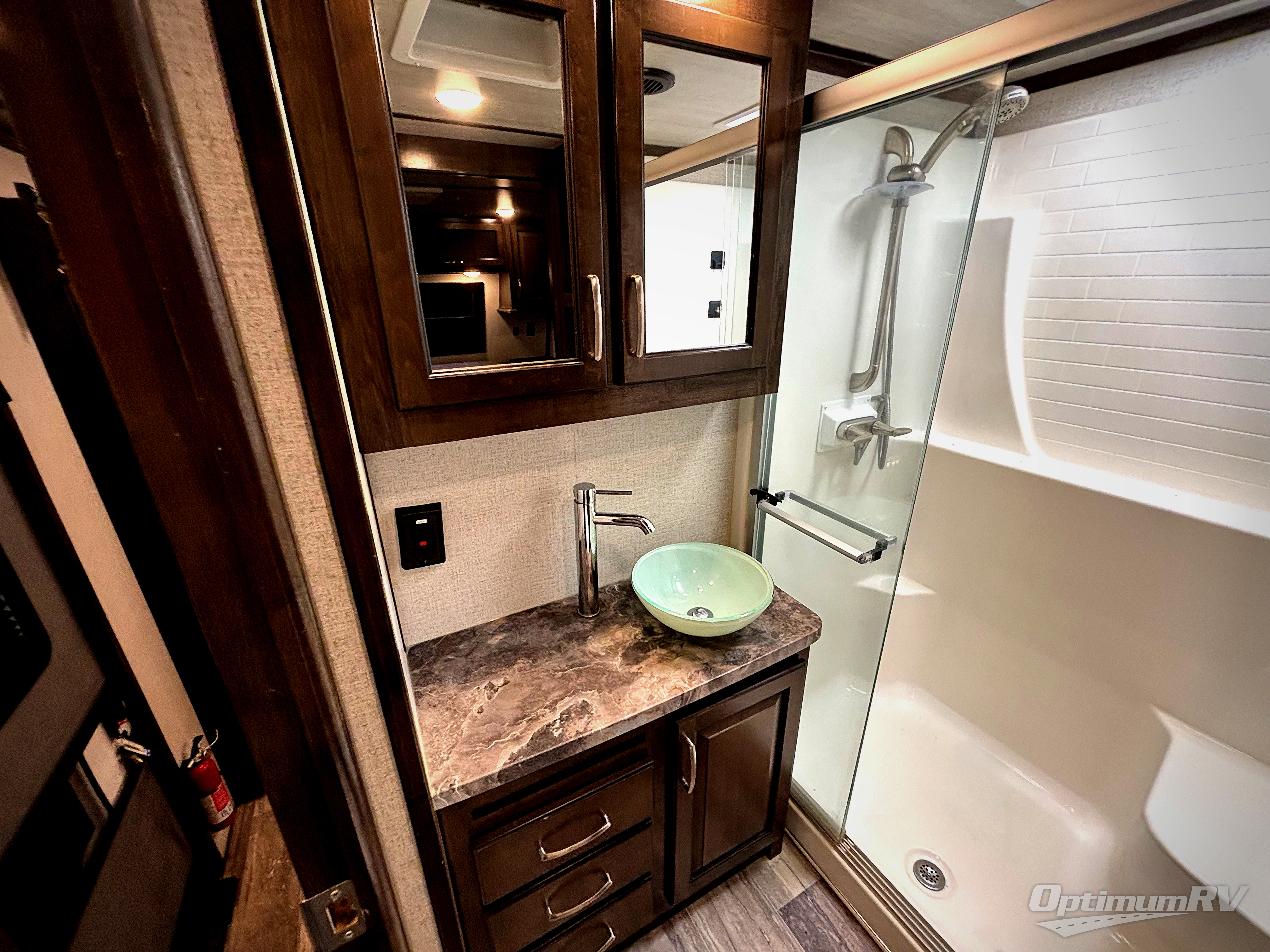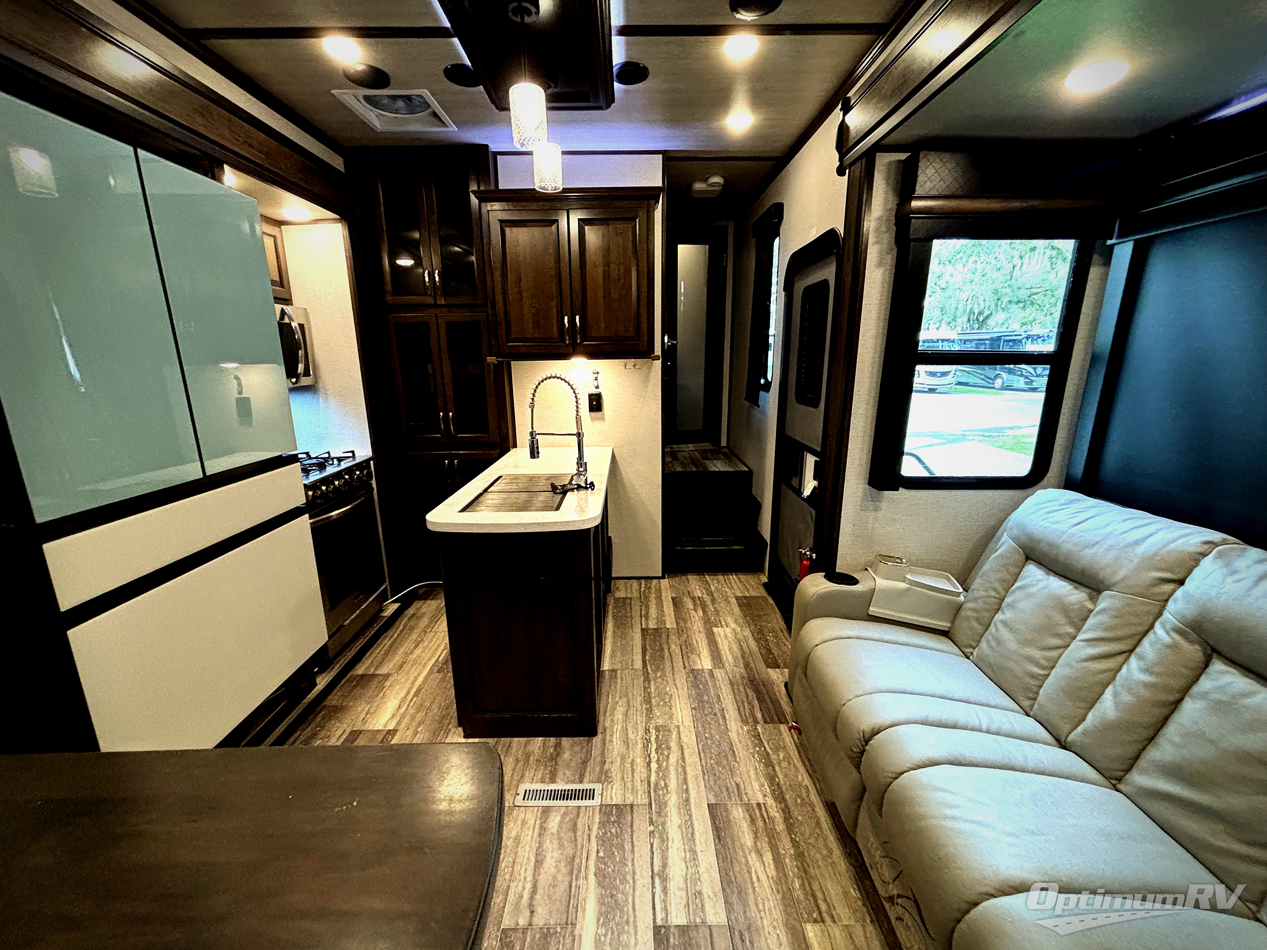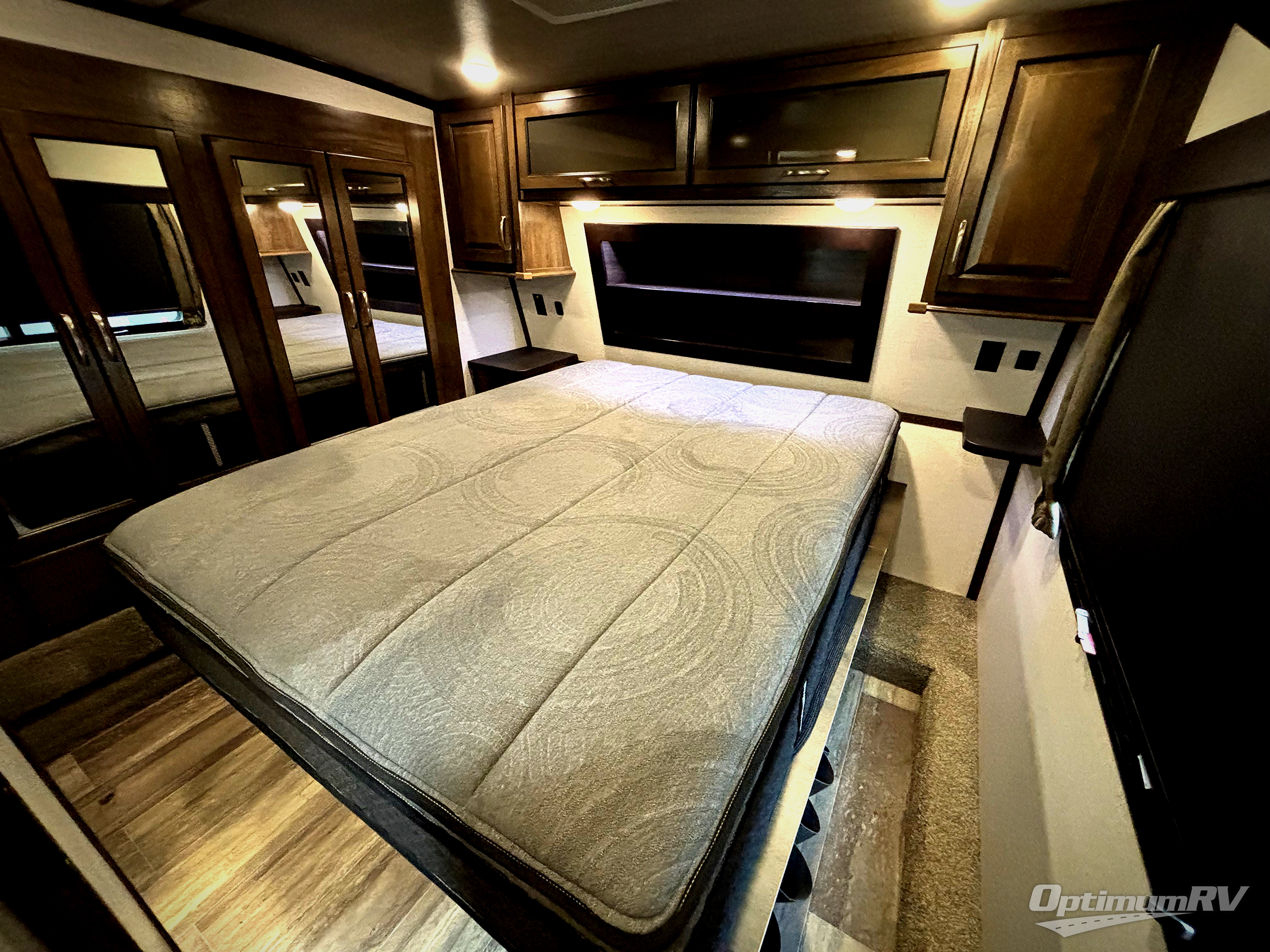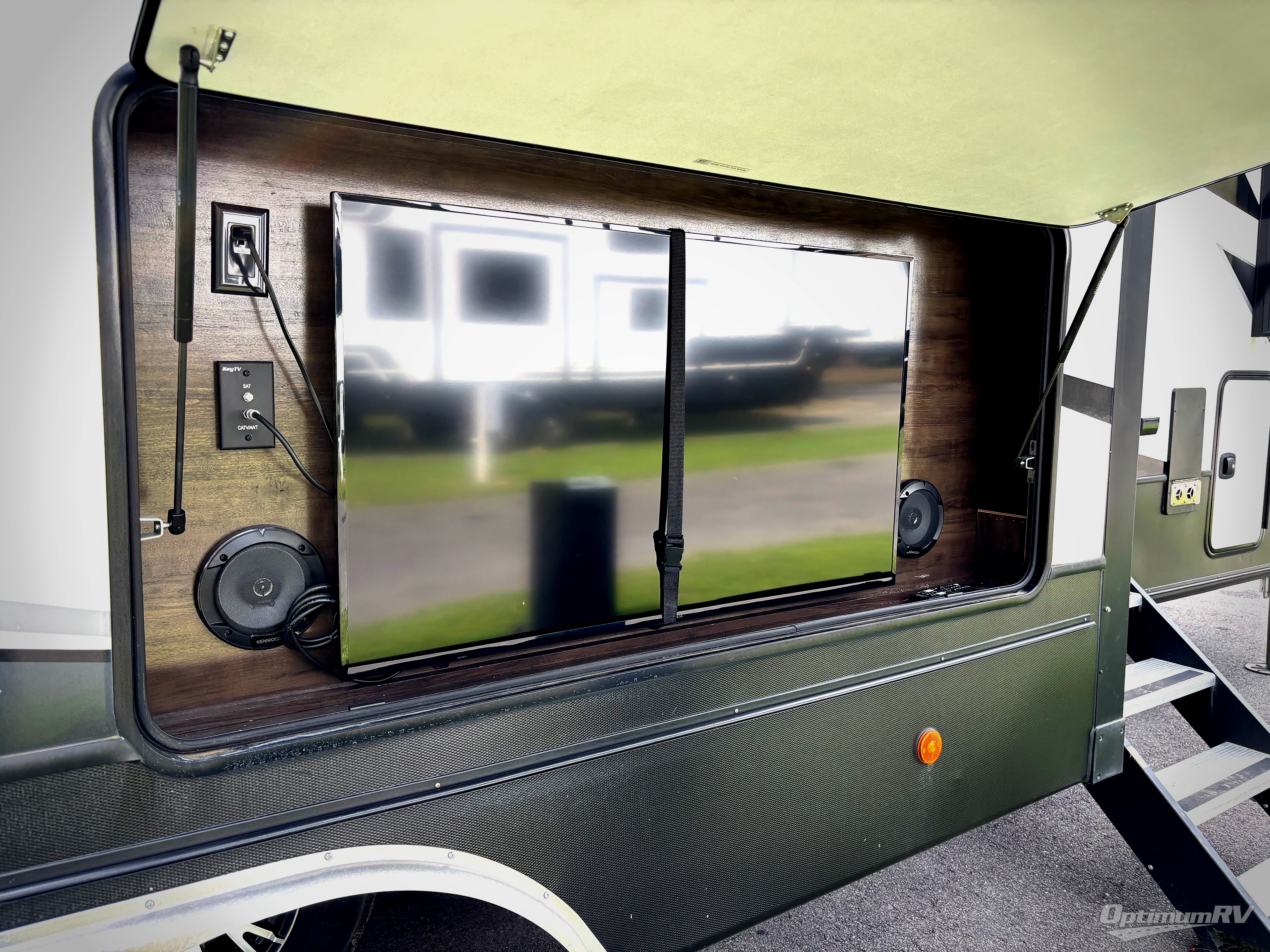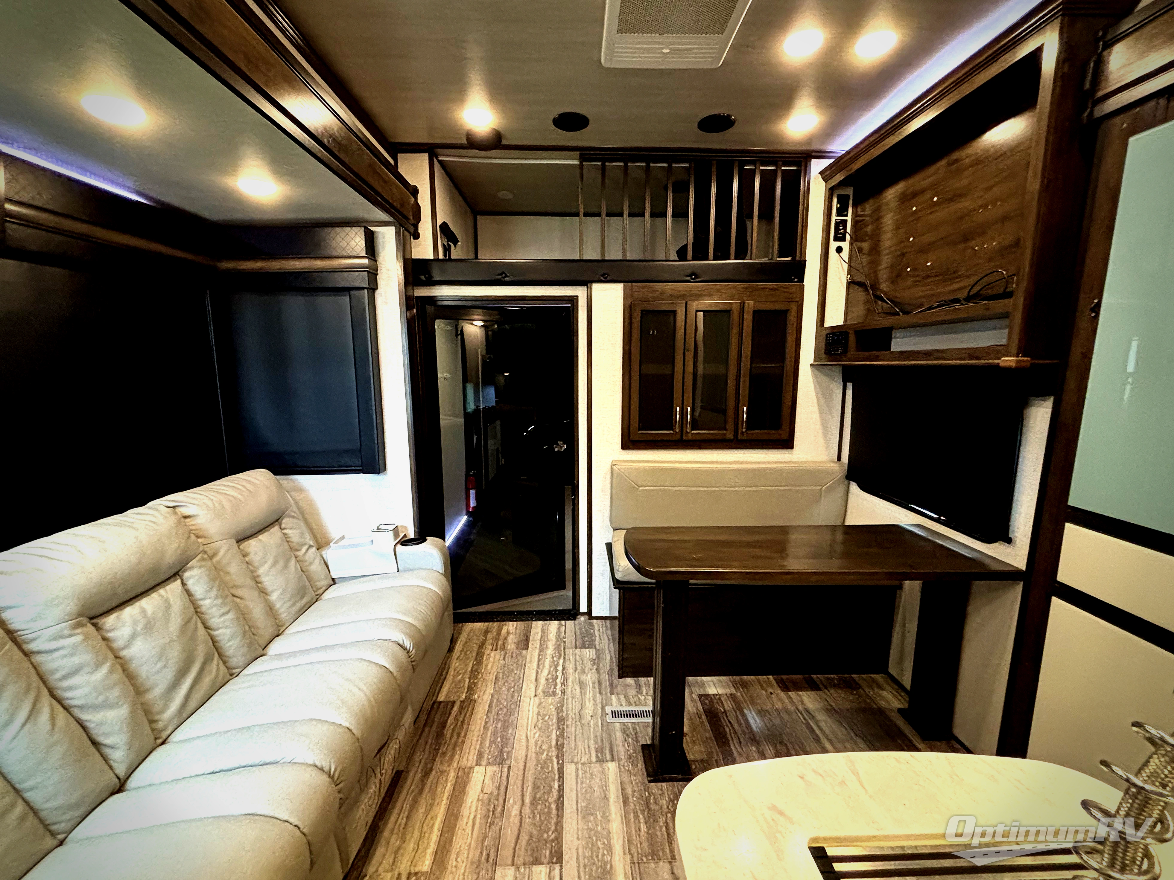 You will be extremely impressed by the amount of luxury found on the Dutchmen Voltage fifth wheel toy hauler! Some of the premium features that you will find on the Voltage are the Zero-Gravity ramp door that lets you access your toys with very little effort and the king-size bed which offers you extra space for sleeping comfortably. The Voltage also has industry-leading 7'-tall slides so that you can feel free to stretch your legs while inside. The ramp door patio system is certainly going to be an appealing factor because it provides you with an extra party space, and the dedicated heat ducts for the underbelly and the All-Weather Package with additional insulation will ensure that your Voltage is protected and prepared for all sorts of weather.