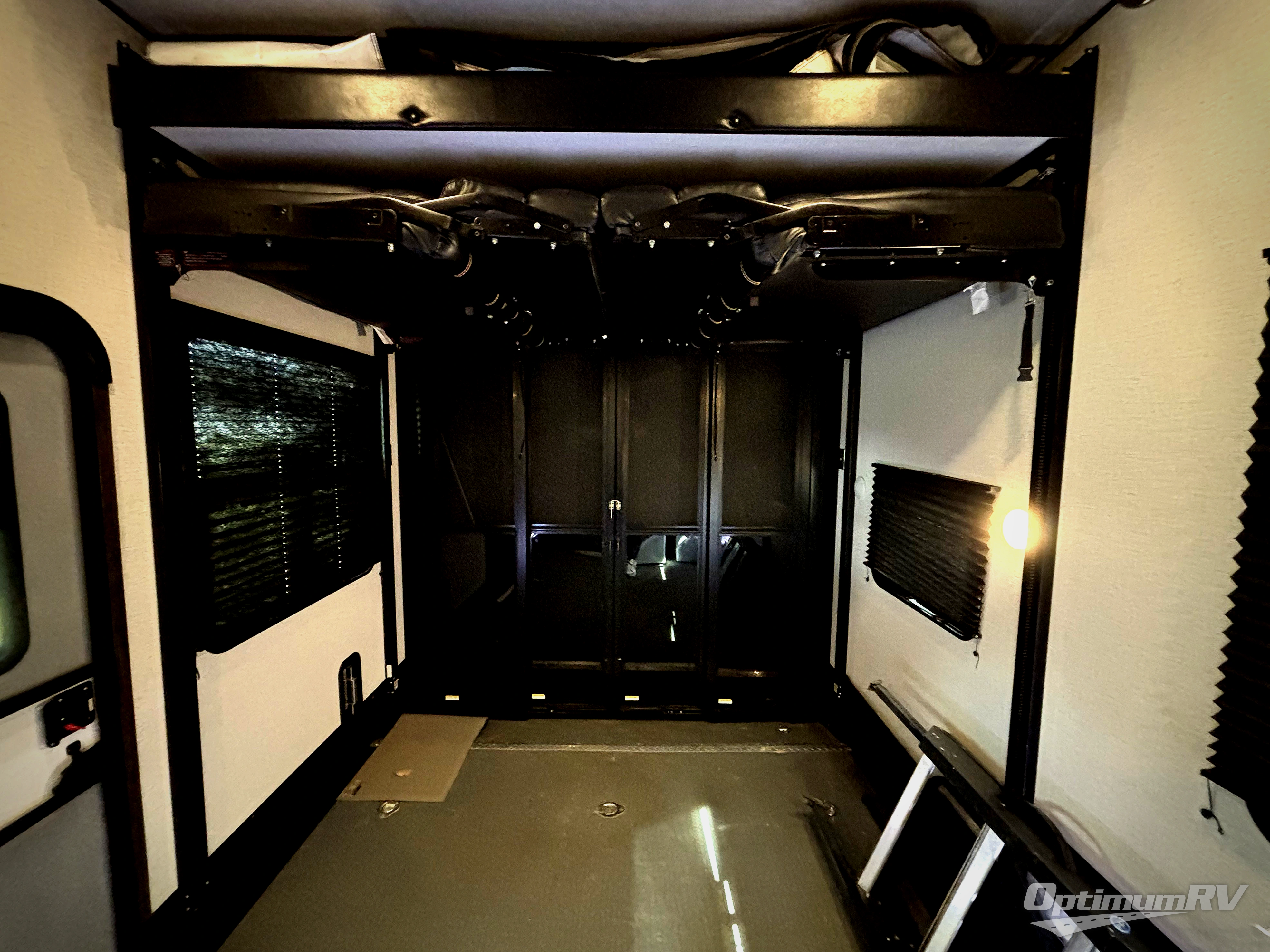 This Voltage toy hauler is going to change the way you look at camping! First of all, there is a master suite with a king-size bed up at the front, and there is even more sleeping space back in the garage with the twin-size loft, Happi-Jack power bunk, and opposing sofas. Not only is there plenty of sleeping space, but there is also plenty of entertainment with the garage TV, the 50" LCD HDTV in the living area, and the exterior entertainment center. Because of the two entry doors, you can quickly and easily access either the garage or the main living area, and you can also have a great time while you are outside because the two electric awnings with LED lights will keep the rain drops off of your head.
