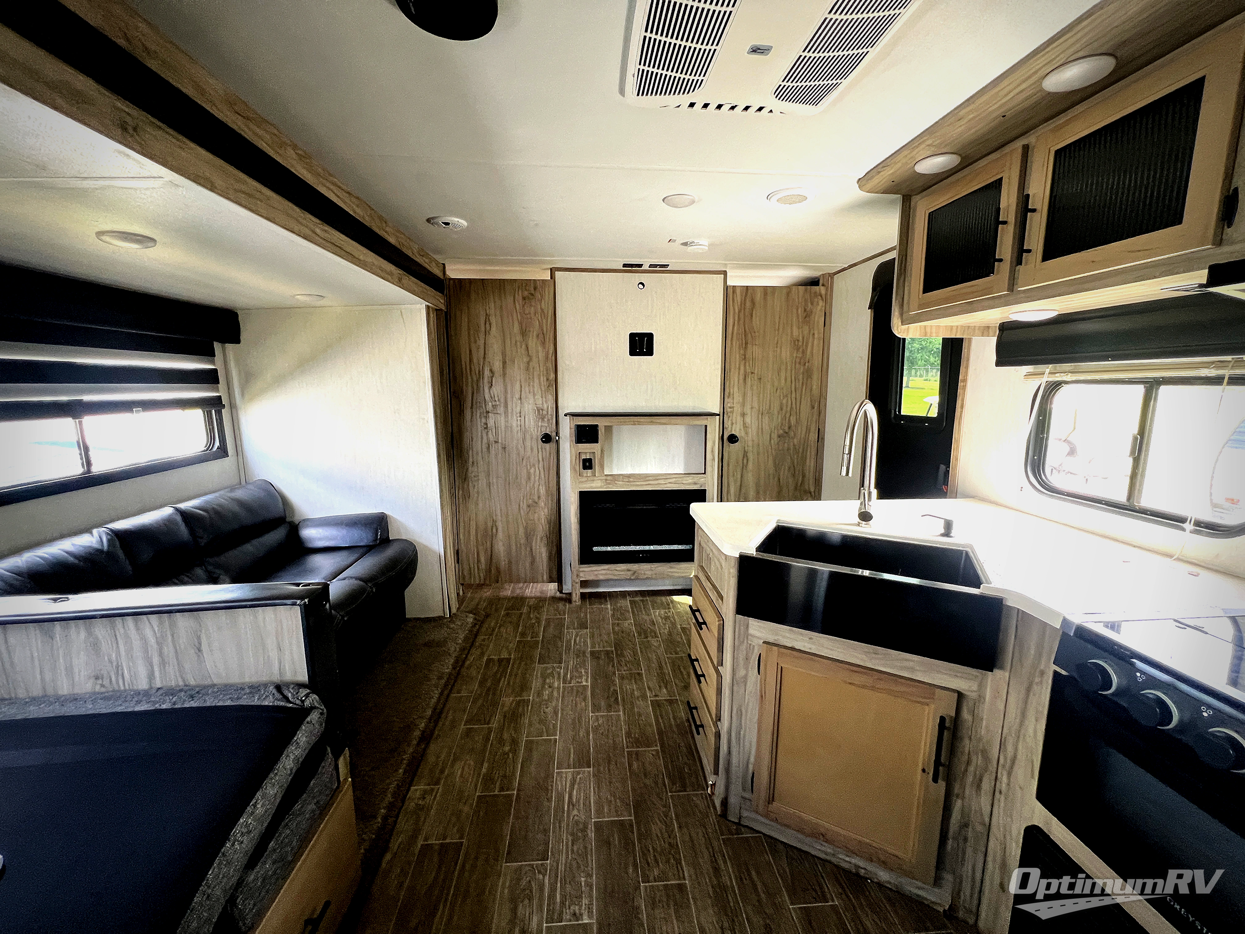 Spend your weekends with the whole family in the most popular multi-sleeper with this travel trailer! The dual entry doors make for a smooth flow of traffic in and out of the unit, plus one of the doors leads directly into the rear corner bathroom so you can get back to playing outdoors fast. The oversized U-shaped dinette is big enough for everyone to gather around at meal times and to play games. If mother nature is raining on your parade then you can relax on the jackknife sofa and enjoy the electric fireplace, just grab a snack from the large pantry and a drink from the 12V residential refrigerator.. If you're feeling brave then you can head outdoors and watch the rain poor down as you stay protected underneath the oversized 20' awning, plus there is a deluxe outside kitchen for you to cook while you watch the kids play when the sun is shining!