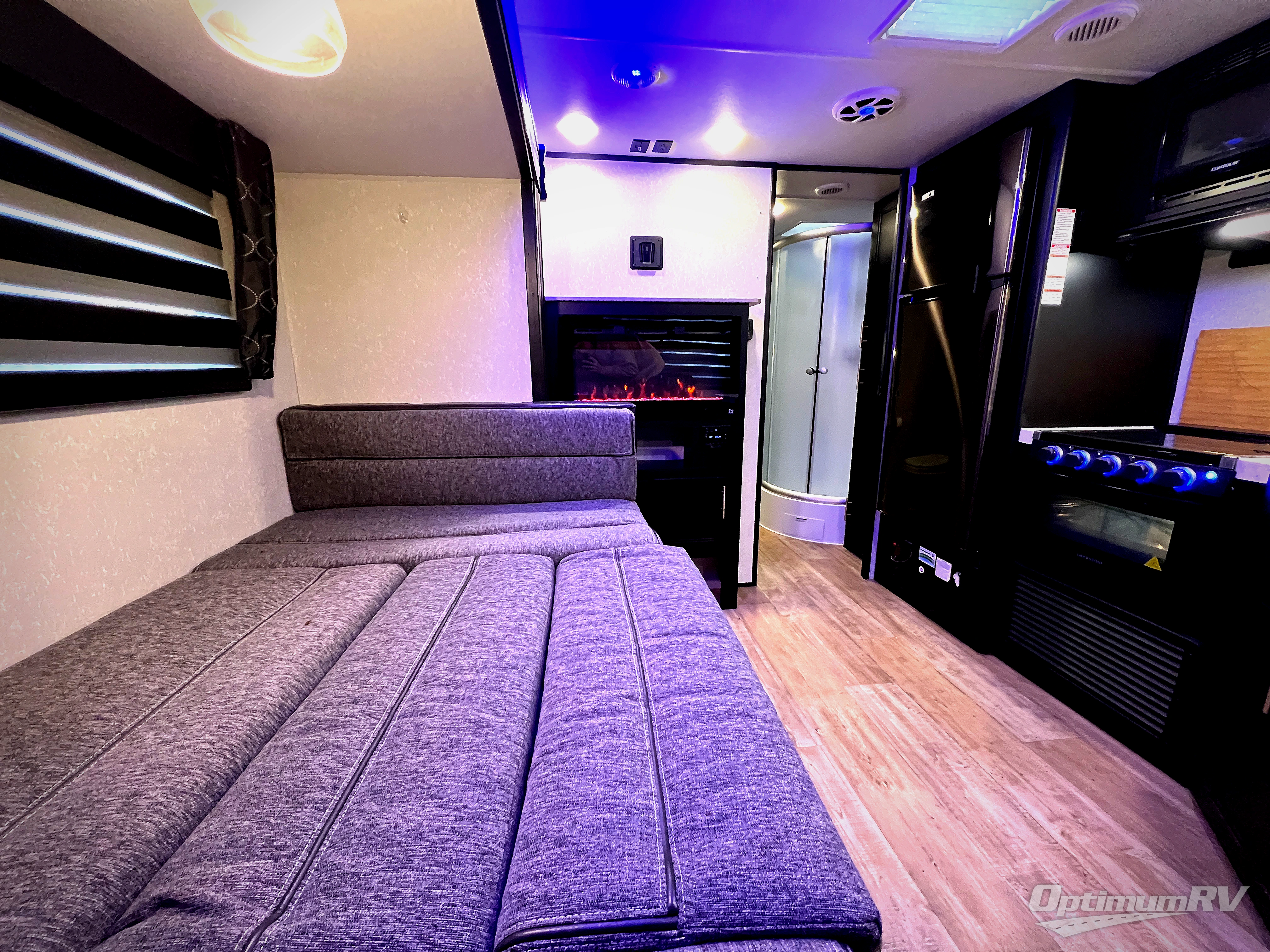 This Cherokee Grey Wolf travel trailer is perfect for your small family and will leave you planning your next outing before you are back from your current weekend away! You will find all of the comforts you need with plenty of livable space including a U-shaped dinette slide. There is also a sofa for more seating when company arrives, and there are end tables on either side to prevent spills. A spacious walk-through bath leads to a front private bedroom where you will enjoy a great night's rest on a comfortable queen-size bed. You will find ample storage for clothing in the wardrobes that are above handy nightstands for your personal things. There are even lights mounted above the bed on each side which makes it easy to read a couple of chapters before drifting off to sleep.