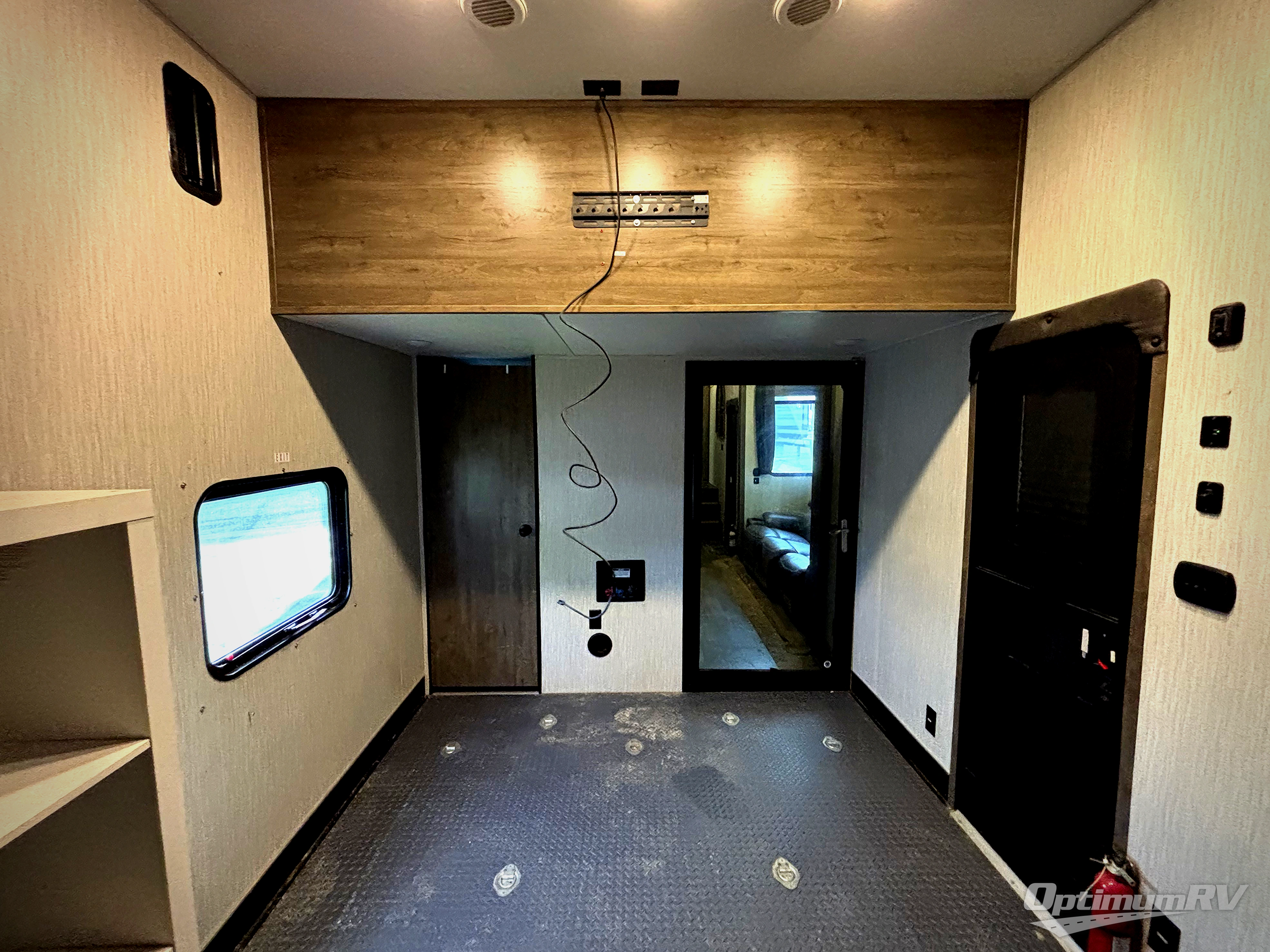 The versatile Cherokee Wolf Pack toy haulers are ready for all your excursions! Each model includes a true high gloss gel coat, a 102" wide body design, and a forced air heated underbelly and enclosed holding tanks so you can camp year around. You will enjoy hassle-free features such as, the in cab tire pressure monitor system, the Happijac bed lift system, and the 100 gallon fresh water capacity. Each model includes a shower skylight, LED interior/exterior lights, Zebra shades in the living area, and a black stainless steel farm sink for that added touch-of-home. The fifth wheels include stabilizer jacks, a second 15K A/C unit in the bedroom, and 50 Amp service. You will appreciate 30 Amp service in the travel trailers, a power tongue jack, and ramp door cables. These toy haulers also include USB charging stations to keep all your gadgets charged and ready to go, premium Teddy Bear bunk mats for comfortability, and a reverse activated light and backup camera for easy loading and unloading!