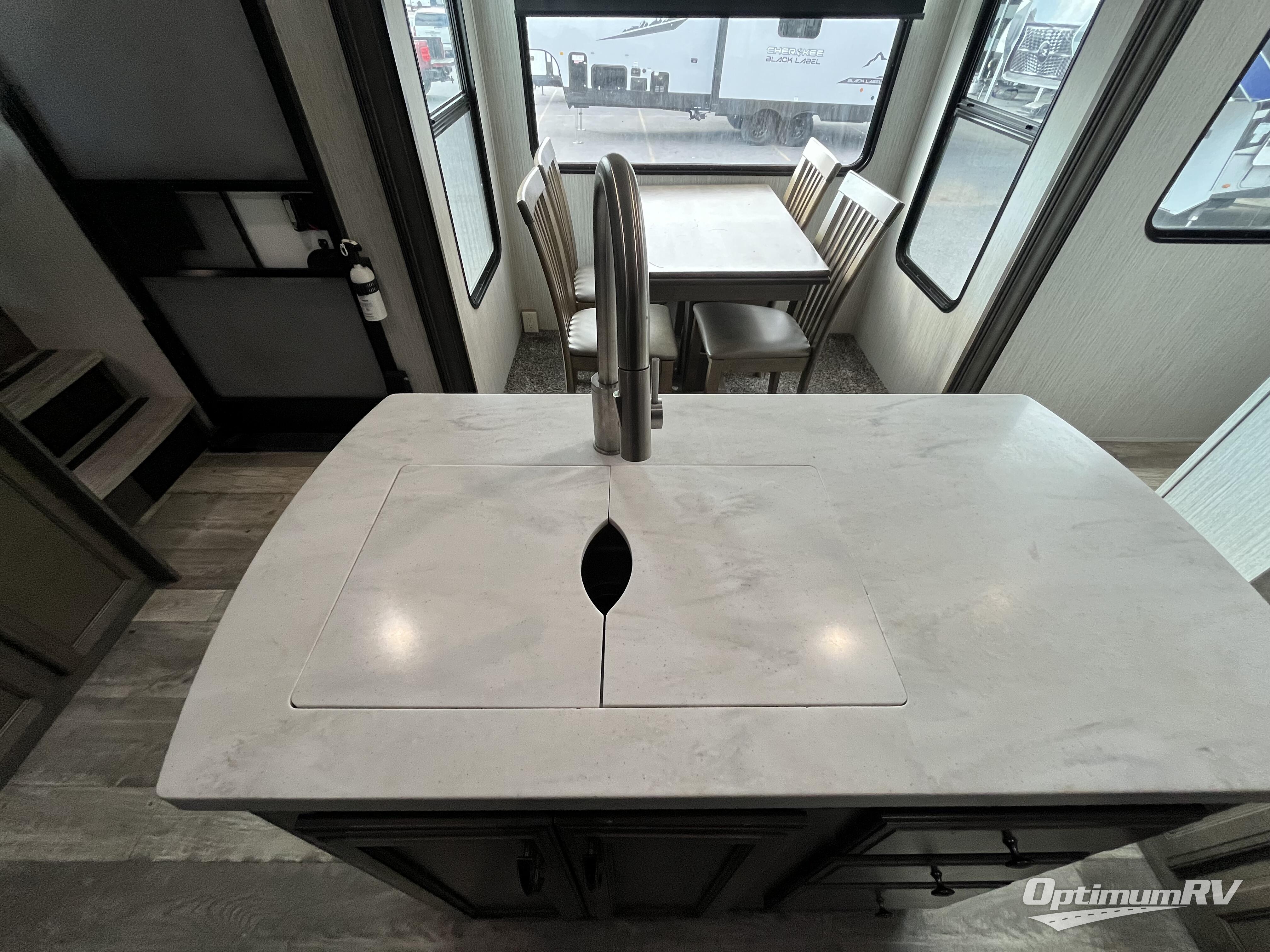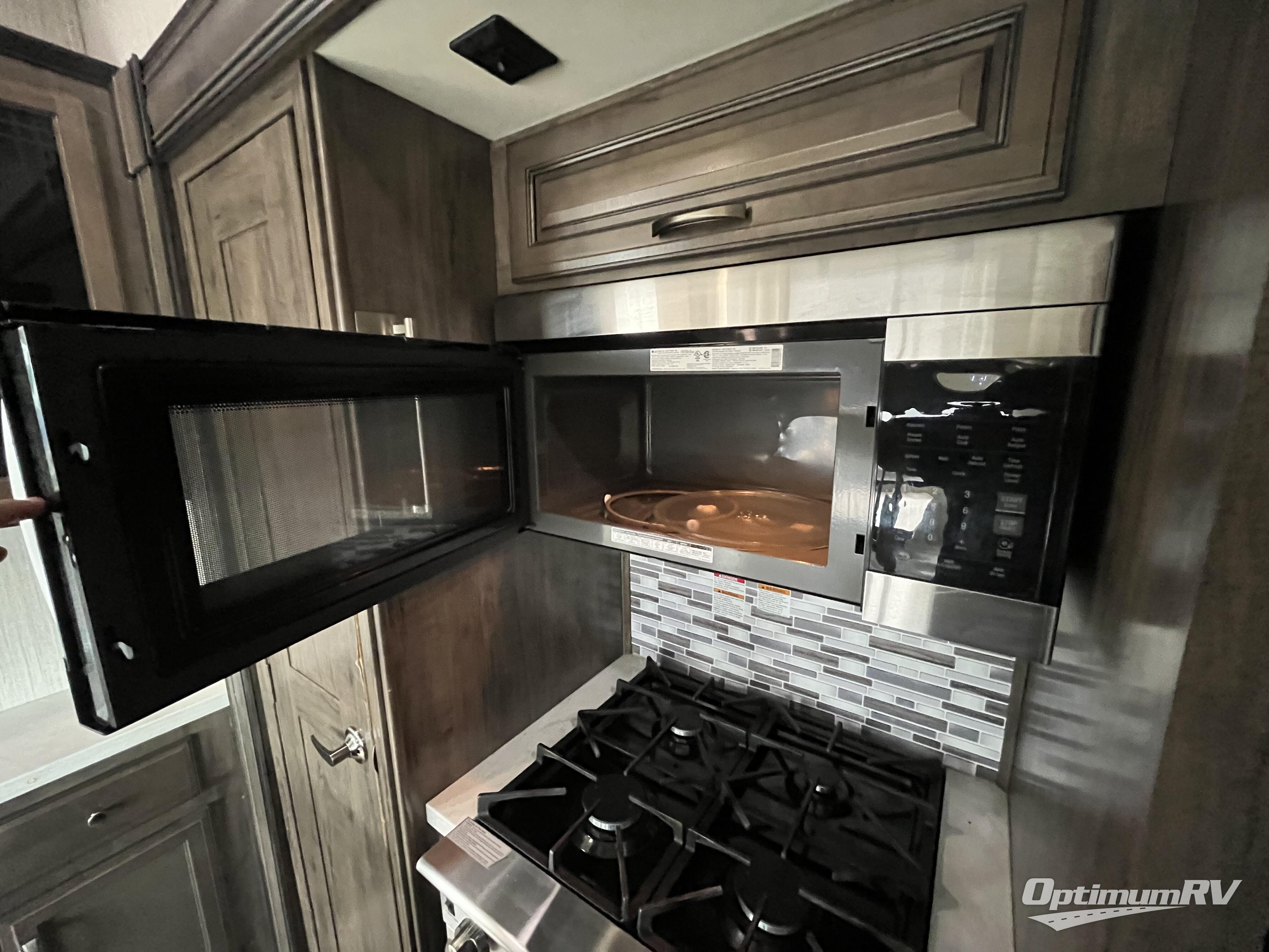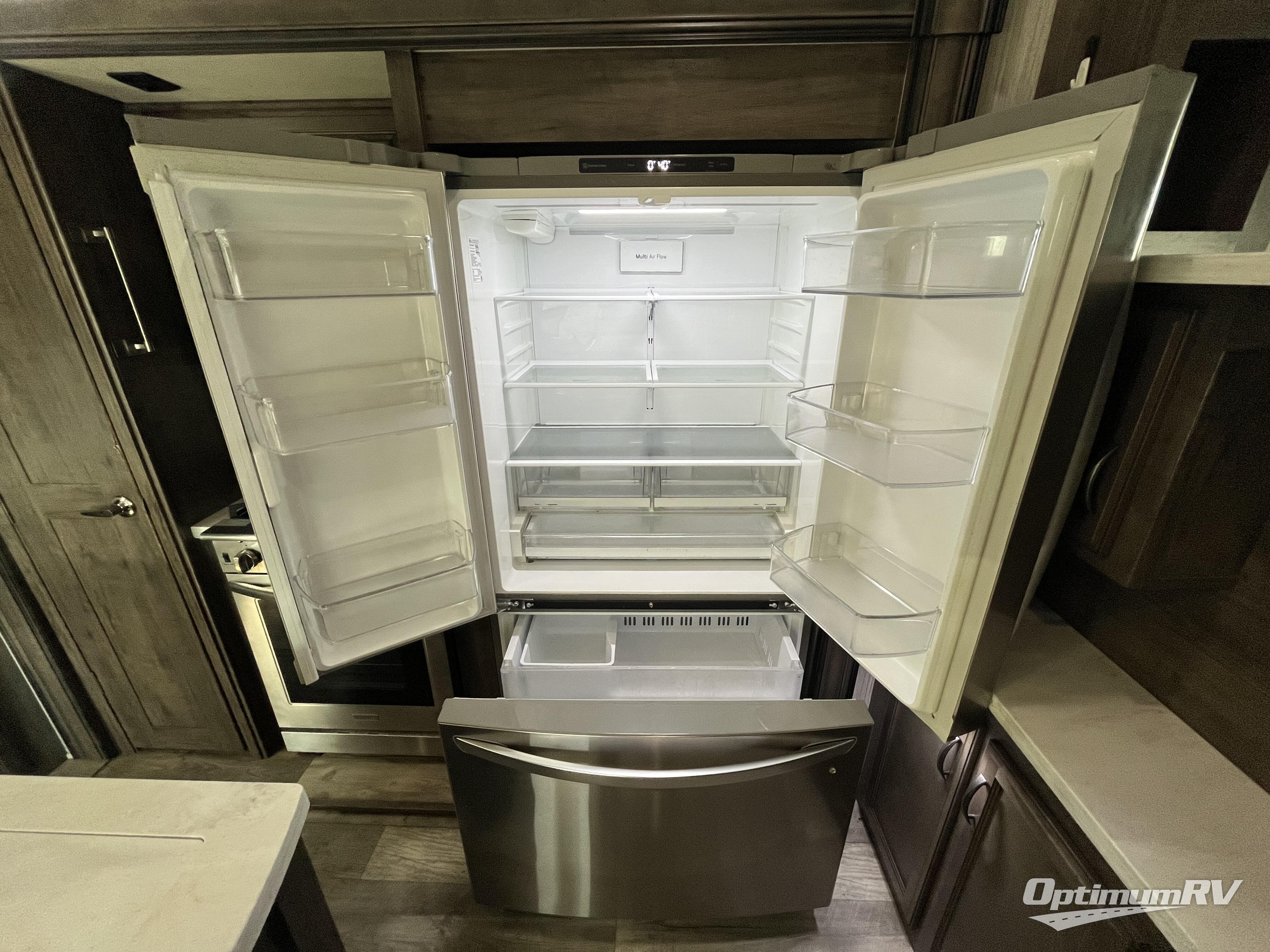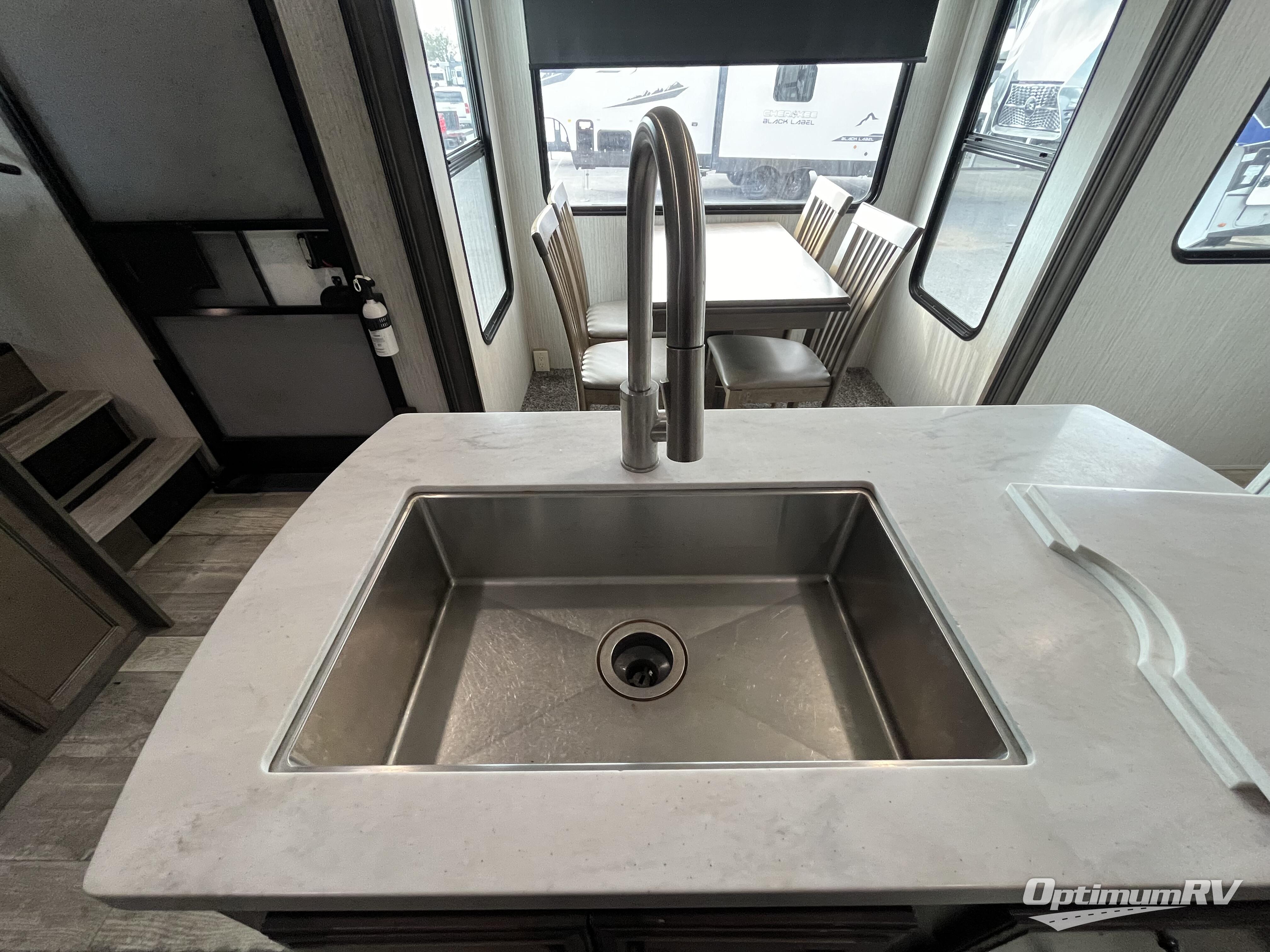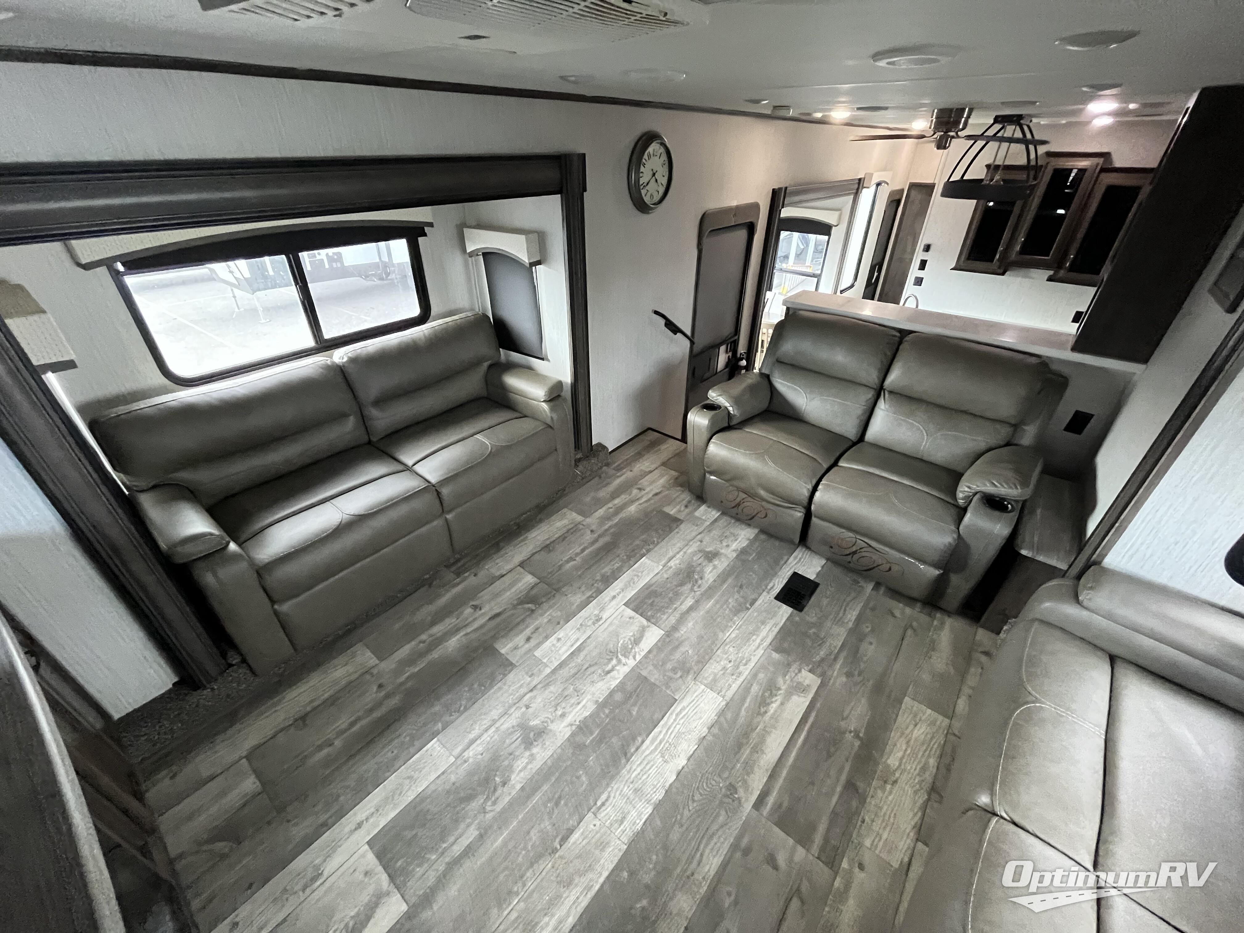 RV living is more fun when you have a spacious interior with six slides throughout from the front separate living area, the middle kitchen and the rear bedroom all offering dual opposing slides to open up each area to relax, cook and unwind. You can entertain everyone by providing food and drinks set out on the kitchen island or hutch, play games at the free standing dinette. Plan to watch the big game on the 50" pop-up LED HDTV with fireplace below or enjoy the view out of the front window in the living area with dual tri-fold hide-a-bed sofas and theater seats. Sleep like a king on your own pillowtop mattress and allow guests to sleep on the sofas. You will also have the exterior kitchen to help feed everyone, a 20' electric awning to hang out underneath, and dual entry doors to keep the flow of traffic moving.