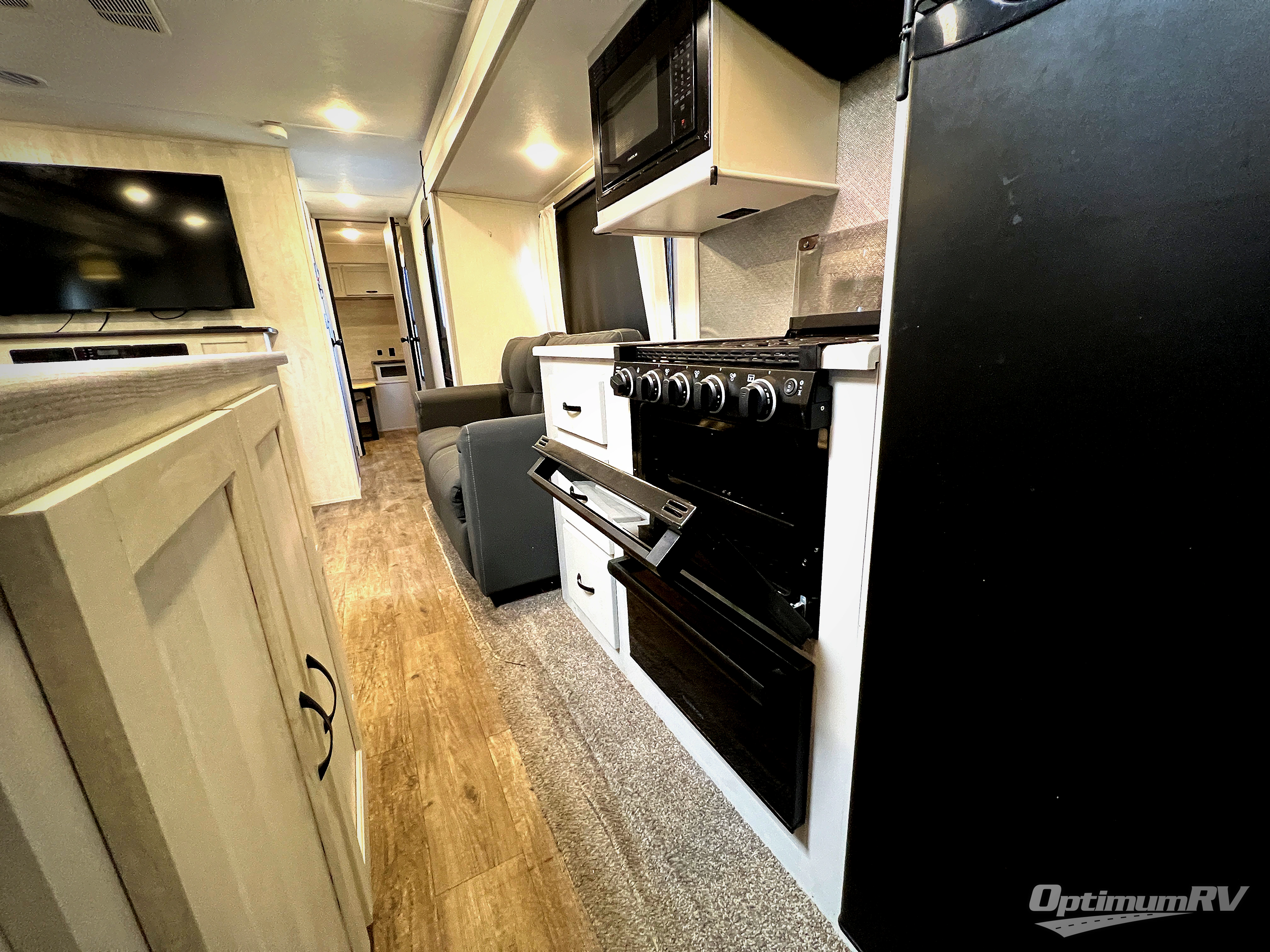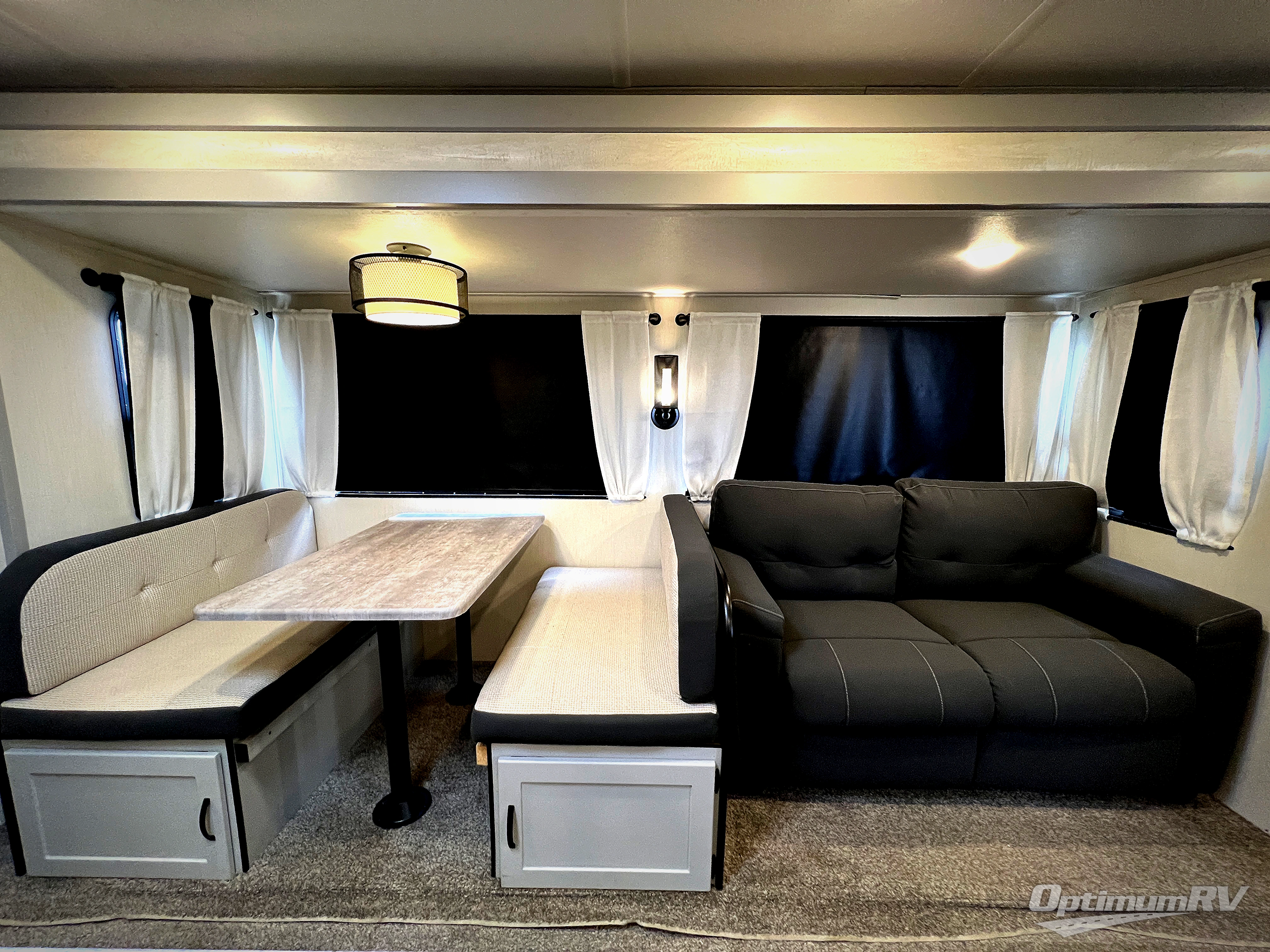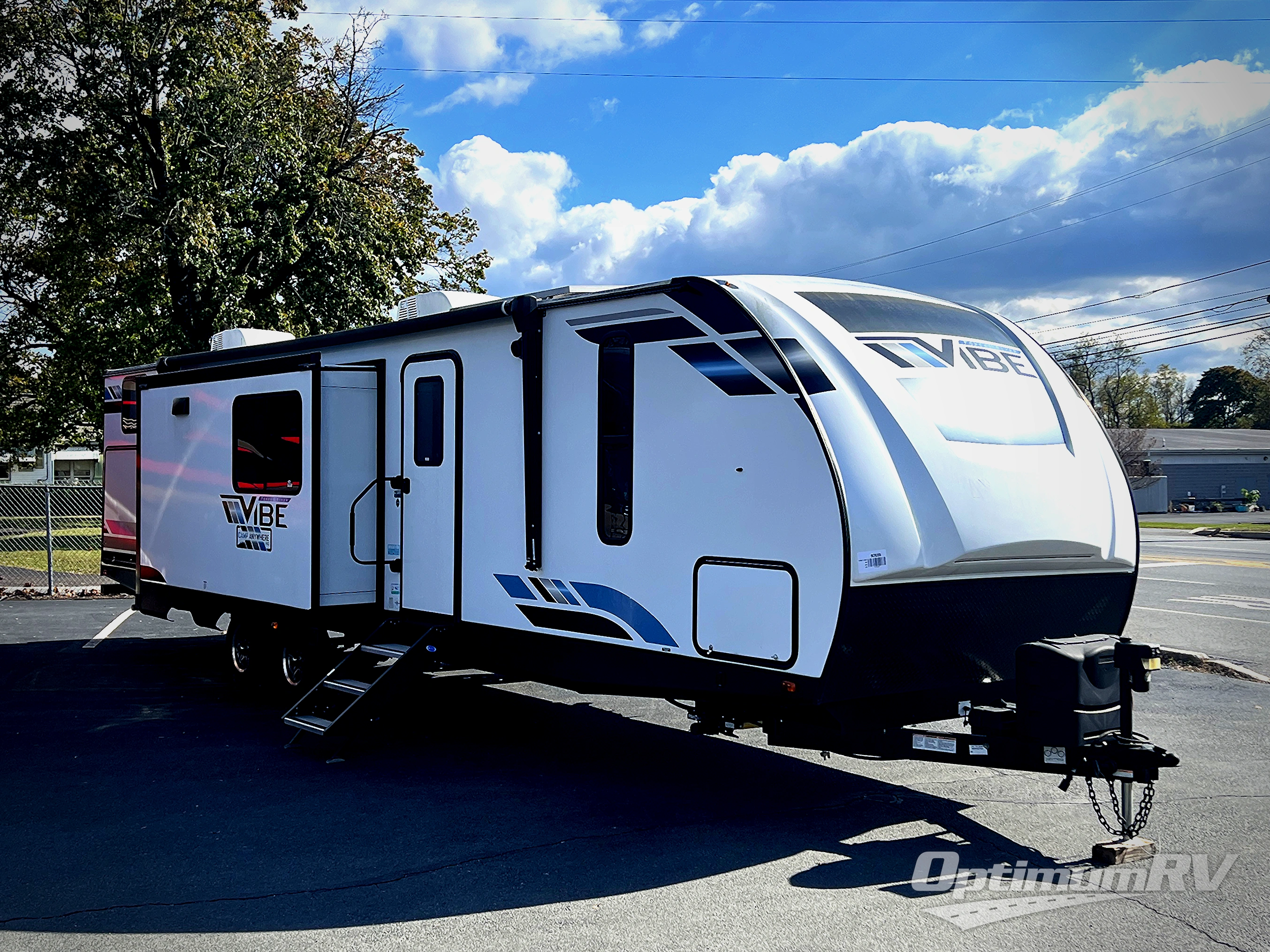 Each Vibe travel trailer by Forest River includes Hyper Lyte construction and a durable laminated "Aluma Frame" for years of use. The heated and enclosed underbelly allows you to extend your camping season, and the LED-lit exterior speakers will keep the party going as you grill outdoors and visit with family. Inside, you'll find LED lights to keep everything bright and open, a Bluetooth stereo, roller shades for your privacy, and many more amenities per region. These models also include cable and satellite prep and a digital TV antenna with a booster so you can stay connected to the outside world if you choose. Make the easy choice and choose a Vibe travel trailer today!