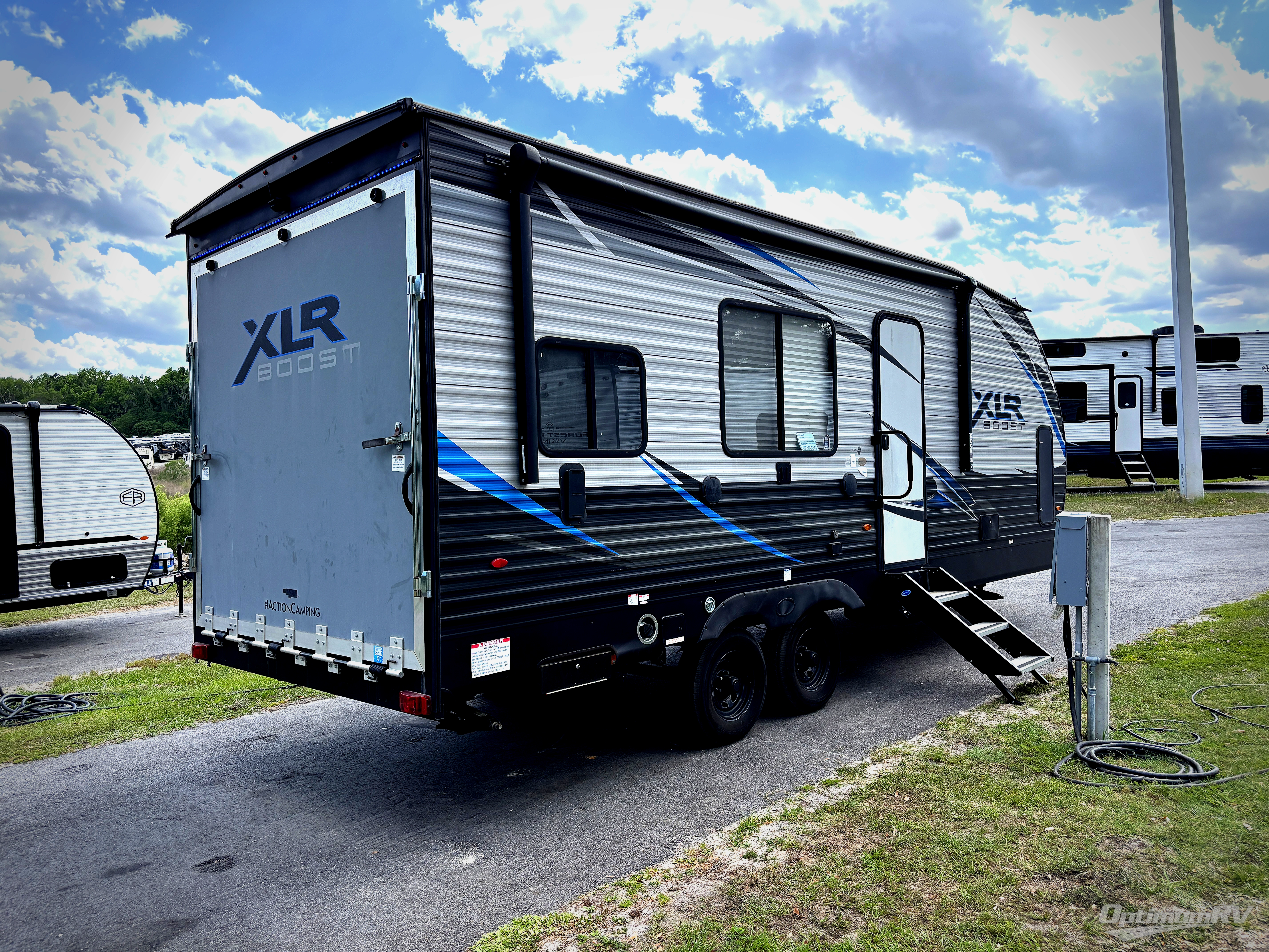 The possibilities are endless with any one of these Forest River XLR Boost toy hauler travel trailers or fifth wheels! They are designed for an "action camping" lifestyle with a 102" wide body to fit your side by sides, kayaks, or any other type of fun toys. You will experience a fresh sense of camping with complete comforts like a high definition LED TV, walk-in showers, oil and gas resistant residential linoleum, and a 5,000 BTU fireplace. There is a wide variety of models to choose from with either open or closed garage spaces and each weight/length was taken into consideration to fit most common trucks. The body armor underbelly has PVC laminated to the foil radiant barrier insulation for better protection and the 100 gallon fresh holding tank capacity is the best-in-class. Come find your perfect model today!