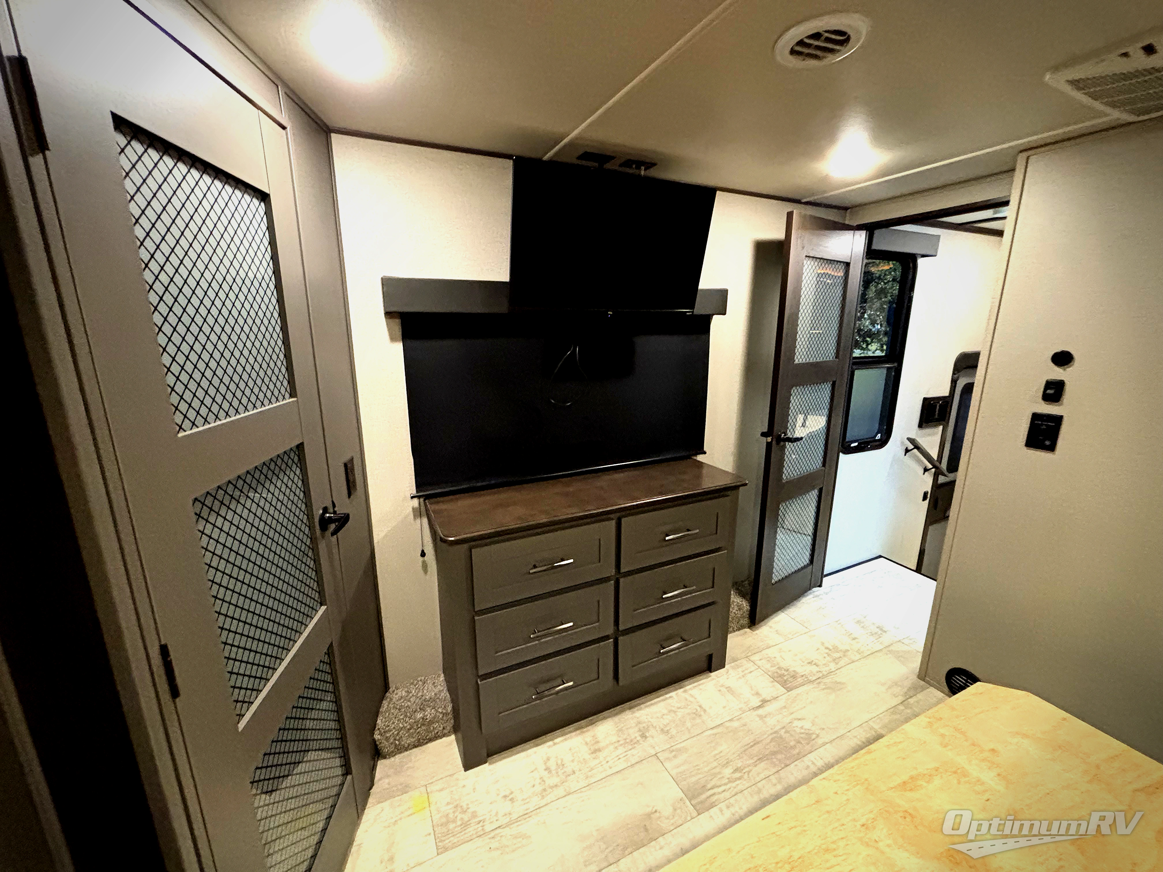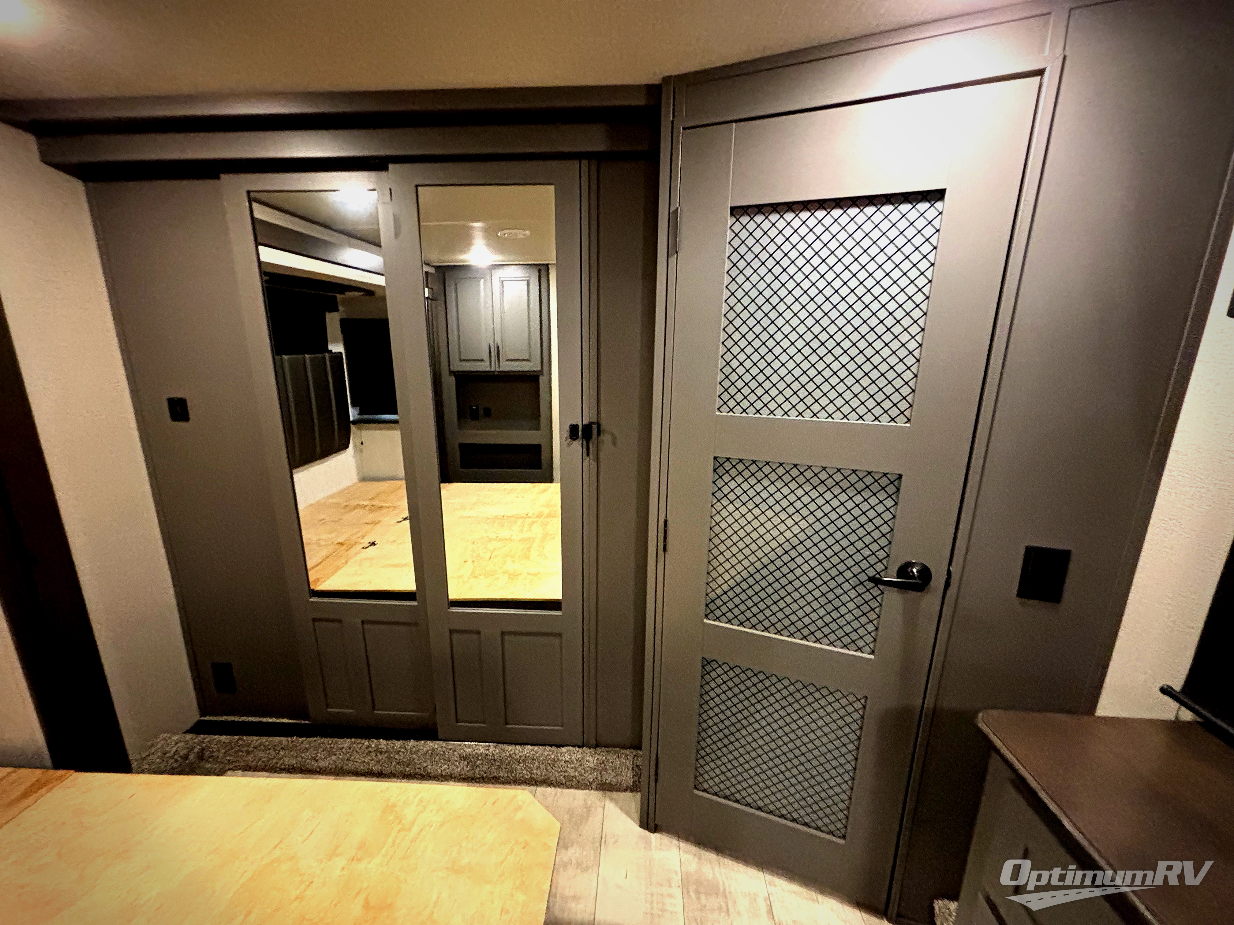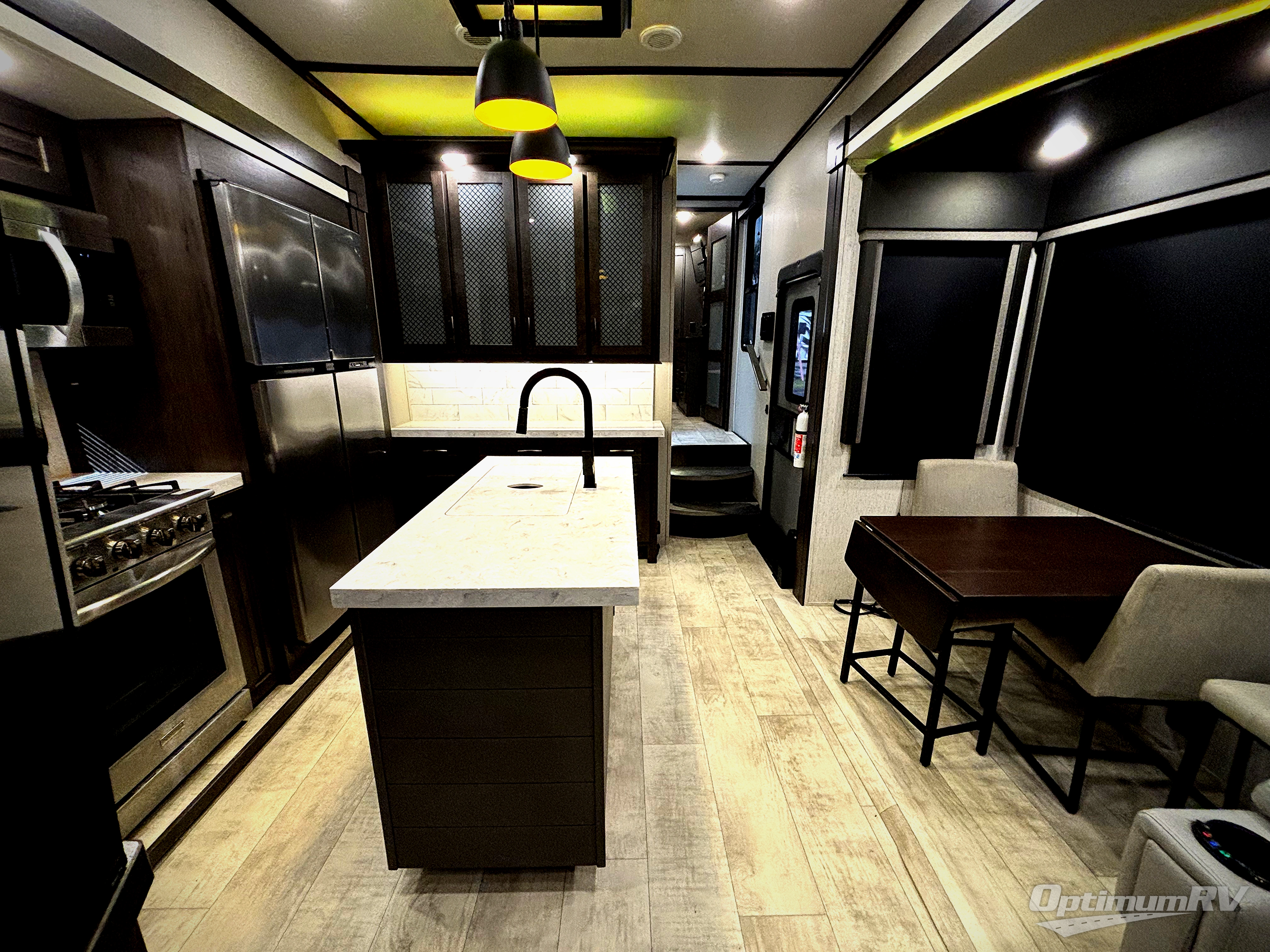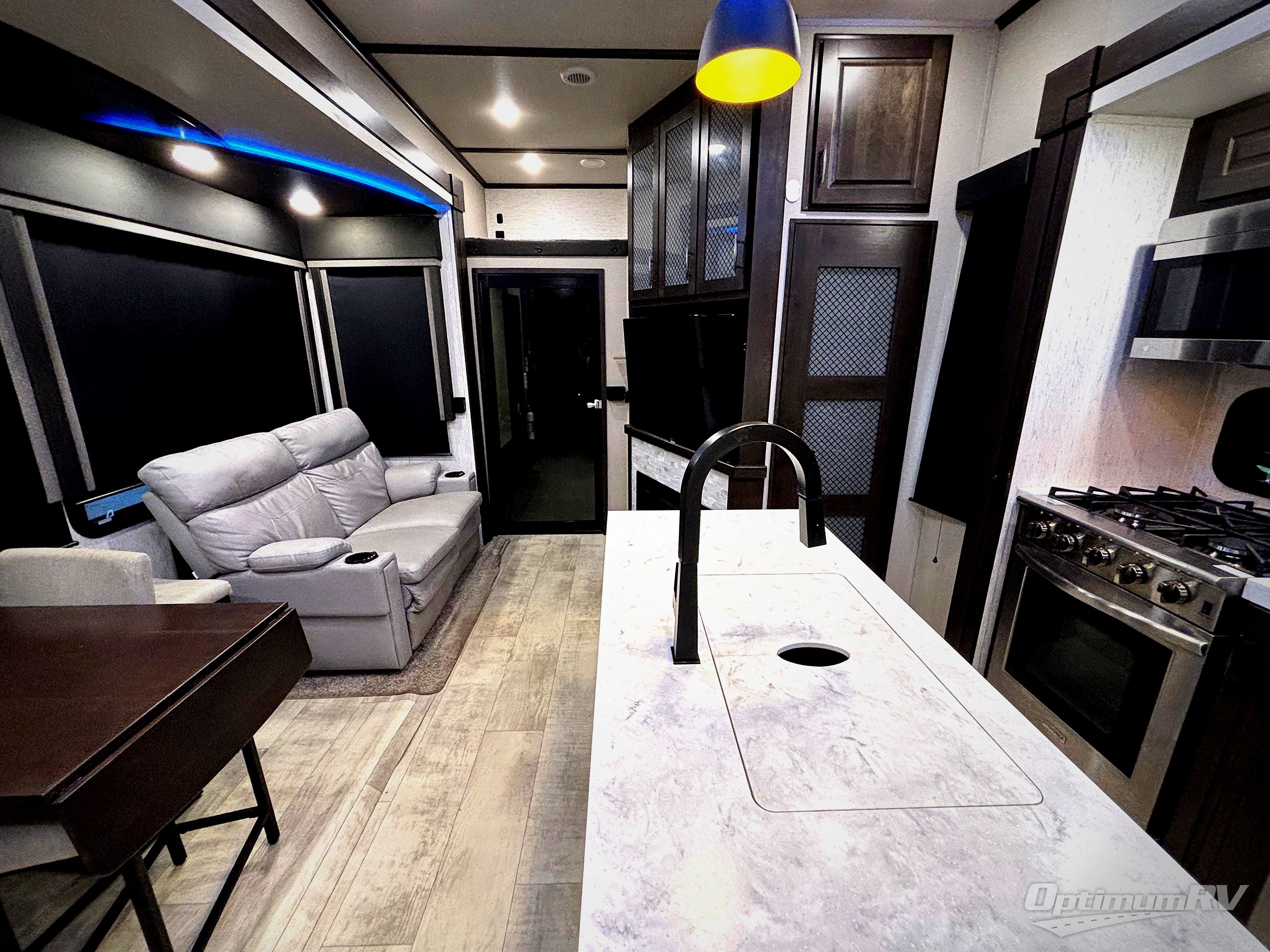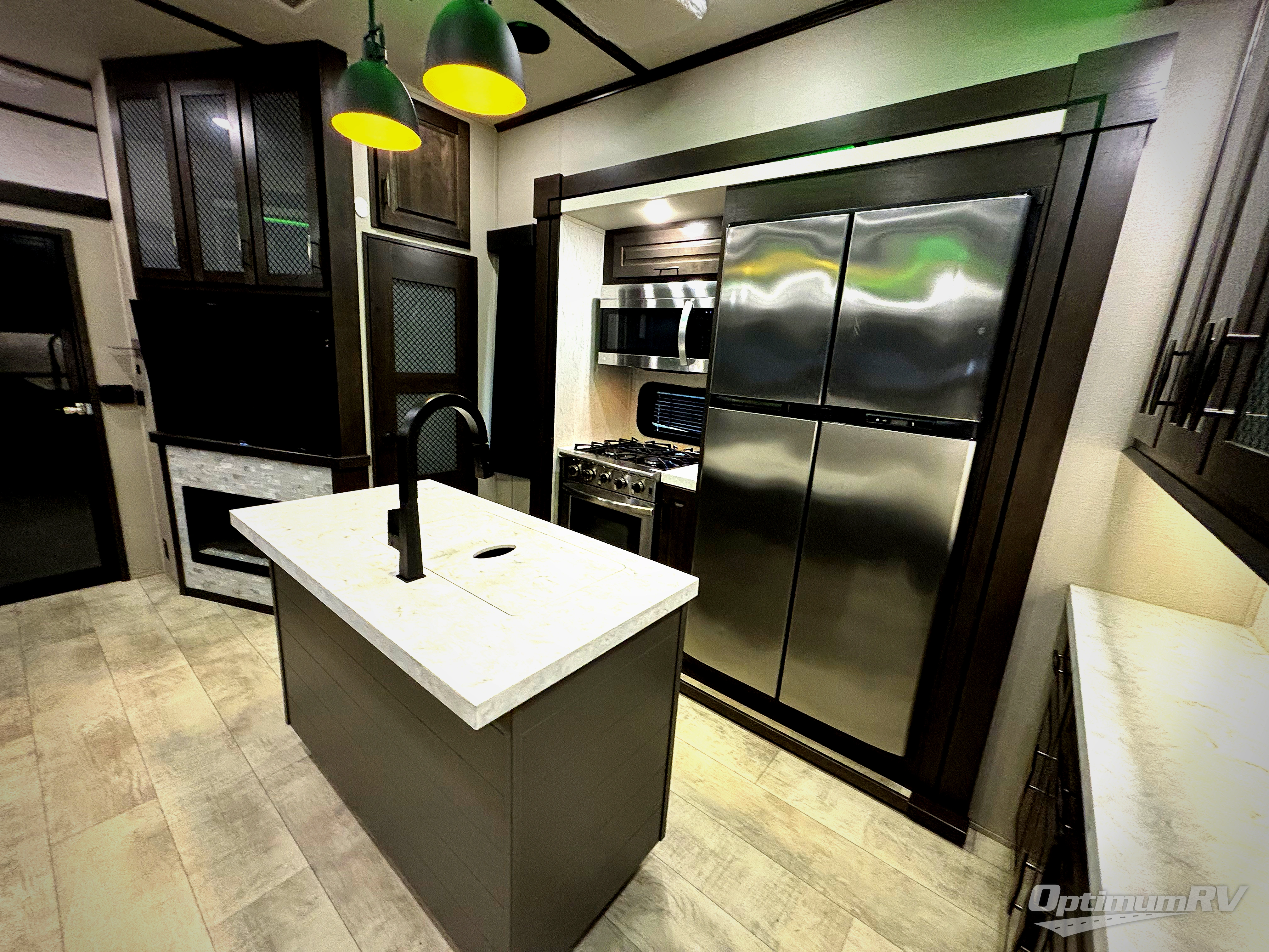 This Momentum toy hauler provides the maximum entertainment with its 49" LED TV in the living area, 32" LED TV in the private bedroom, 32" LED TV in the 12' 6" separate garage, and exterior LED TV! You can choose to add the optional Super Sofa which will create an amazingly comfortable area to sit down across from the electric fireplace. The two full bathrooms are one of the most impressive features found on this unit, and the three power awnings are another shocking addition. Within the kitchen, you'll be able to prepare all of your family's favorite dishes when you use the chef-inspired range and oven, and the window behind the range allows you to view the campsite while you cook. If you would prefer to have a residential refrigerator, you should check out model 397TH-R!