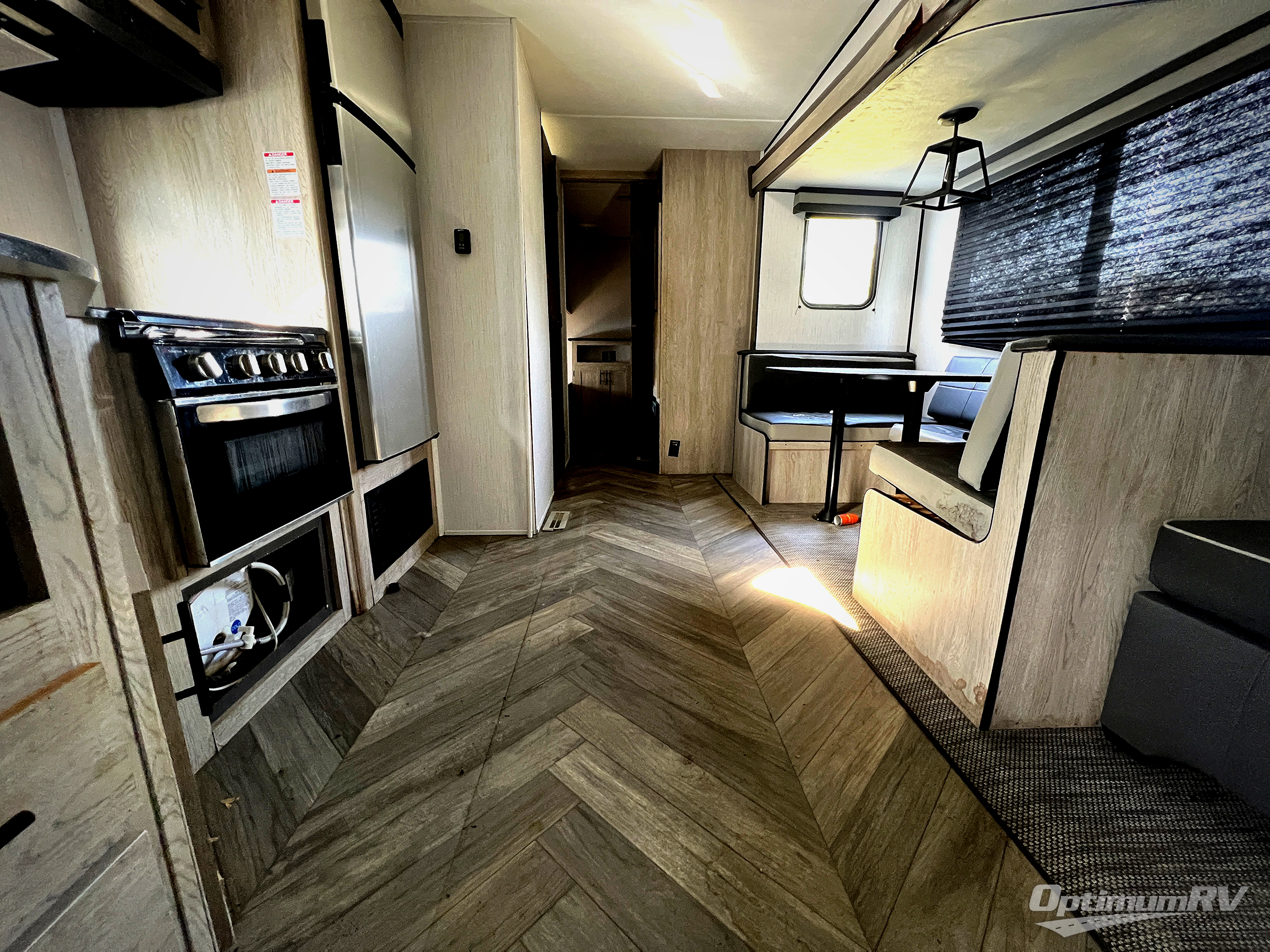 Now you can invite the grandkids along or your friends on camping trips since this travel trailer includes a private bunkhouse just for them! They will have three bunks to choose from, plus a dinette that can be converted to sleeping space at night. You and your spouse will sleep soundly on the queen bed in the front private bedroom, and any additional guests can sleep on the sofa or U-shaped dinette within the large slide out. The chef of the family can prepare eggs and bacon on the flush mount three burner cooktop in the morning before you all head out on a trail, and the full bath will allow everyone to clean up when you return!