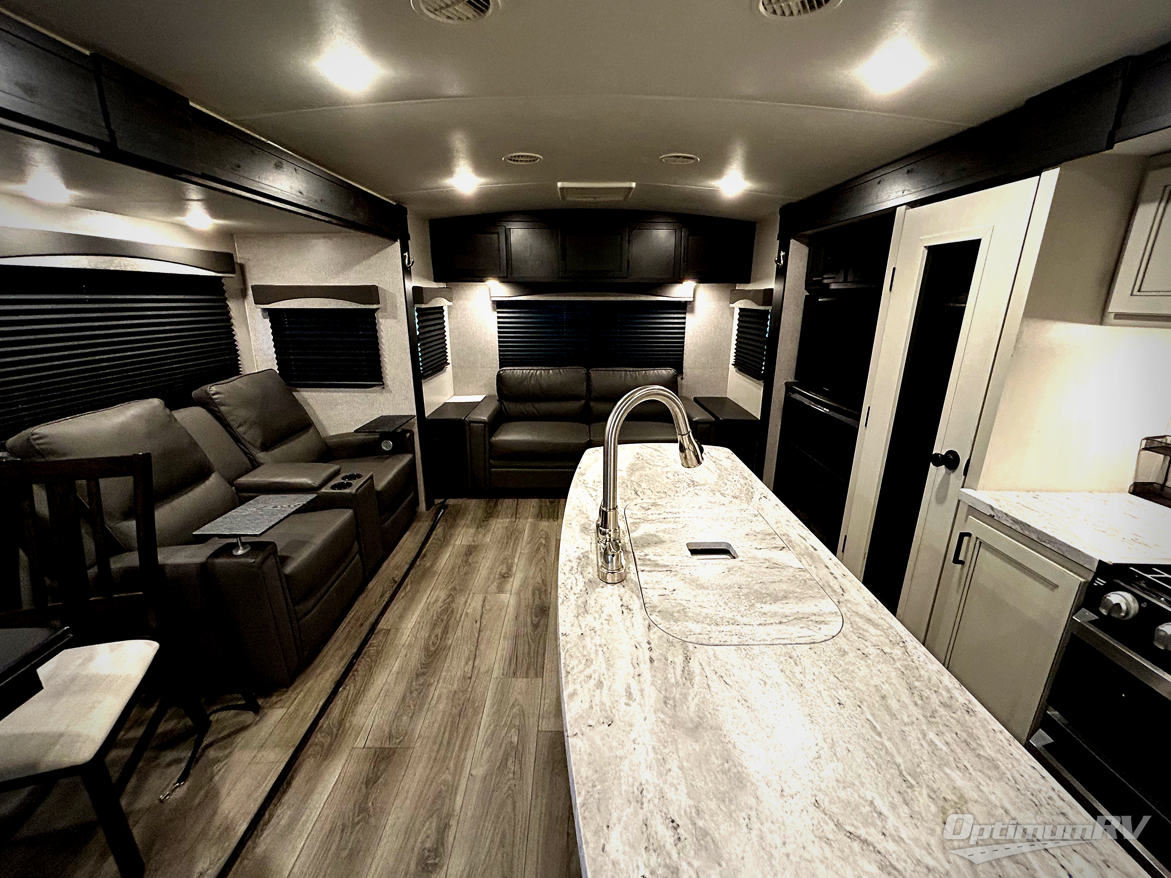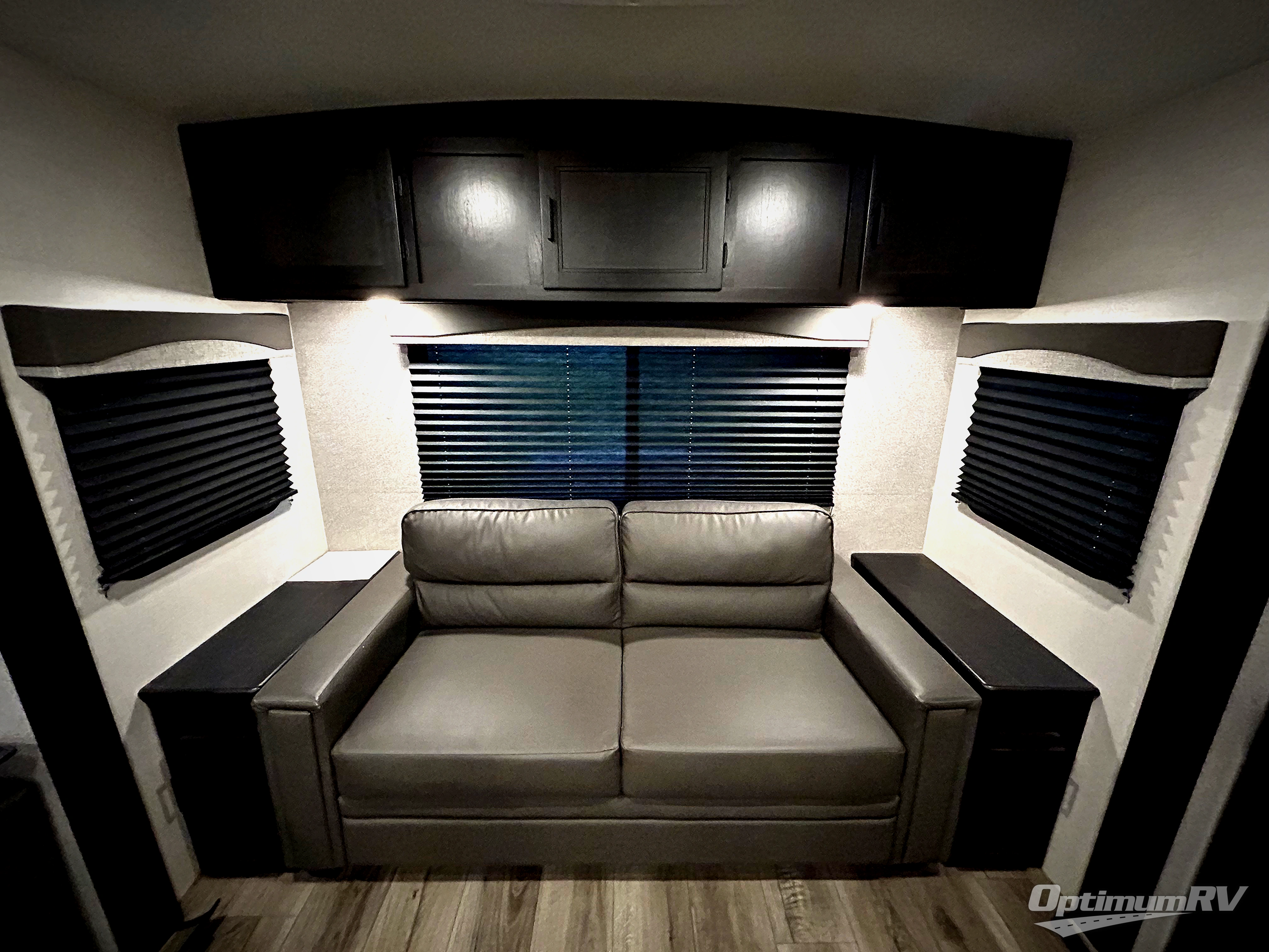 Are you interested in having your own private bedroom, a full bathroom, a fully equipped kitchen, and two power awnings? This Open Range Light travel trailer gives you all of that and more! Up in the bedroom, there is a laundry chute, two bedside closets, and two nightstands, and there is also an additional closet that has been prepped for a washer/dryer. The kitchen has great storage with its hutch, 8-cubic foot refrigerator, and full-size pantry, and the living area provides you with comfortable seating on the tri-fold sofa, theater seating, and booth dinette. You can even sit back, relax, and enjoy a show on the 39" LED HDTV with fireplace beneath.