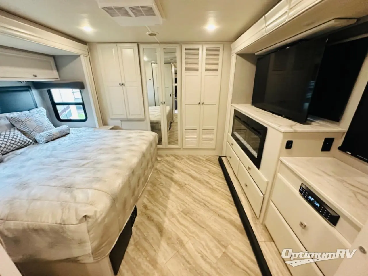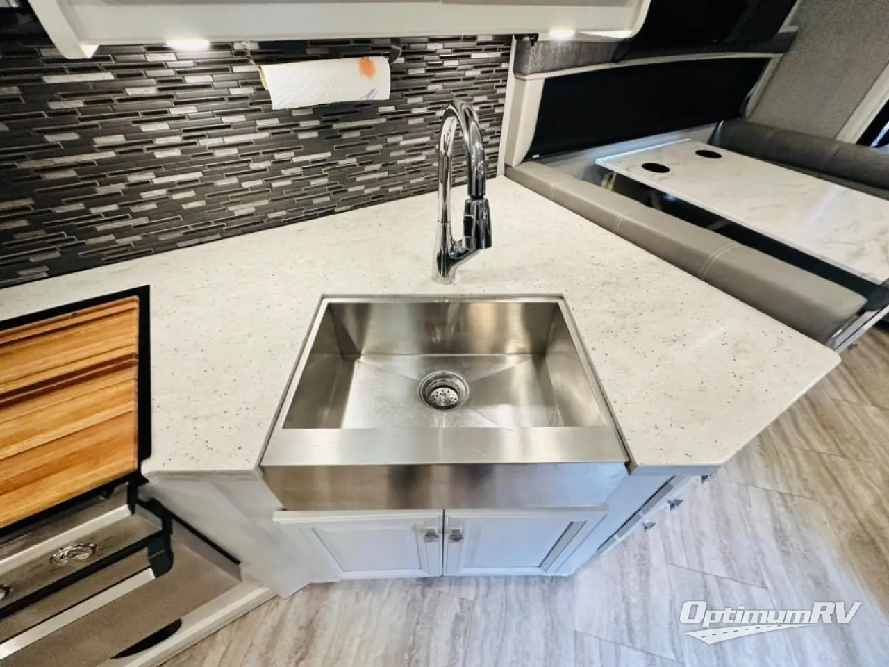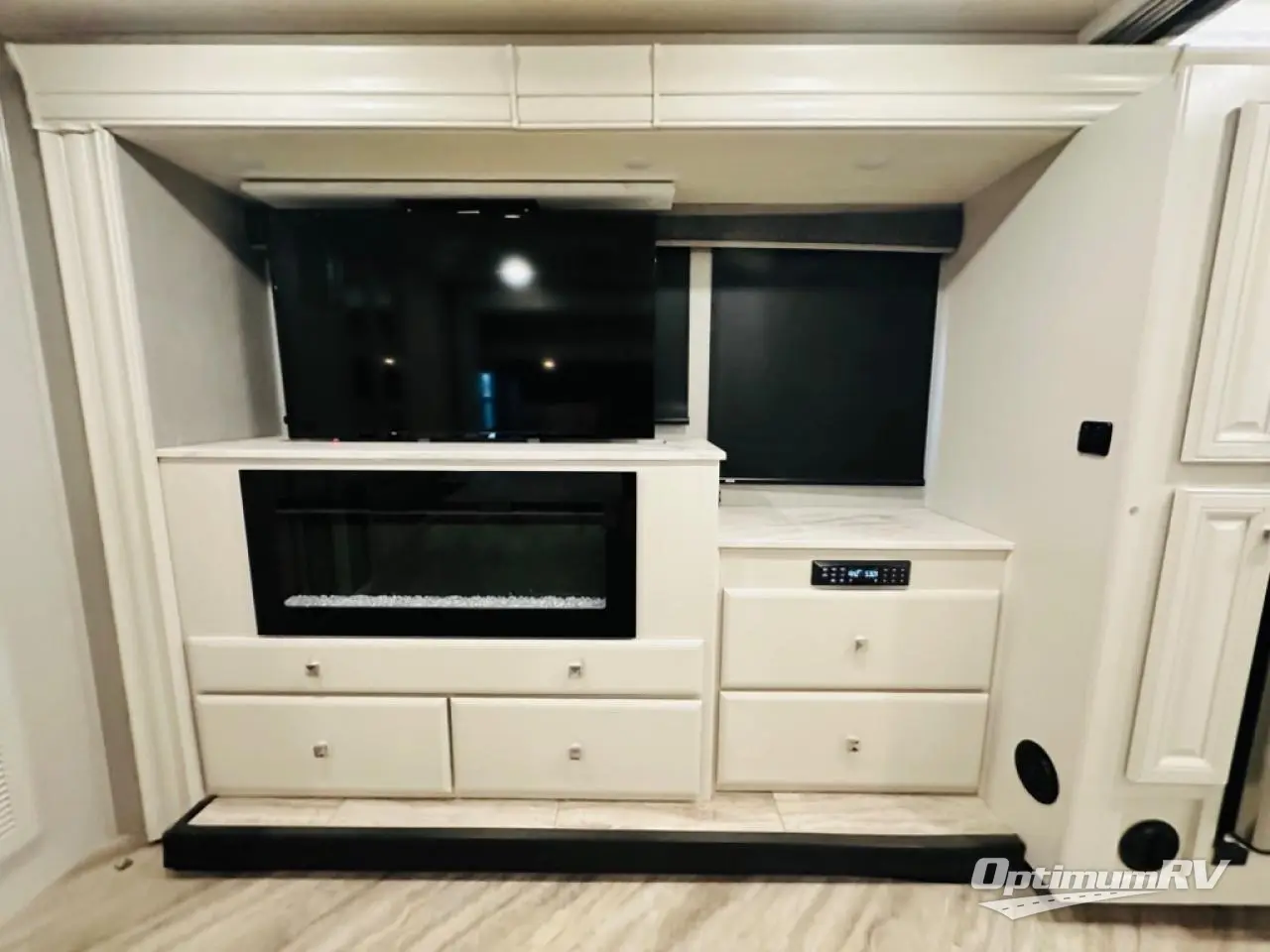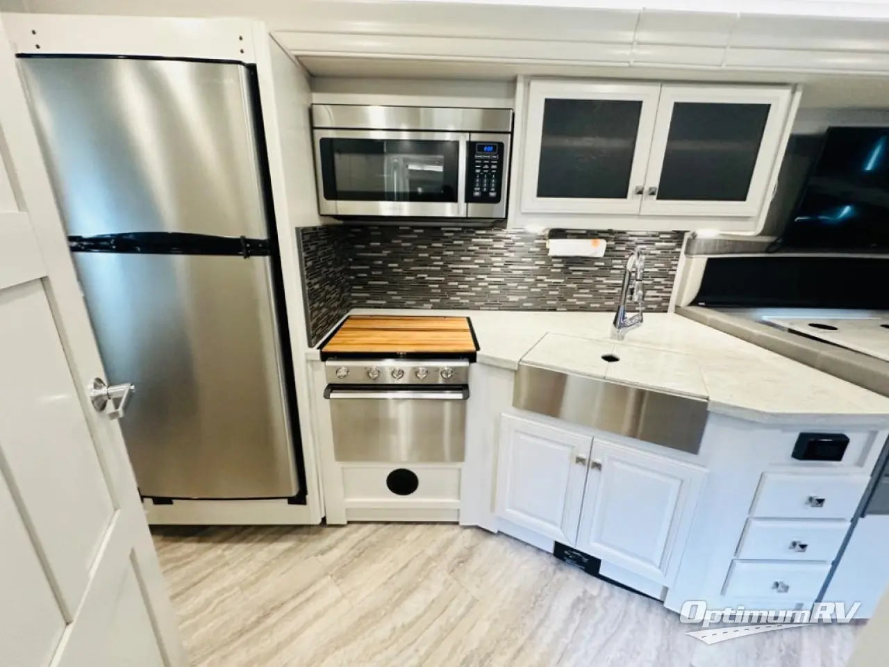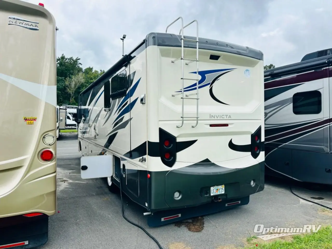 You will certainly have to check out the great class and luxury that comes on this Invicta Class A gas motorhome! This coach is completely full of amazing features, and you will find extra interior living space from the full-wall slide on the driver's side and the RV king bed slide in the rear private bedroom. Creating all of your family's favorite dinnertime meals will be a breeze with the exceptional kitchen amenities, like the stainless steel residential refrigerator, convection microwave, stainless steel farmhouse sink, and three-burner cooktop. And to top it all off, you will have plenty of entertainment choices for your late-night gatherings with the bedroom TV and fireplace, the living room 40" LED Smart TV, and the exterior 50" LED TV.