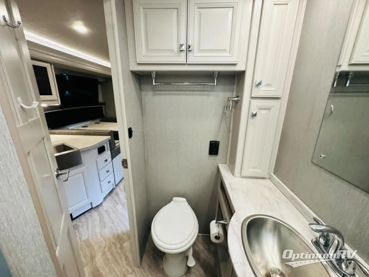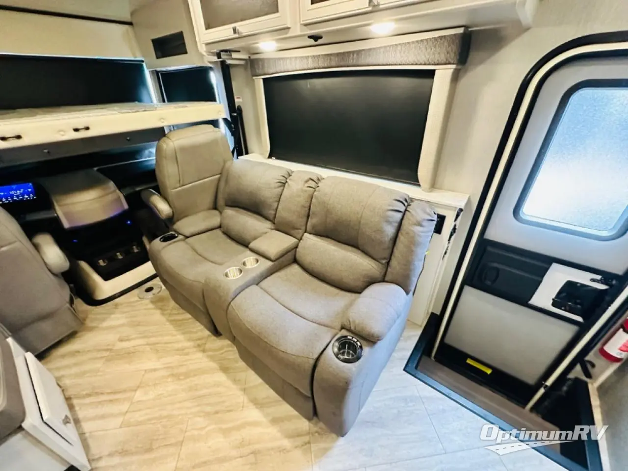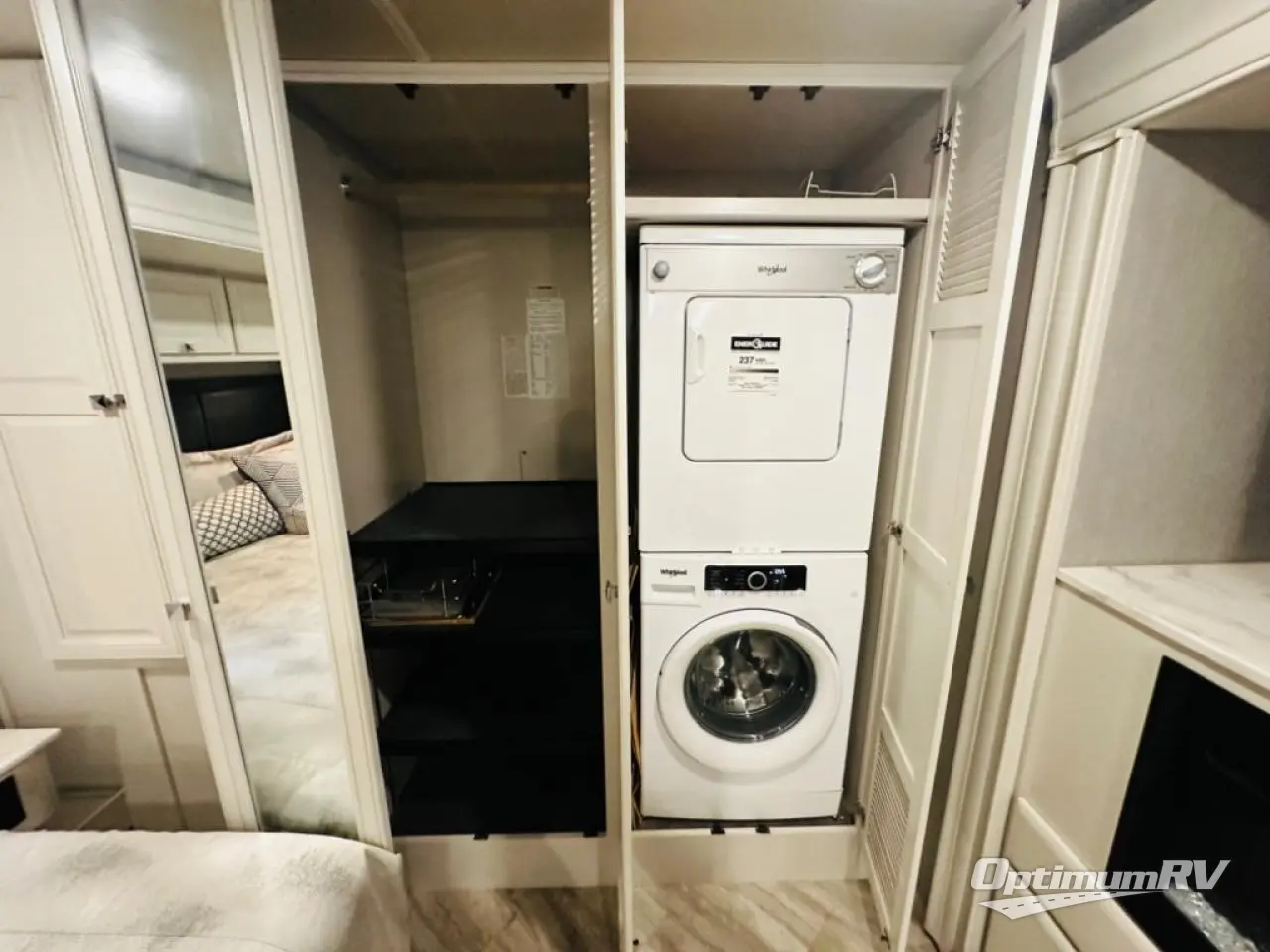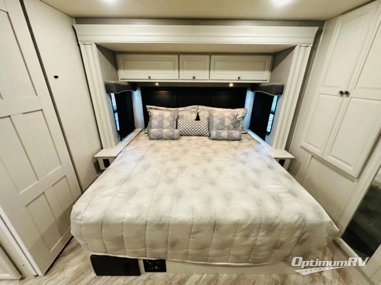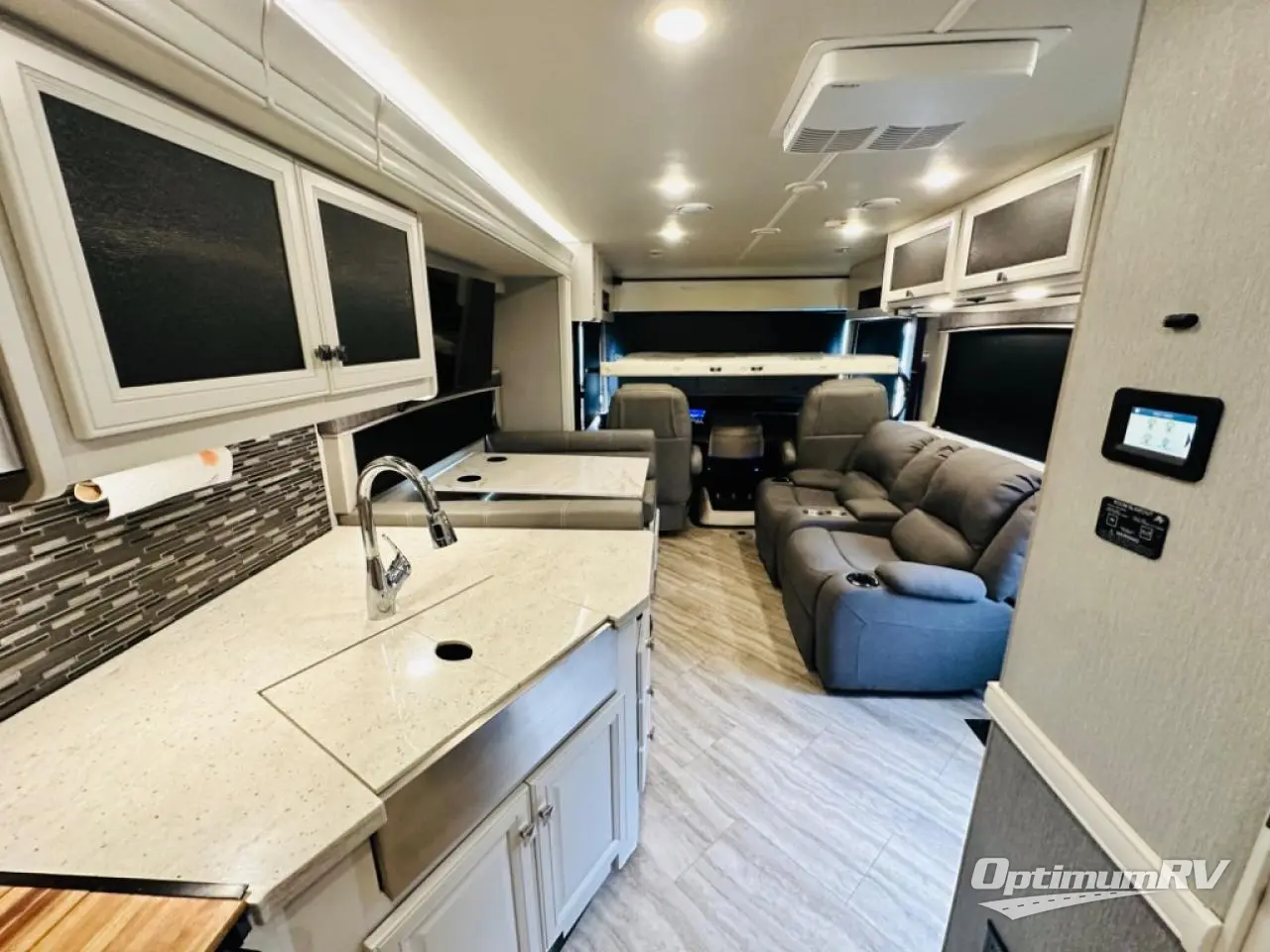 You will certainly have to check out the great class and luxury that comes on this Invicta Class A gas motorhome! This coach is completely full of amazing features, and you will find extra interior living space from the full-wall slide on the driver's side and the RV king bed slide in the rear private bedroom. Creating all of your family's favorite dinnertime meals will be a breeze with the exceptional kitchen amenities, like the stainless steel residential refrigerator, convection microwave, stainless steel farmhouse sink, and three-burner cooktop. And to top it all off, you will have plenty of entertainment choices for your late-night gatherings with the bedroom TV and fireplace, the living room 40" LED Smart TV, and the exterior 50" LED TV.