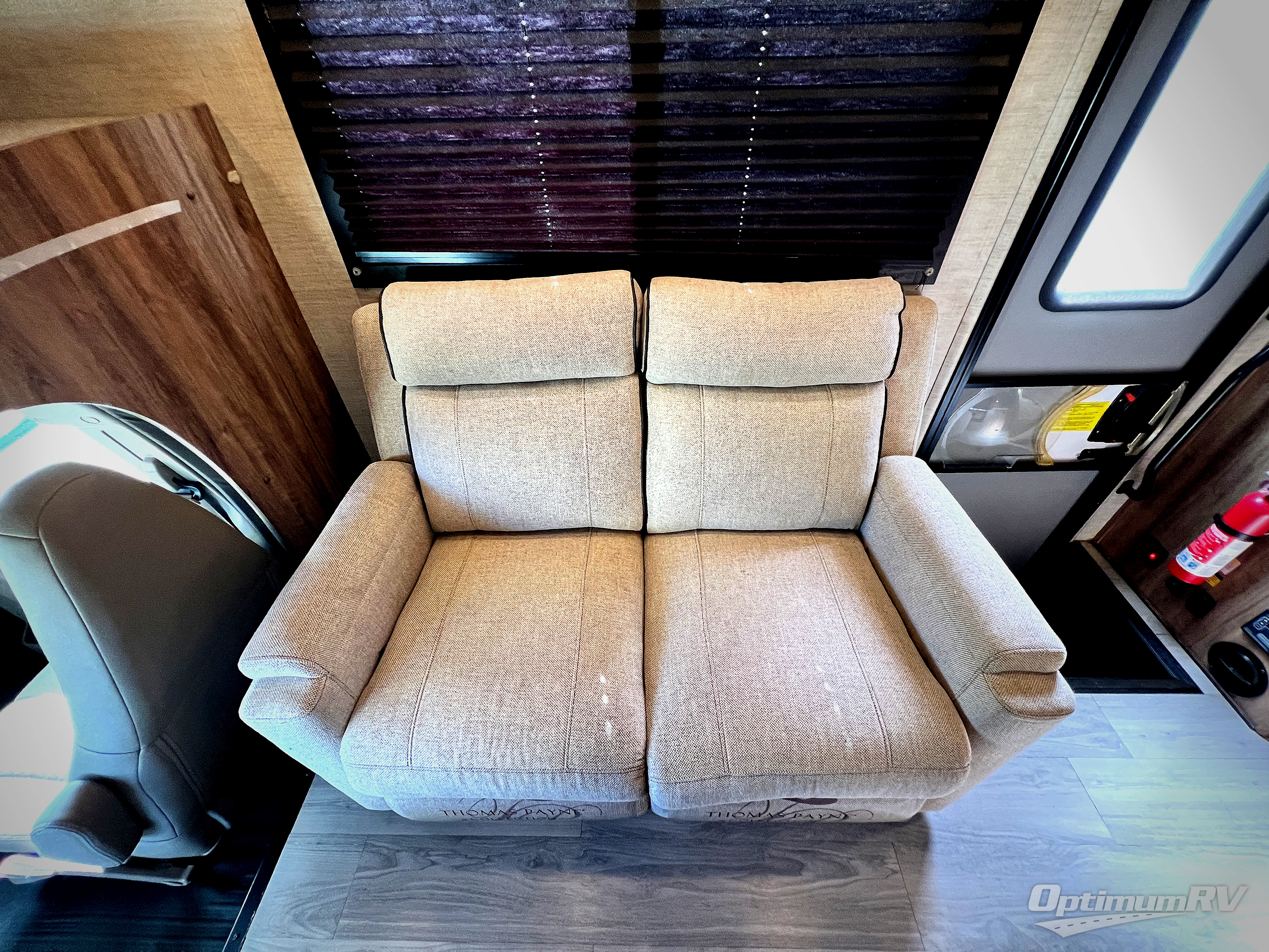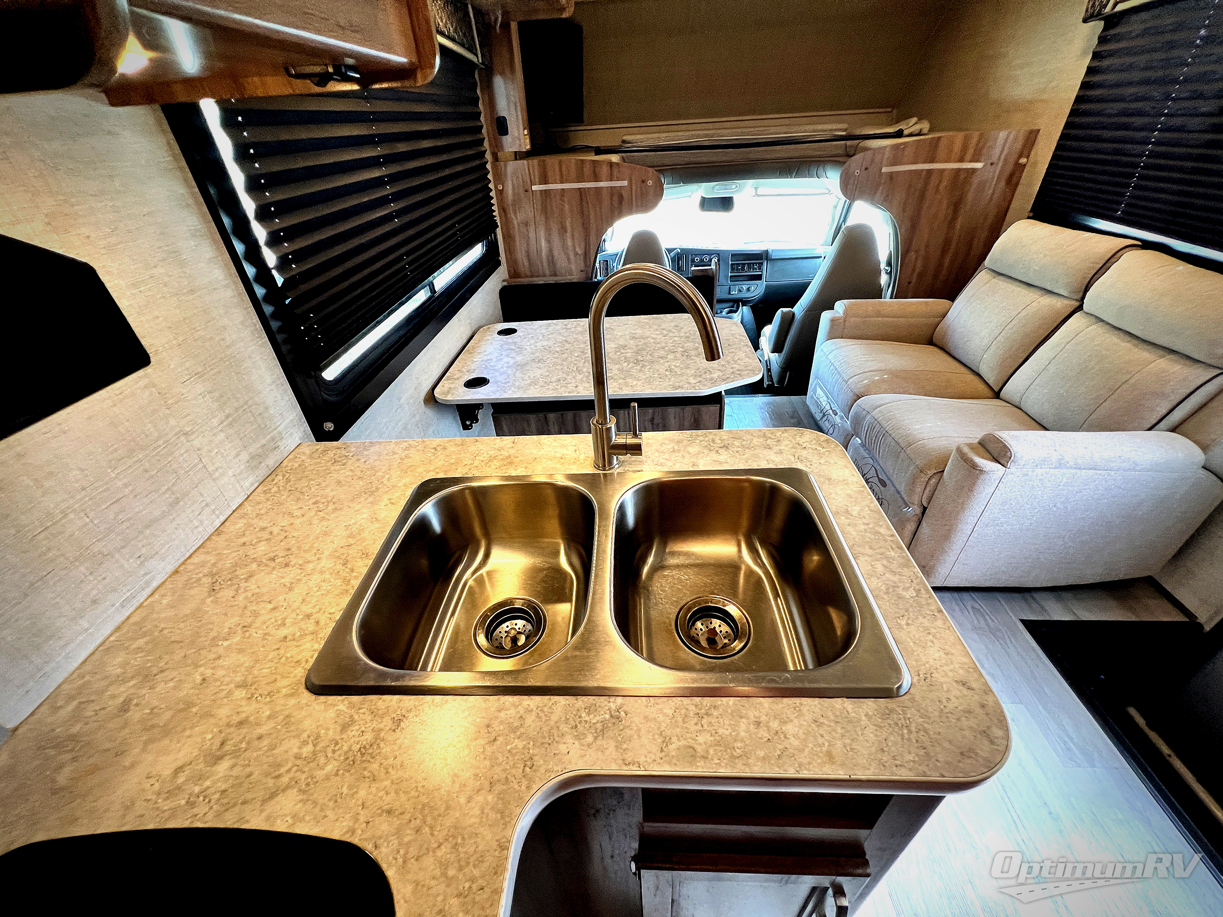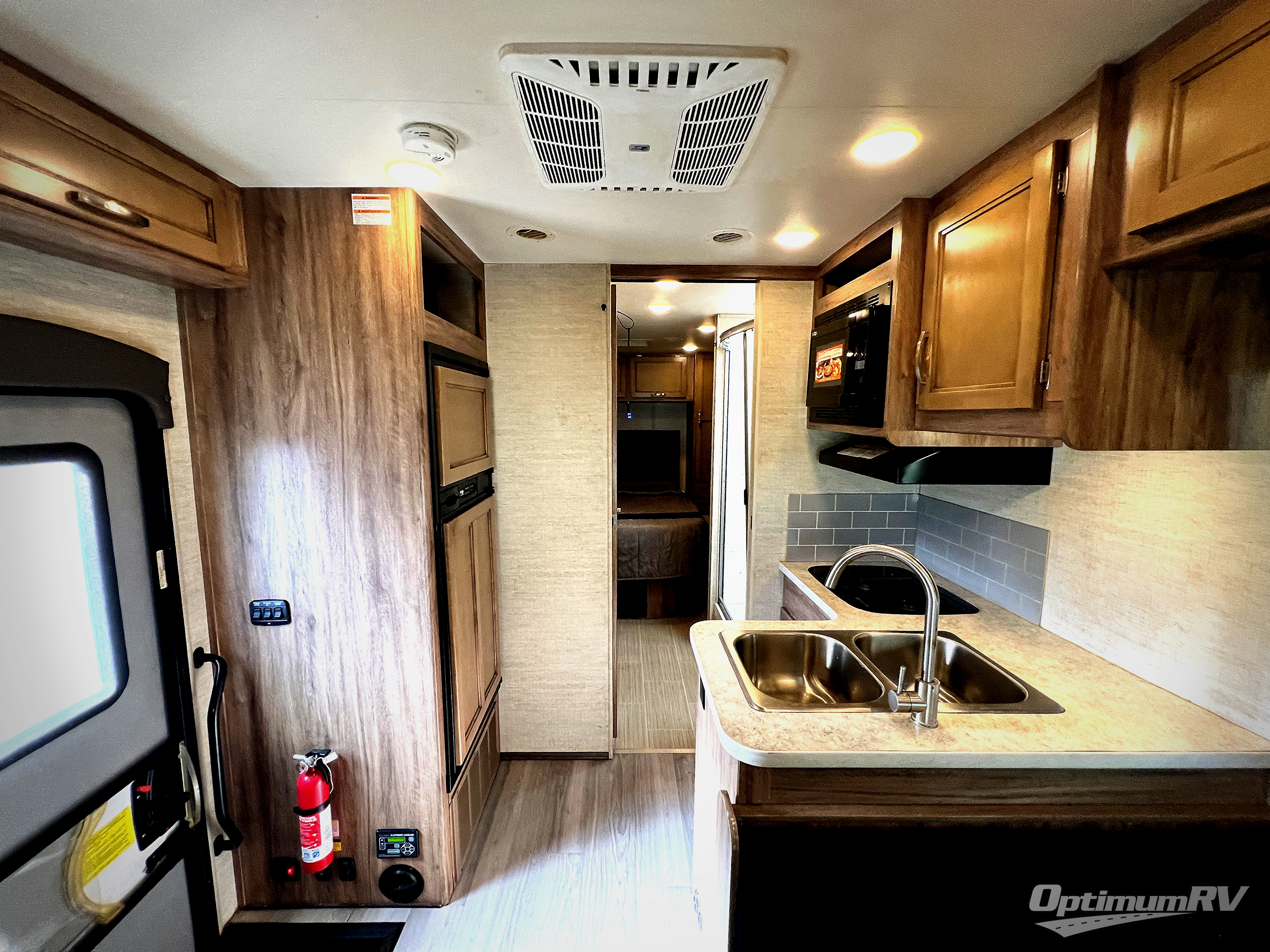 This motorhome will feel just like home with its private bedroom and walk-around queen bed. The independent shower is right across from the private toilet and sink so you and your spouse can both freshen up at the same time. Bring the grandkids along and let them sleep on the overhead bunk that has a 750 lb. capacity. There is also a booth dinette and a sofa that can be converted to sleeping space. Preparing meals each day will be a snap with the two burner cooktop, the convection microwave, plus there is a 6 cu. ft. flush-mount refrigerator to store your perishables.