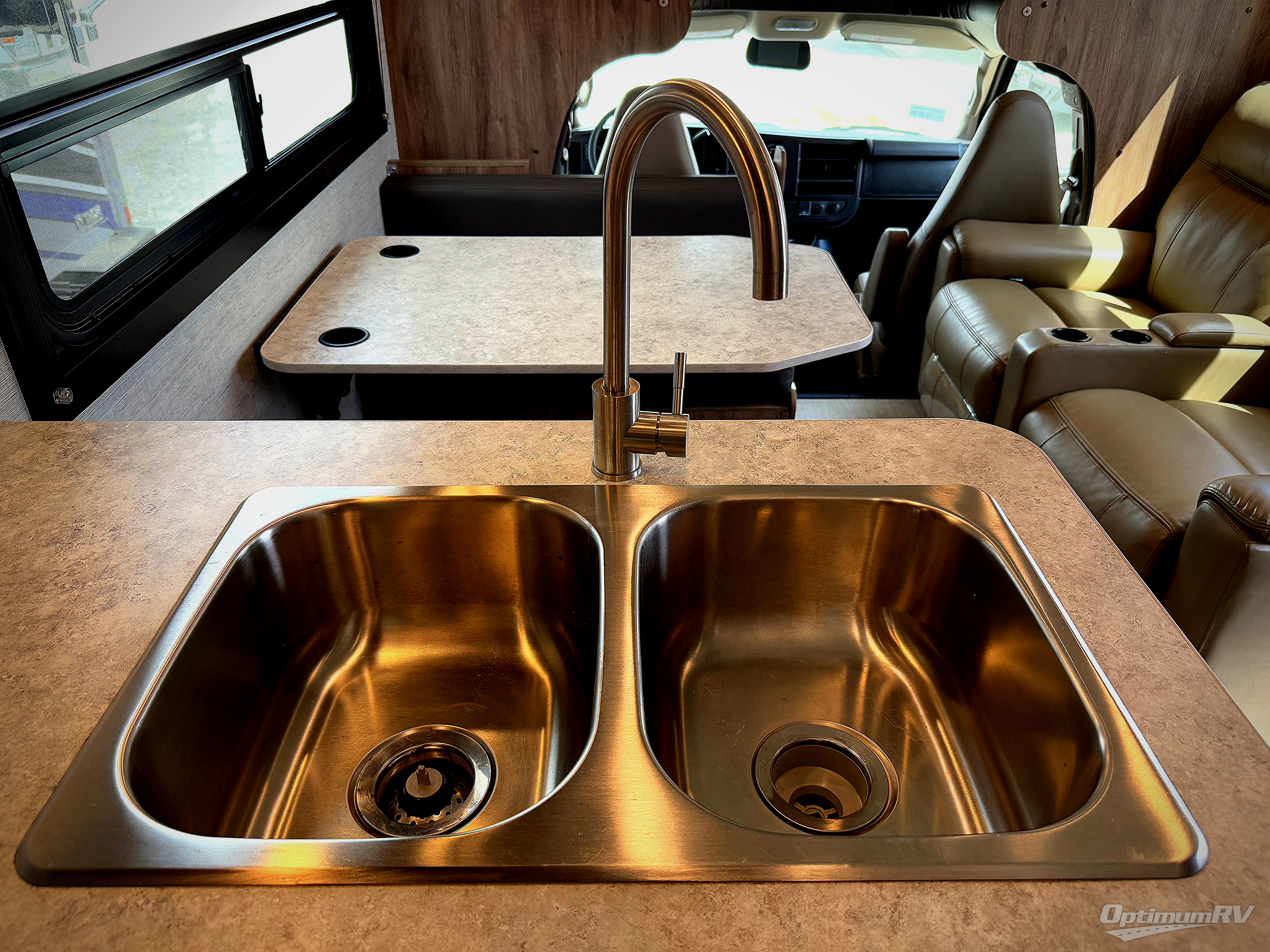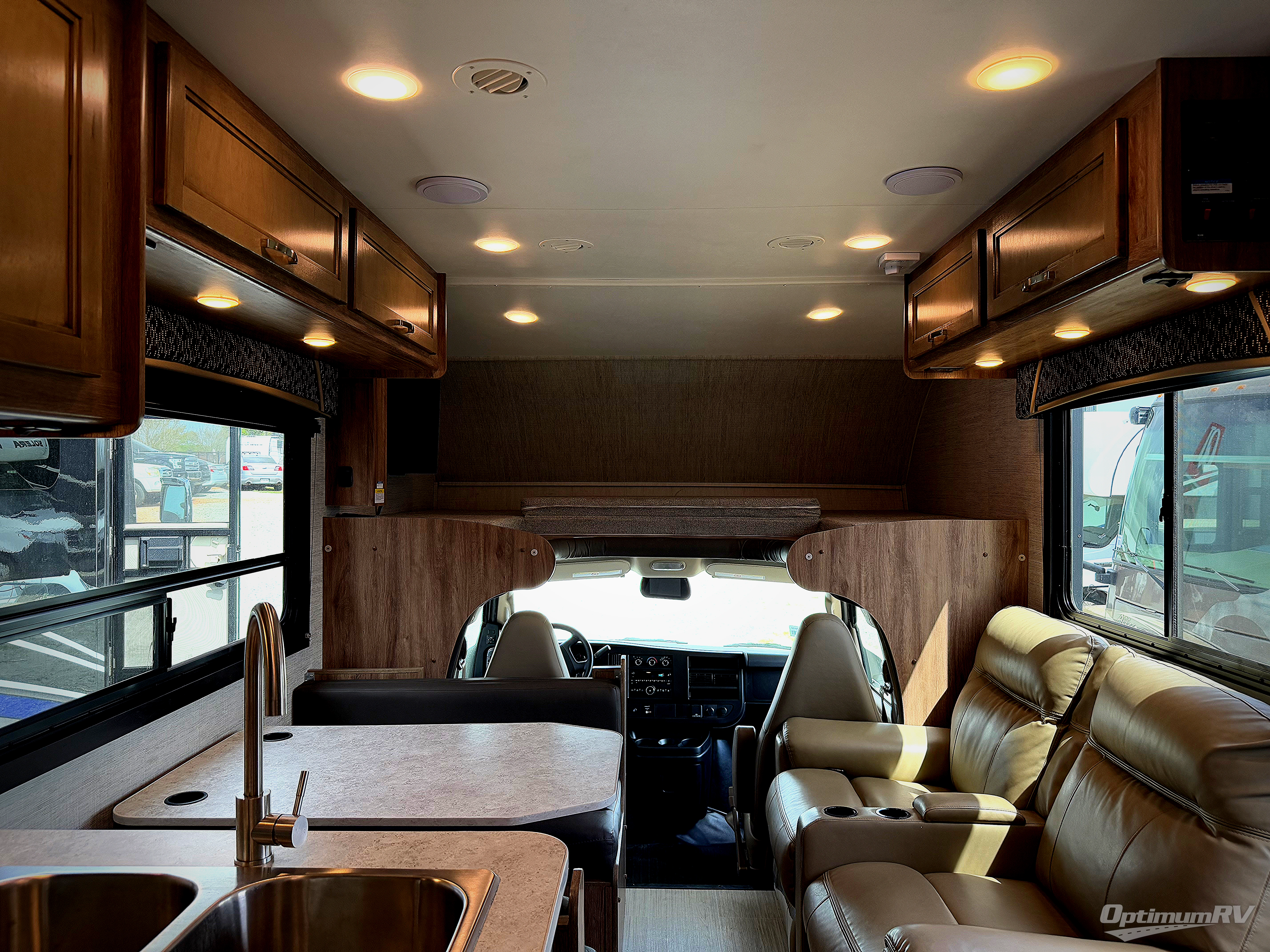 This motorhome will feel just like home with its private bedroom and walk-around queen bed. The independent shower is right across from the private toilet and sink so you and your spouse can both freshen up at the same time. Bring the grandkids along and let them sleep on the overhead bunk that has a 750 lb. capacity. There is also a booth dinette and a sofa that can be converted to sleeping space. Preparing meals each day will be a snap with the two burner cooktop, the convection microwave, plus there is a 6 cu. ft. flush-mount refrigerator to store your perishables.