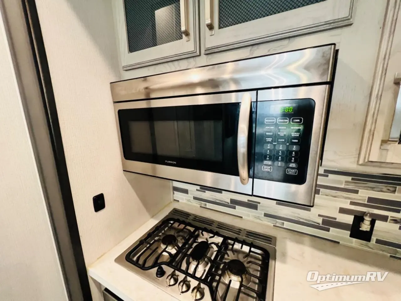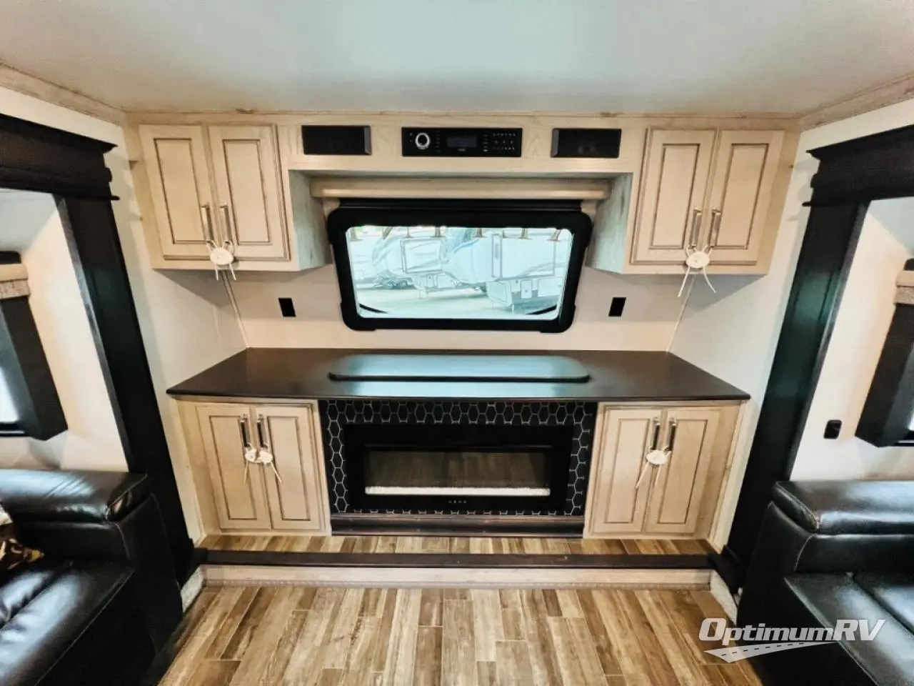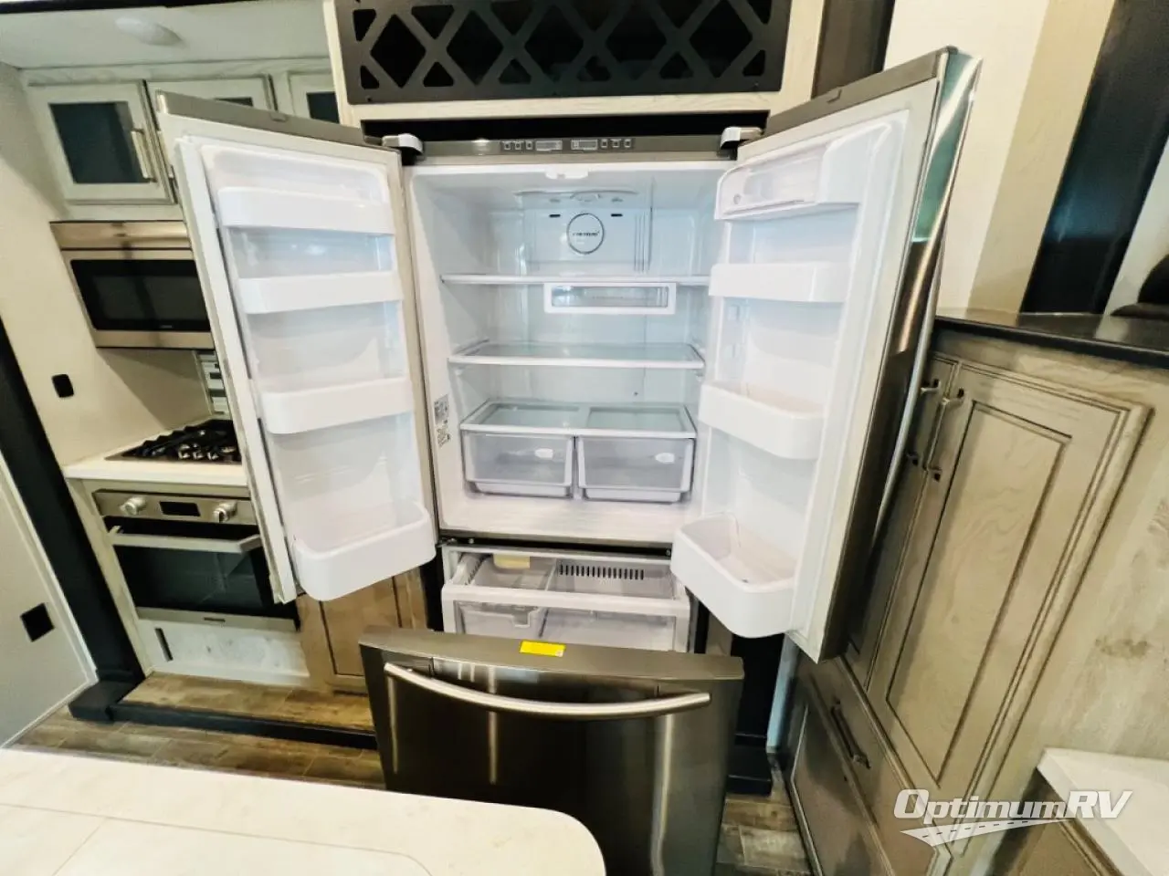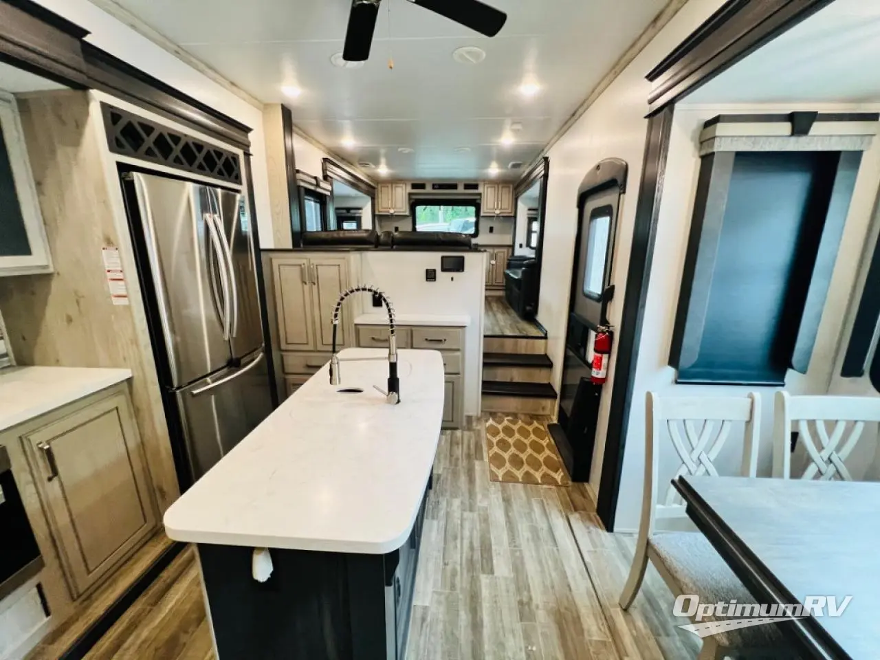 When you choose an Alpine fifth wheel by Keystone RV, you are choosing luxury, innovation, modern style and so much more! The stunning Aspen Oak cabinetry with contrasting Renewed Oak accents and vintage wire mesh glass inserts, the polished natural stone solid surface countertops, and the varied plank width resilient flooring throughout are just a few highlights inside. Some other noteworthy features include the high-fidelity video and audio to withstand road vibration with three, separately controlled sound zones with smartphone app capability, and the iN-Command system with oversized touchscreen monitor giving you control of the slides, awnings, and HVAC. Each Alpine is built with 100" wide body construction, a dual 15,000 BTU Whisper Quiet A/C system, a Nautilus On-Demand water heater for instant, endless hot water, and insulated wrapped tanks with 12 volt heat pads allowing you to travel every season.