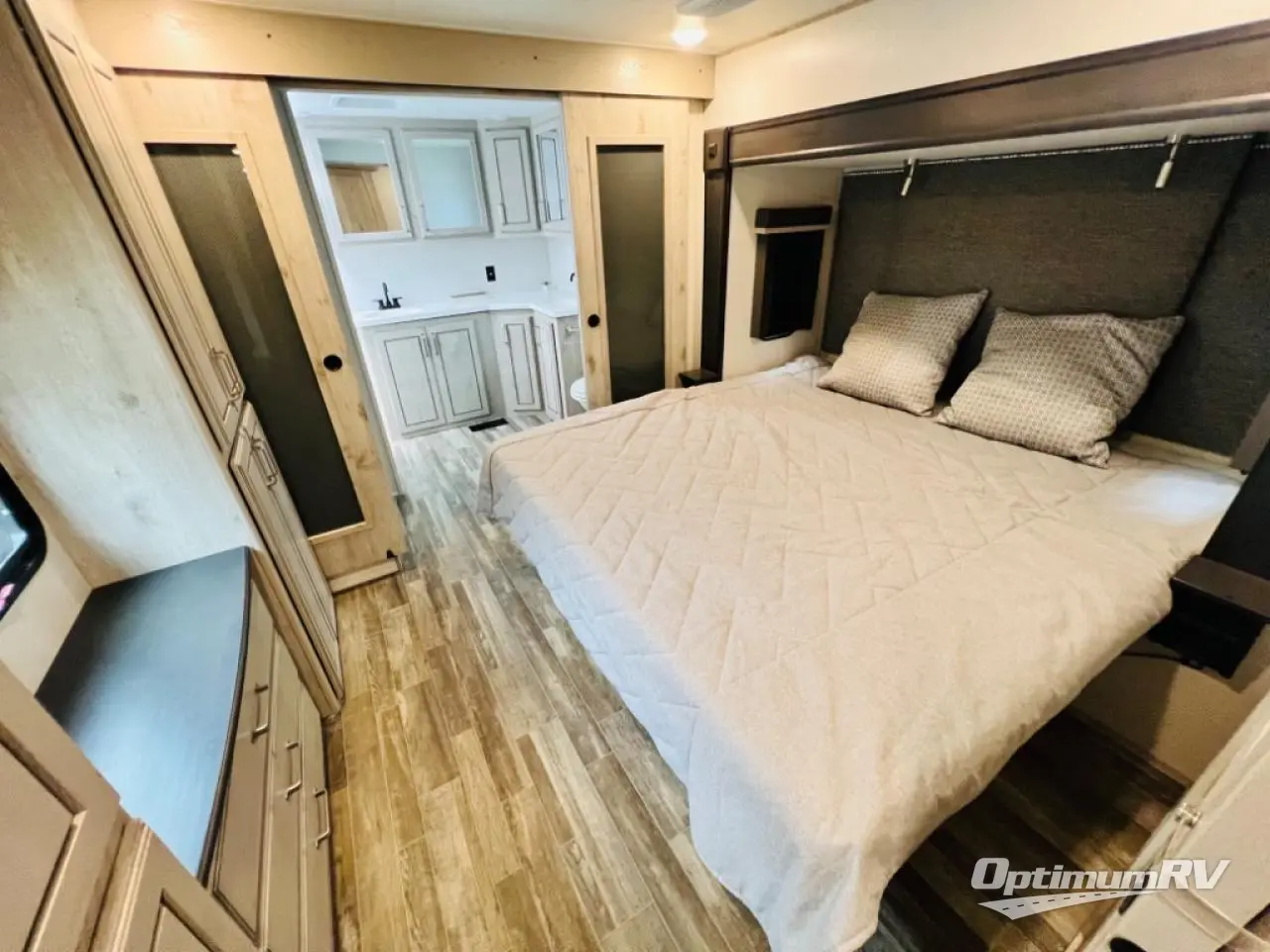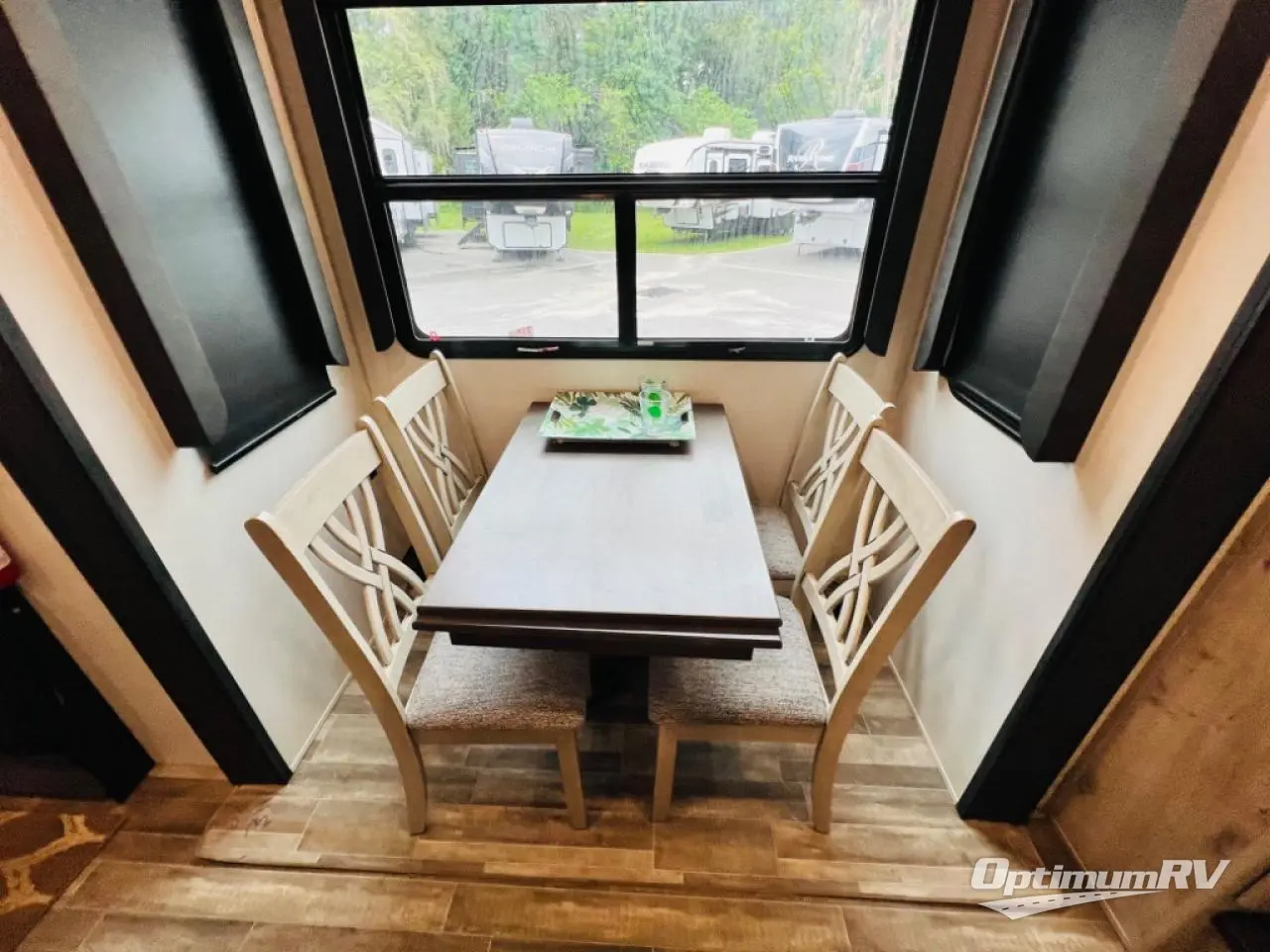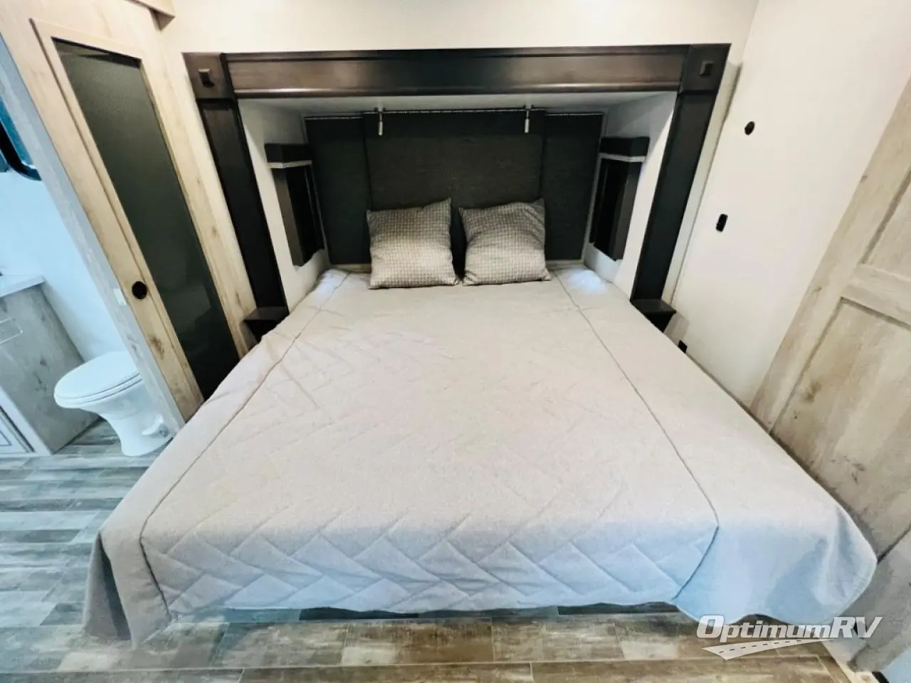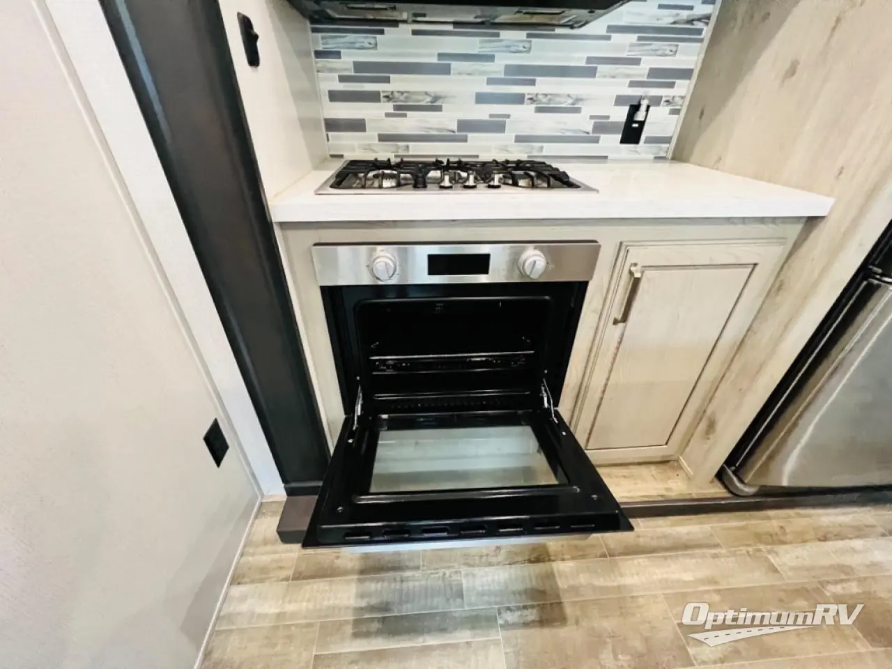 When you choose an Alpine fifth wheel by Keystone RV, you are choosing luxury, innovation, modern style and so much more! The stunning Aspen Oak cabinetry with contrasting Renewed Oak accents and vintage wire mesh glass inserts, the polished natural stone solid surface countertops, and the varied plank width resilient flooring throughout are just a few highlights inside. Some other noteworthy features include the high-fidelity video and audio to withstand road vibration with three, separately controlled sound zones with smartphone app capability, and the iN-Command system with oversized touchscreen monitor giving you control of the slides, awnings, and HVAC. Each Alpine is built with 100" wide body construction, a dual 15,000 BTU Whisper Quiet A/C system, a Nautilus On-Demand water heater for instant, endless hot water, and insulated wrapped tanks with 12 volt heat pads allowing you to travel every season.