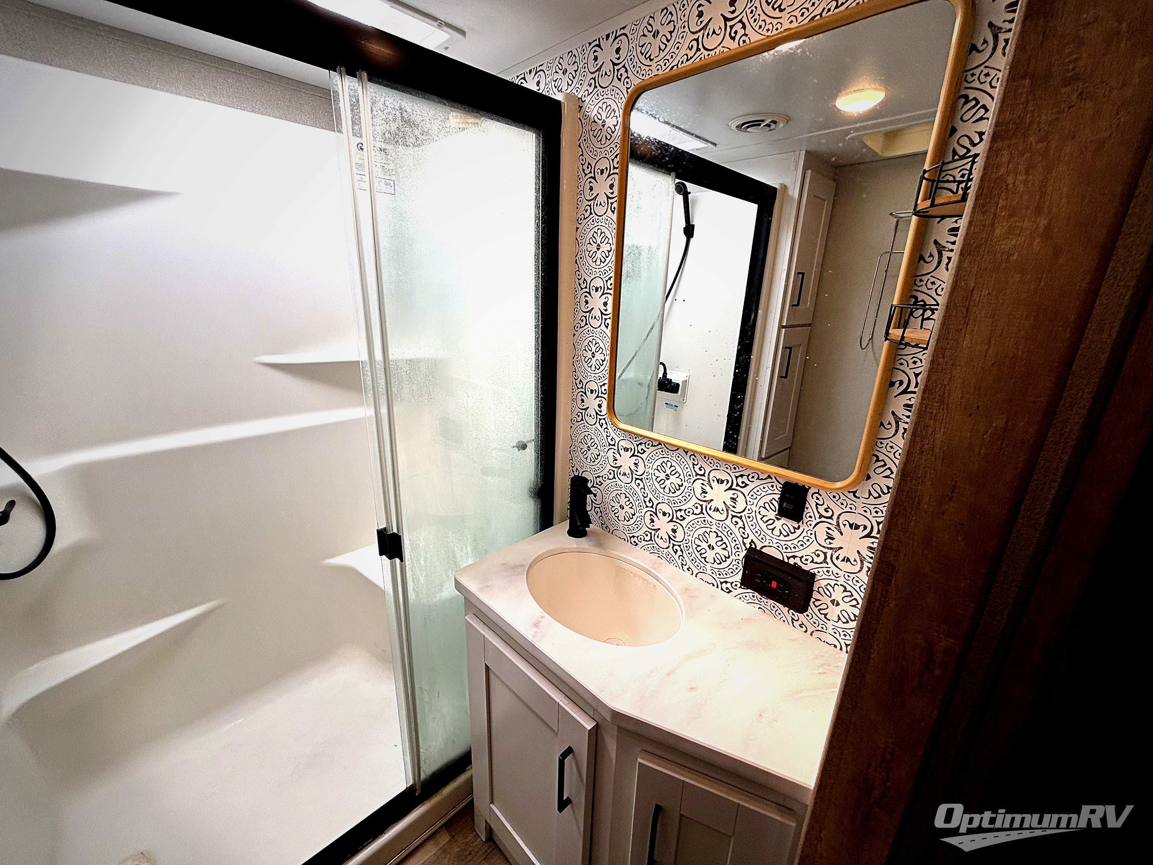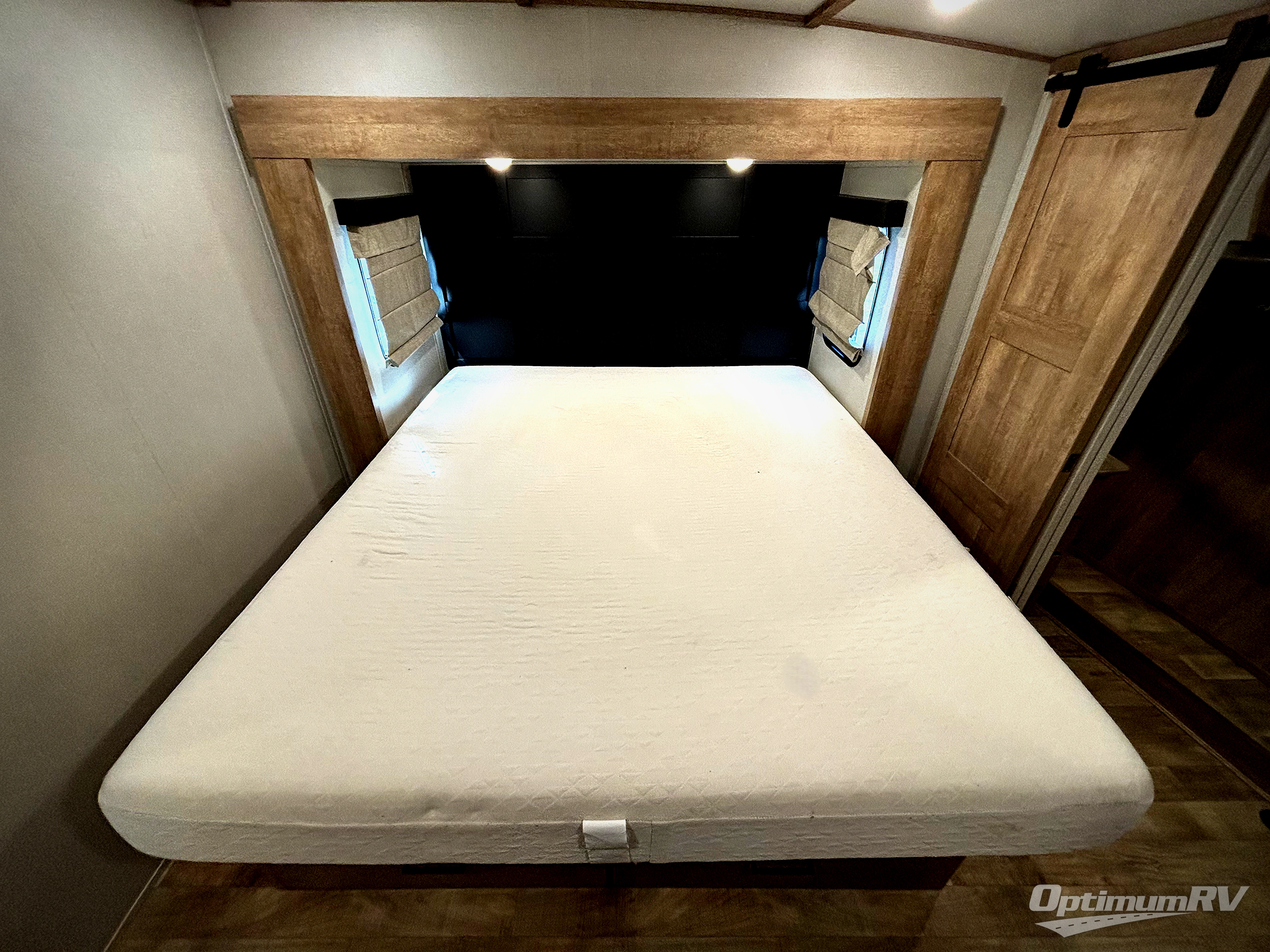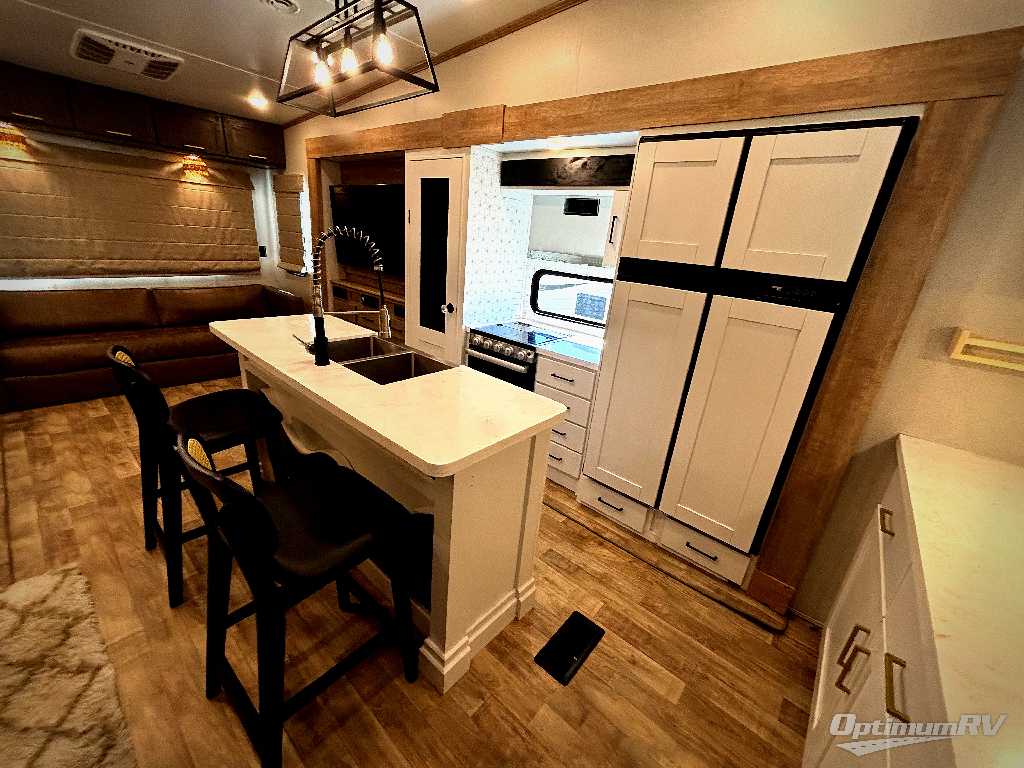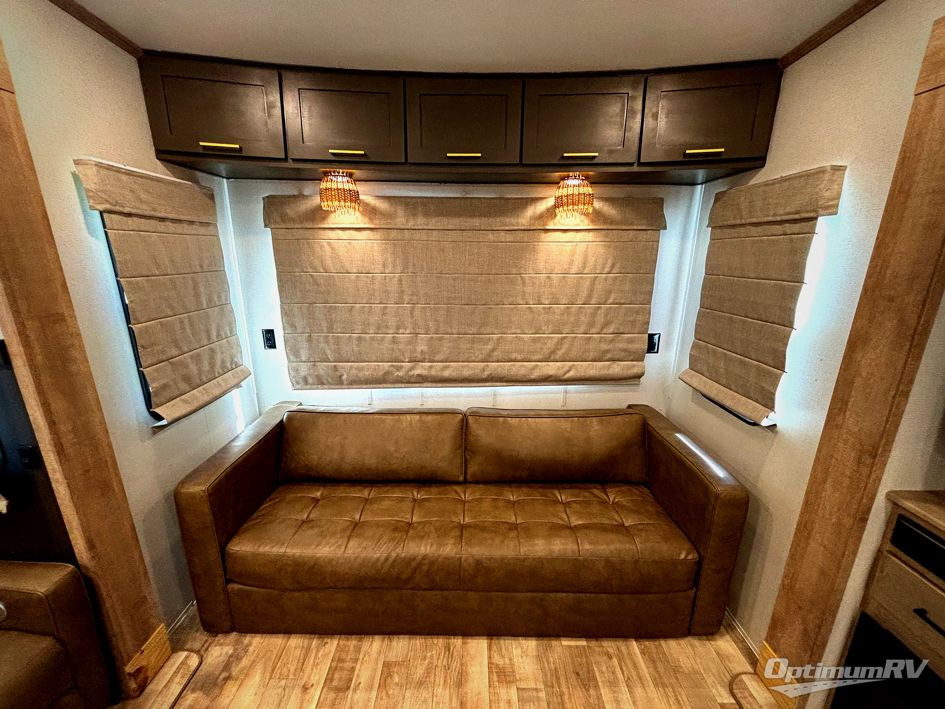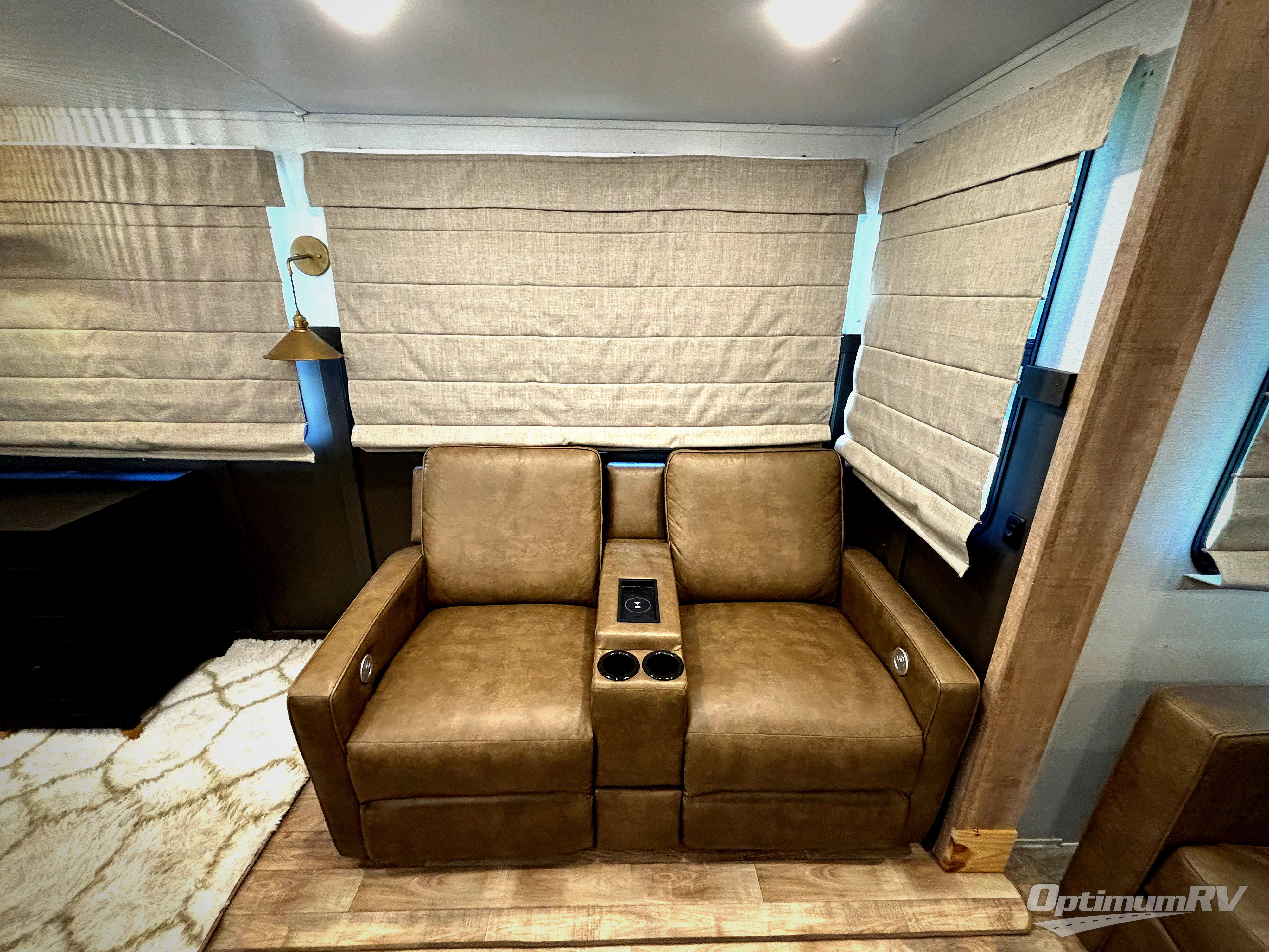 This Arcadia fifth wheel is going to change everything about the way that you travel! This unit has an amazing amount of storage space with the hidden storage behind the 55" TV in the living area, the under-bed storage in the bedroom, and the wrap-around shelving in the walk-in closet. Plus, there are quite a few places where you can sit down and relax with the tri-fold sleeper sofa, the theater seating, the free-standing table with chairs, the bar stools at the flip-up eating bar on the kitchen island, and the bench seat across from the California king bed up in the private bedroom. Additionally, you will also enjoy the spacious 48" x 30" shower in the bathroom for staying clean.