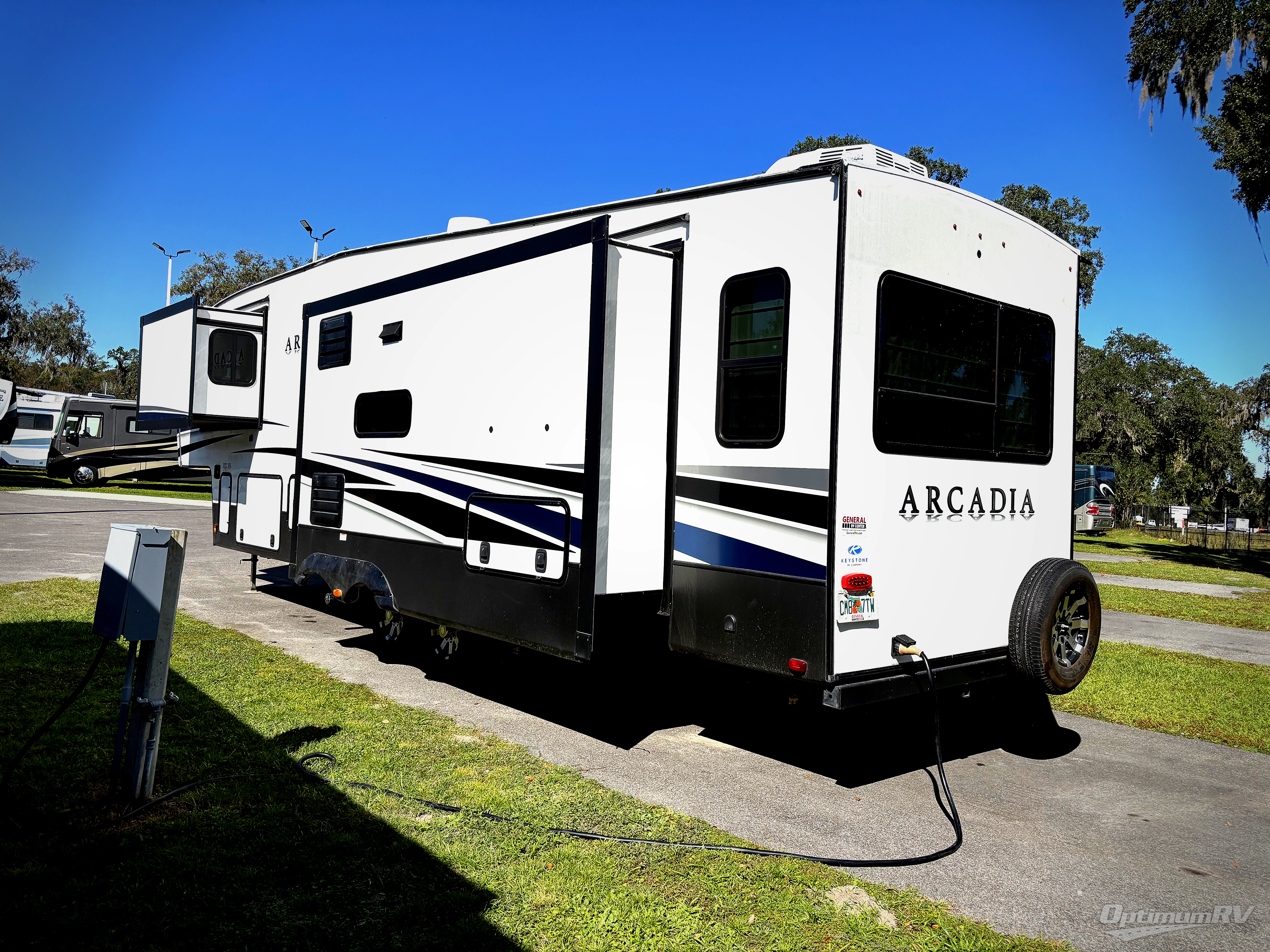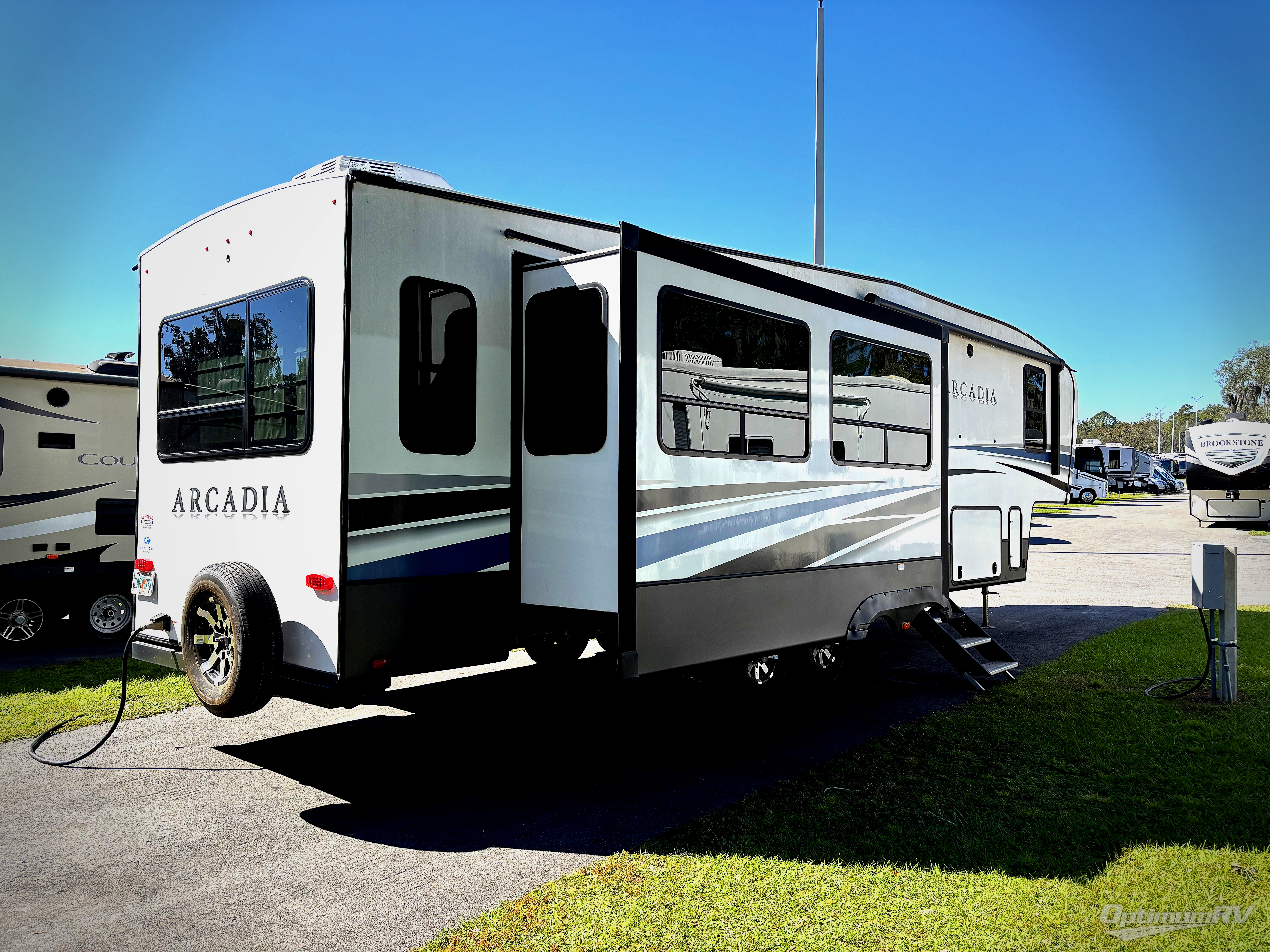 The Keystone Arcadia is a premium brand of fifth wheels and travel trailers that offers you a deluxe assortment of features! Some of these features are exclusive to Keystone, like the HyperDeck RV floor, the residential in-floor heating ducts, the 12V color-coded wiring, and the preparations for 4G LTE and Wi-Fi. Some of the other aspects of the Arcadia that you'll fall in love with are the designer vinyl flooring, flush-floor slides, fireplace with remote, and the Peak Seasonal Camping Package. The Arcadia has been constructed with a Next-Generation Crawlspace chassis, Curt equalized suspension, a Ground Control™ 3.0 auto-leveling system, and a Trunk™ pass-through storage with large clutter-free capacity.