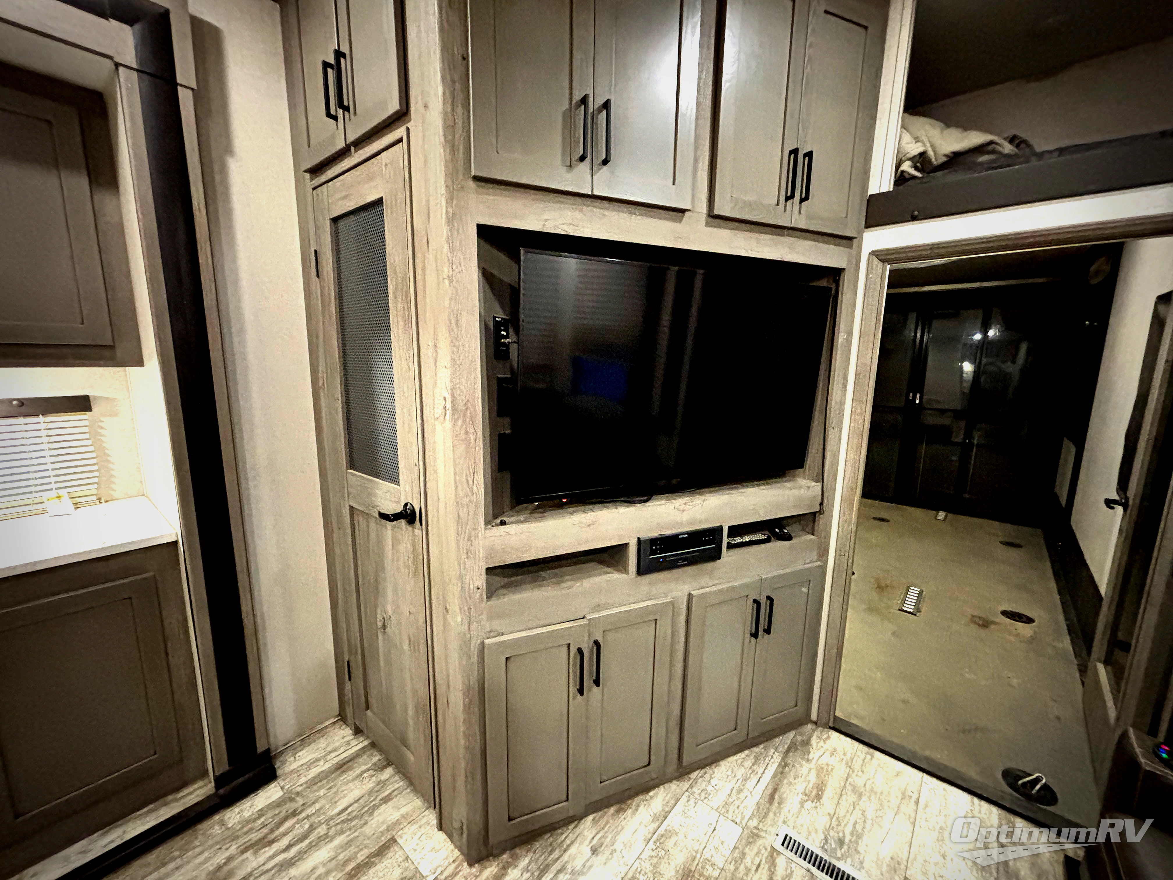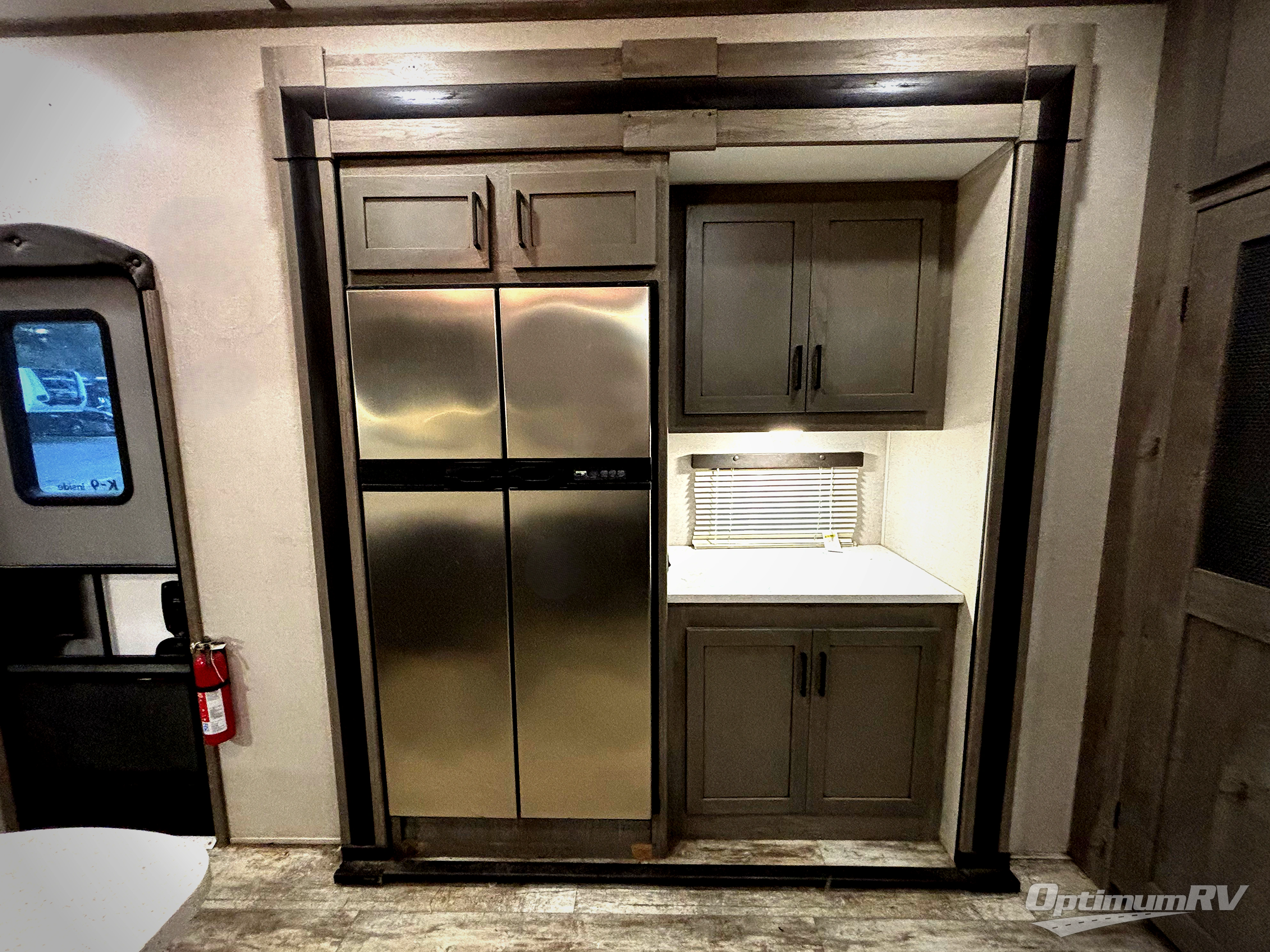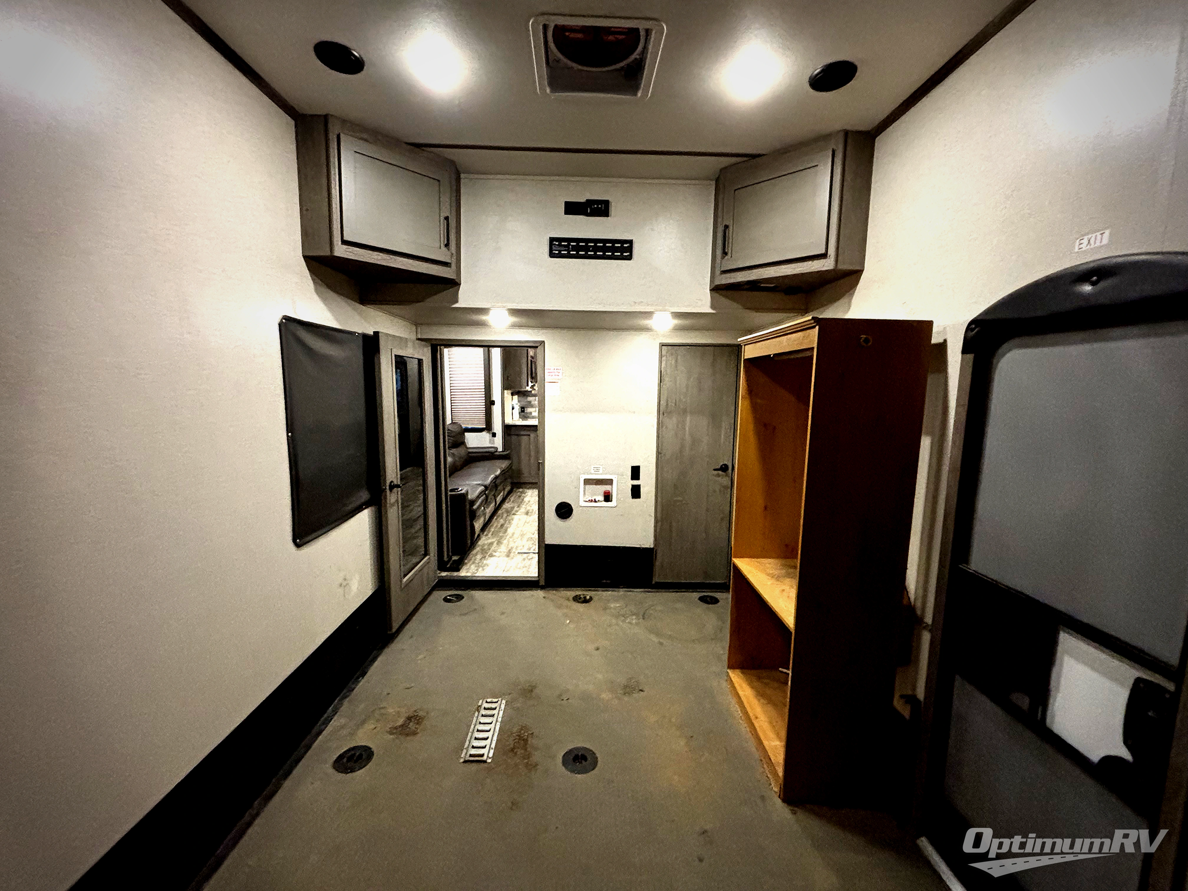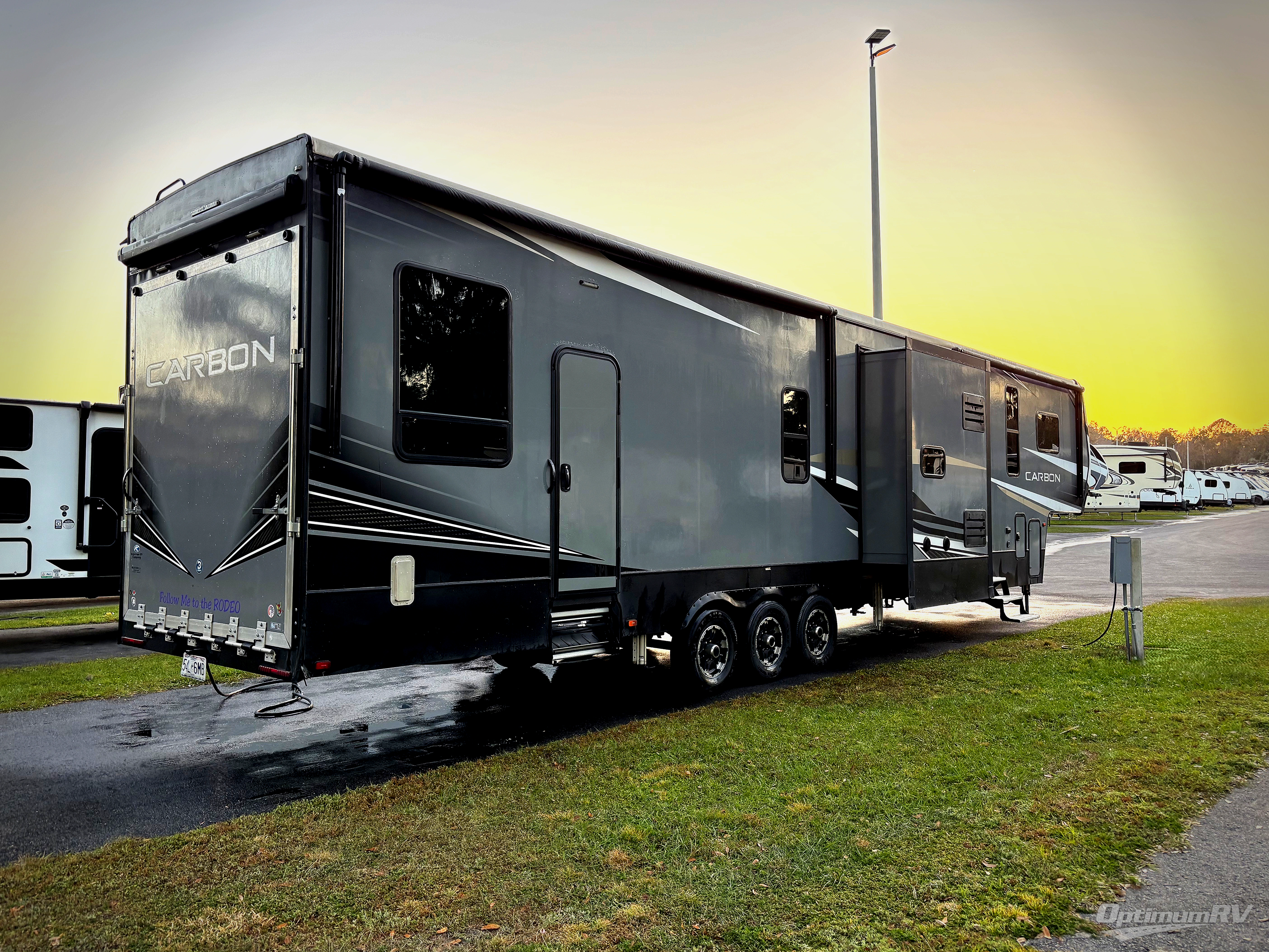 This toy hauler is the very best of the Carbon line-up! With its huge 15' separate garage, you have the space you need to bring along oversized side-by-sides, and the 30-gallon fuel tank will give you the ability to keep those toys ready to go. Not only is the garage big enough to haul your equipment, but it is also accommodating enough to provide you with a guest suite. The electric bunk, dual opposing sofas, loft with twin bed, and half bathroom are what turn the garage into a desirable sleeping location, and since the garage also contains one of the two entry doors, you can even come and go as you please. But the luxury doesn't stop there! Within the main living area, you will find a four-seat recliner sofa that rests on a slide out so that it doesn't clutter the walkway, and up at the front of this unit is a private bedroom that has a wireless phone charger on the bedside nightstand.