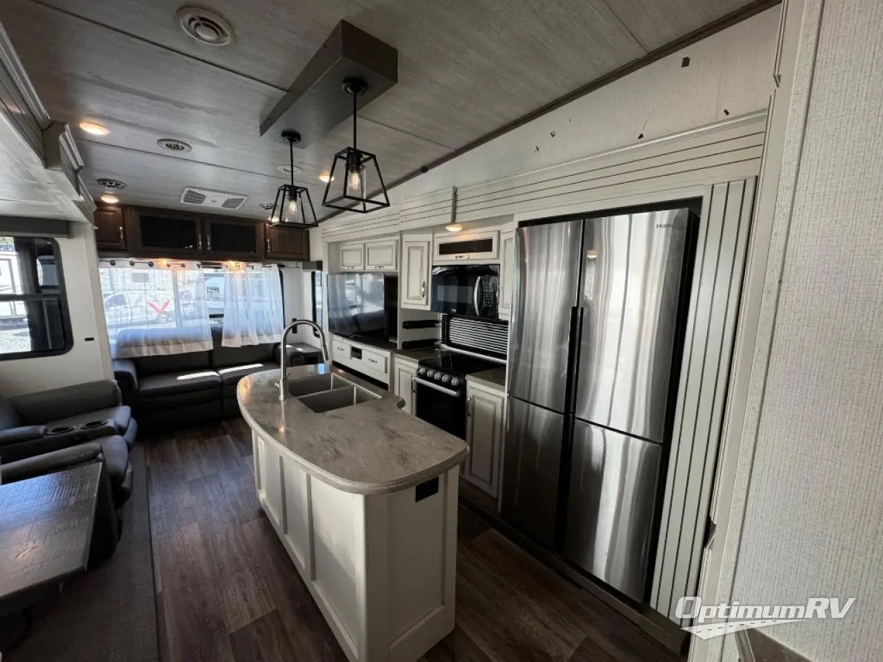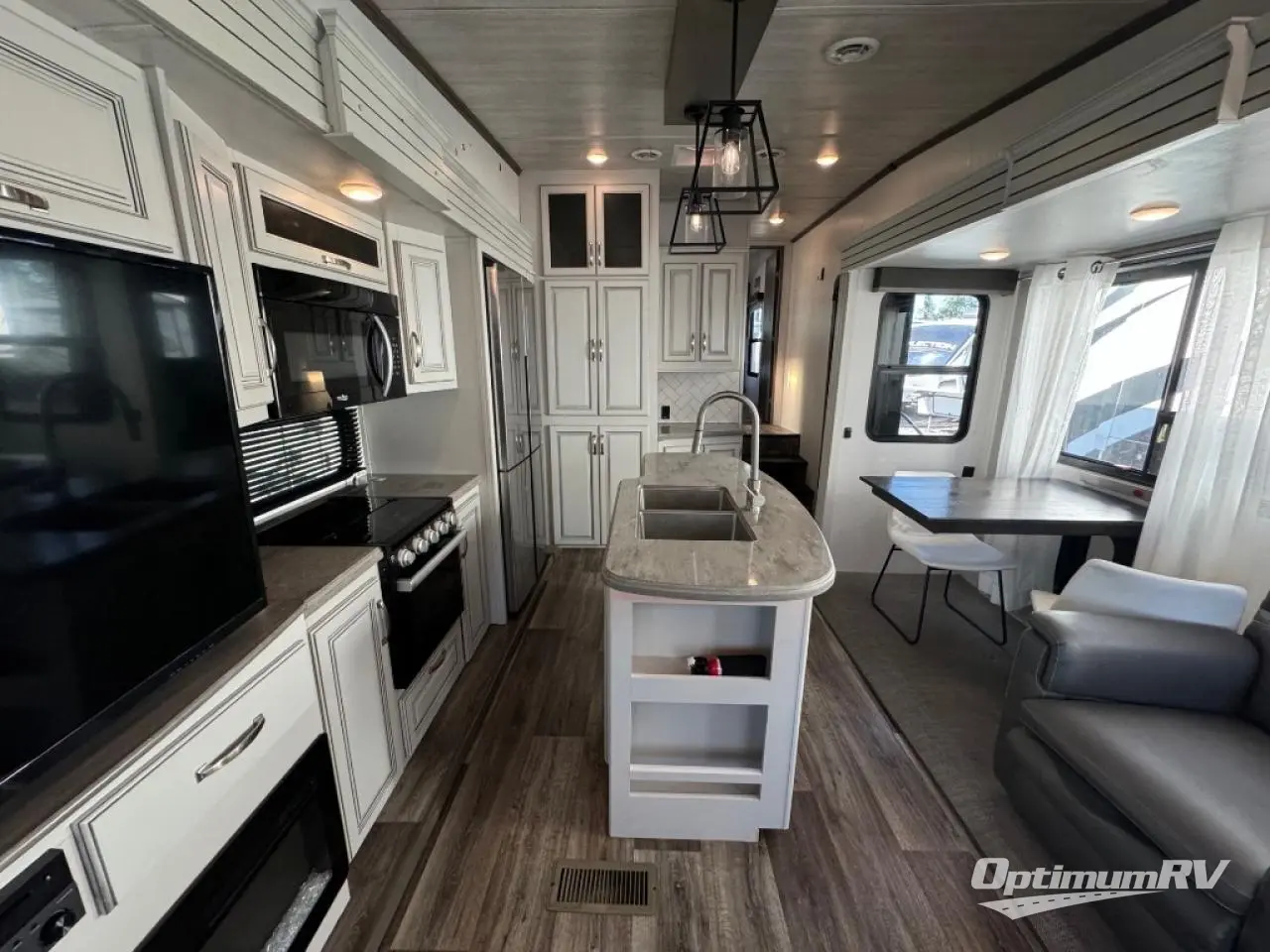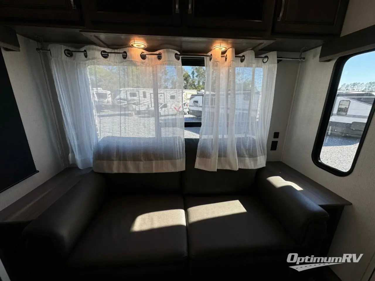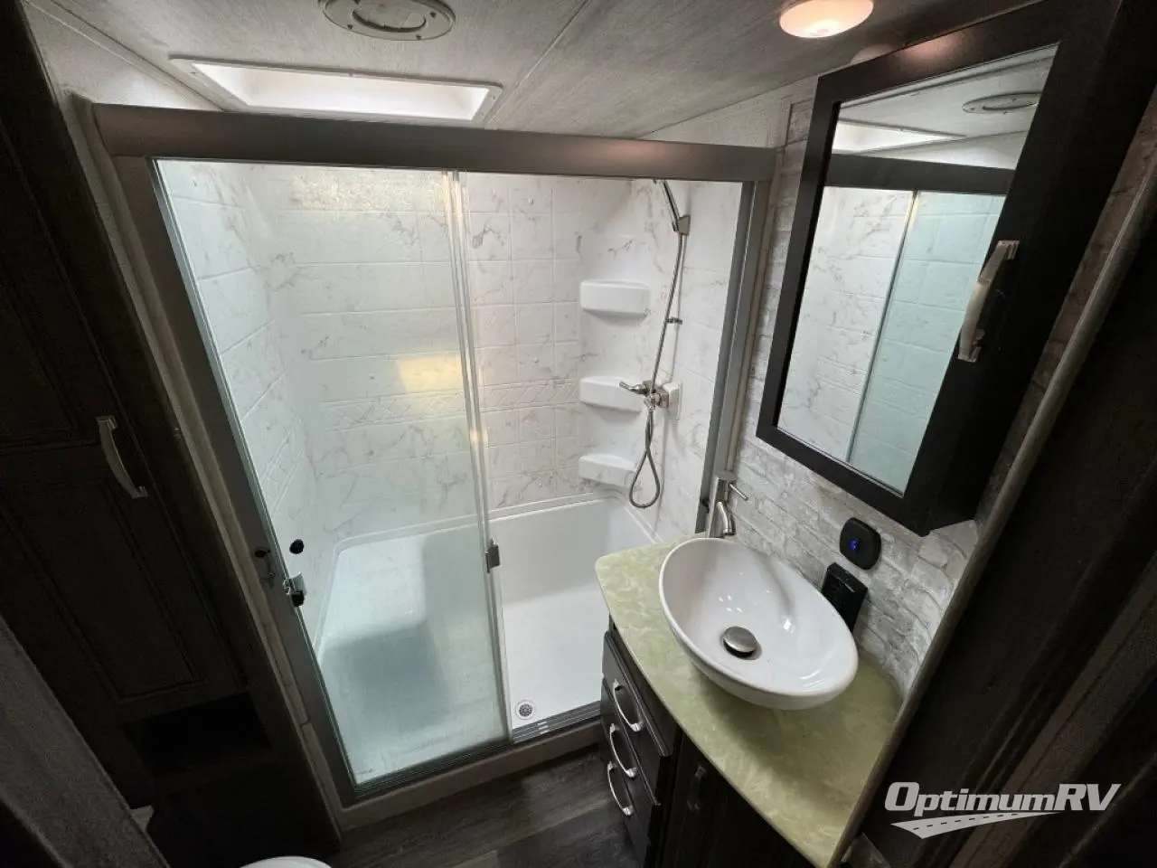 You will love the view from the Patent-Pending windshield design as well as the spacious bedroom with a third wardrobe within a slide out. The full bathroom is just a few steps down the hallway and includes everything you will need to stay refreshed for shopping in town or taking a hike. The central living area has two opposing slides giving you extra space around the kitchen island as you prep for meals and wash dishes in the undermount sink with the faucet and sprayer. Your friends and family will be able to watch the TV from the theater seats, the tri-fold sleeper sofa with end tables and/or the legless dinette table, and the fireplace will make those chilly nights cozy. And the MORRyde solid step, the two power awnings, the unobstructed pass-through compartment and 2" accessory hitch will come in handy when you are outside.