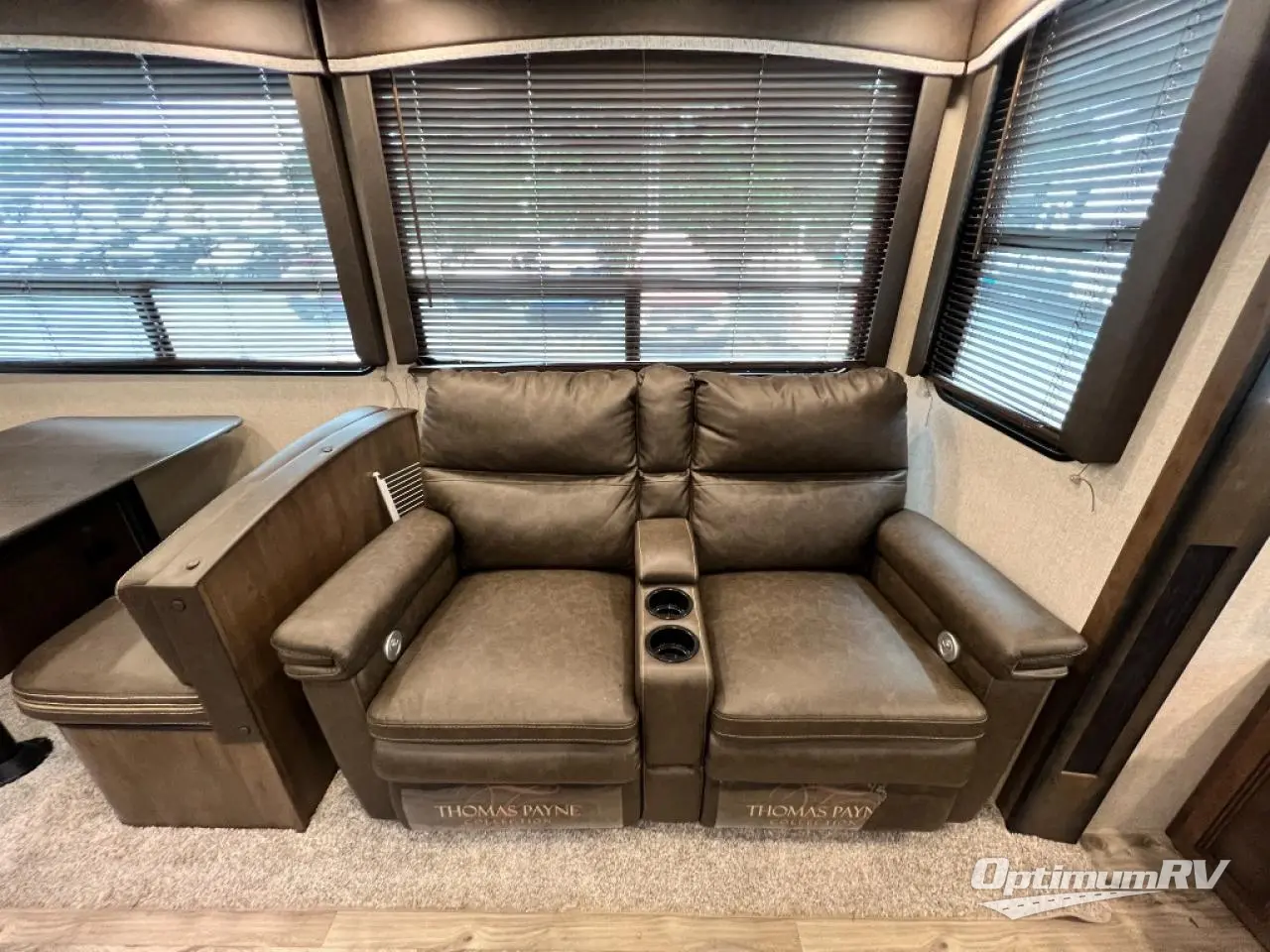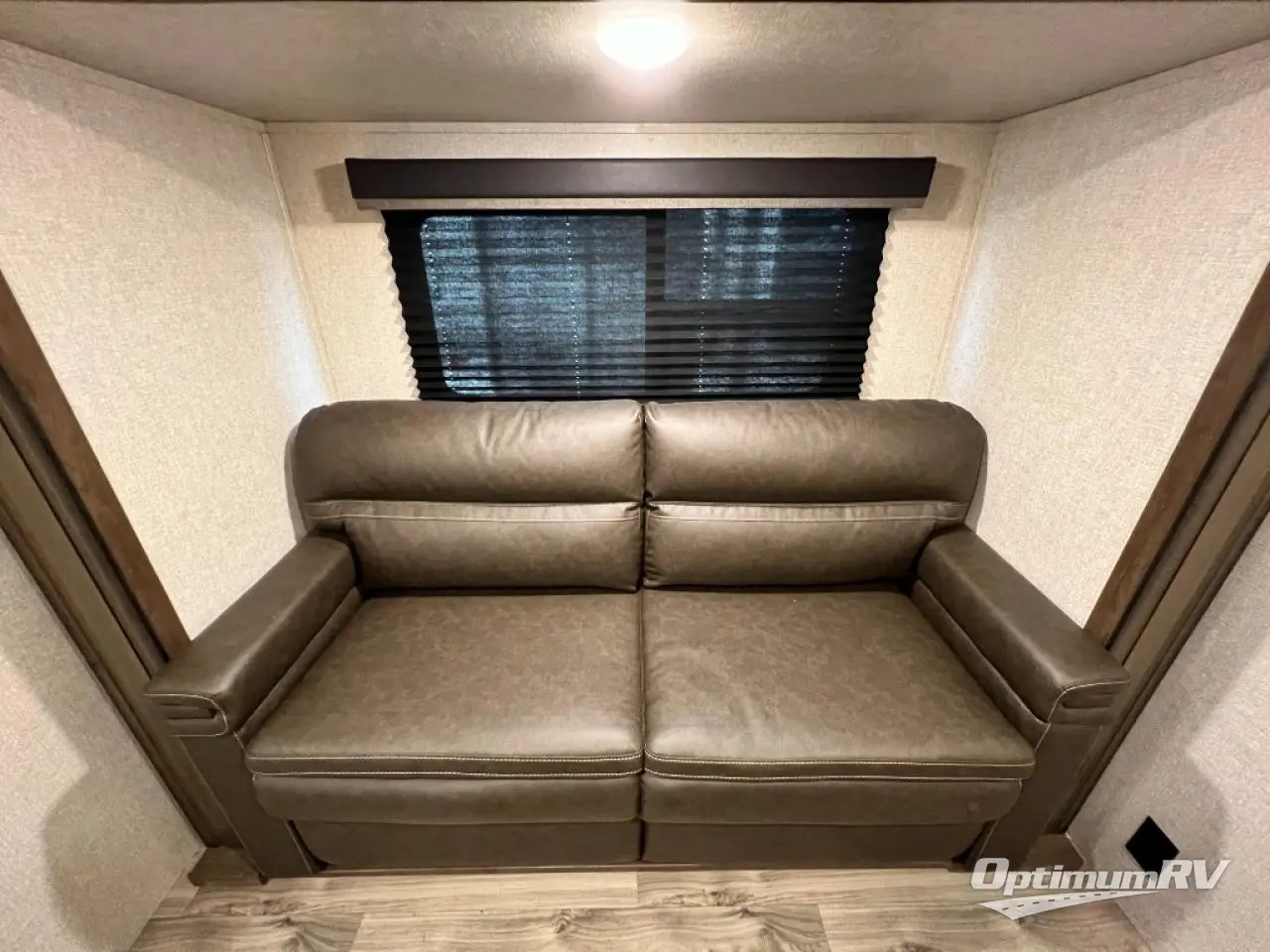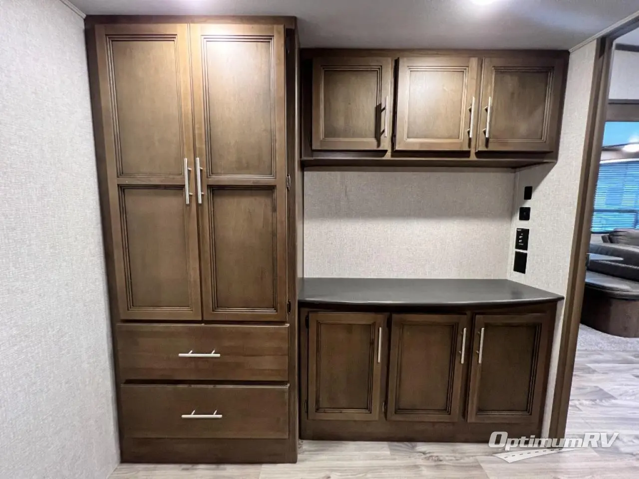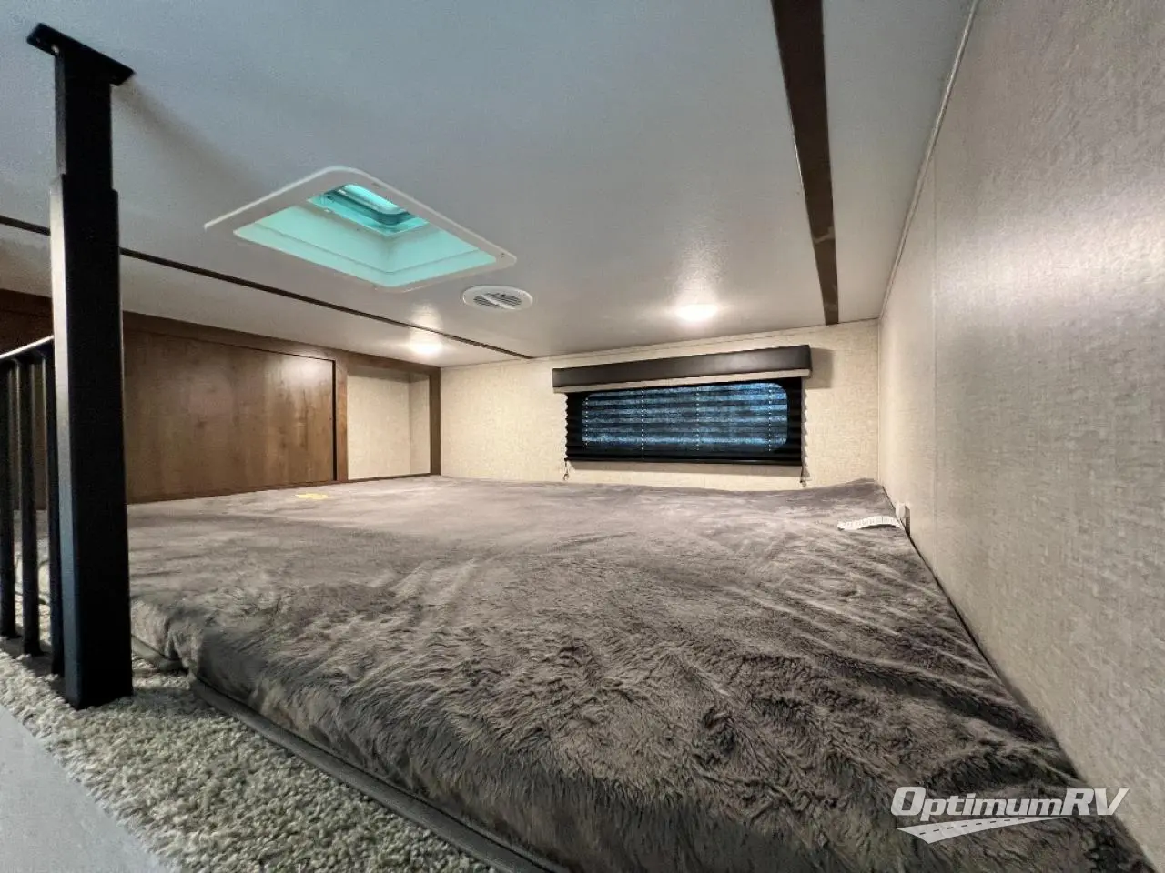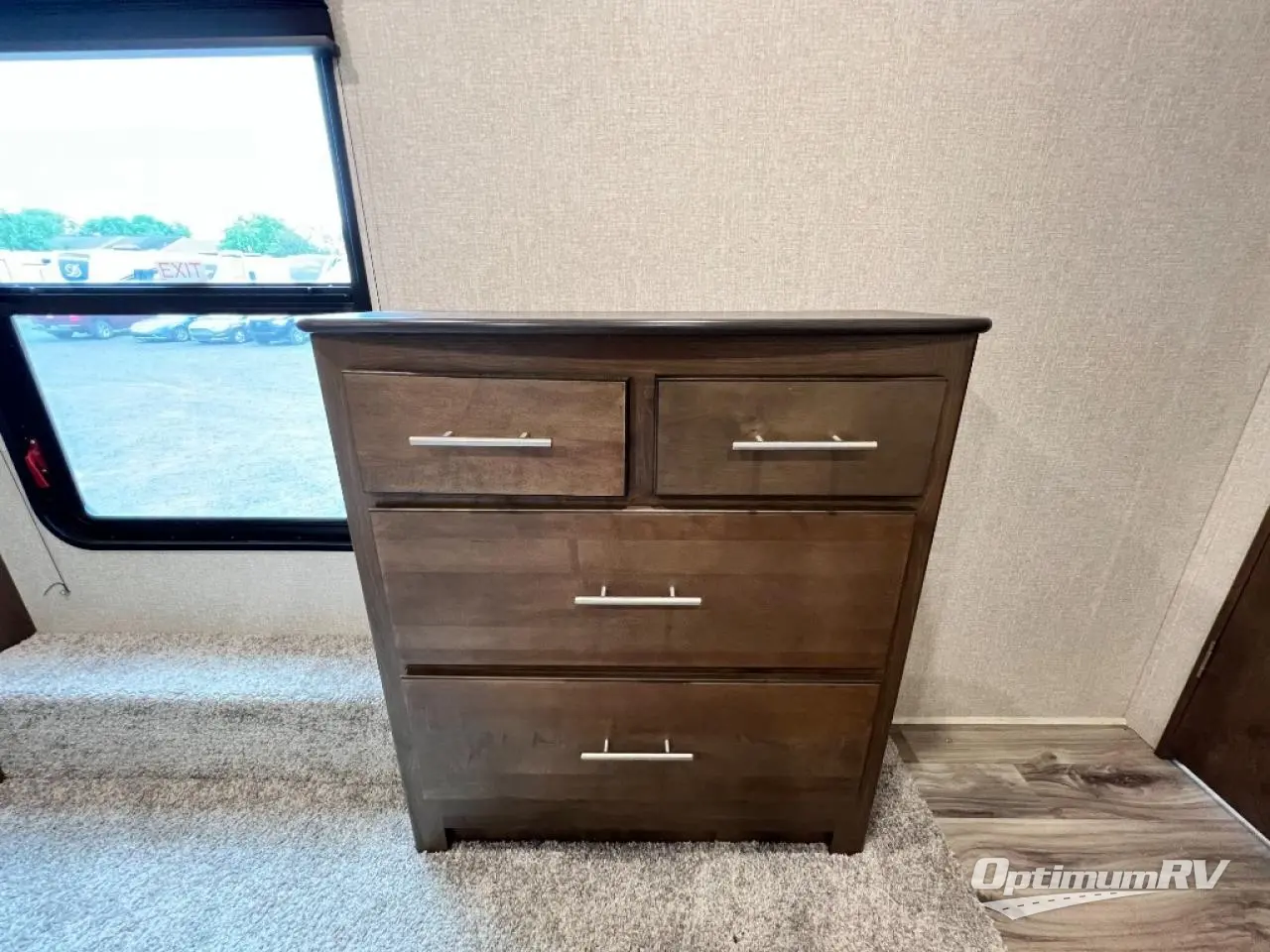 You and your family can enjoy the great outdoors with inside comforts only steps away. Spend your afternoons relaxing underneath the two power awnings while you use the outdoor grill to prepare dinner. You can easily stow away your camping chairs in the unobstructed pass-through compartment along with other outdoor gear when you need to tidy up. Once you head inside, you'll find a loft area above the extra room that can be utilized as a living area, an office and/or a bedroom thanks to the sleeper sofa, the desk and the wardrobe. You can even choose to stay up late and watch a show on the TV while you lounge on the tri-fold sleeper sofa or theater seating before heading to your own queen bed, or choose the king bed option.