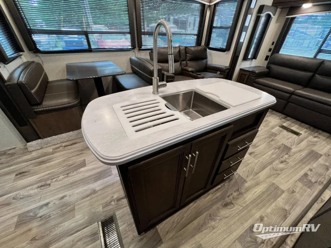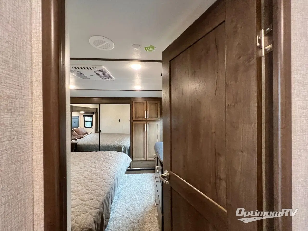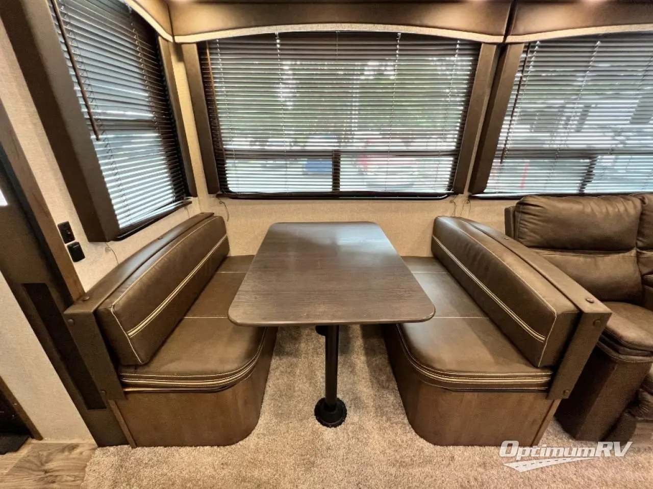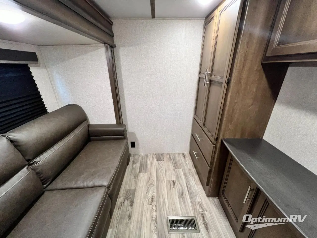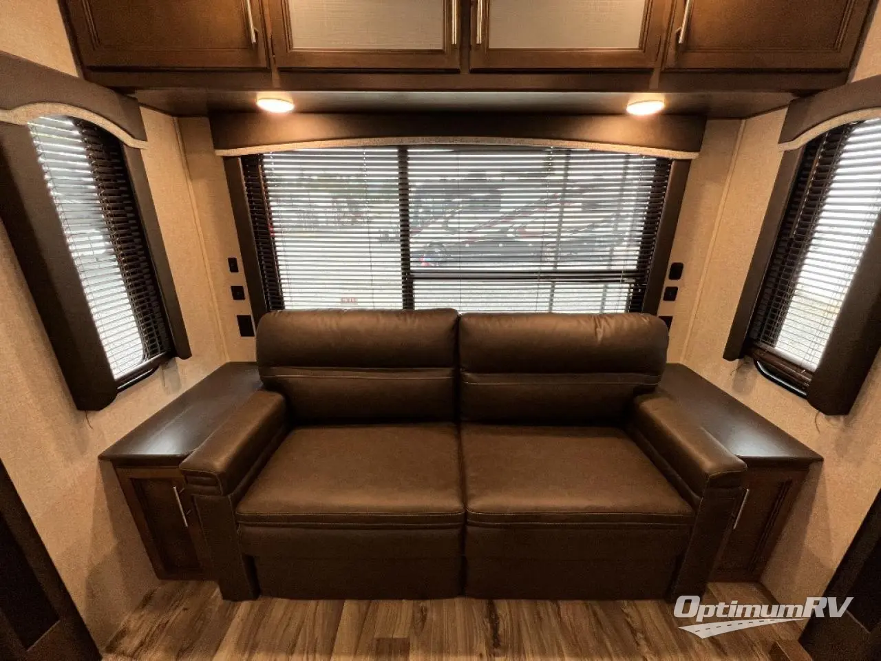 You and your family can enjoy the great outdoors with inside comforts only steps away. Spend your afternoons relaxing underneath the two power awnings while you use the outdoor grill to prepare dinner. You can easily stow away your camping chairs in the unobstructed pass-through compartment along with other outdoor gear when you need to tidy up. Once you head inside, you'll find a loft area above the extra room that can be utilized as a living area, an office and/or a bedroom thanks to the sleeper sofa, the desk and the wardrobe. You can even choose to stay up late and watch a show on the TV while you lounge on the tri-fold sleeper sofa or theater seating before heading to your own queen bed, or choose the king bed option.