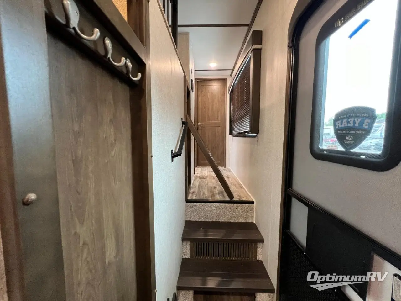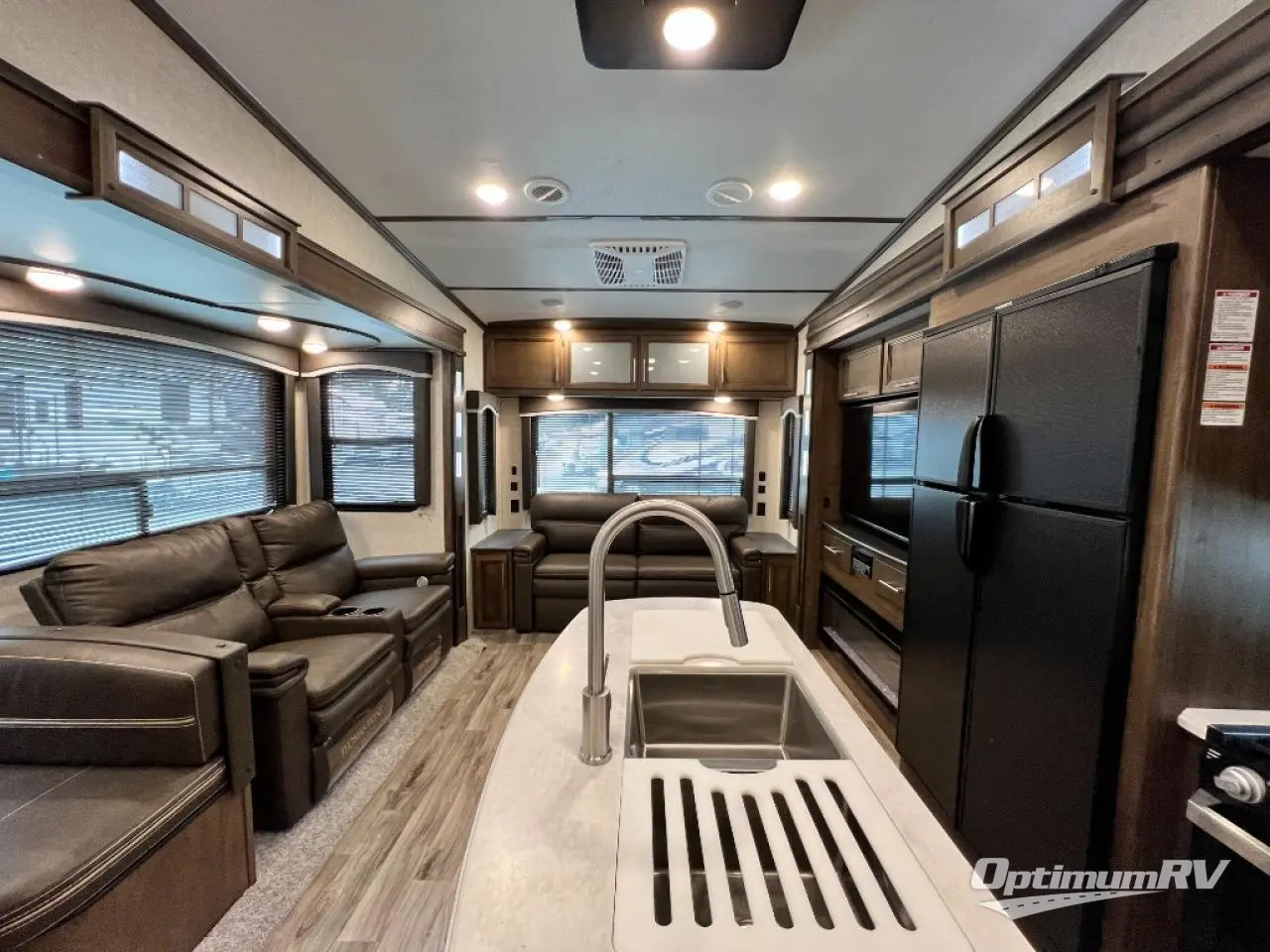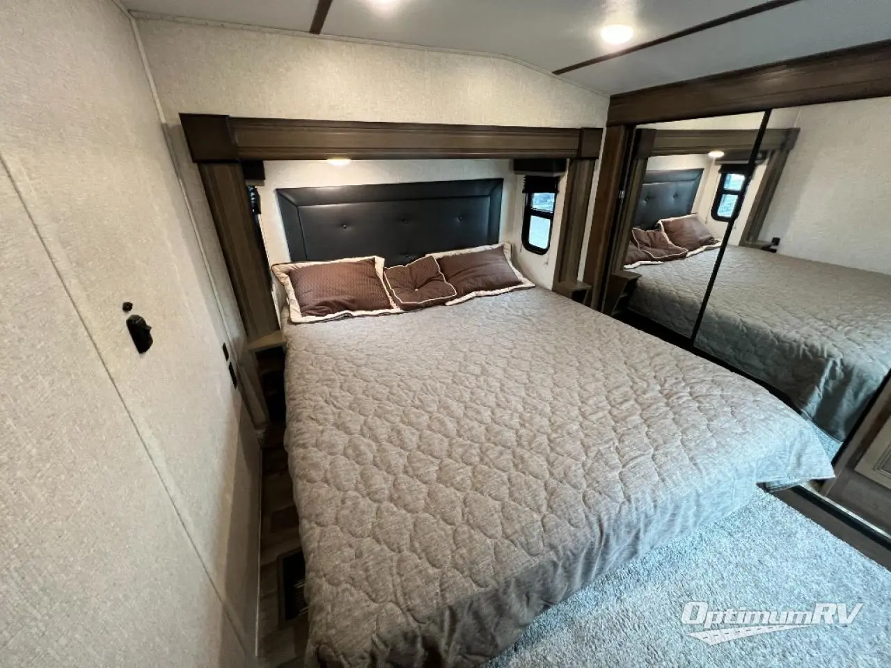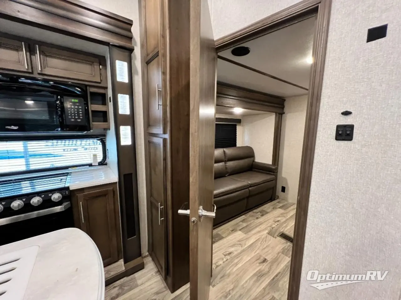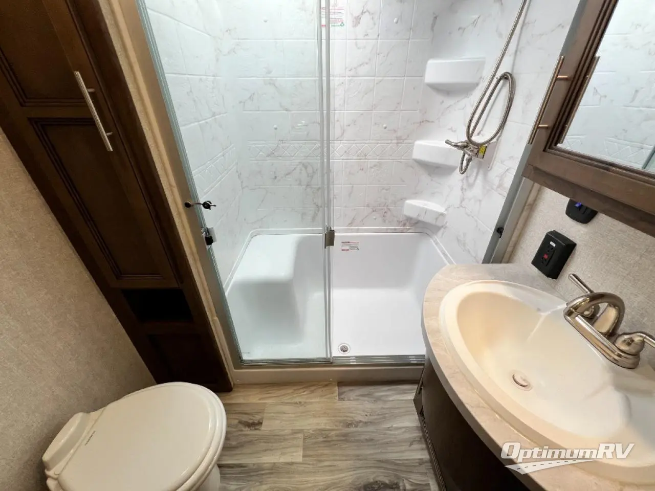 You and your family can enjoy the great outdoors with inside comforts only steps away. Spend your afternoons relaxing underneath the two power awnings while you use the outdoor grill to prepare dinner. You can easily stow away your camping chairs in the unobstructed pass-through compartment along with other outdoor gear when you need to tidy up. Once you head inside, you'll find a loft area above the extra room that can be utilized as a living area, an office and/or a bedroom thanks to the sleeper sofa, the desk and the wardrobe. You can even choose to stay up late and watch a show on the TV while you lounge on the tri-fold sleeper sofa or theater seating before heading to your own queen bed, or choose the king bed option.