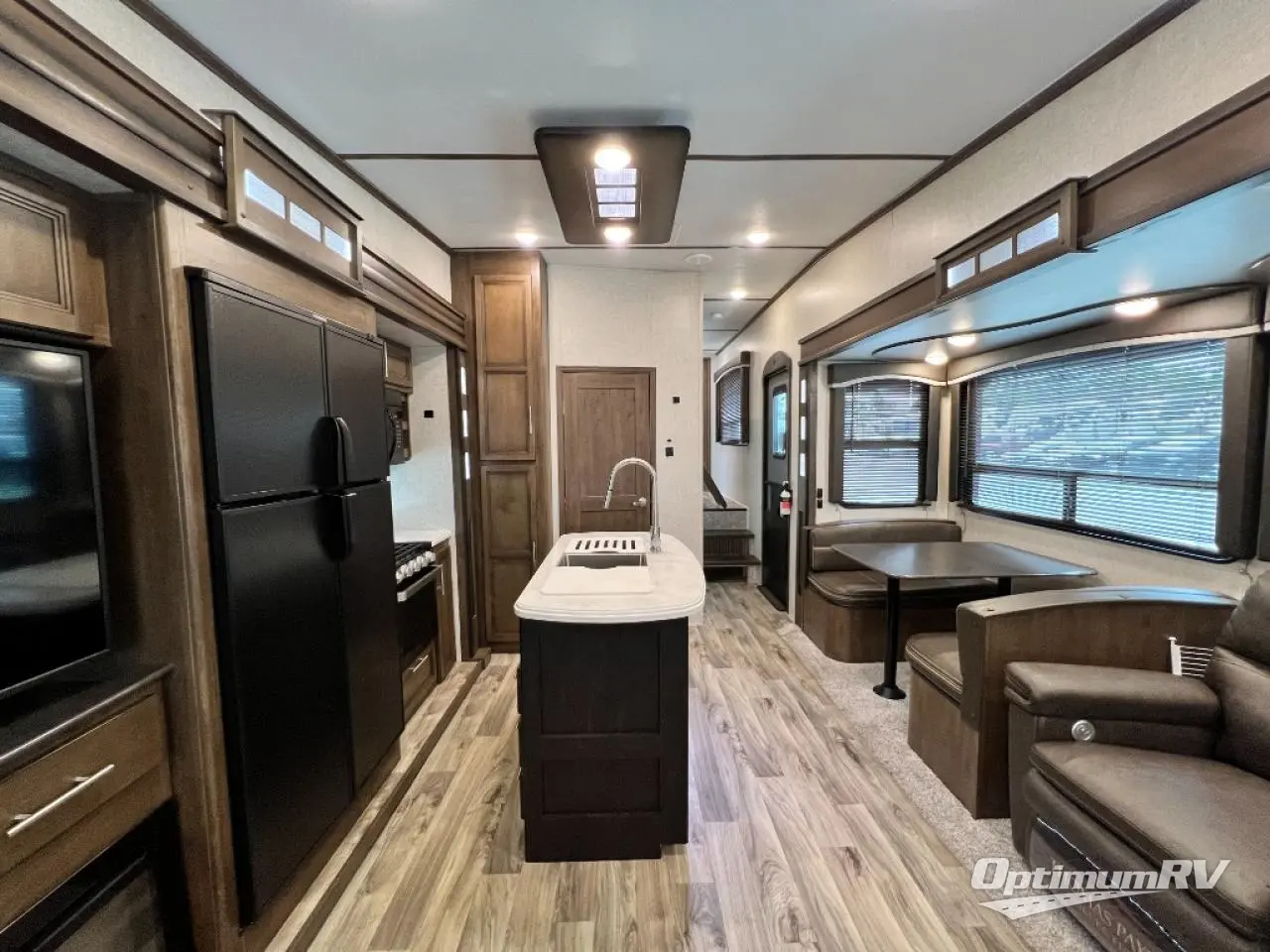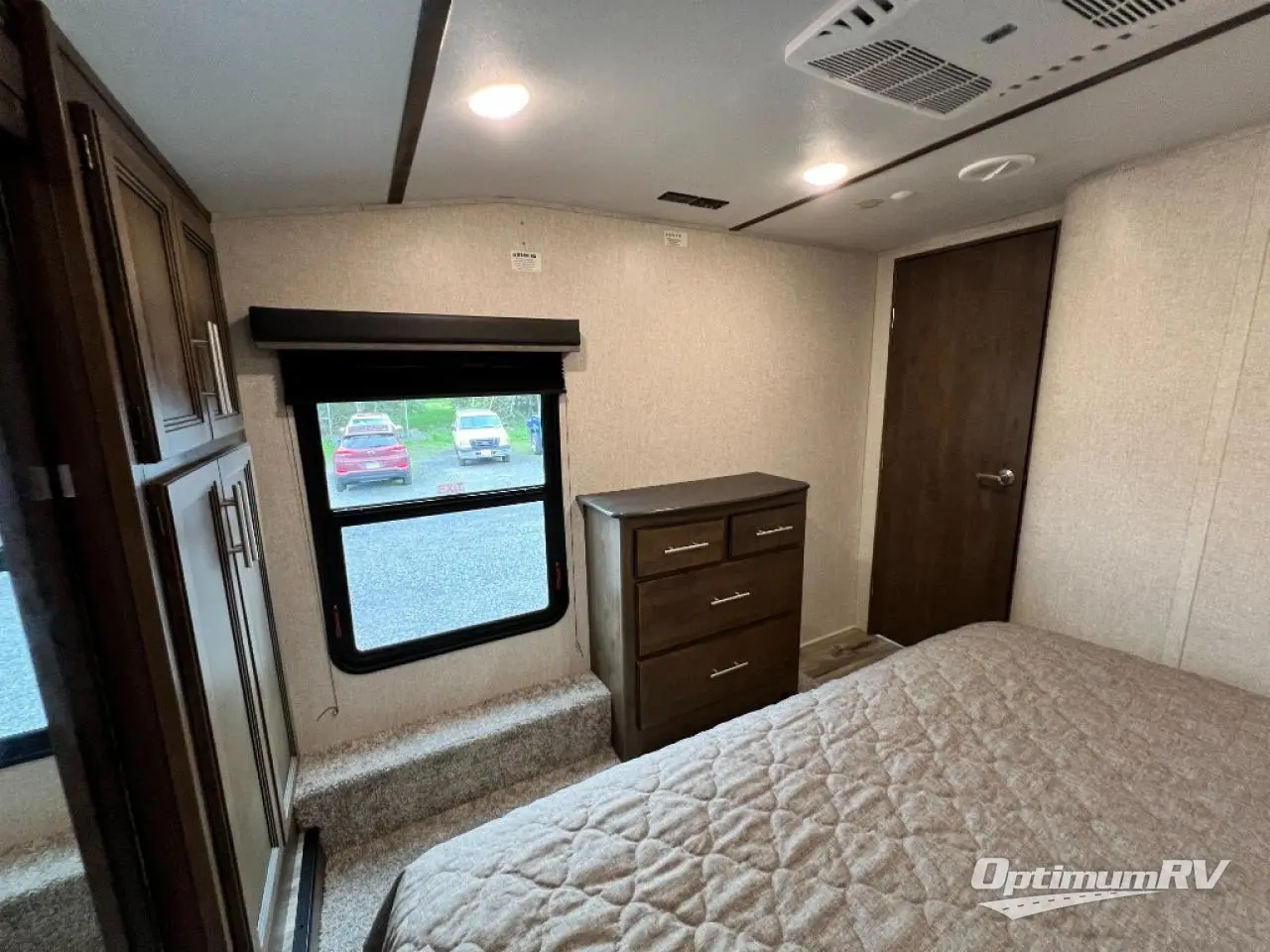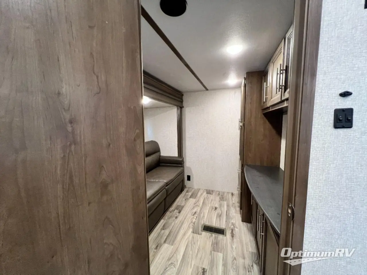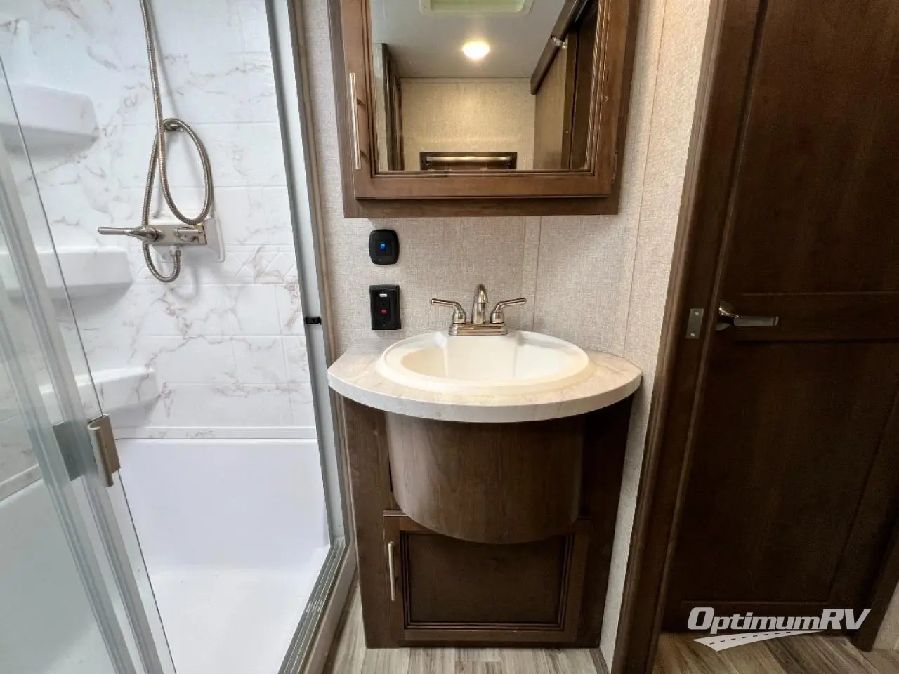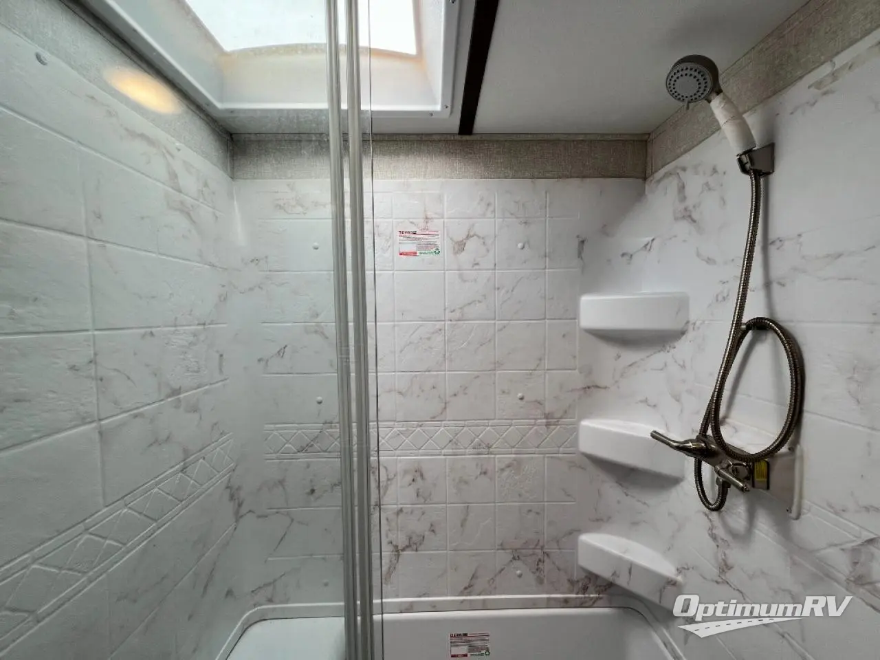 You and your family can enjoy the great outdoors with inside comforts only steps away. Spend your afternoons relaxing underneath the two power awnings while you use the outdoor grill to prepare dinner. You can easily stow away your camping chairs in the unobstructed pass-through compartment along with other outdoor gear when you need to tidy up. Once you head inside, you'll find a loft area above the extra room that can be utilized as a living area, an office and/or a bedroom thanks to the sleeper sofa, the desk and the wardrobe. You can even choose to stay up late and watch a show on the TV while you lounge on the tri-fold sleeper sofa or theater seating before heading to your own queen bed, or choose the king bed option.