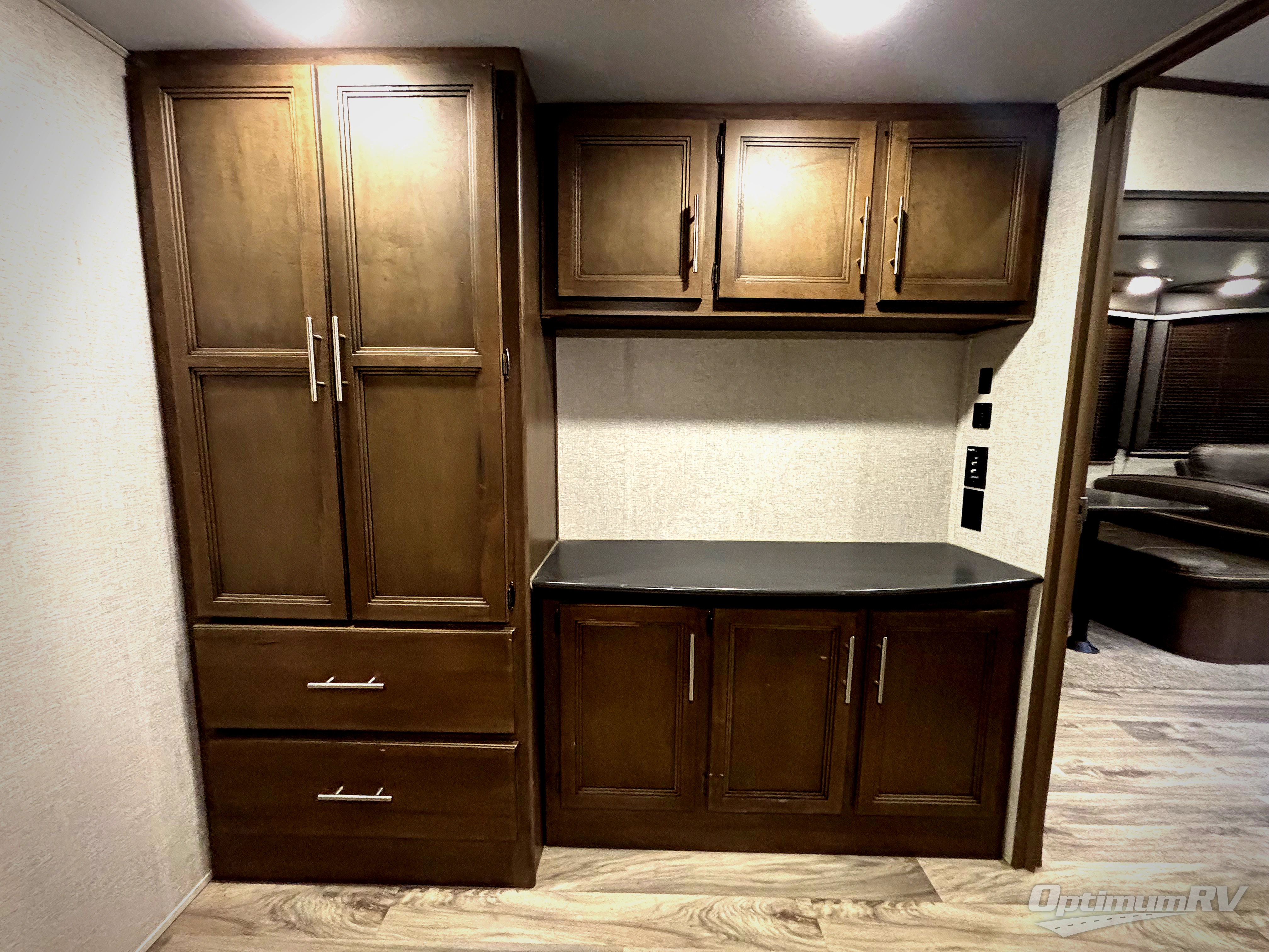 You and your family can enjoy the great outdoors with inside comforts only steps away. Spend your afternoons relaxing underneath the two power awnings while you use the outdoor grill to prepare dinner. You can easily stow away your camping chairs in the unobstructed pass-through compartment along with other outdoor gear when you need to tidy up. Once you head inside, you'll find a loft area above the extra room that can be utilized as a living area, an office and/or a bedroom thanks to the sleeper sofa, the desk and the wardrobe. You can even choose to stay up late and watch a show on the TV while you lounge on the tri-fold sleeper sofa or theater seating before heading to your own queen bed, or choose the king bed option.