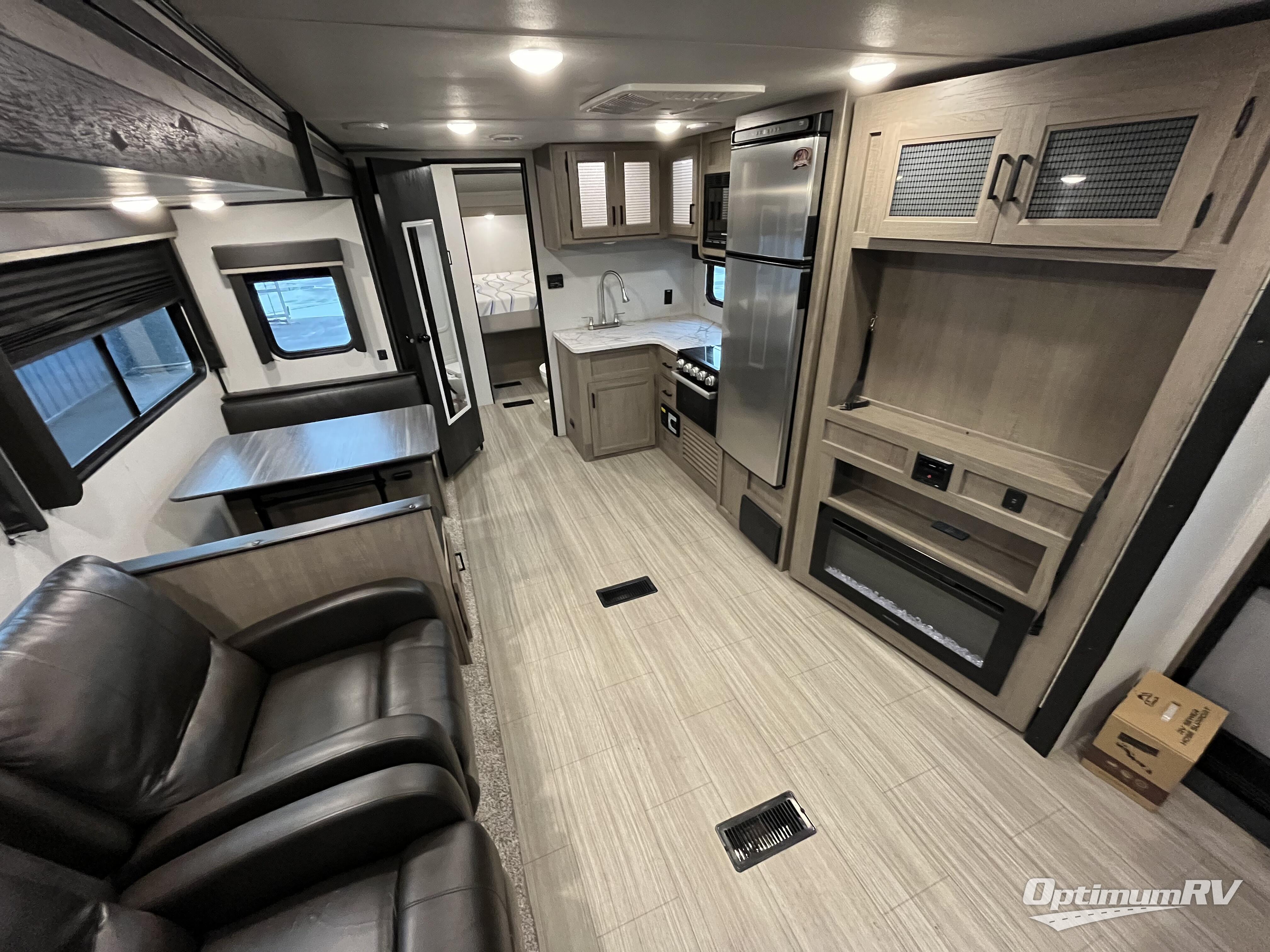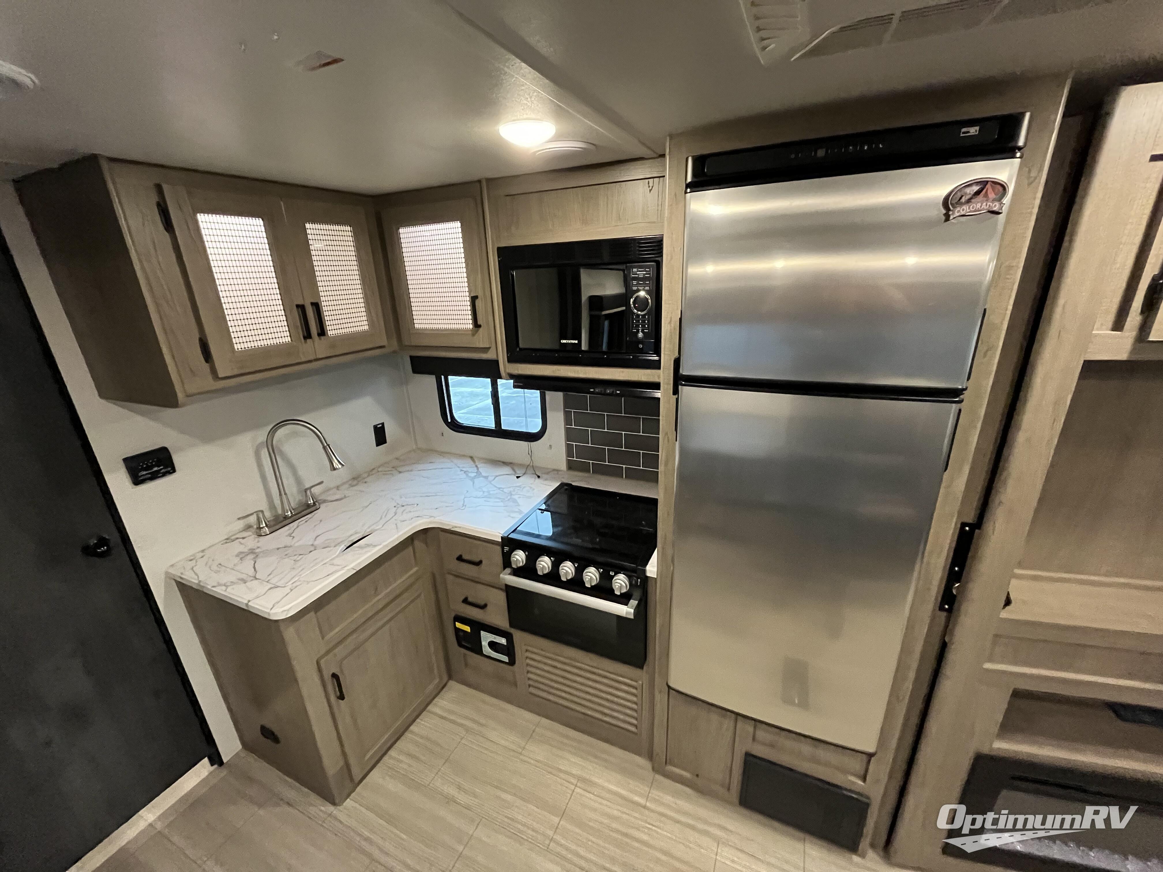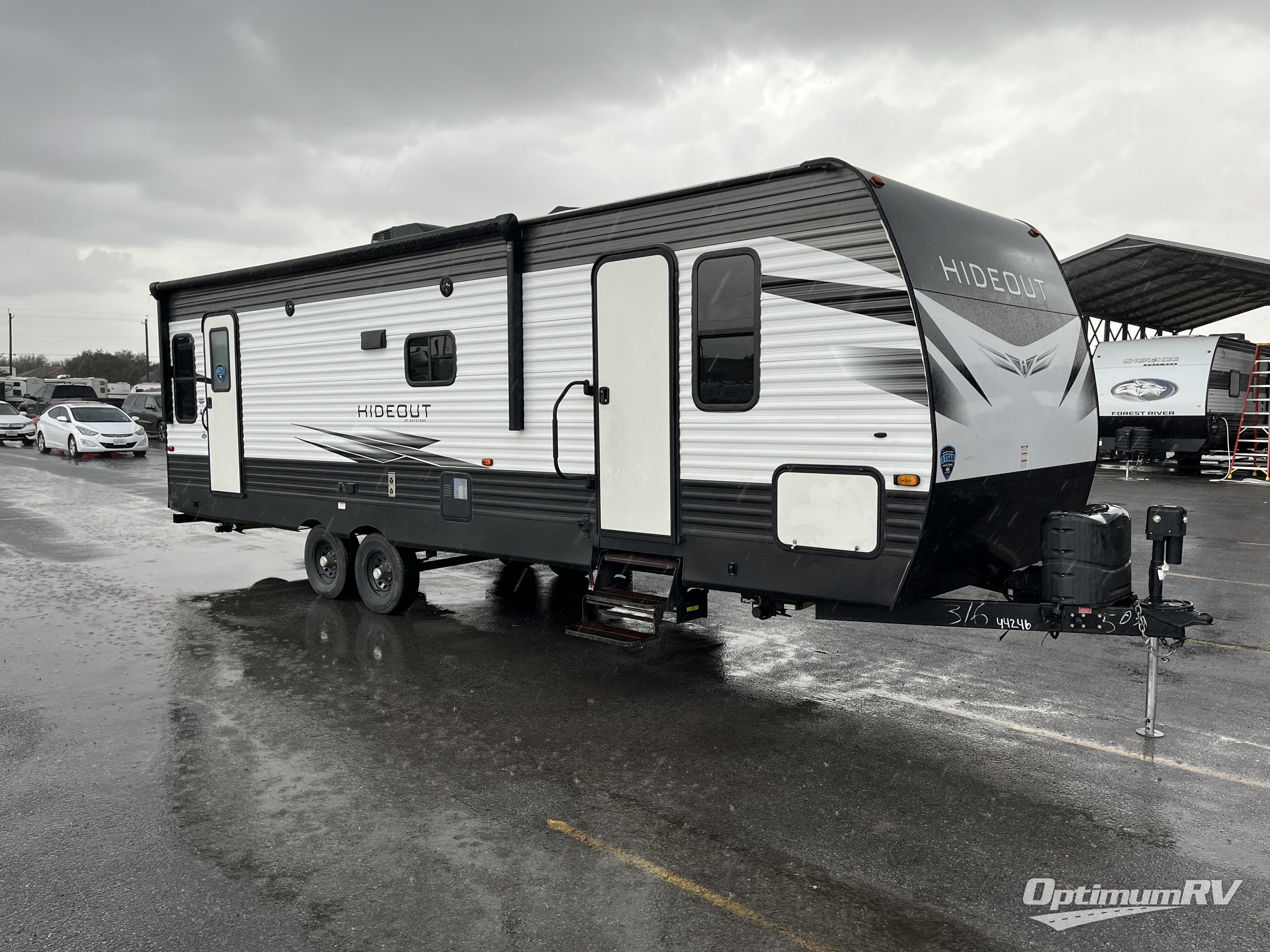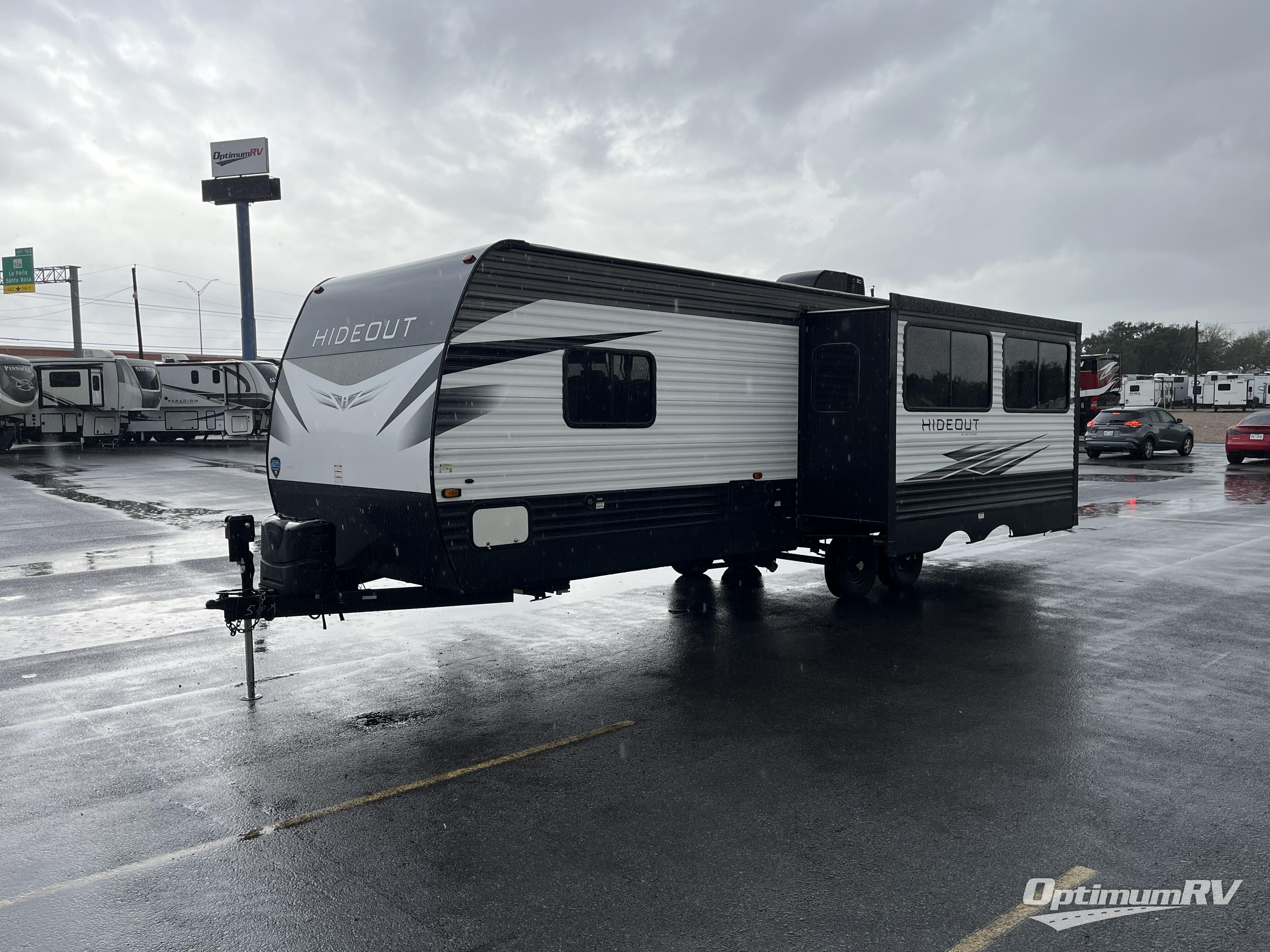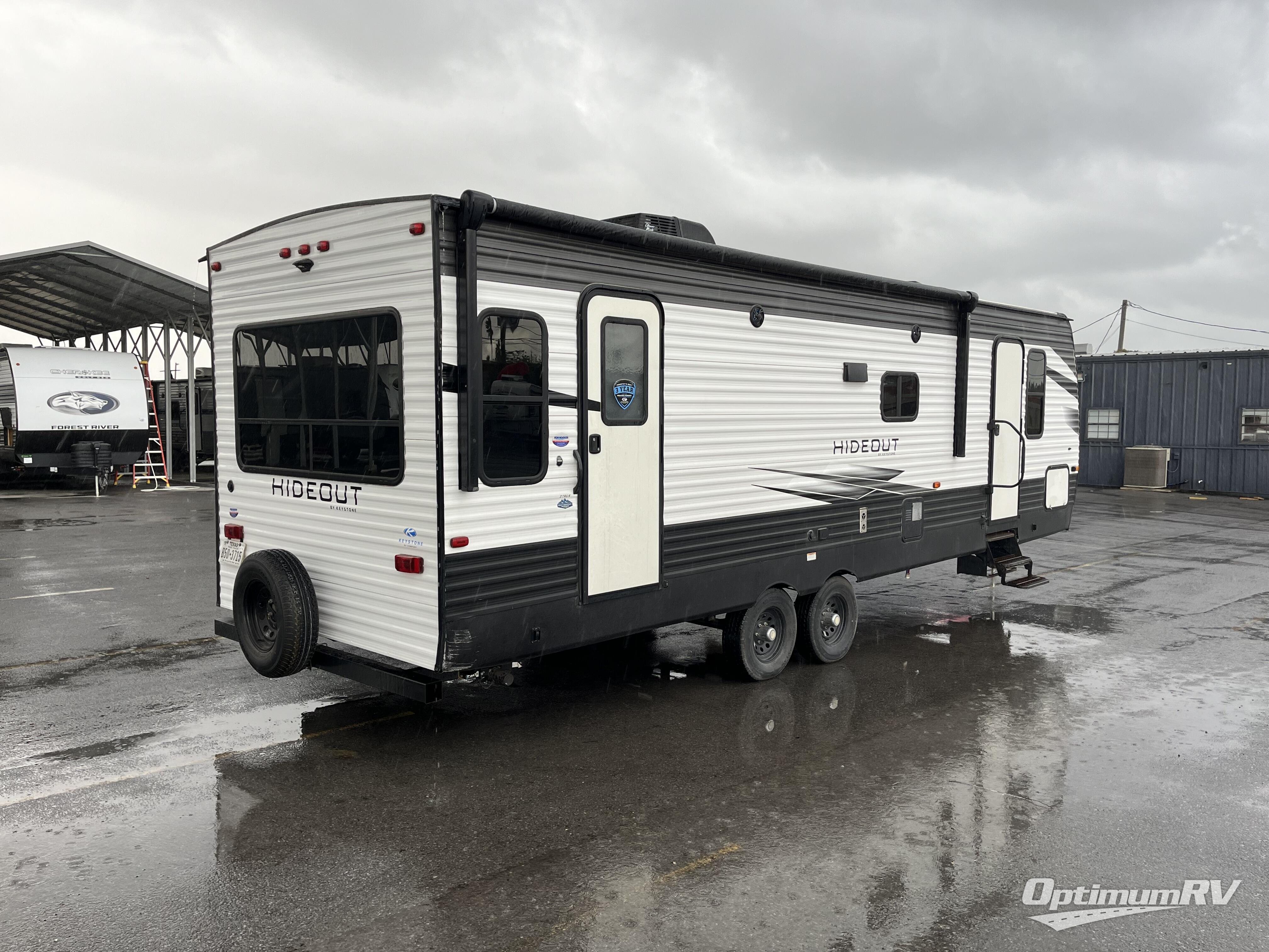 Get out there and experience nature at its best with this Hideout travel trailer! You and your guests will appreciate the coat hooks next to the main entry door as you come inside from an afternoon hike and need to hang up your jackets and hoodies, and the fireplace will be a welcoming sight if the weather was dreary that day. In order to replenish your energy and fill your hungry bellies, you can prepare a hearty meal on the three-burner range in the full kitchen, and afterwards, you will certainly want to crash for the night on the queen-size bed in the front private bedroom.