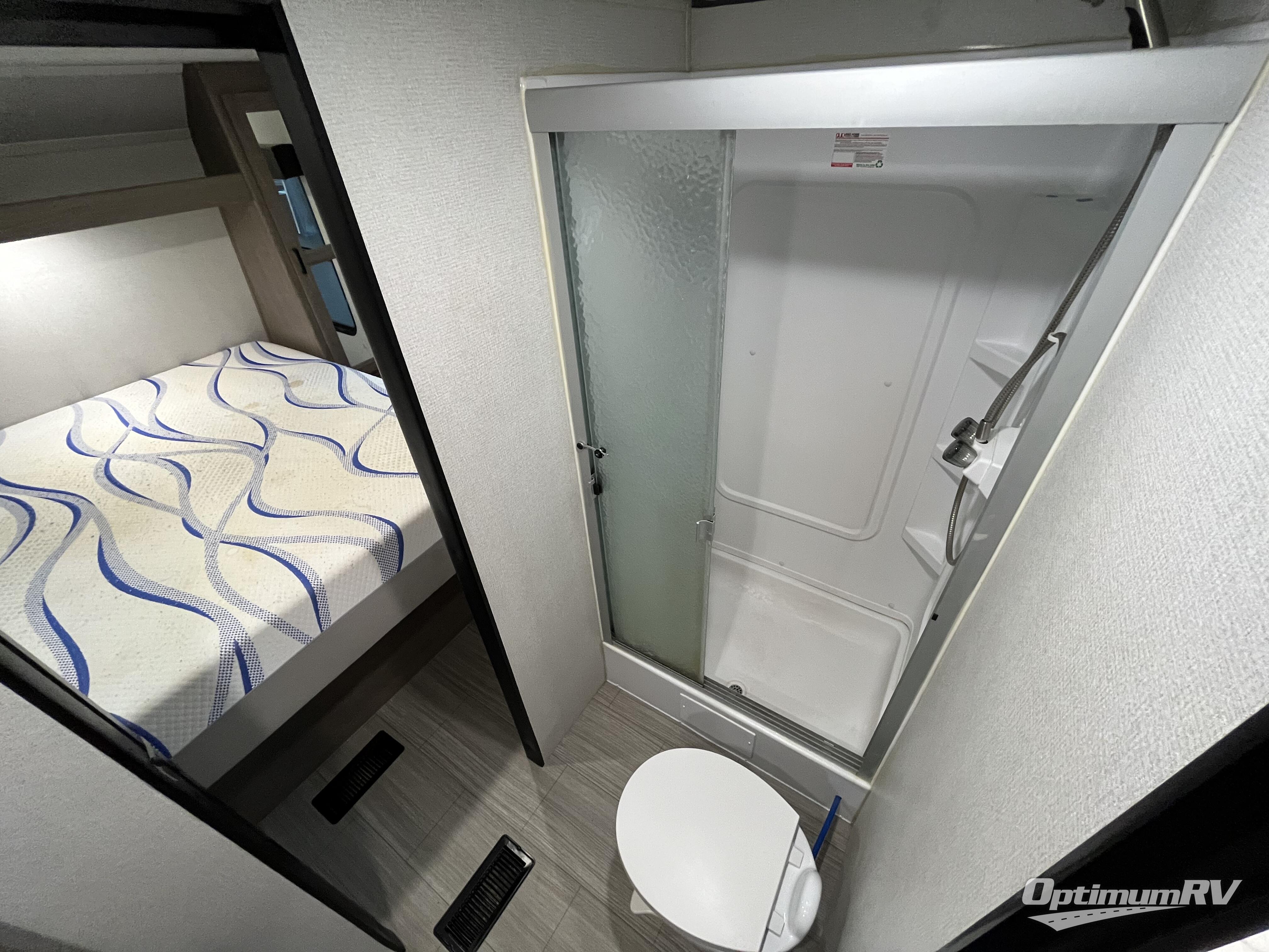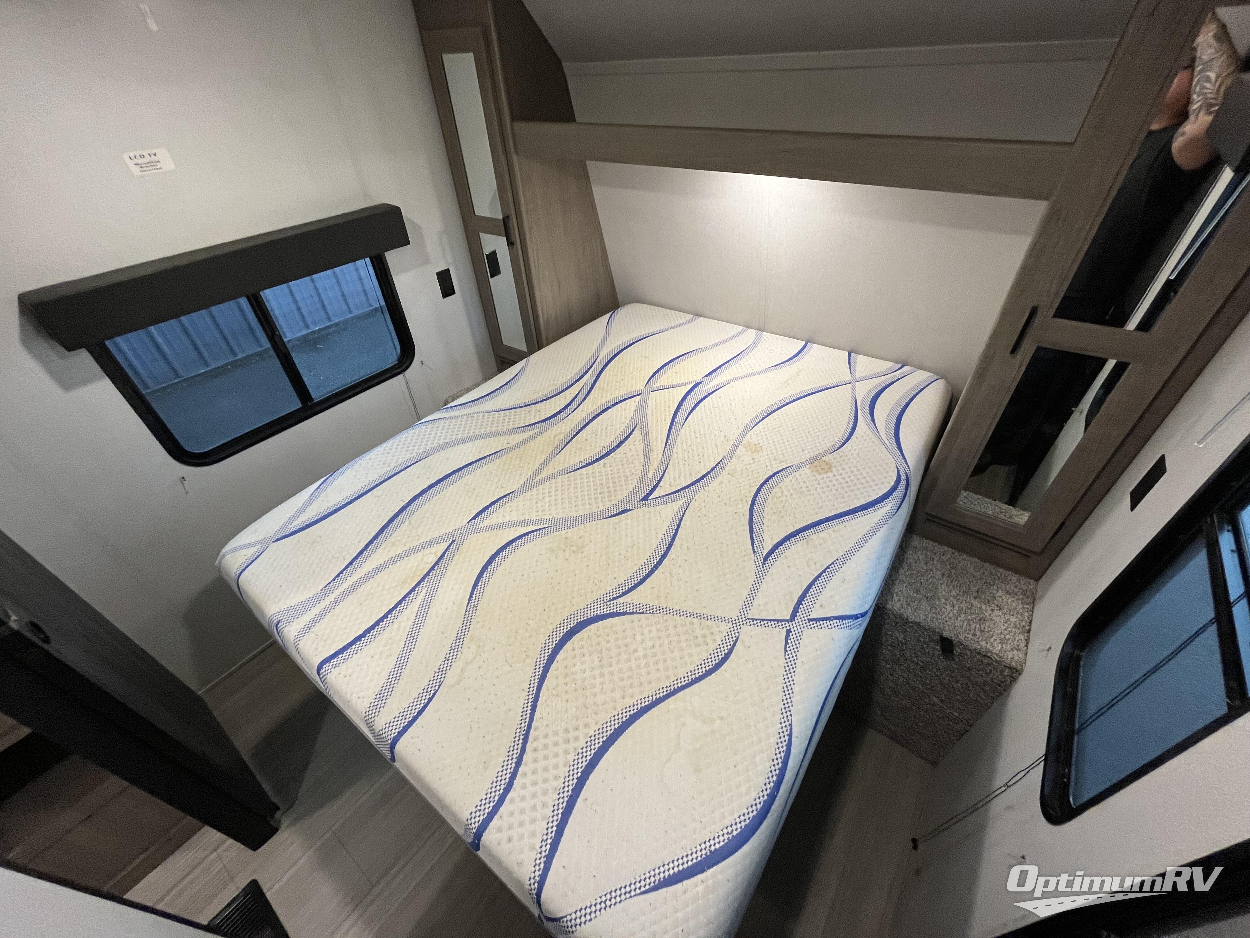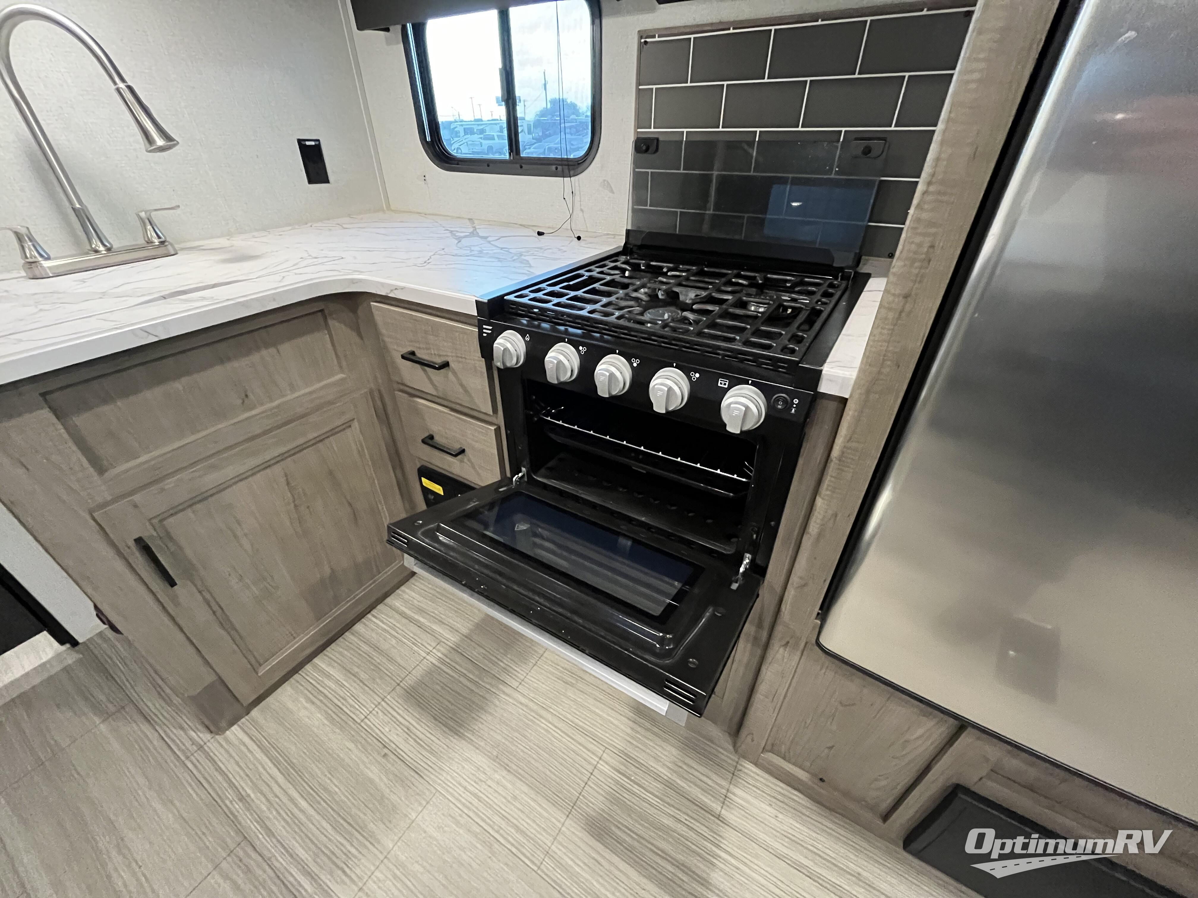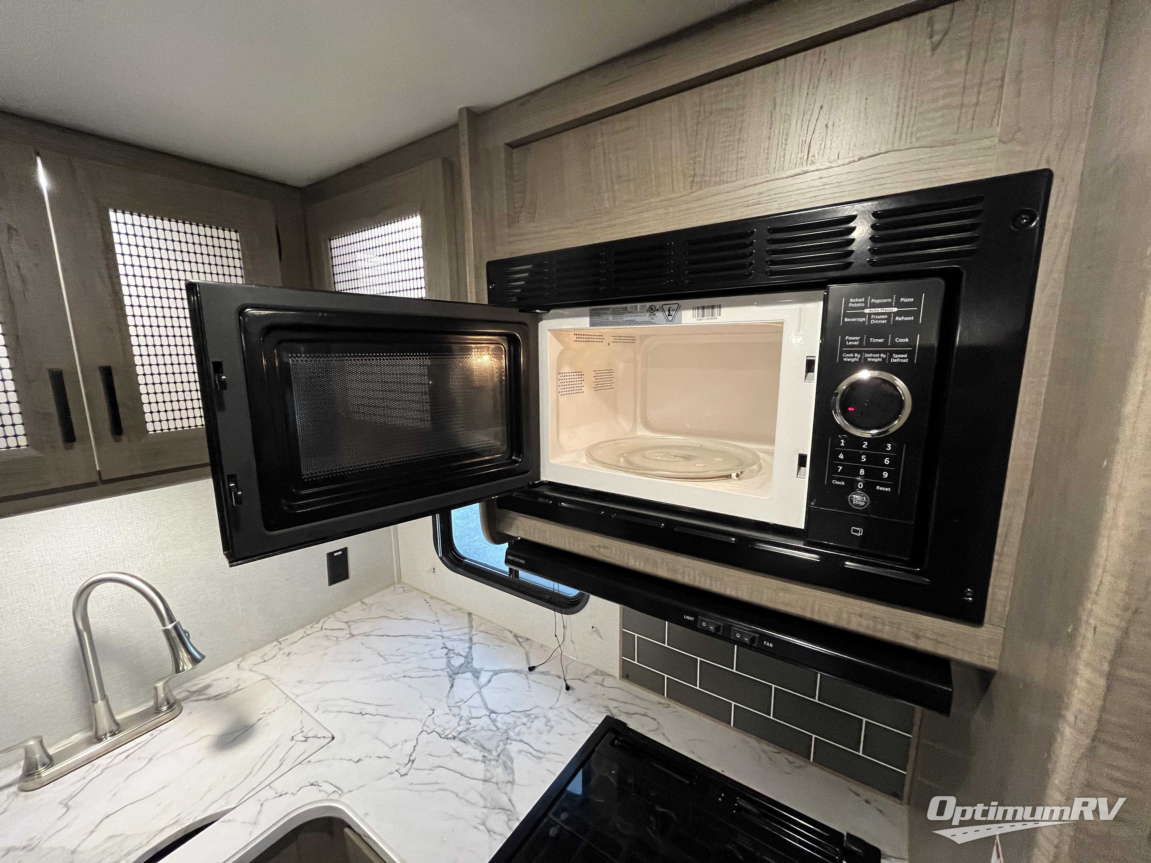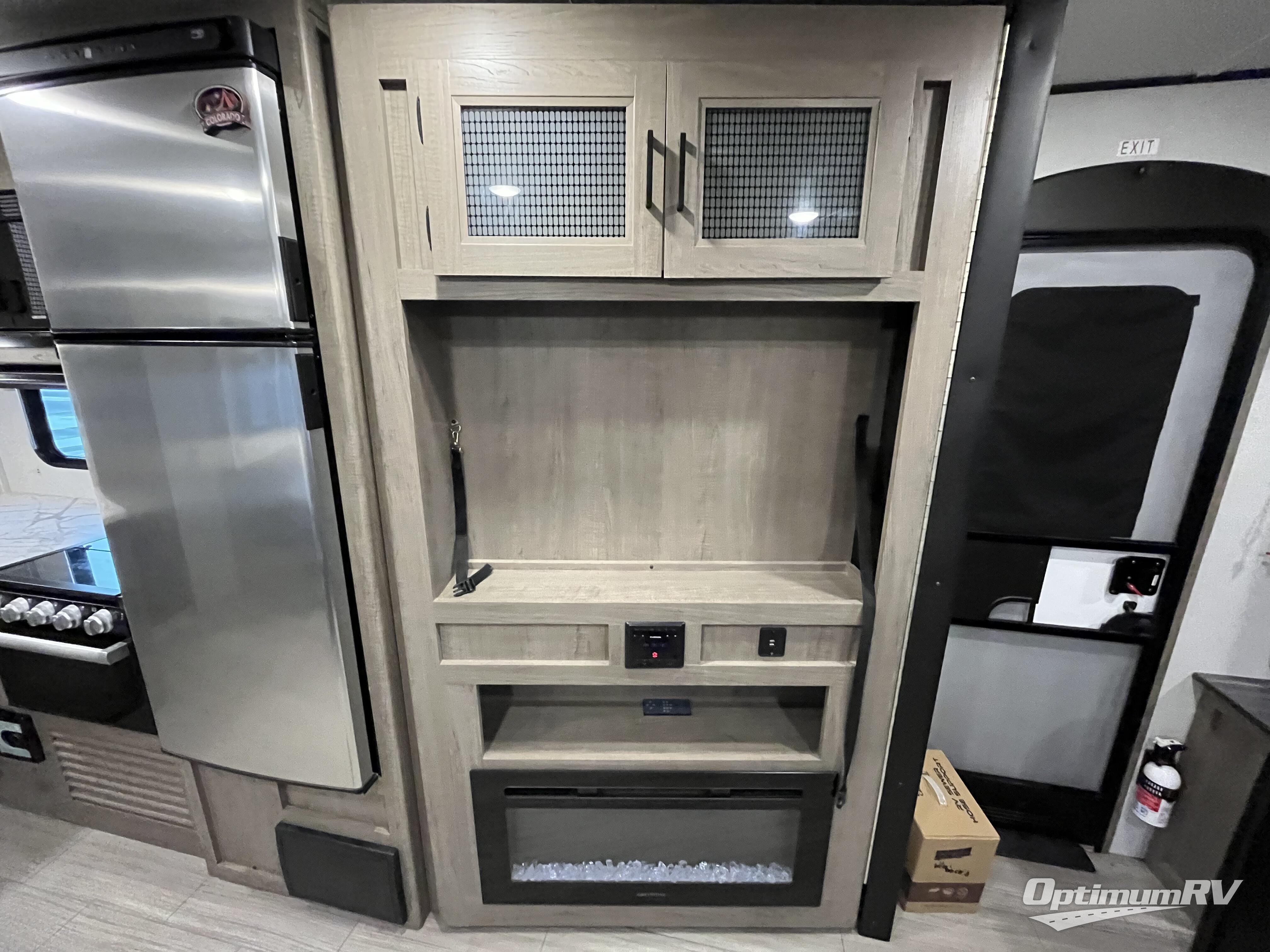 Get out there and experience nature at its best with this Hideout travel trailer! You and your guests will appreciate the coat hooks next to the main entry door as you come inside from an afternoon hike and need to hang up your jackets and hoodies, and the fireplace will be a welcoming sight if the weather was dreary that day. In order to replenish your energy and fill your hungry bellies, you can prepare a hearty meal on the three-burner range in the full kitchen, and afterwards, you will certainly want to crash for the night on the queen-size bed in the front private bedroom.