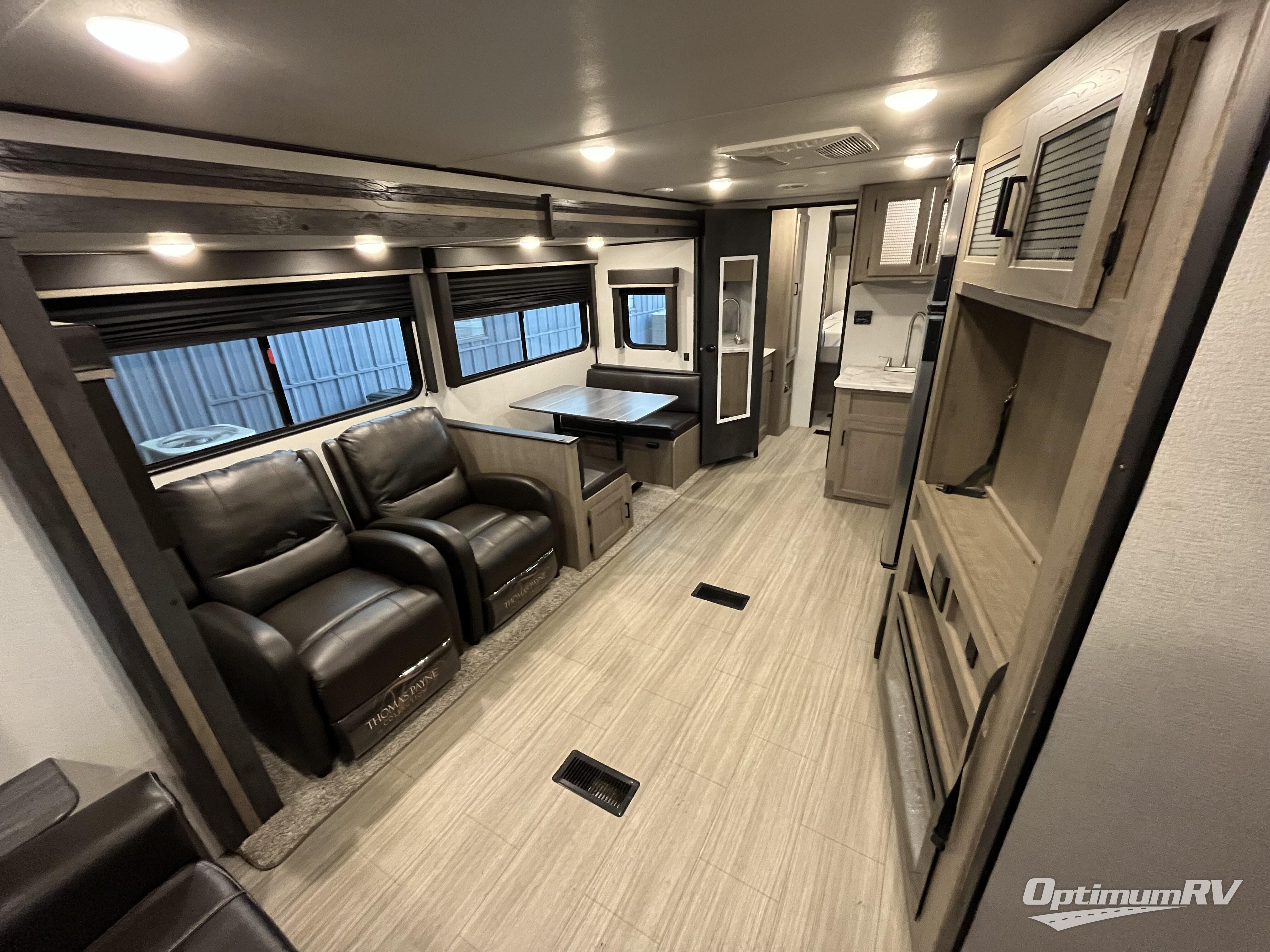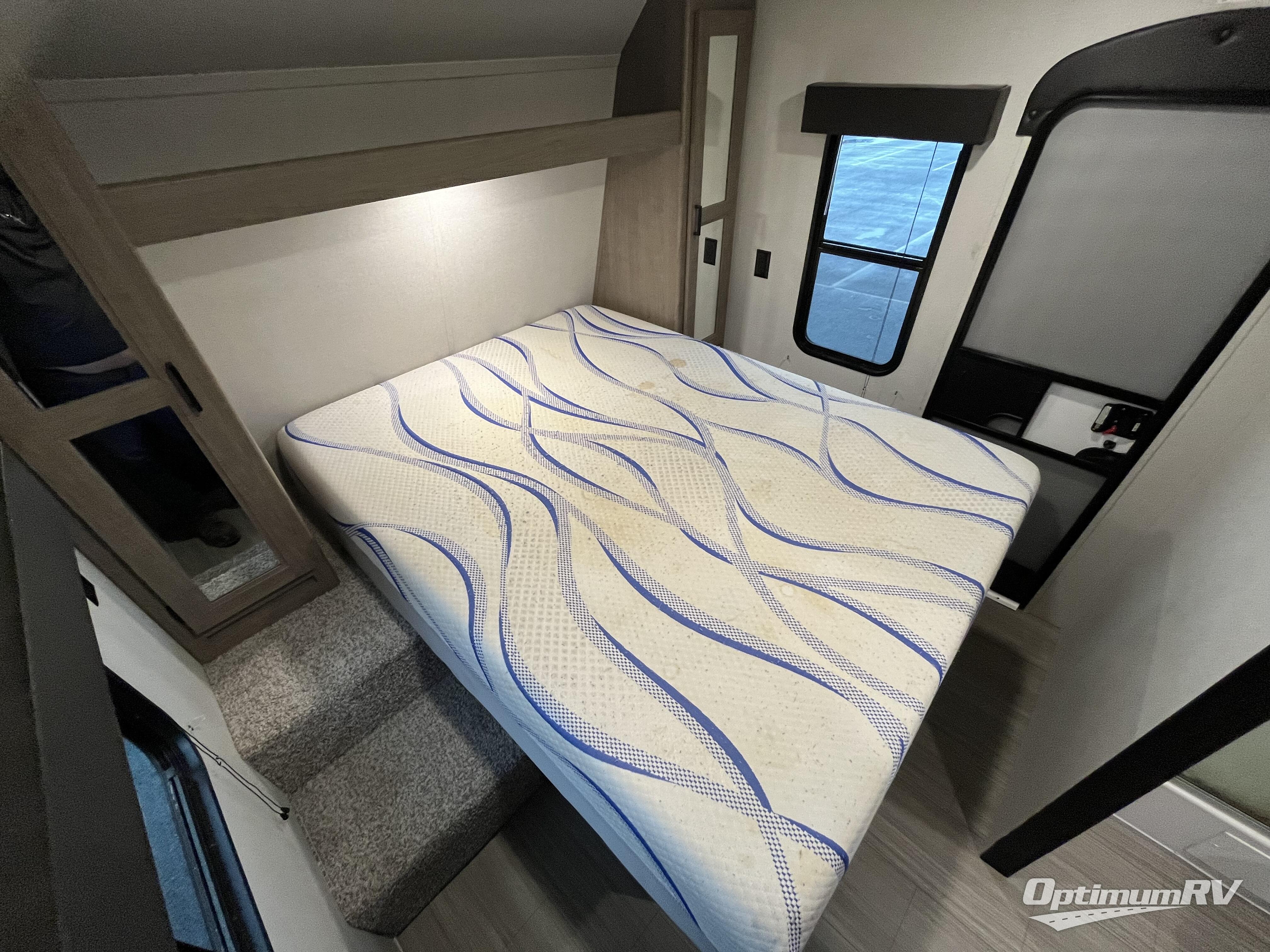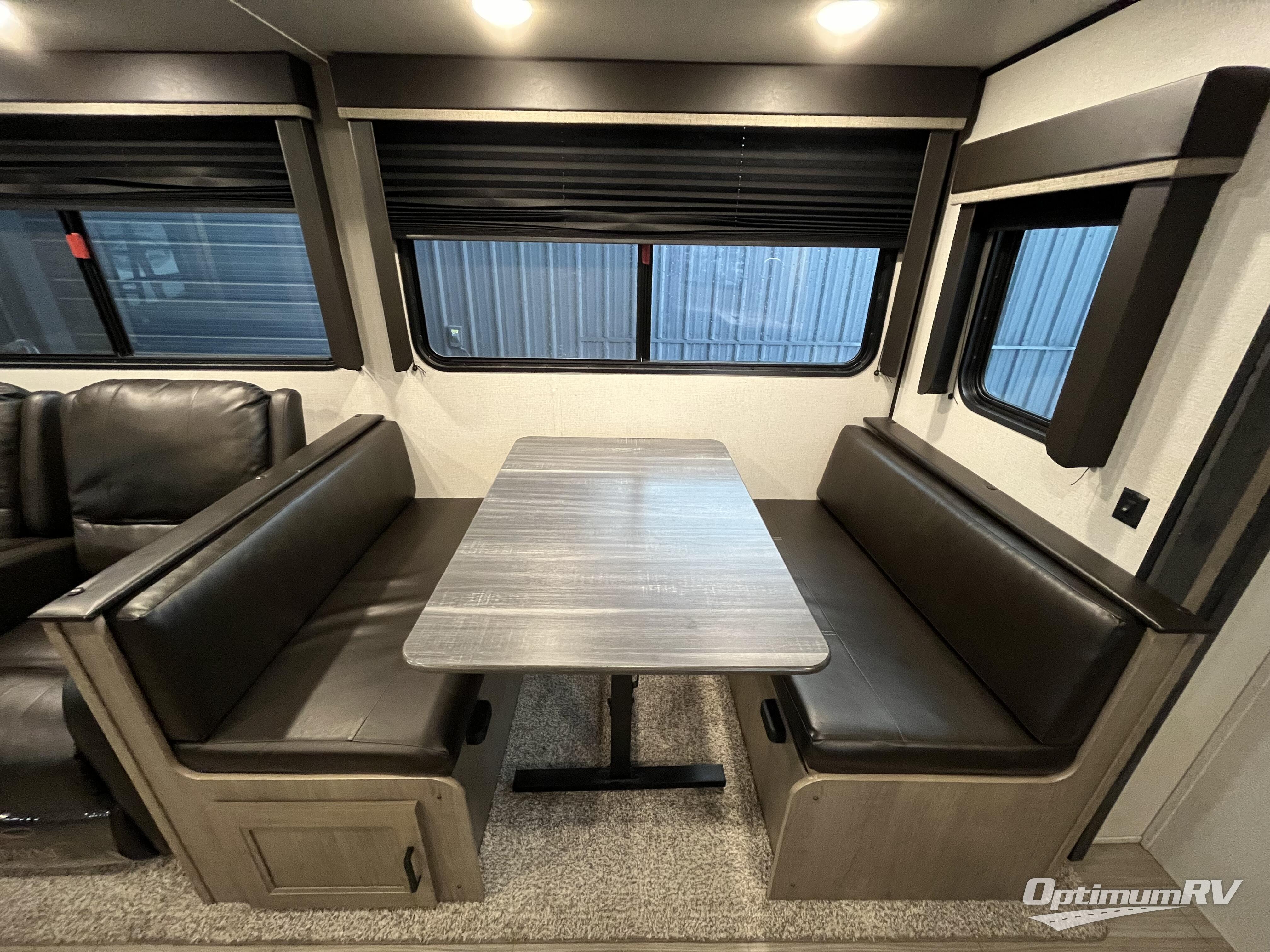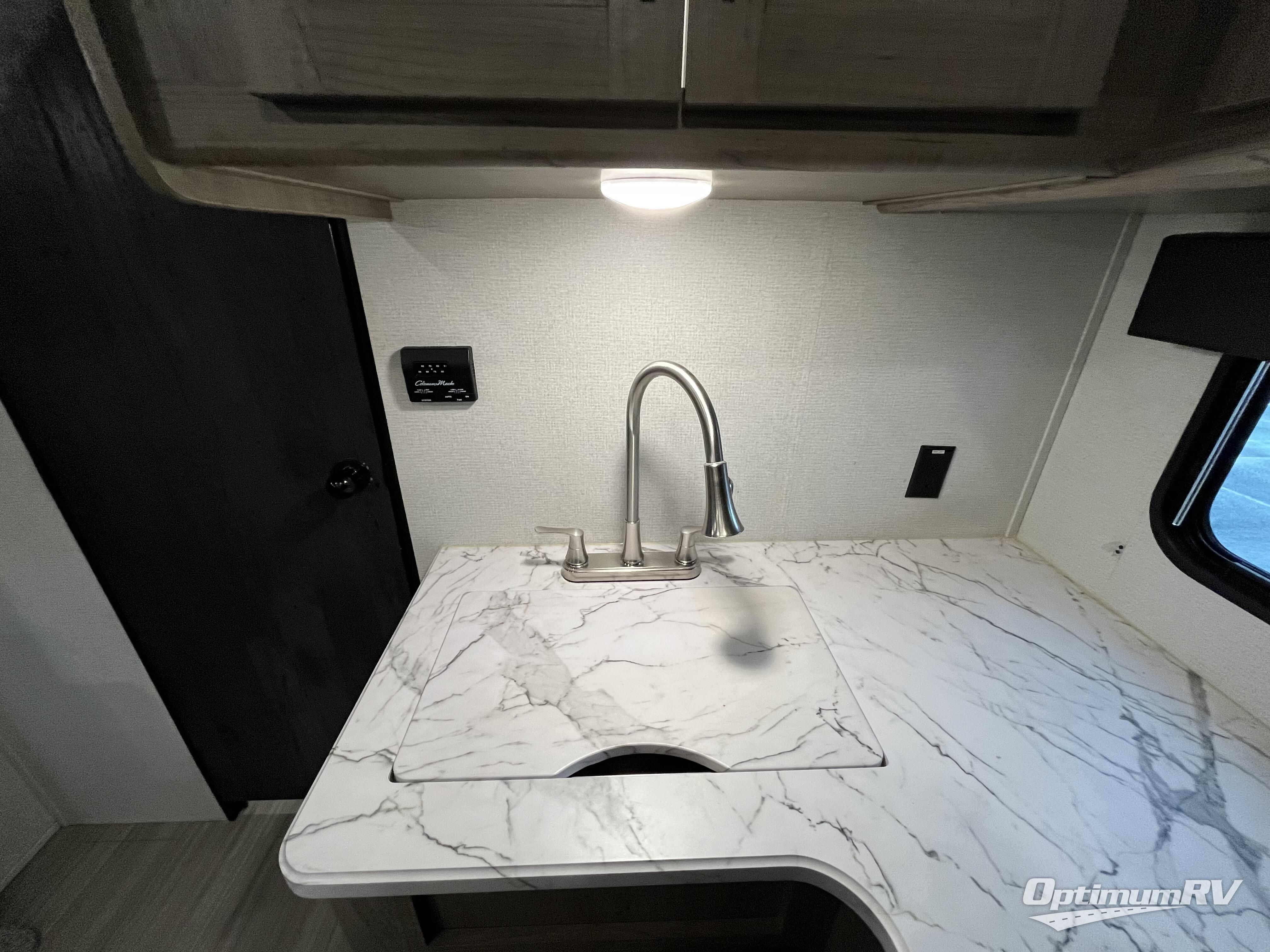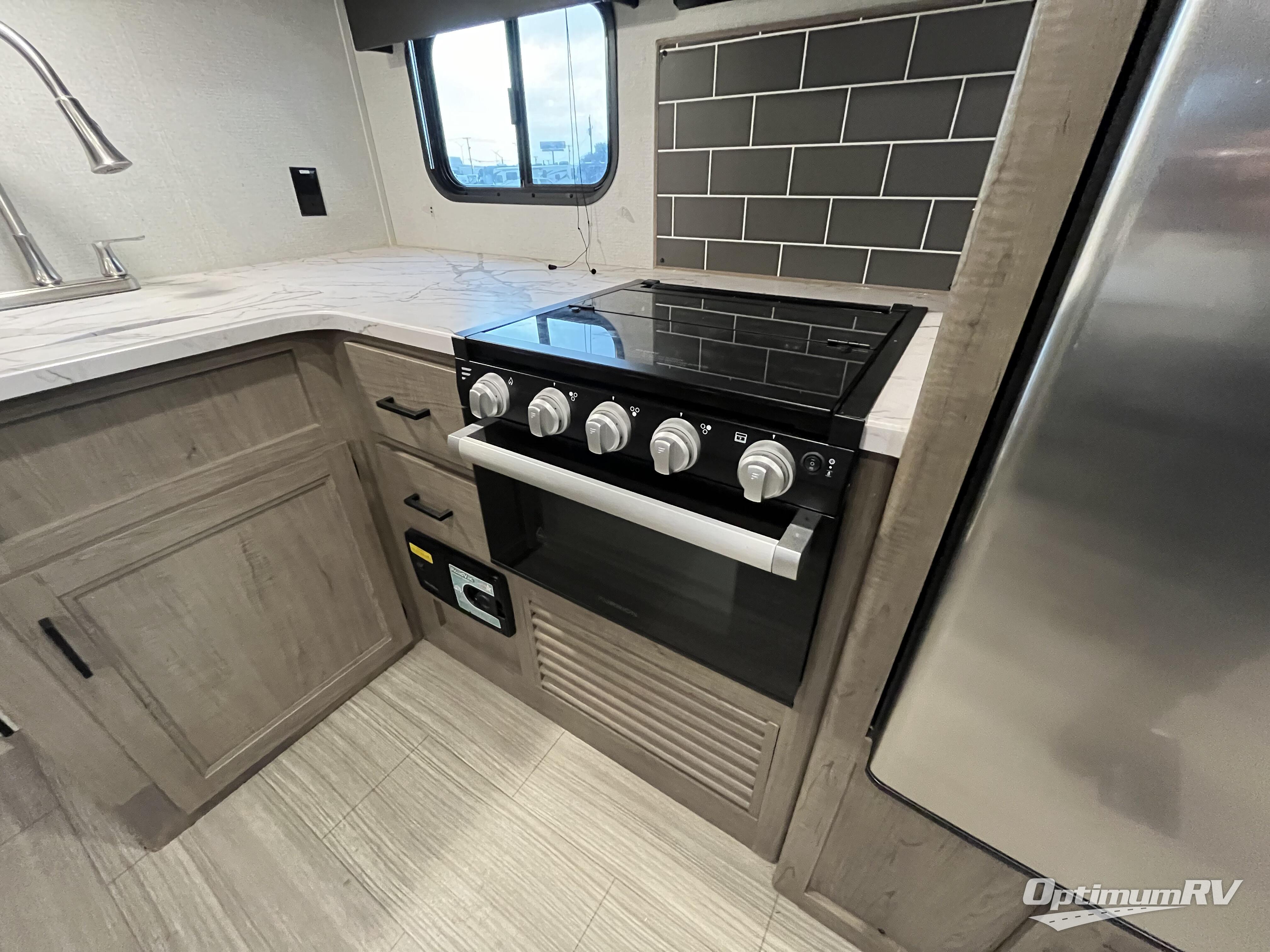 Get out there and experience nature at its best with this Hideout travel trailer! You and your guests will appreciate the coat hooks next to the main entry door as you come inside from an afternoon hike and need to hang up your jackets and hoodies, and the fireplace will be a welcoming sight if the weather was dreary that day. In order to replenish your energy and fill your hungry bellies, you can prepare a hearty meal on the three-burner range in the full kitchen, and afterwards, you will certainly want to crash for the night on the queen-size bed in the front private bedroom.