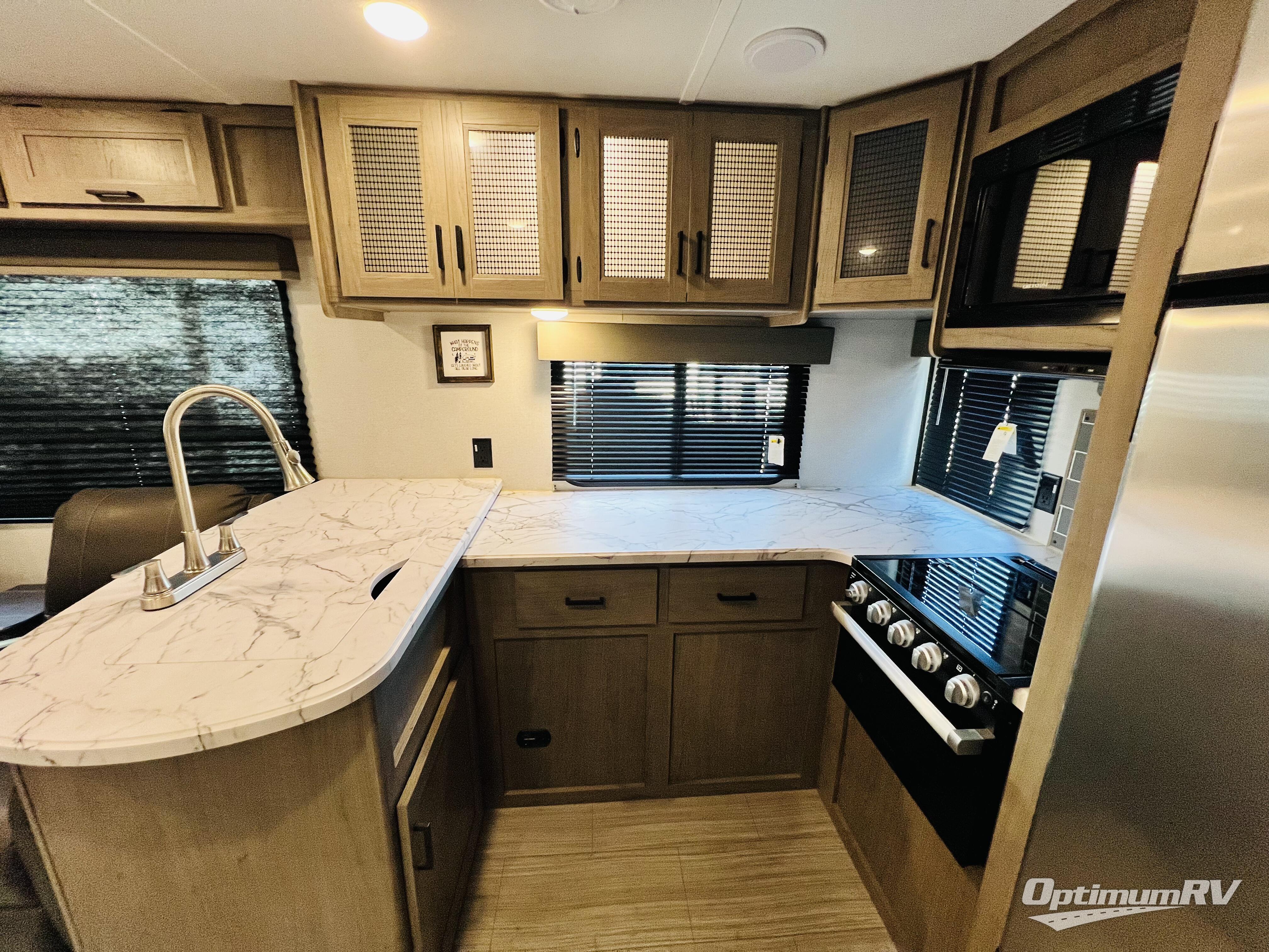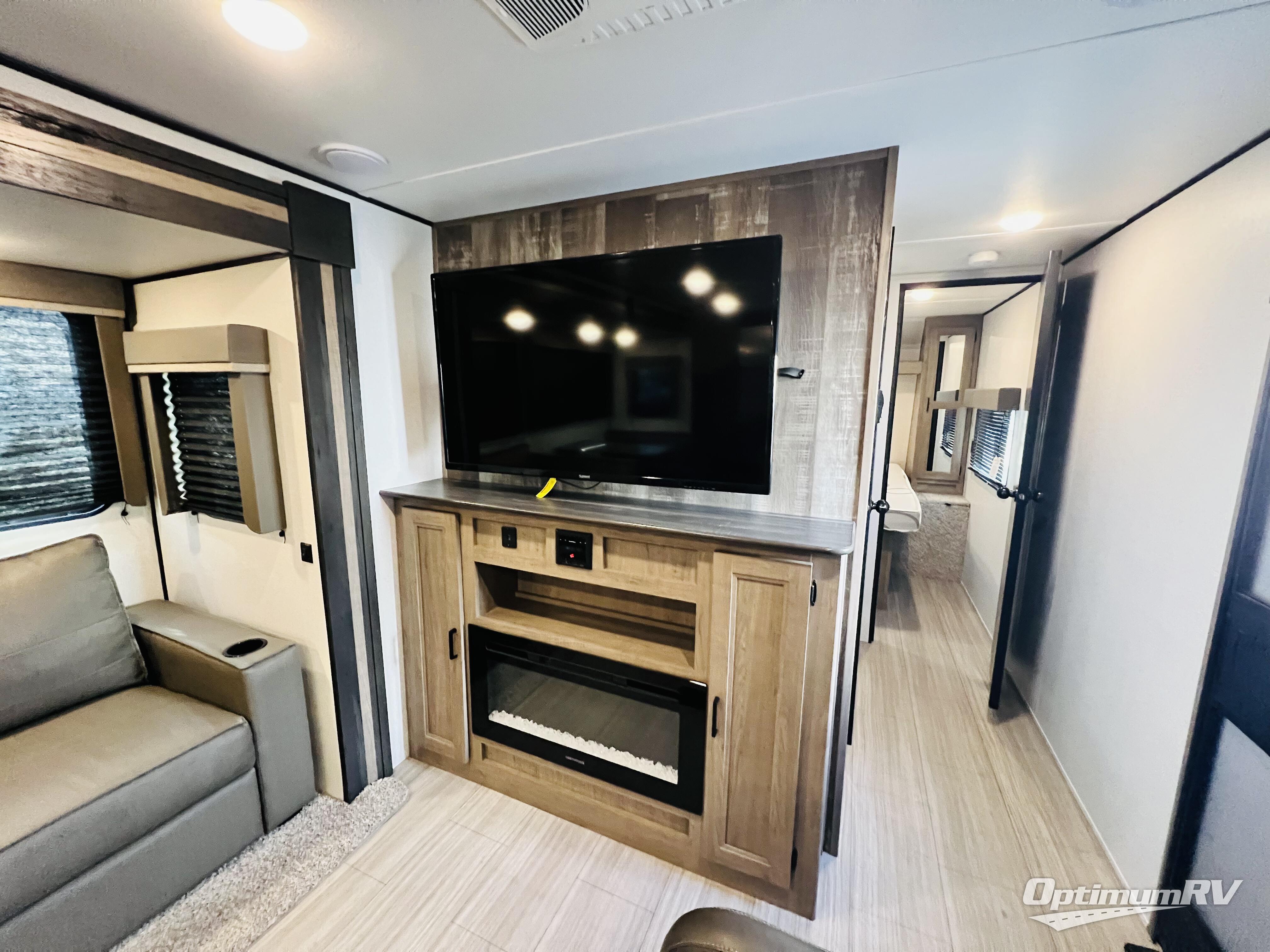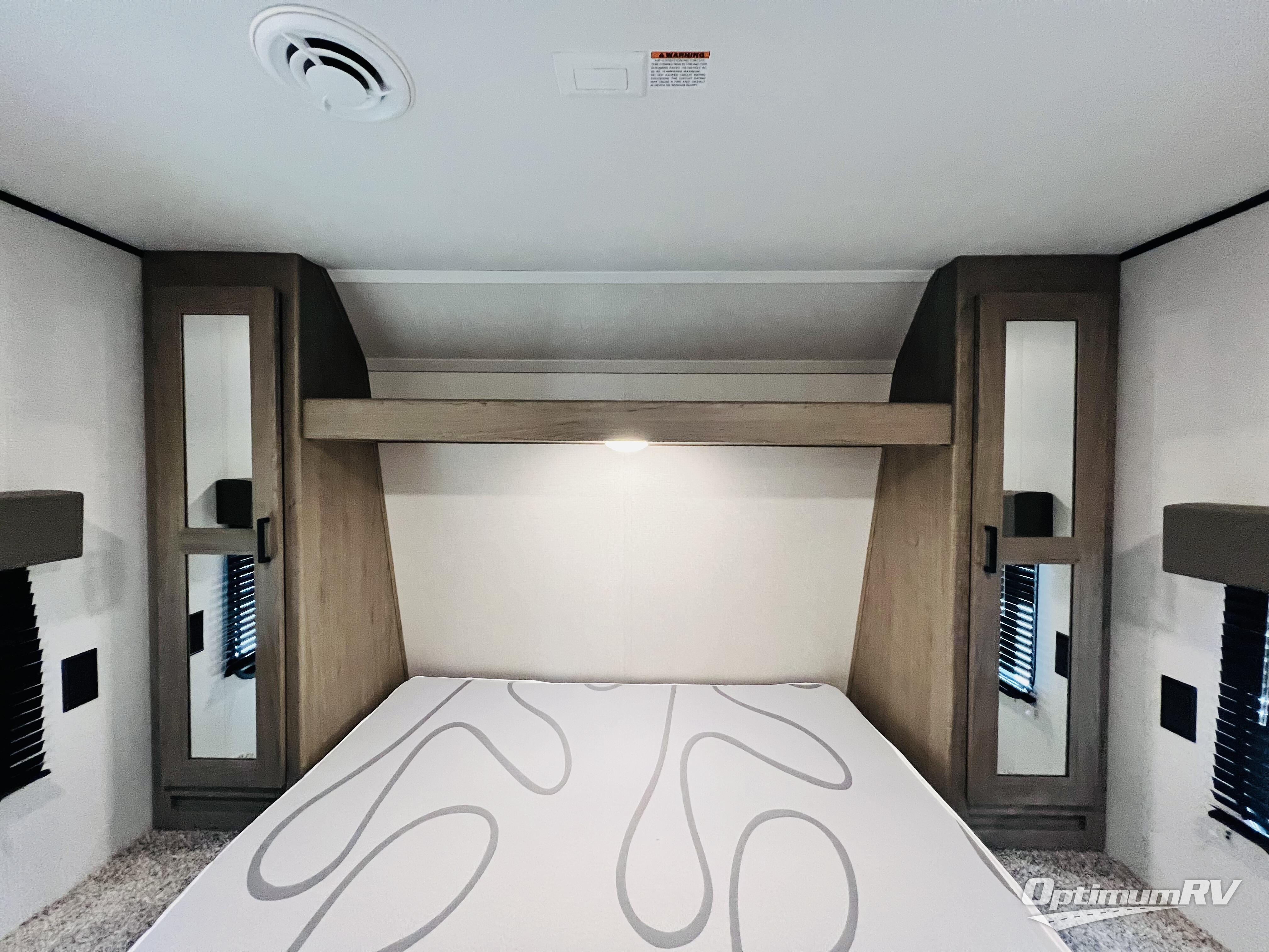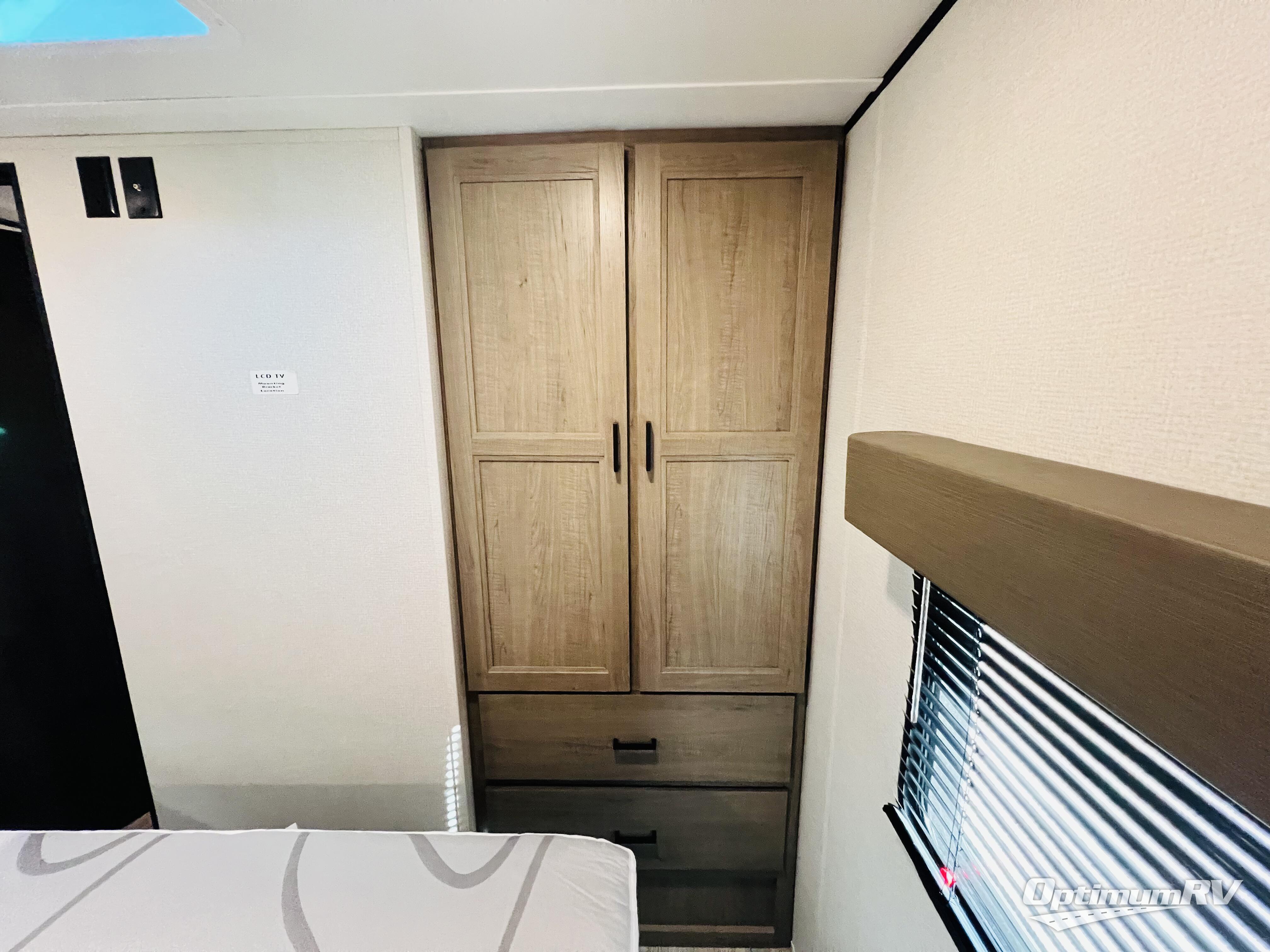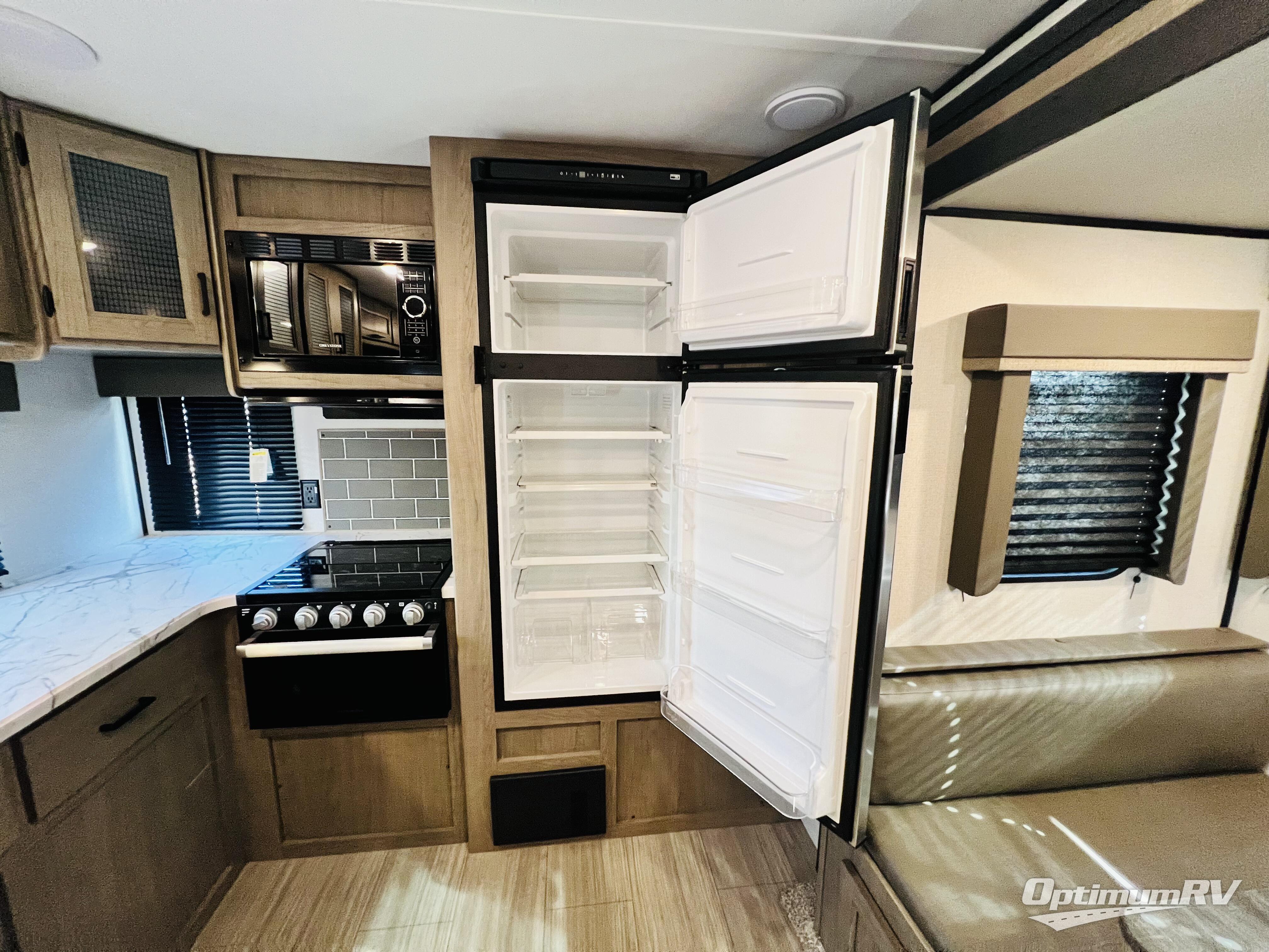You will love the rear kitchen layout and large slide in this Keystone Hideout travel trailer. With ample space to sleep three people, this unit is perfect for your family to enjoy. The hardest decision you will have to make while you are away from home is where you will fix your meals, inside or at the outdoor kitchen. If you decide to cook outside, you can also enjoy your meal underneath the lighted adjustable power awning as you take in the beautiful sunset. The full bathroom has everything you need to get ready for the day, like a 38" walk-in shower and linen closet, and it also is directly next to the front private bedroom.