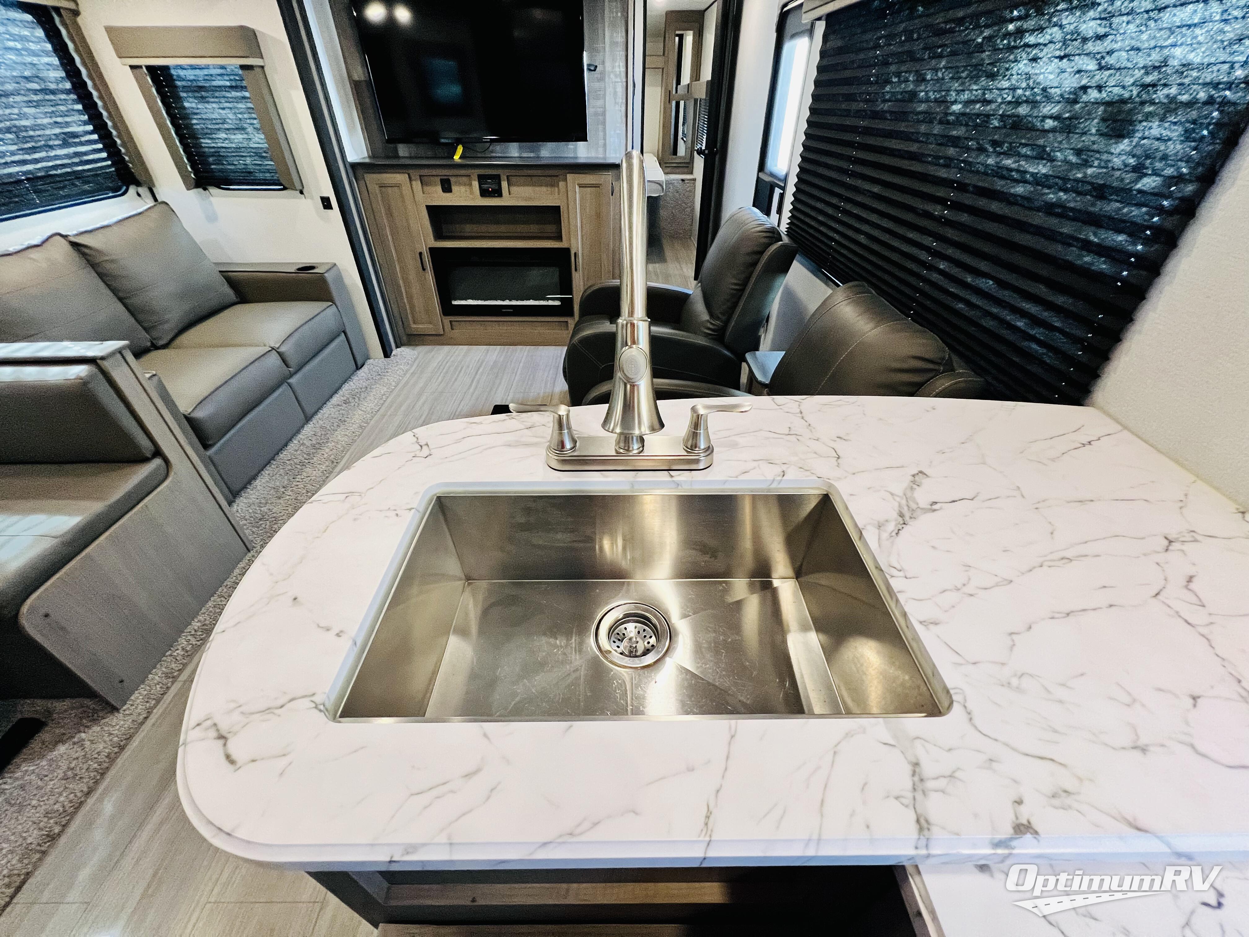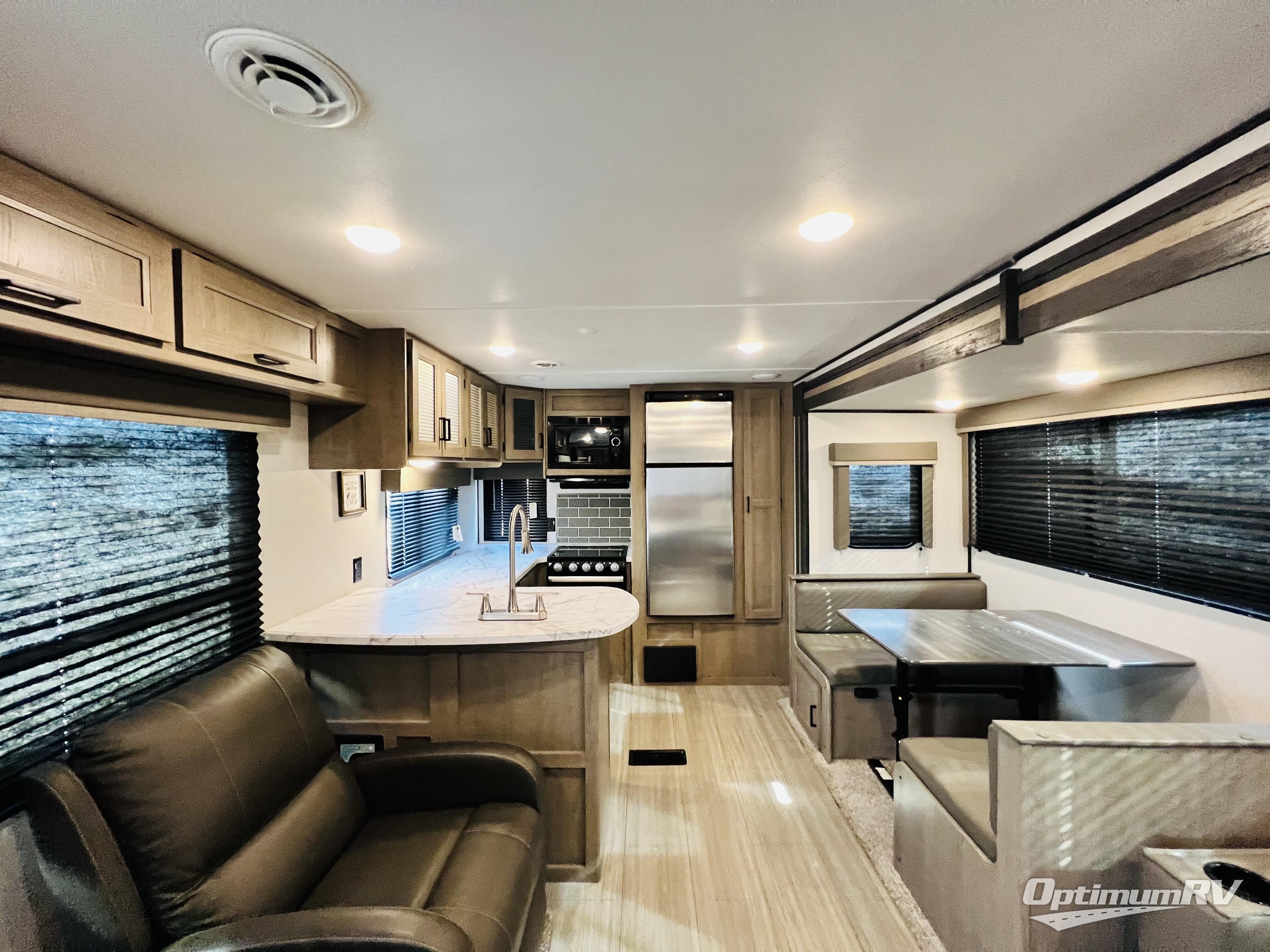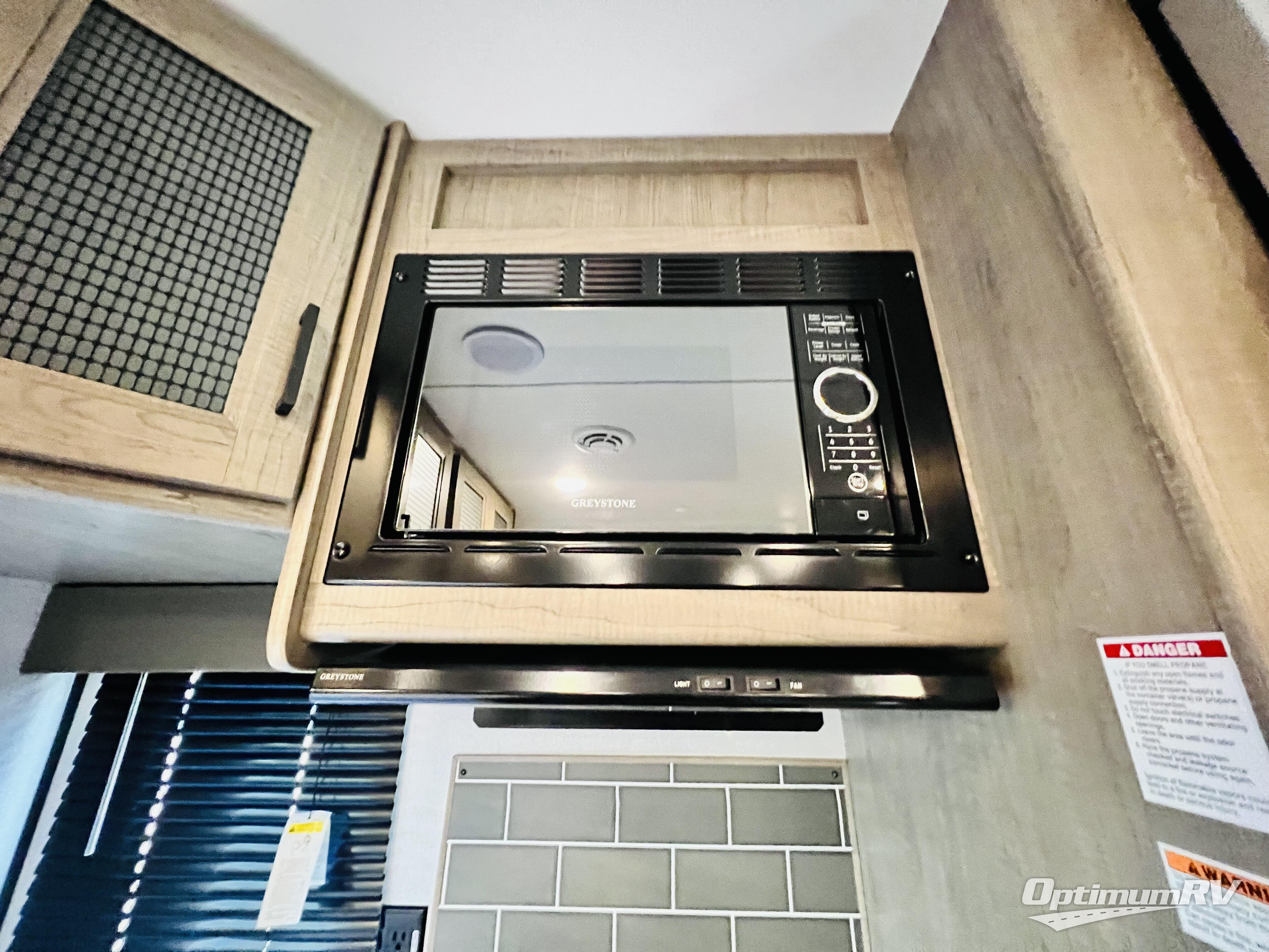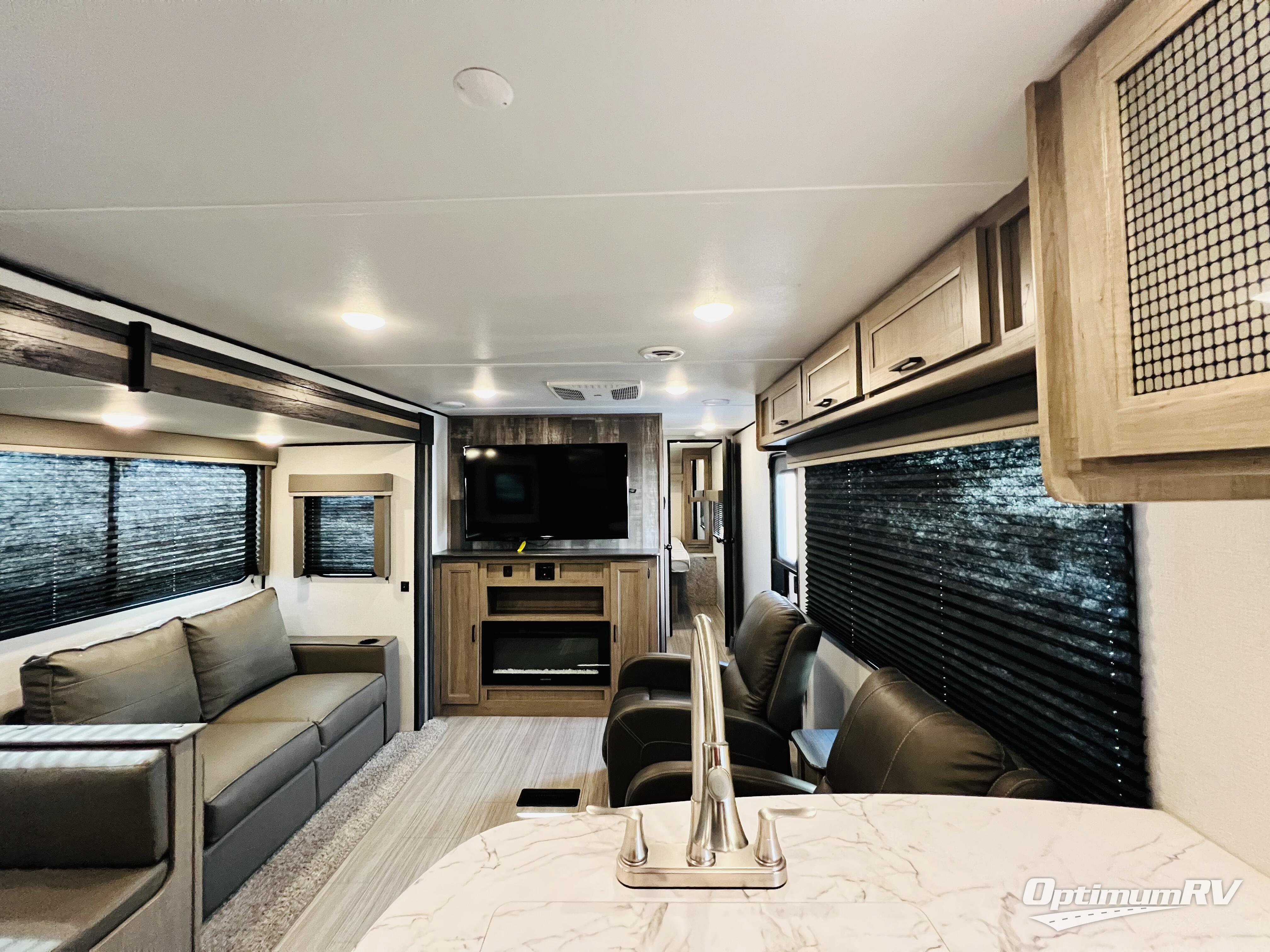 You will love the rear kitchen layout and large slide in this Keystone Hideout travel trailer. With ample space to sleep three people, this unit is perfect for your family to enjoy. The hardest decision you will have to make while you are away from home is where you will fix your meals, inside or at the outdoor kitchen. If you decide to cook outside, you can also enjoy your meal underneath the lighted adjustable power awning as you take in the beautiful sunset. The full bathroom has everything you need to get ready for the day, like a 38" walk-in shower and linen closet, and it also is directly next to the front private bedroom.
