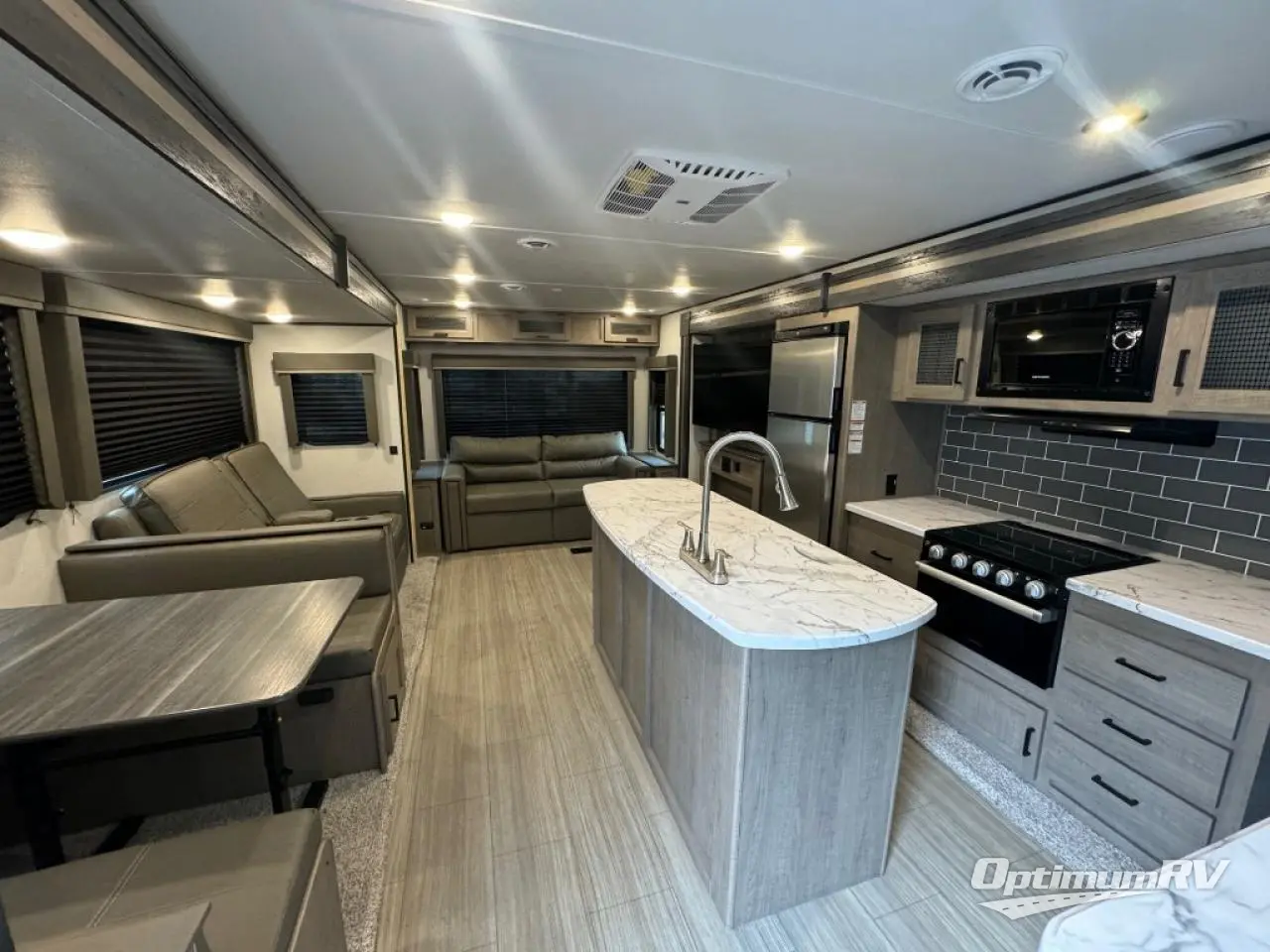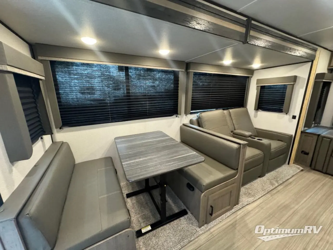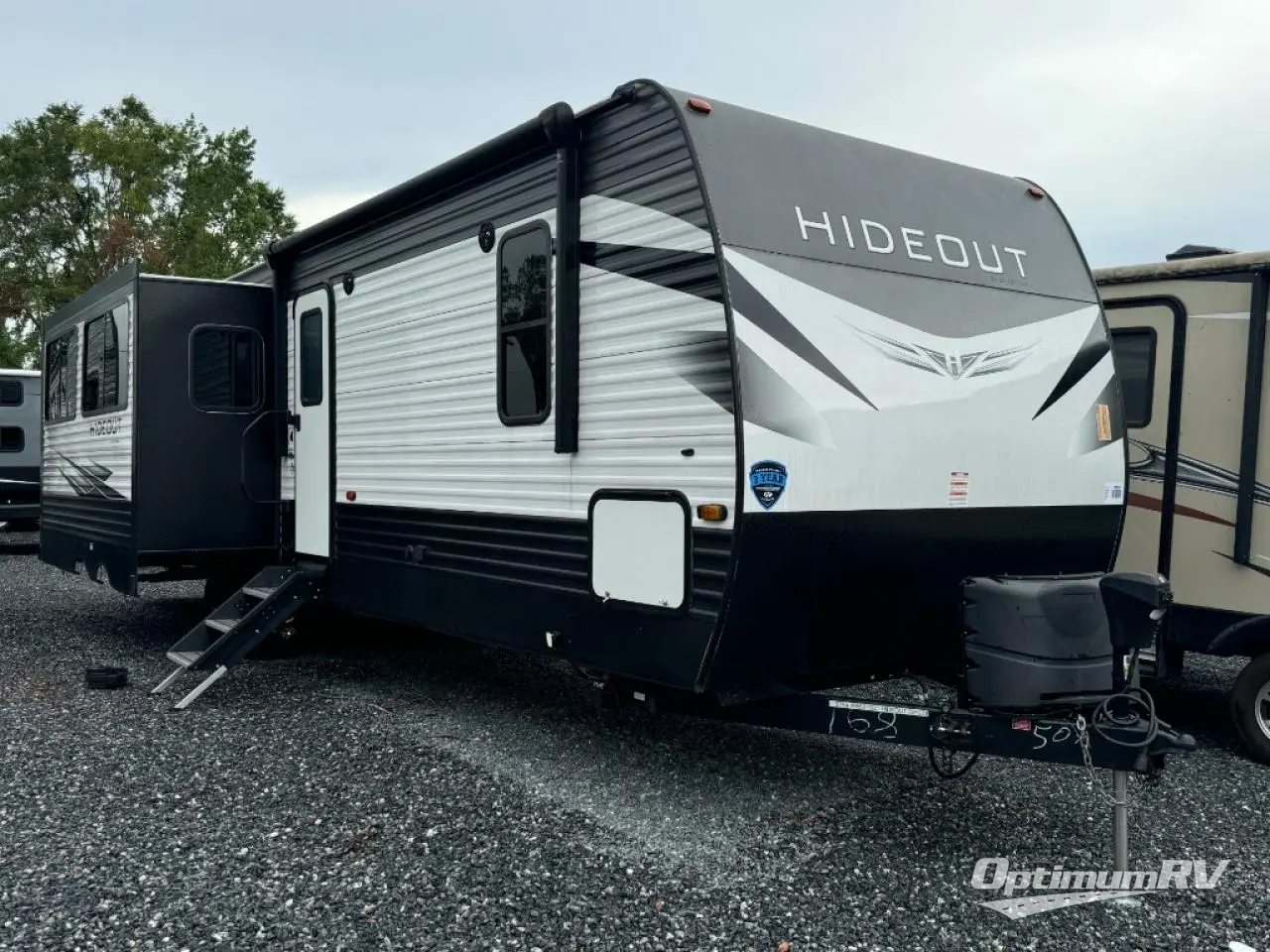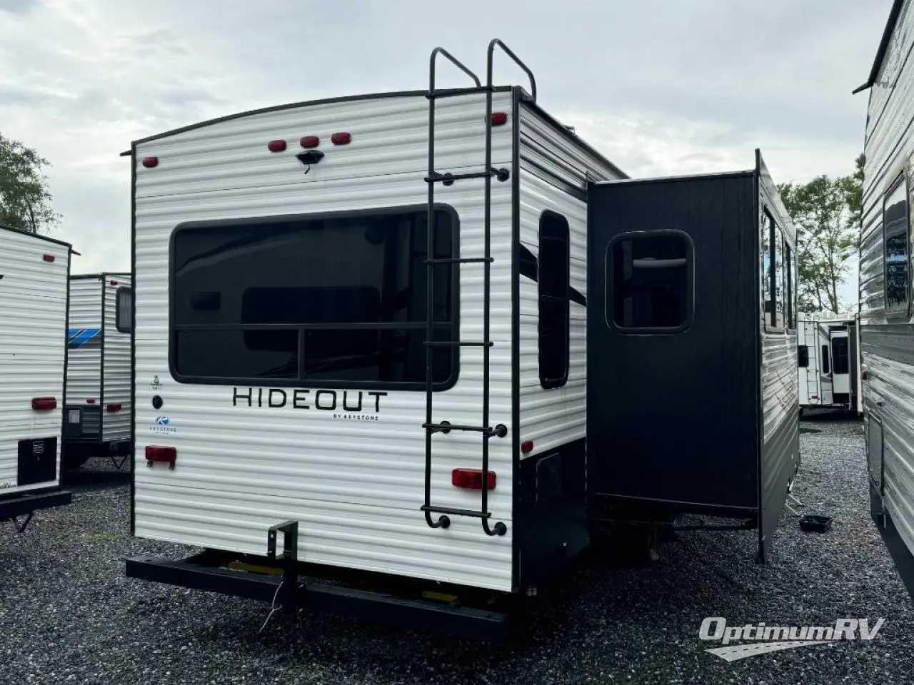 Enjoy all of your favorite camping locations when making this Hideout travel trailer your home. This unit features a rear living layout and two opposing slides for added interior space which helps this trailer sleep five people each night. In the kitchen you will find plenty of counter space at the island, and the large sink will be helpful for cleaning up after dinner. Relax comfortably in the theater seating before heading off to bed in the master suite.