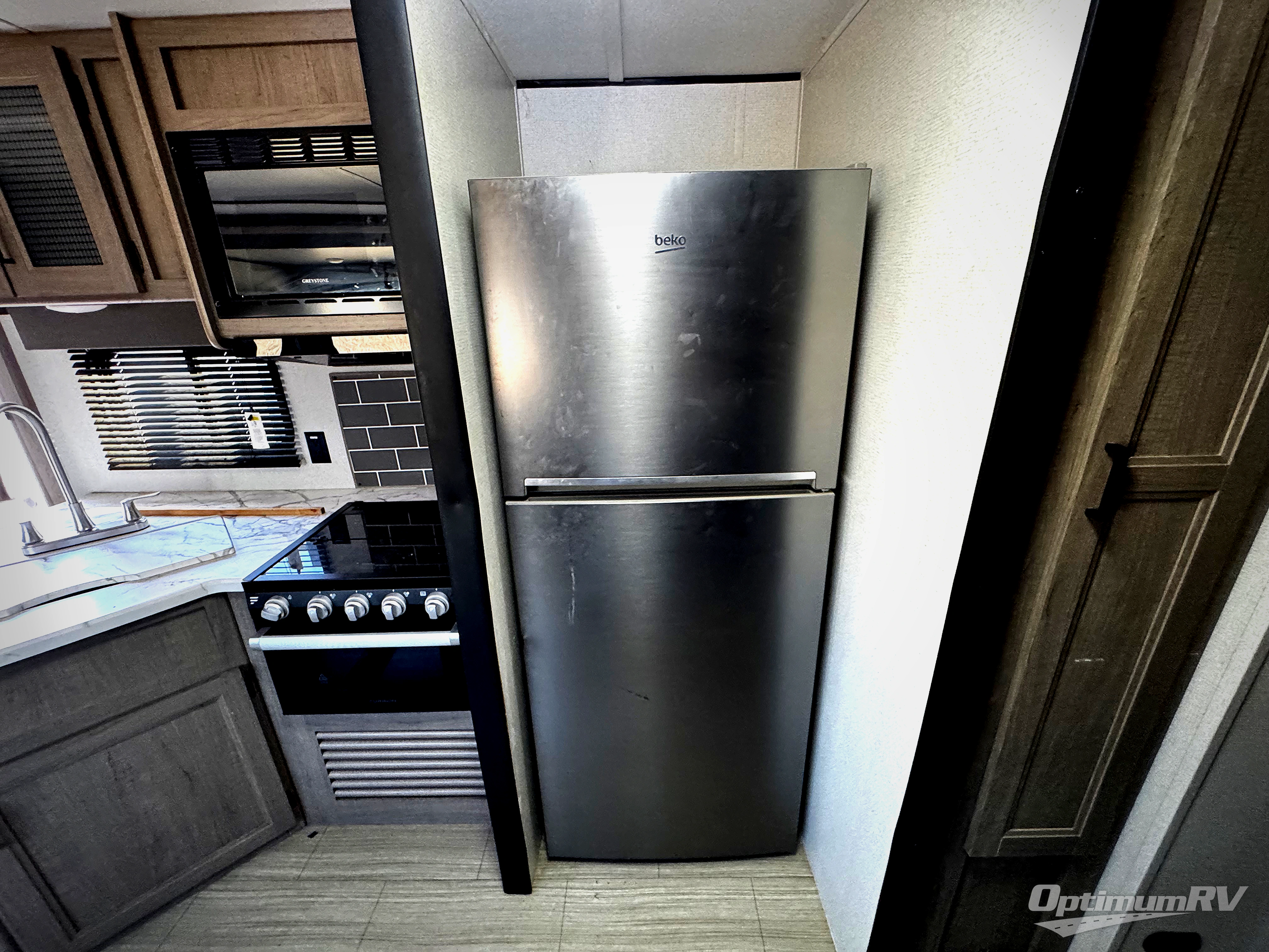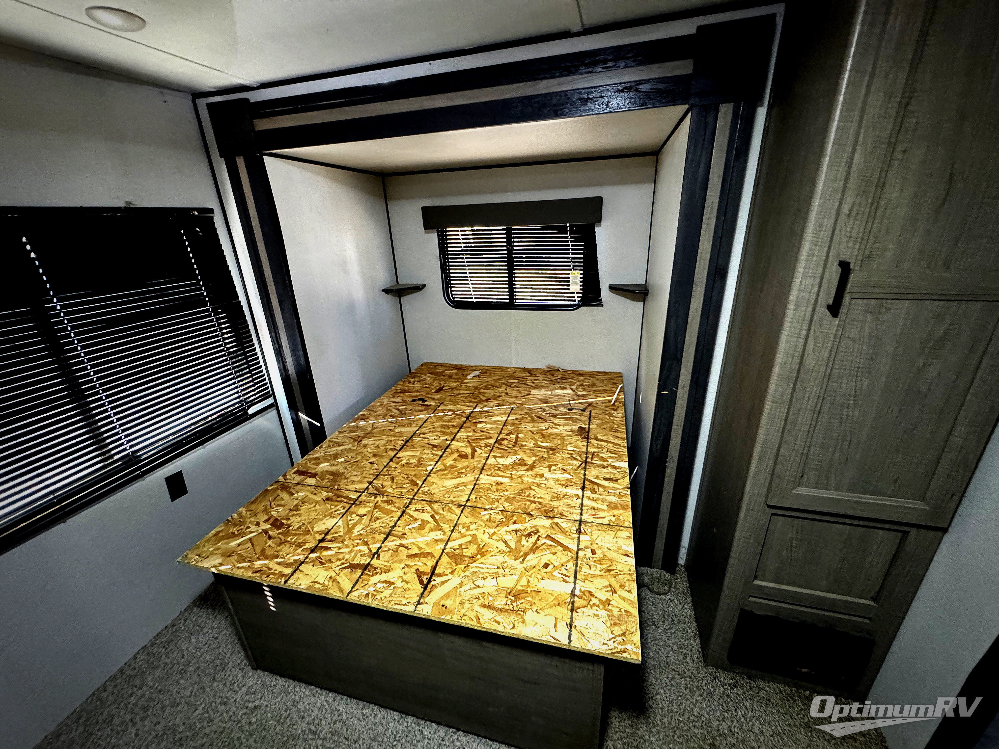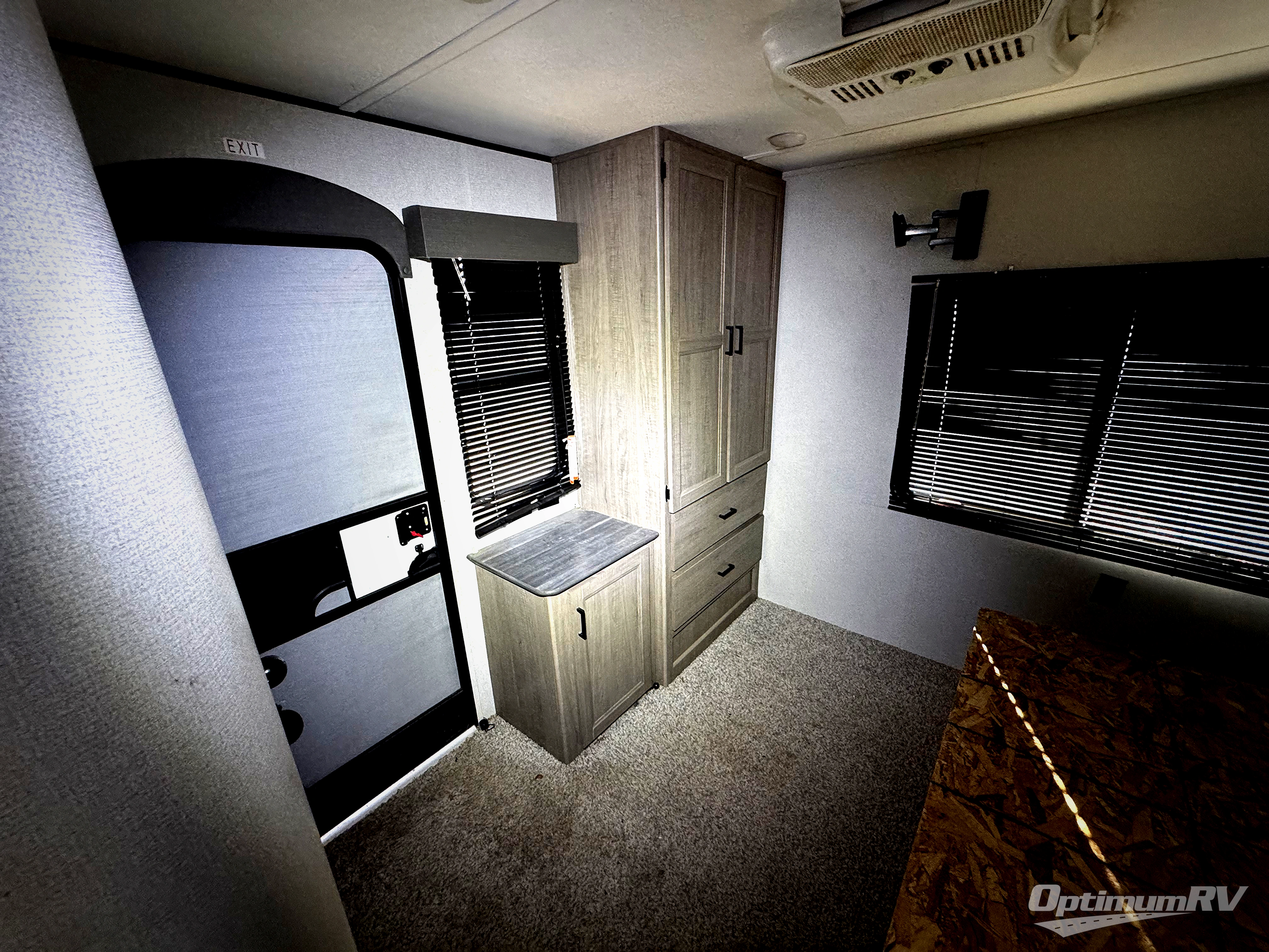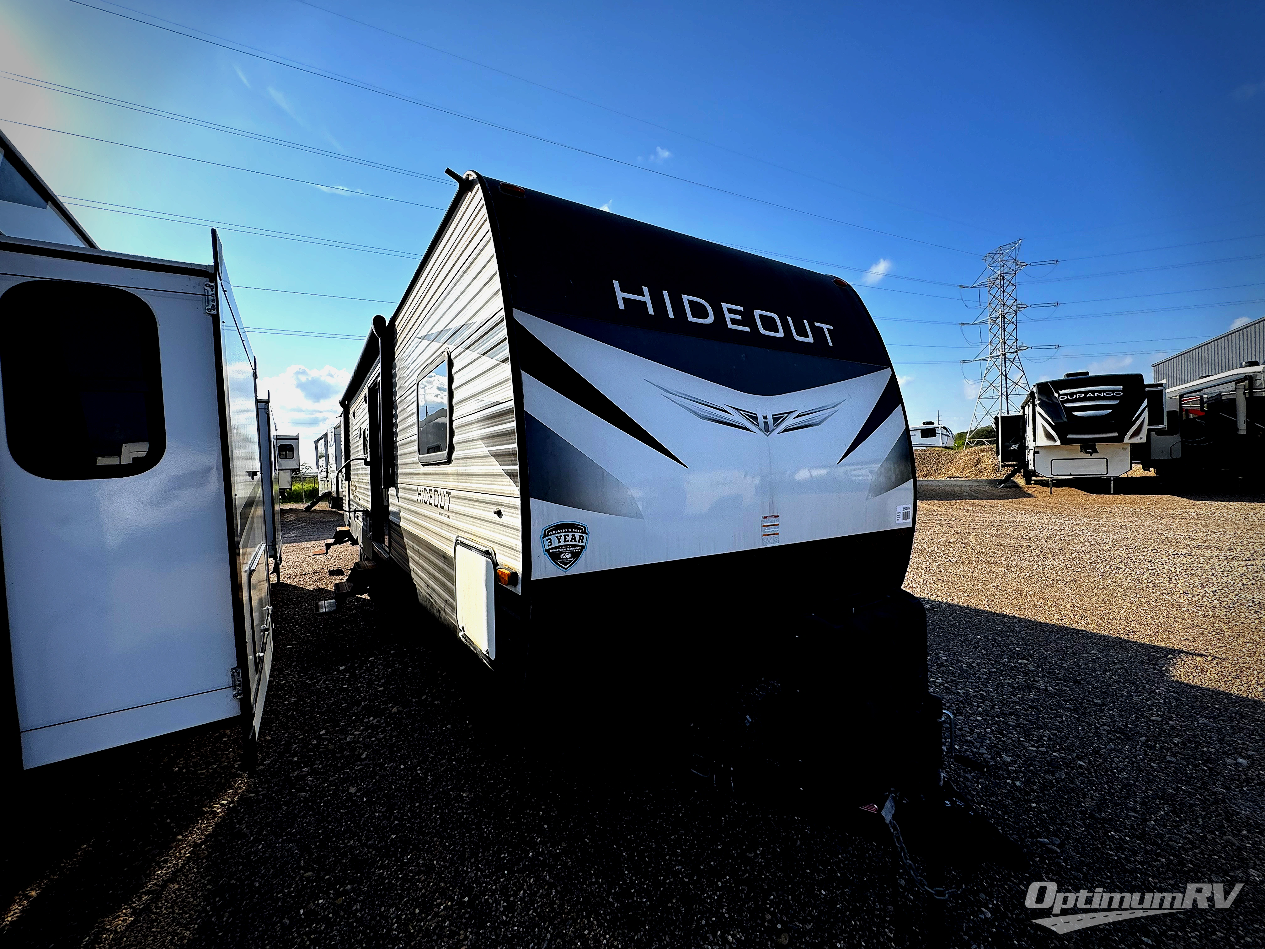 Let this Hideout destination trailer by Keystone be your home away from home. With its exceptional two master suites, you will find plenty of room for your whole family, as well as extra friends. This model features a full and half bath making it possible for each bedroom to have access to its own bathroom. Not only does each bedroom have its own bathroom, but it also has plenty of storage space with large wardrobes included in each. All of these extraordinary features are made possible because of the three slides that have been included in this trailer's design.