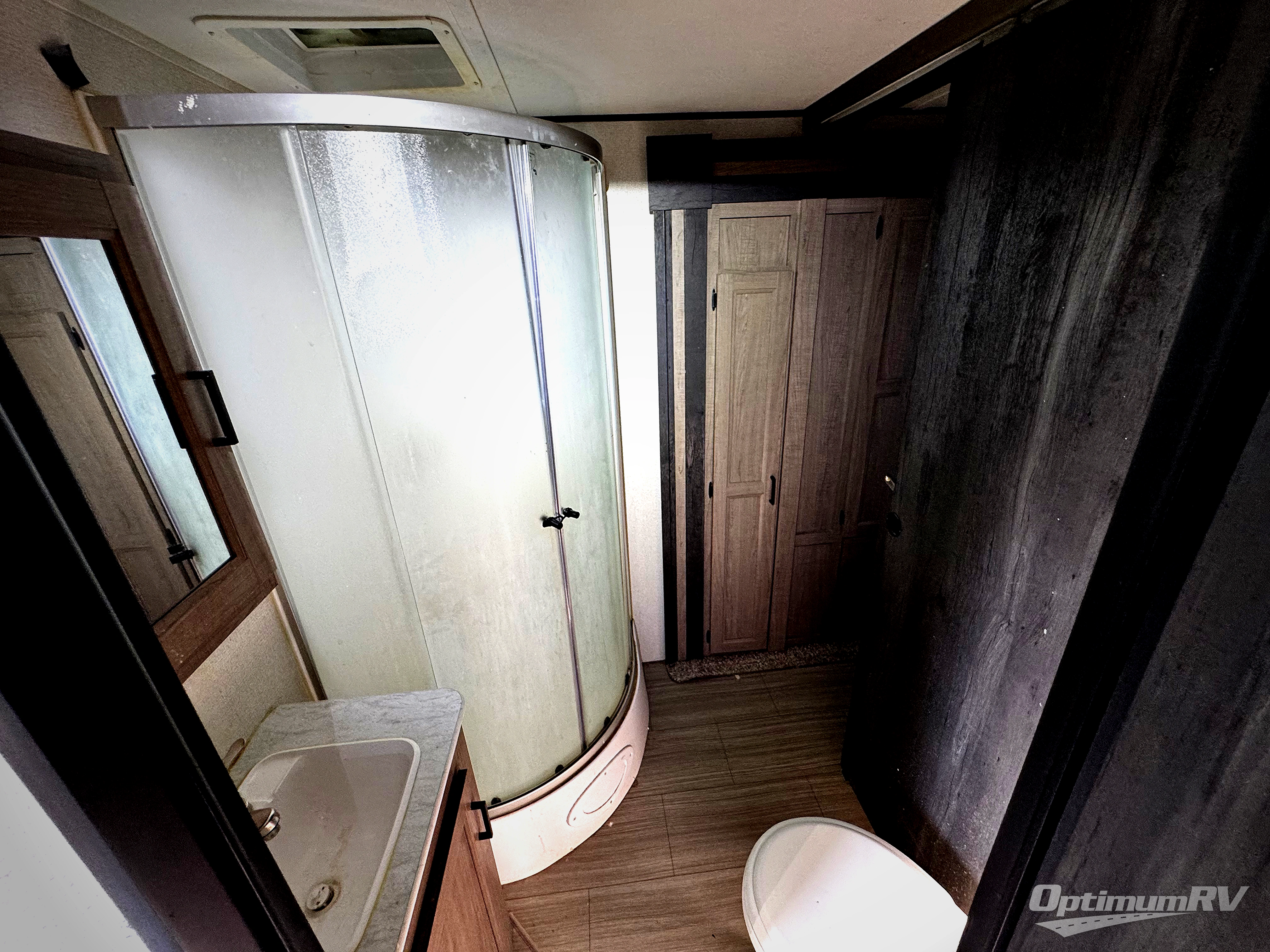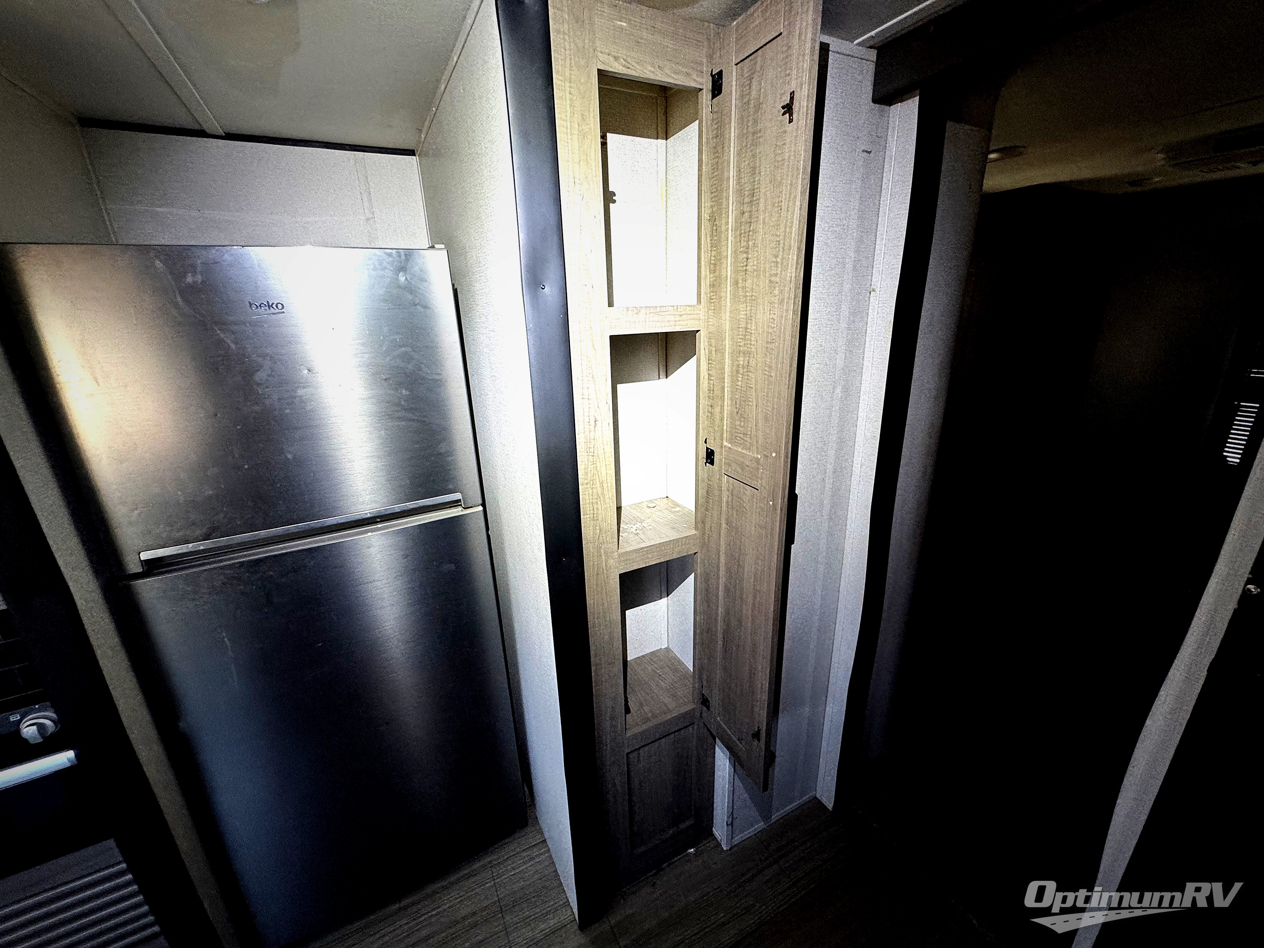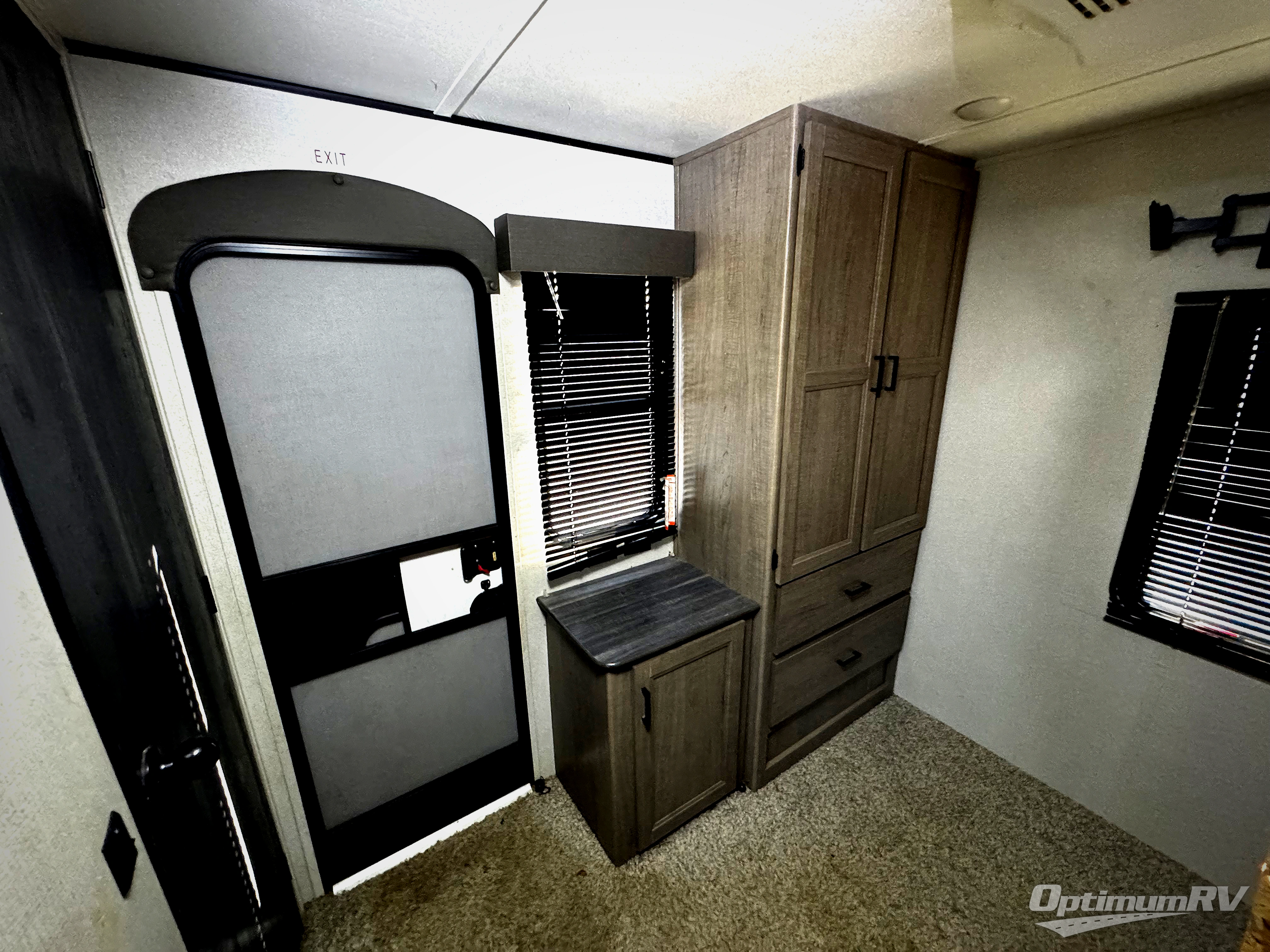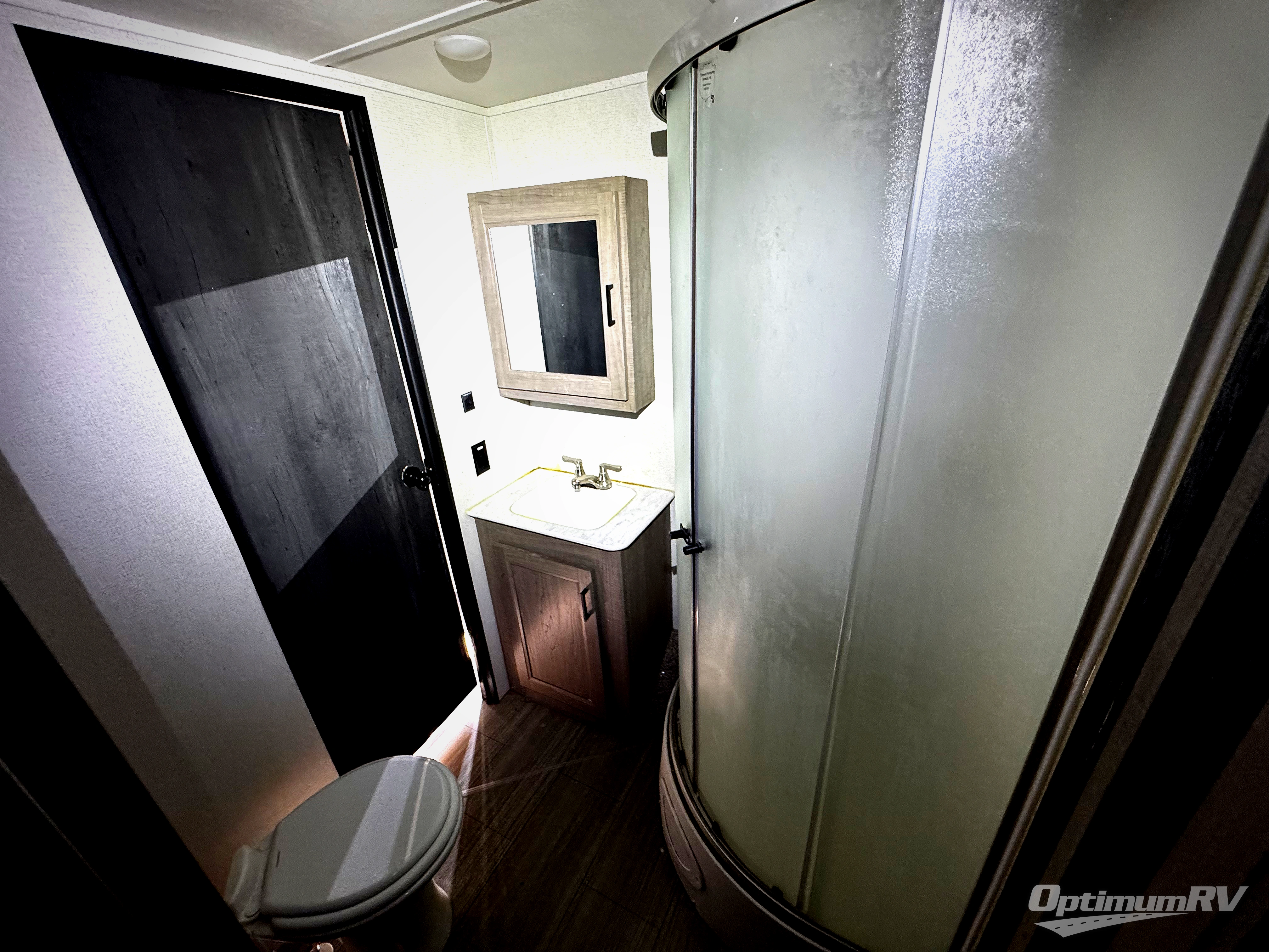 Let this Hideout destination trailer by Keystone be your home away from home. With its exceptional two master suites, you will find plenty of room for your whole family, as well as extra friends. This model features a full and half bath making it possible for each bedroom to have access to its own bathroom. Not only does each bedroom have its own bathroom, but it also has plenty of storage space with large wardrobes included in each. All of these extraordinary features are made possible because of the three slides that have been included in this trailer's design.