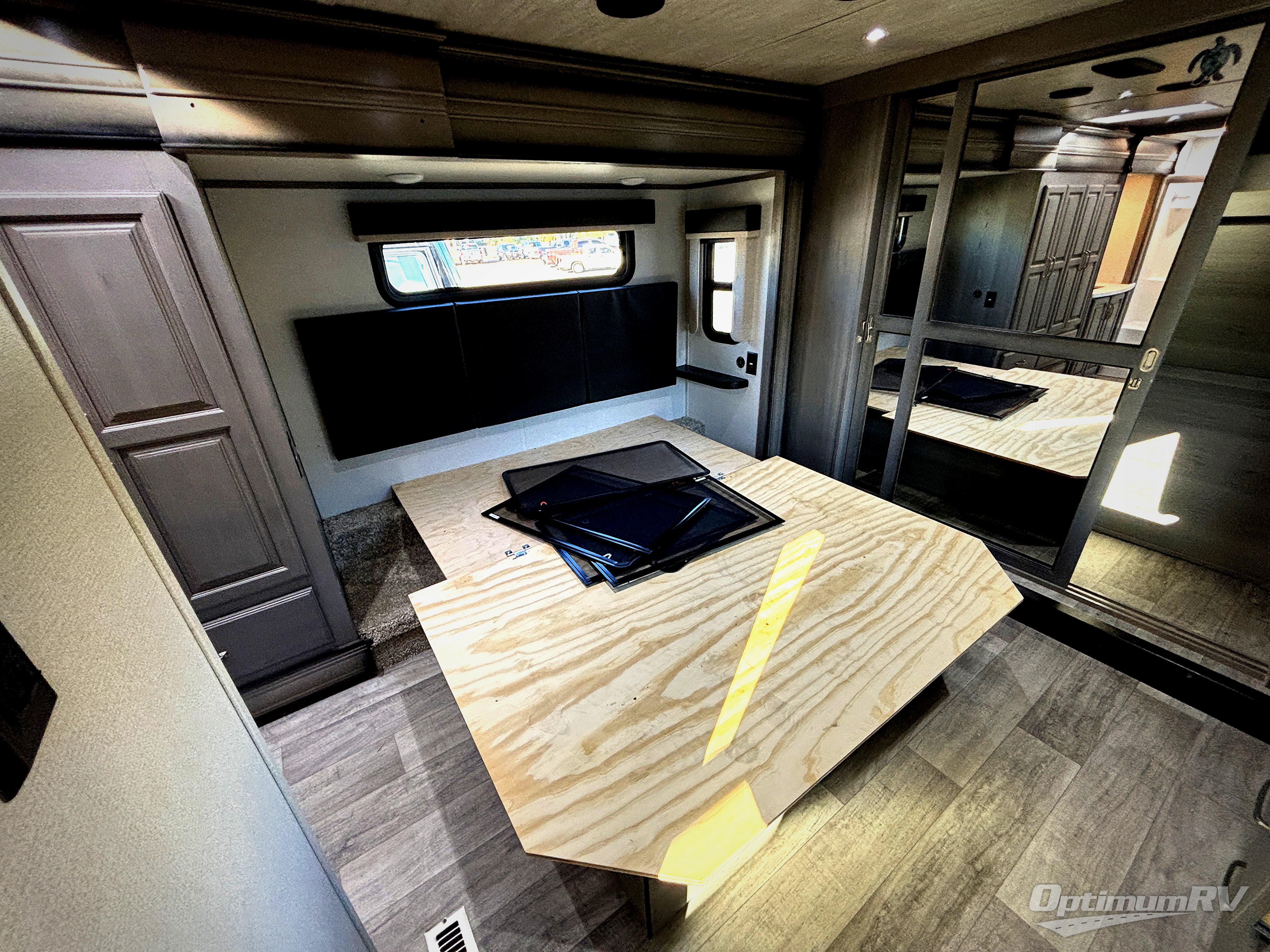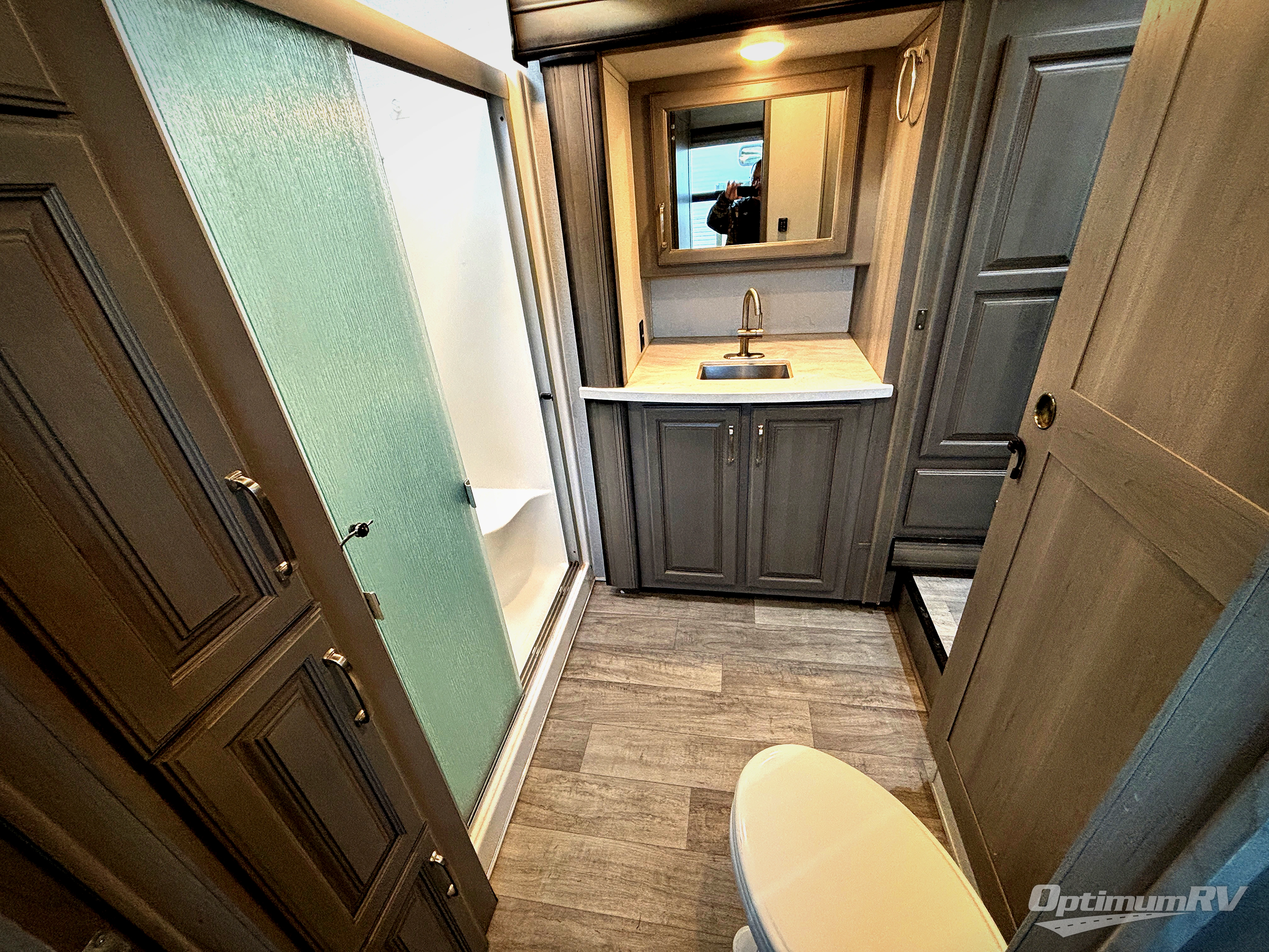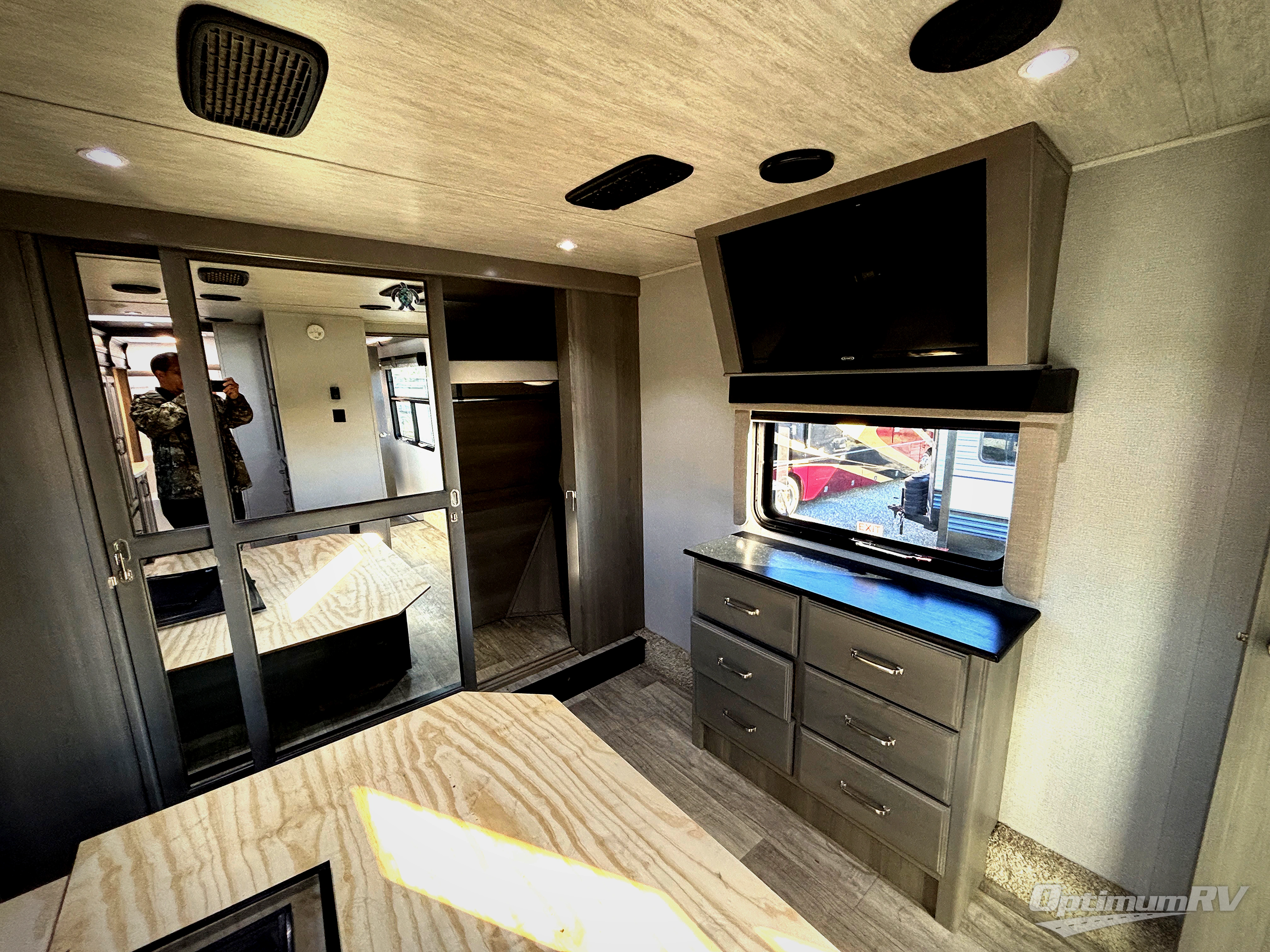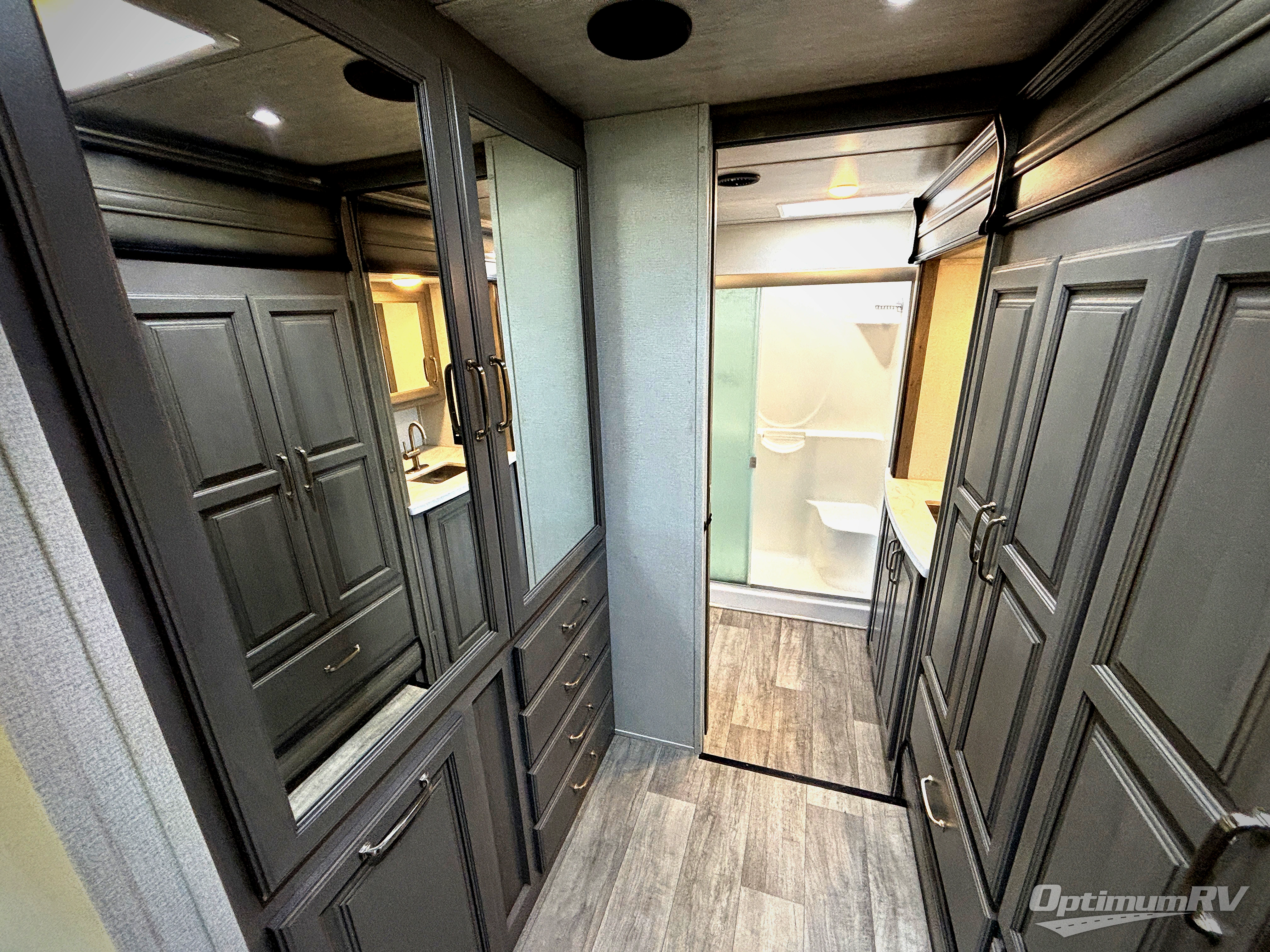 With a large, unique master suite, this Montana fifth wheel is sure to provide you with the very best vacations! Not only does the bedroom have one full-width closet, but it also has a second walk-in closet which makes this space feel glamorous. Plus, you have even more storage space with the under-bed storage, and the 32" LED HDTV rests on the dresser across from the queen-size bed so that you can easily view the news before bed. The bedroom connects to the dual-entry bathroom so that you can have discreet access into the 48" x 30" shower in the morning, and once you make your way out into the main living area, you'll be pleasantly surprised to find power theater seating across from the fireplace and 50" LED HDTV for an additional lounge space.