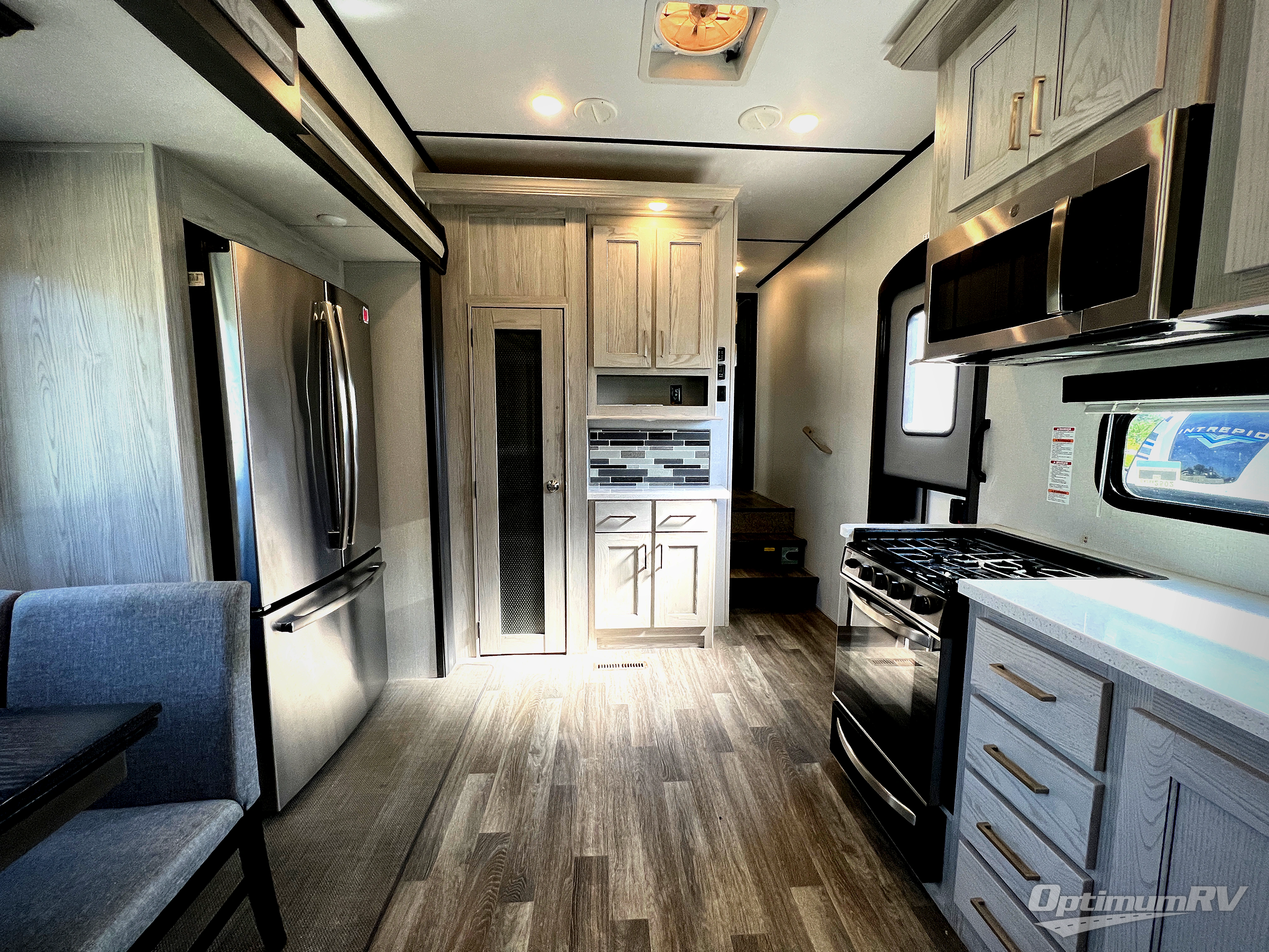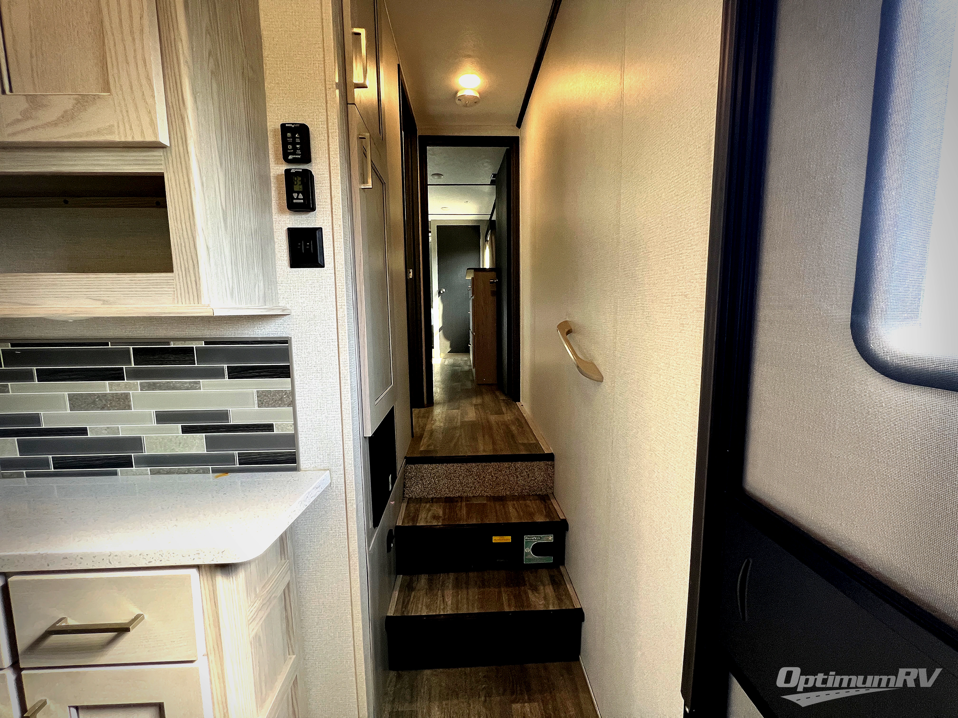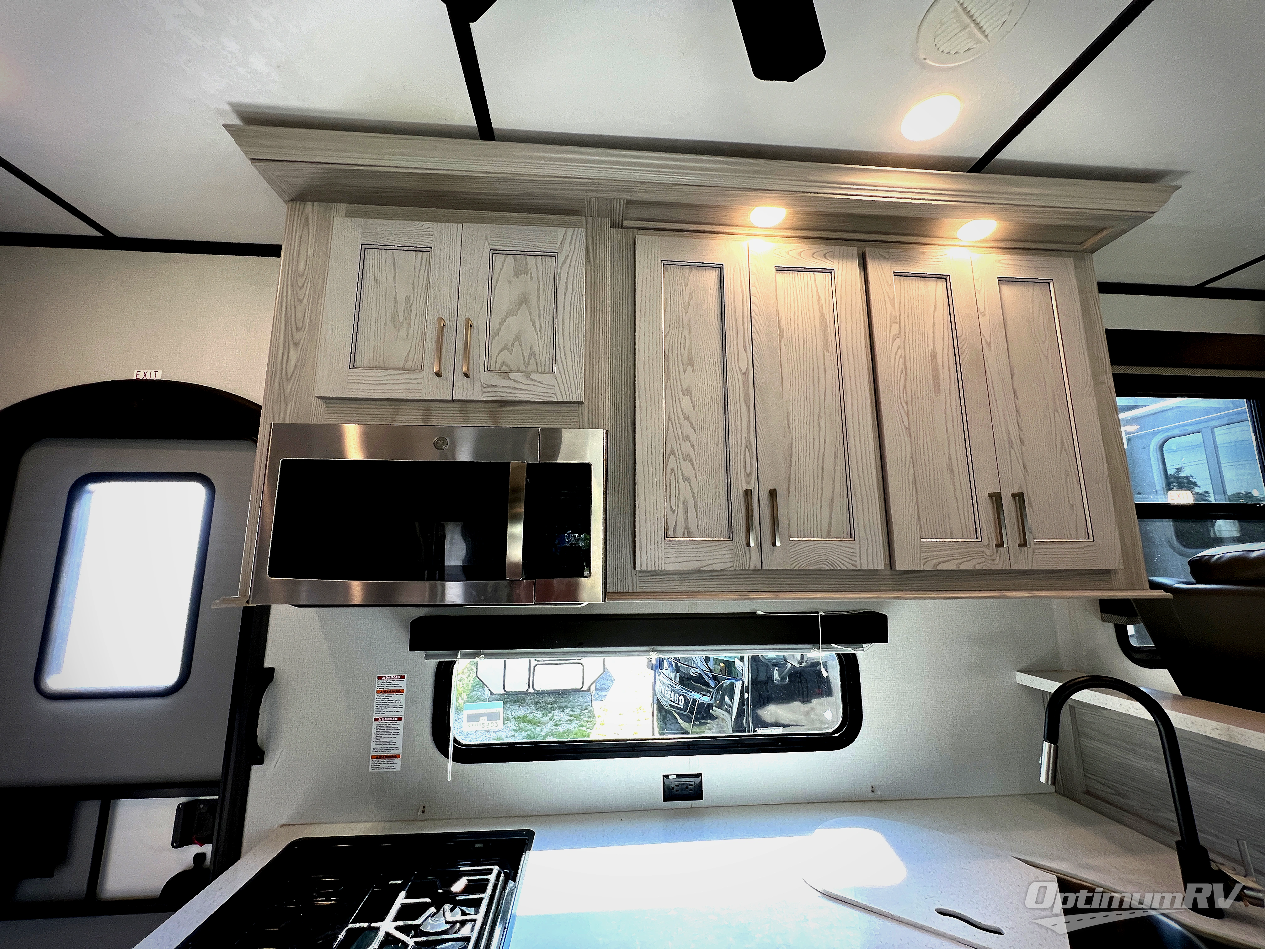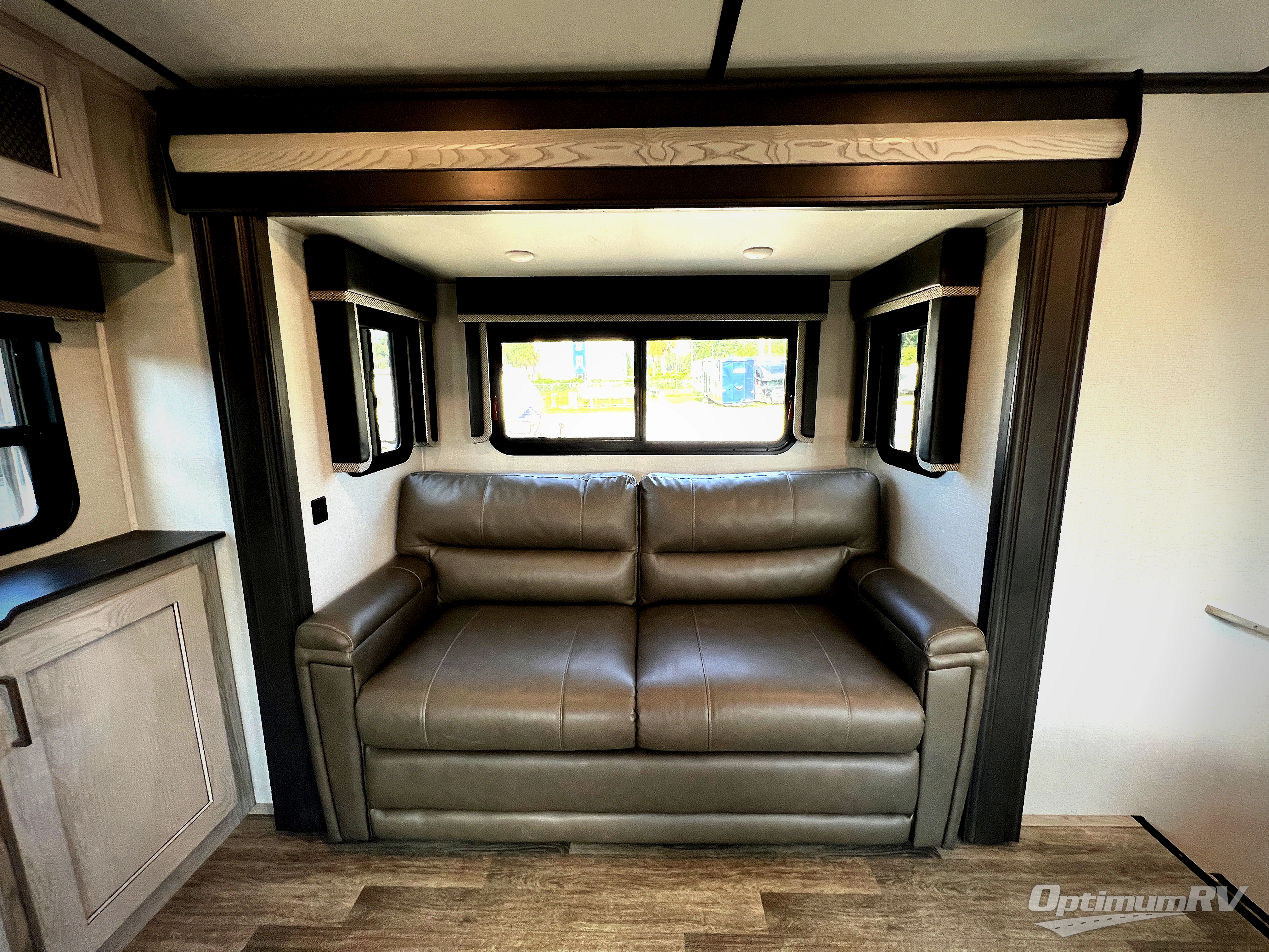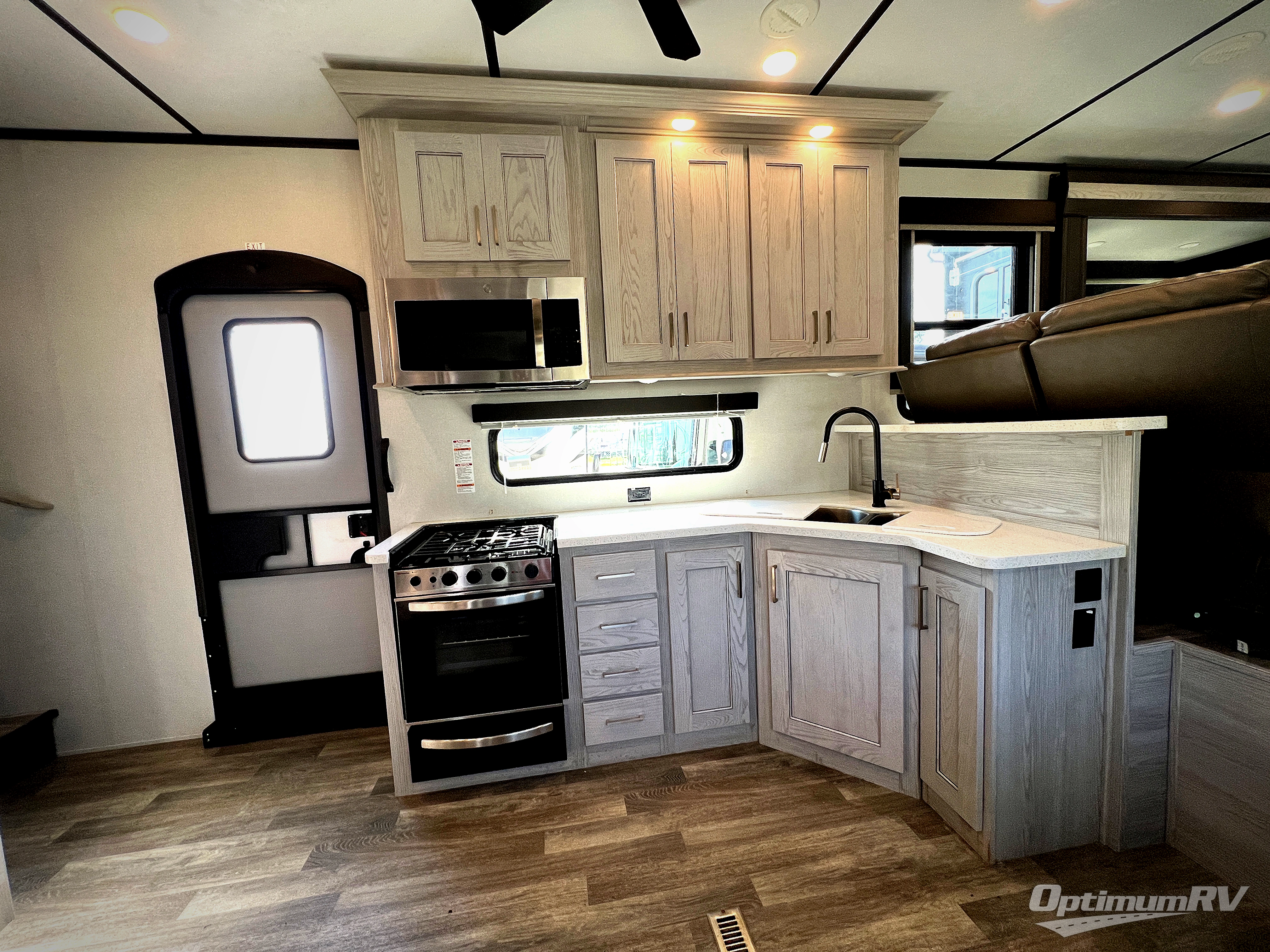 With each Montana High Country fifth wheel by Keystone you will enjoy family-friendly features, lightweight floorplans, and drop-frame construction for maximum storage. Each model is built for four season living with the heated and enclosed underbelly and the astrofoil insulated slide floors and underbelly. The Mystic Ash cabinetry, hardwood decorative slideout fascia, and accent crown molding create a luxurious fifth wheel everyone can get used to. These models include a Whisper Quiet A/C system to cool your space quietly and evenly, plus there is a 35,000 BTU furnace that will allow you to extend your camping season. The Montana High Country fifth wheels are equipped with a Road armor shock absorbing hitch pin for easy towing, and set-up will be a breeze with the Hitch Vision with LED lighting. There are many more features to love about these fifth wheels, like the MaxTurn front cap, the Solera series power awning(s), the residential appliances, and the list goes on!