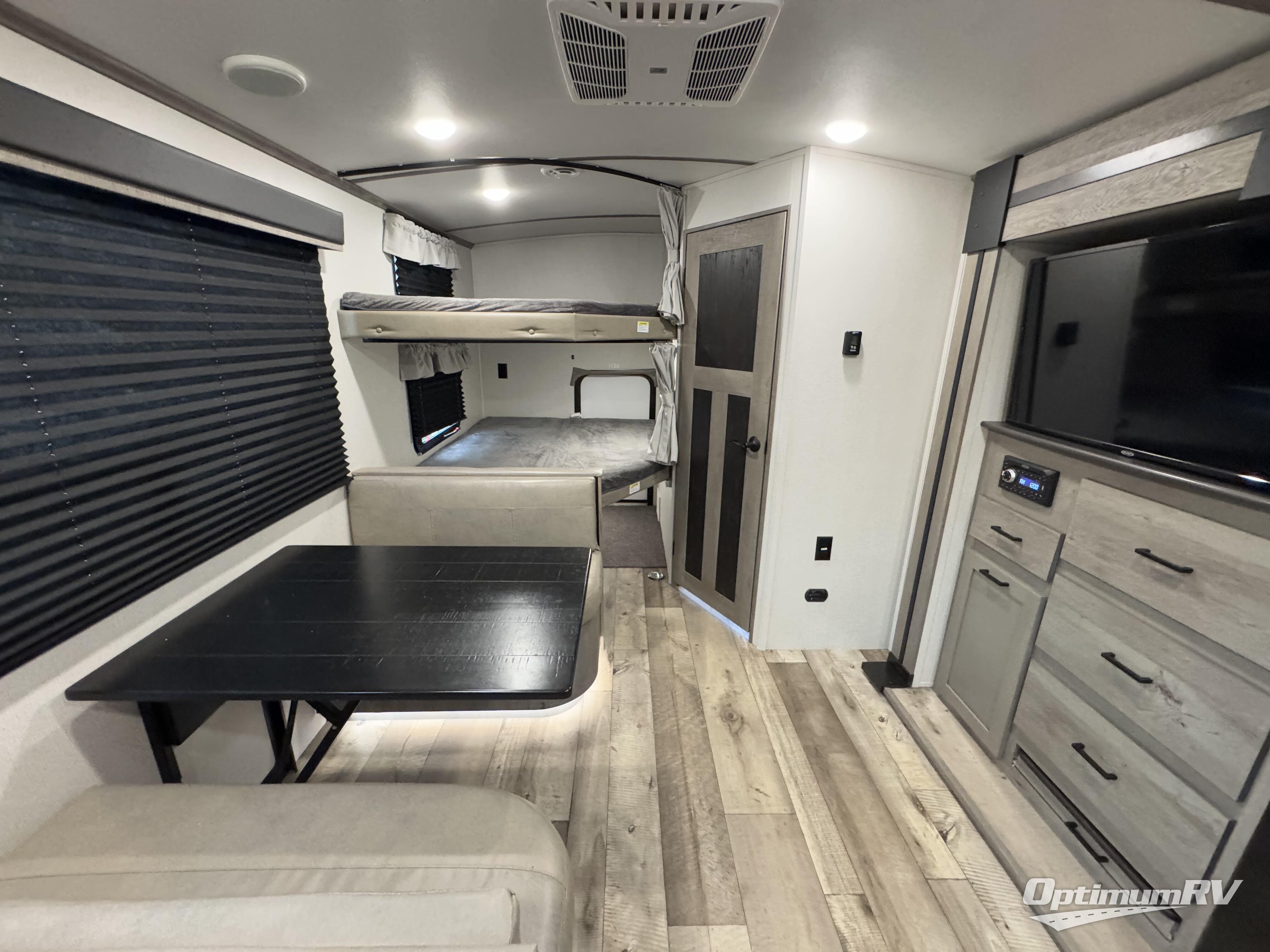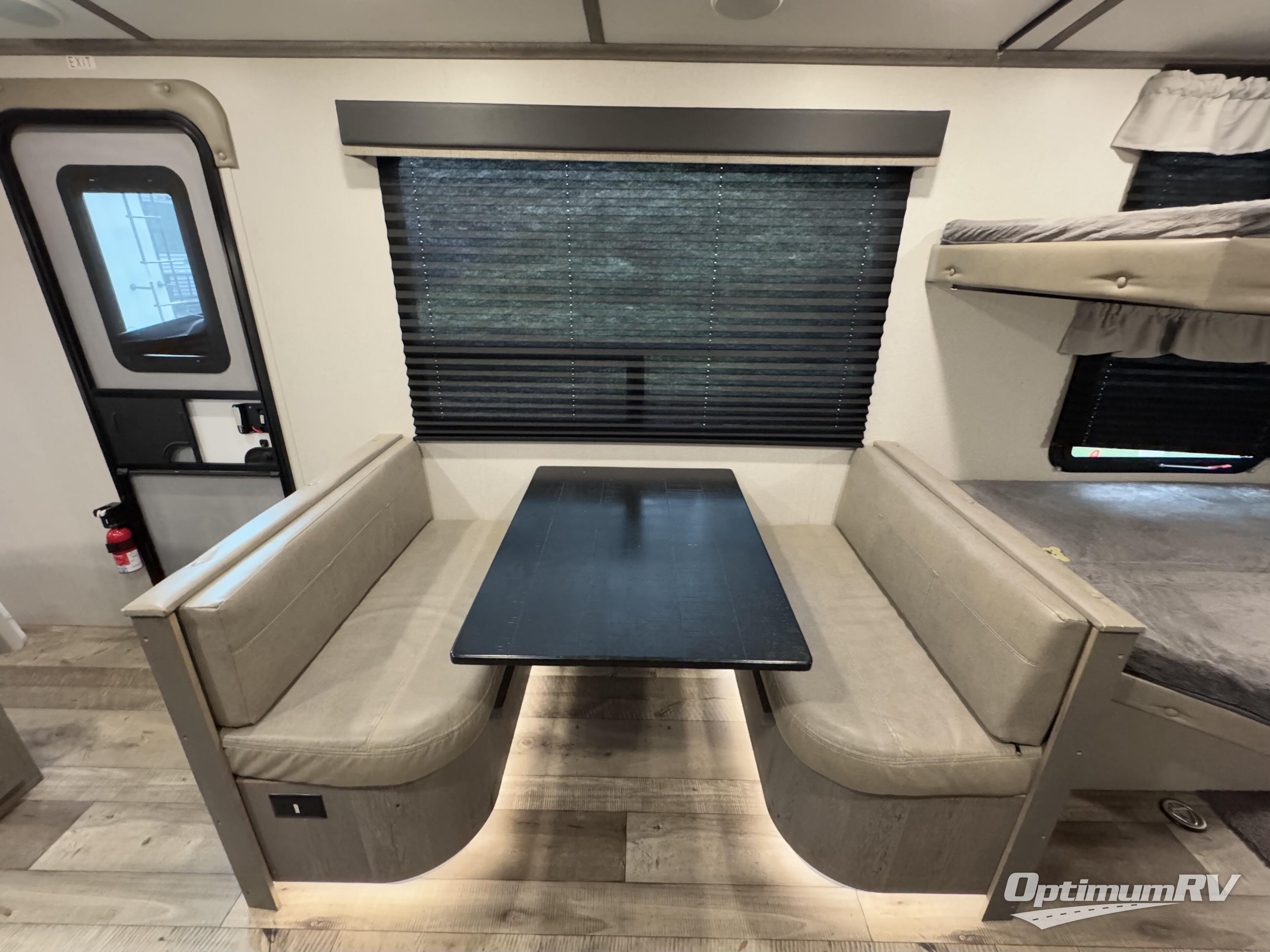 The kids will love having their own double-size bunk beds each night so that their friends can join them on campouts in this Outback Ultra Lite travel trailer, and you will appreciate having your own private bedroom on the opposite side with a walk-around queen bed, a built-in pet kennel for your best friend, plenty of clothing storage, and a laundry chute. You can make meals inside with full amenities or outdoors on the outside kitchen. The 21' awning, the SolidStep entry, and the pass-through storage are outside features that provide protection from the elements, a safe entry and exit, and space to keep your camping chairs, outdoor games, and such. Back inside you will have your own full bathroom to get cleaned up in, a booth dinette to play games and eat meals, and handy shoe storage as you enter.
