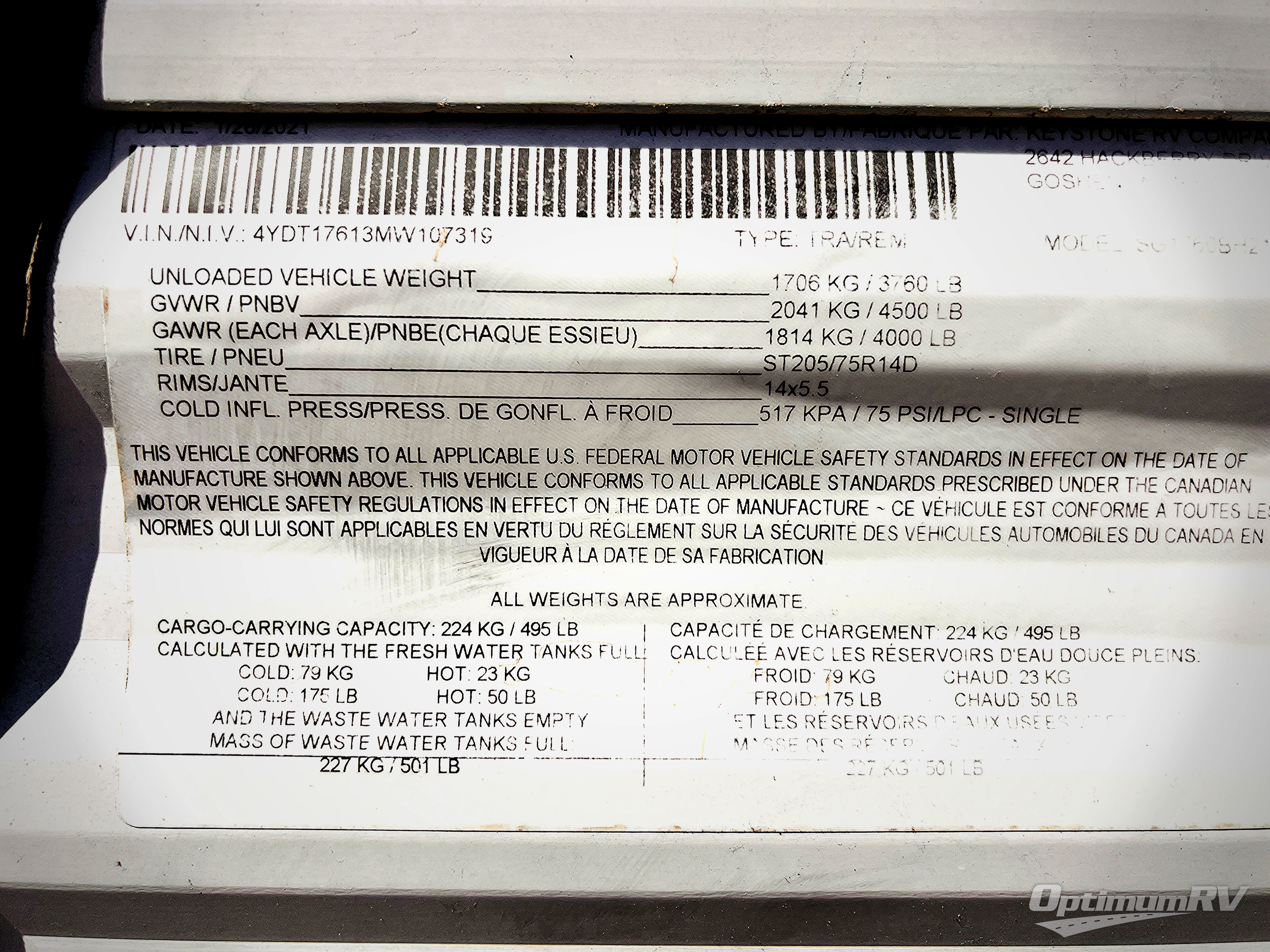 - VIN 4YDT17613MW107319