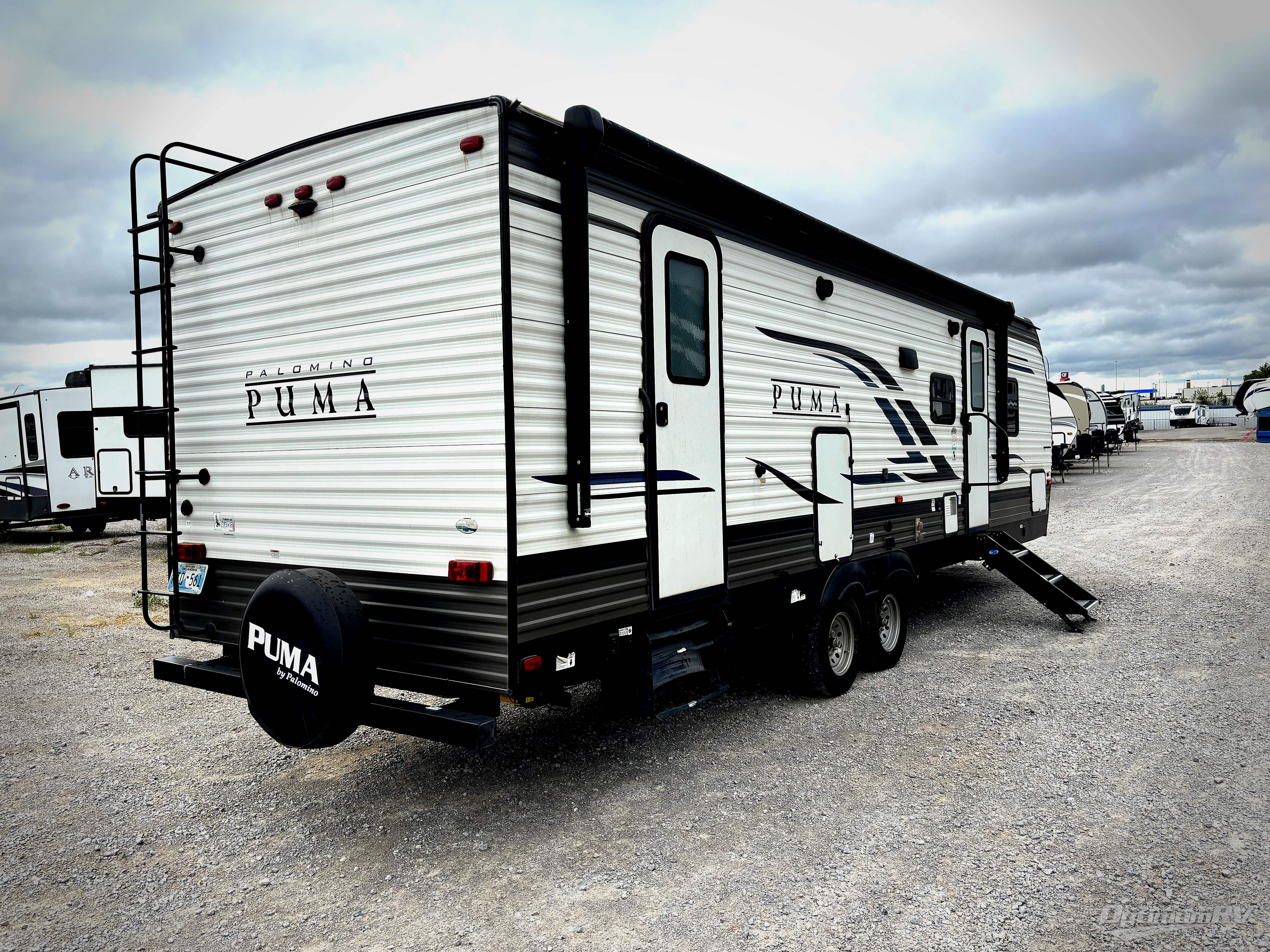 You know it's a great day when it starts with a Palomino Puma travel trailer, fifth wheel, or toy hauler because nothing else is better suited for adventure! There is a Puma for every lifestyle, and there are plenty of features that will enhance each of those lifestyles too. The Puma's construction is better built for lasting performance. The Puma has an AlphaPly roofing membrane, a King HD TV antenna, a smooth, aerodynamic radius front metal with bold exterior graphics, residential-grade carpet with pad on slide outs, and a 5/8" Araucoply plywood floor decking. The Puma also comes packed with value since it gives you the features you need while traveling, like an electric awning with LED lights, preparations for WiFi, a Bluetooth stereo, an enclosed underbelly, an outside shower, and exterior speakers. Plus, the roller shades will help you keep the interior dark and private when you need it to be.