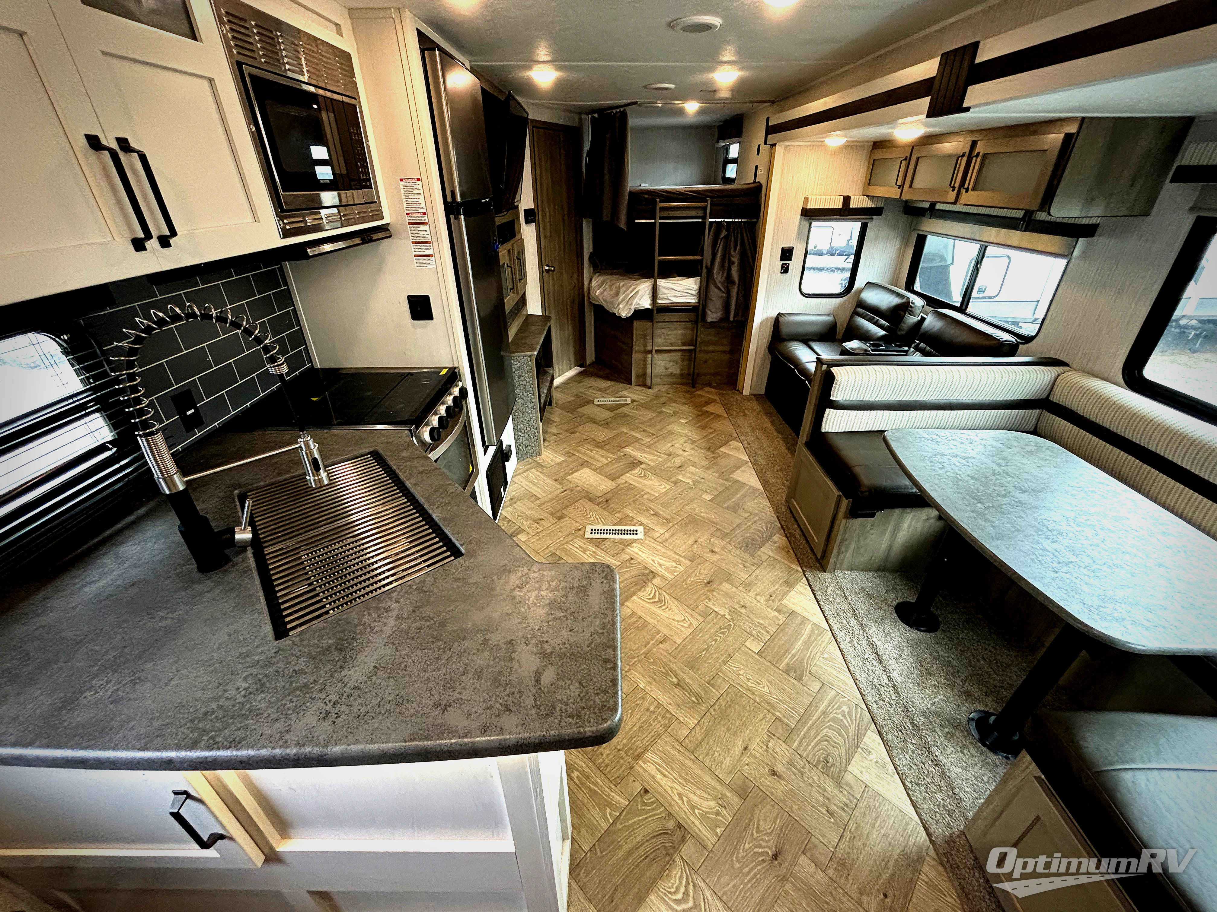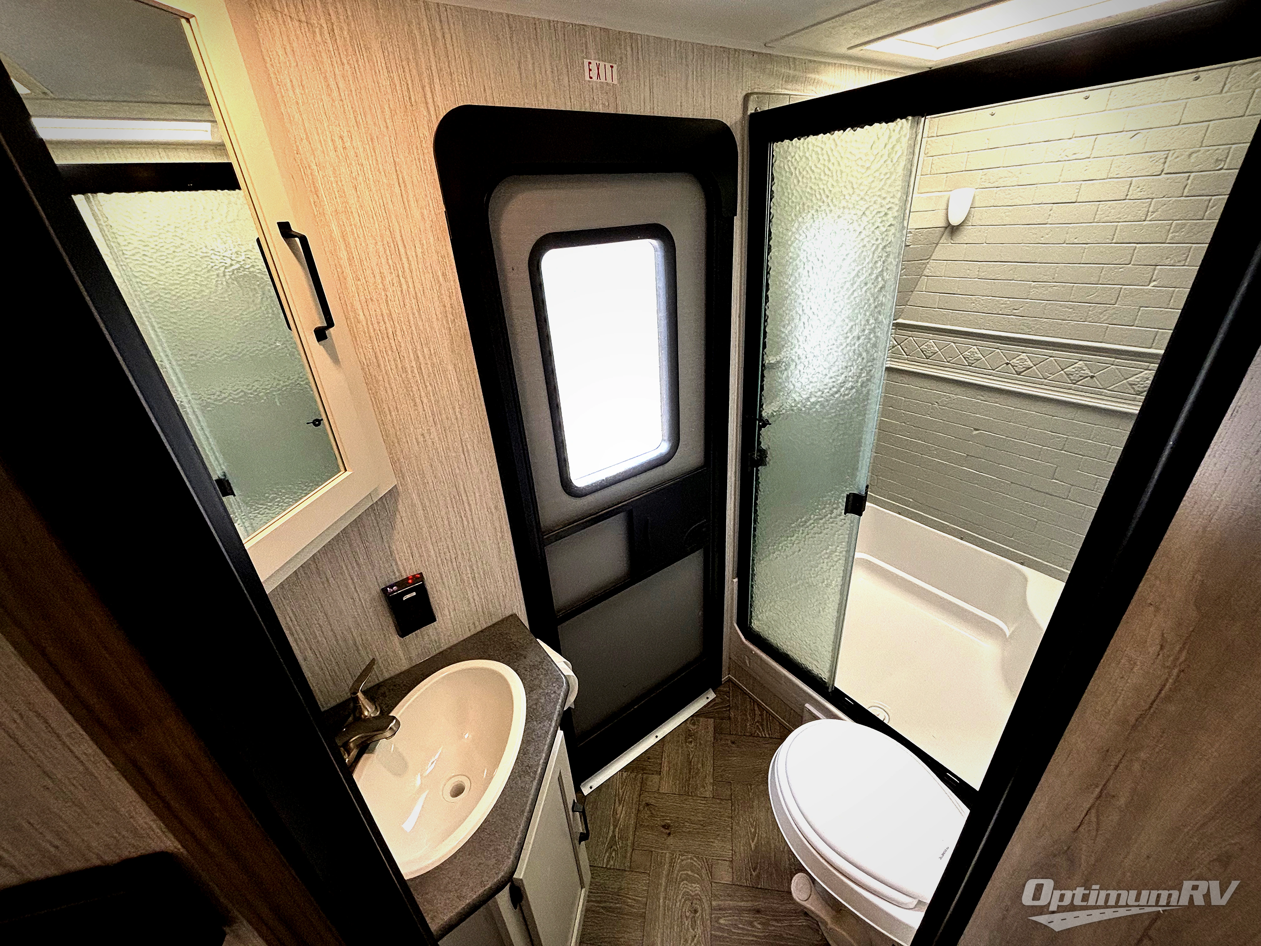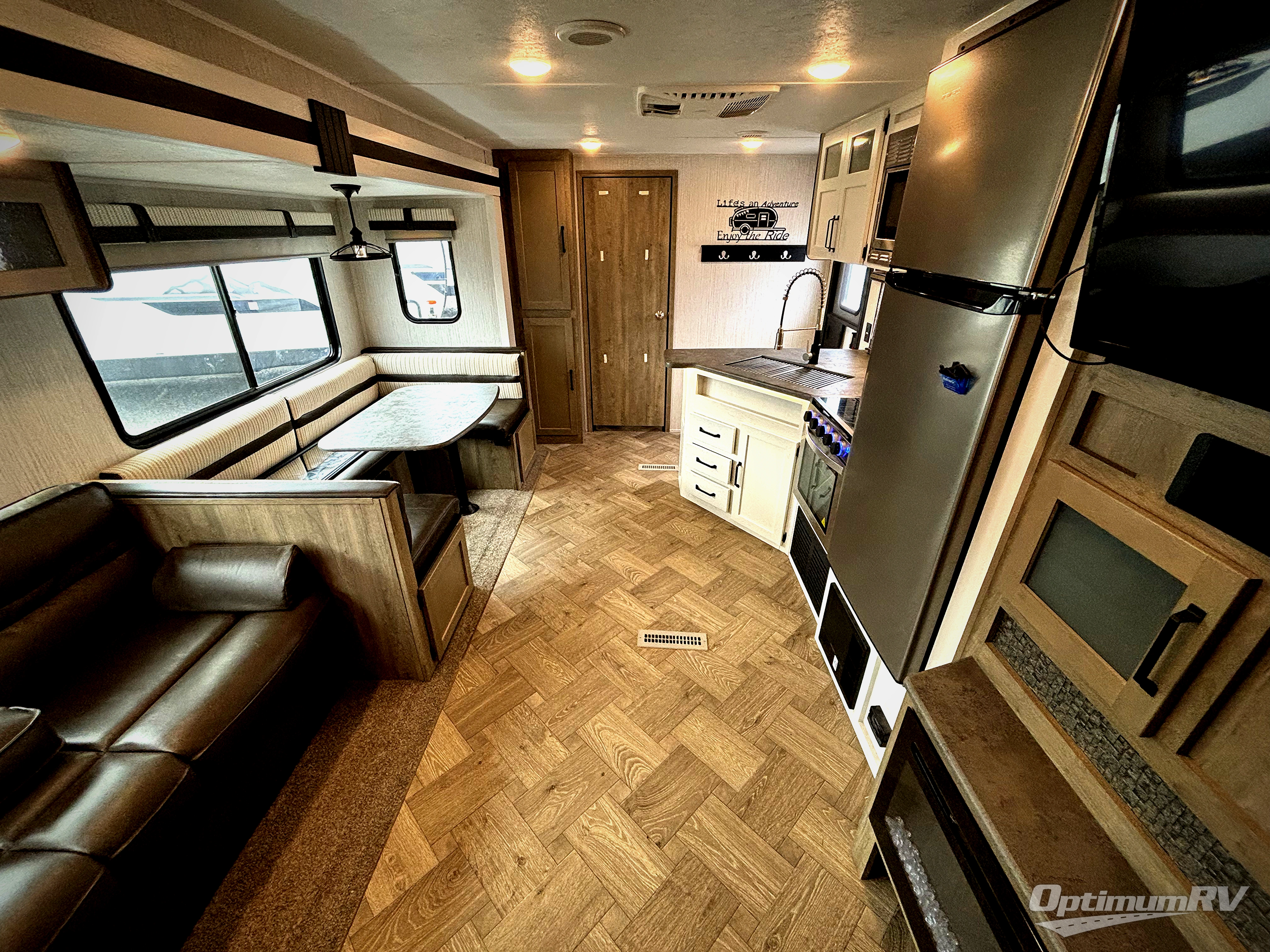 If you are looking for a bunk model to accommodate your large group, then this Puma travel trailer is just what you need! This model gives you a full bathroom that has the second exterior entry door so that you can get quickly get back outside to continue playing. Plus, the bathroom is next to the double-size bunks so that your kids won't have to wander far in the middle of the night. Make memories with your kids while roasting marshmallows, playing board games at the U-shaped dinette, and using the outside shower to rinse off after getting dirty from your trail hike. You also have plenty of interior comforts waiting for you every evening after playing outdoors, like the private bedroom up front!
