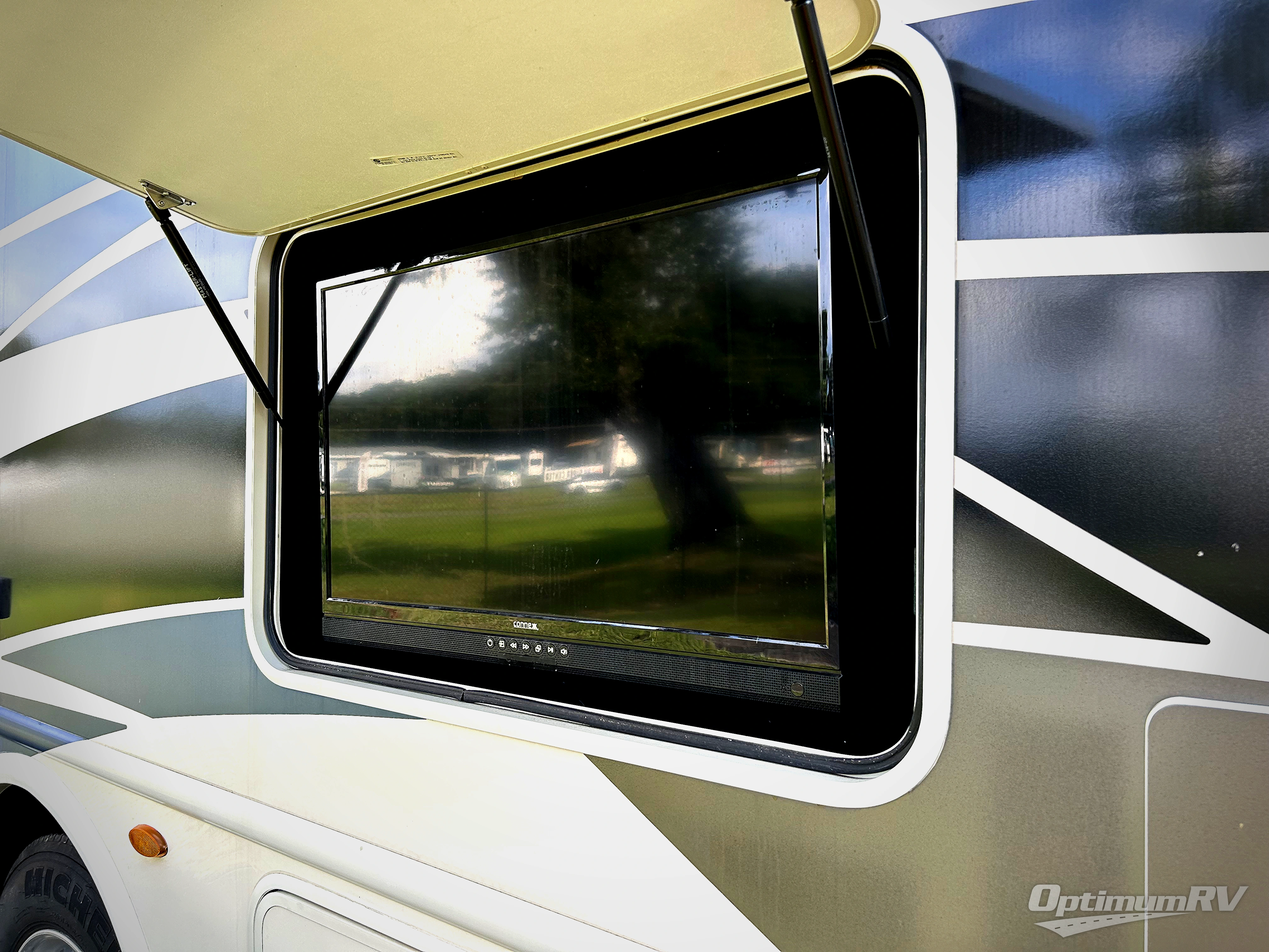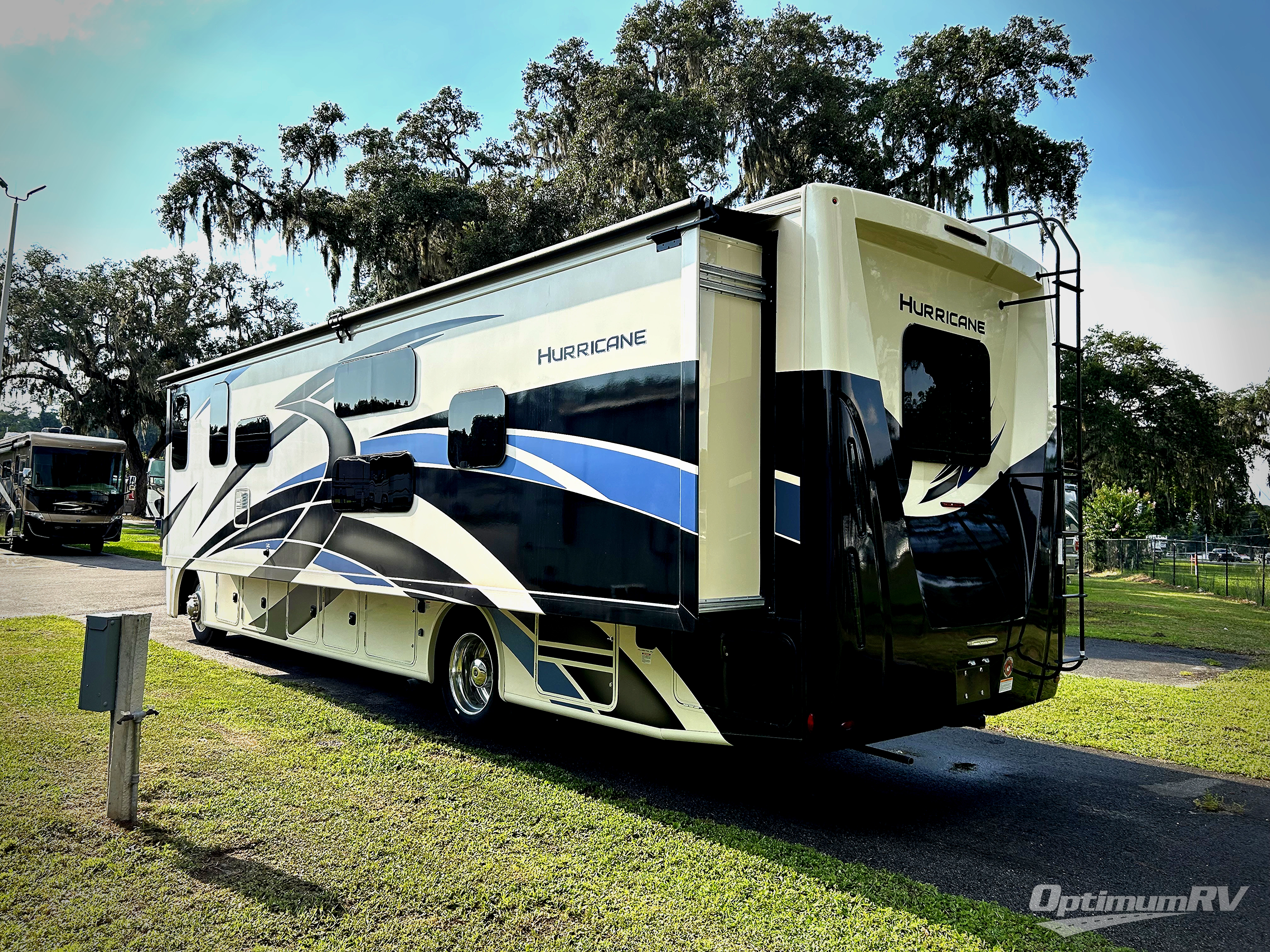 Imagine taking this Hurricane Class A gas motorhome out to the next tailgate party. Everyone will surely be gathered under the power awning and around the exterior kitchen and/or 32" LED TV to watch the previews or even stay to watch the big game. If there isn't a game, take this unit to the nearest campground to relax for the weekend. Be sure to invite your friends to tag along since you have sleeping space for a total of nine in this RV. If you decide to entertain inside, no problem. The residential refrigerator can hold food and cold drinks for the whole week. This model features a full-wall slide which provides more space than ever. There is a Dream dinette, a sofa bed, two captain's chairs, plus a full kitchen and bath amenities. Own this motorhome today and start having fun tomorrow!