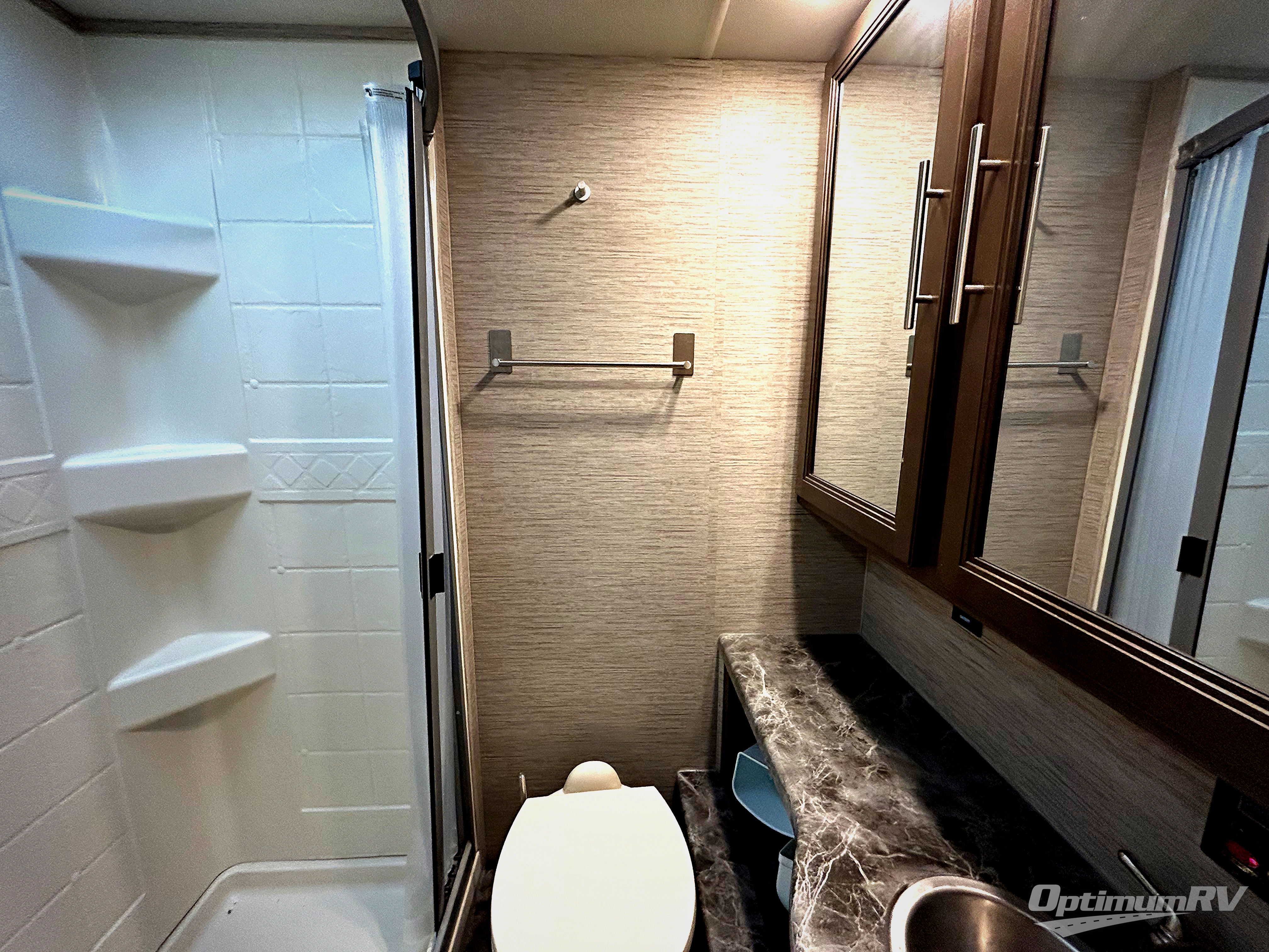 If you are looking for an RV that breaks all of the rules when it comes to traditional motorhomes, then you are looking for this Outlaw Class C gas motorhome toy hauler. This unit amazingly comes standard with four LED TVs - one in the garage, one in the living room, one in the cab, and one outside. The kitchen is no exception when it comes to exceeding expectations with its large window behind the cooktop, double-door gas/electric refrigerator, three-burner gas cooktop, and a pantry to store your favorite snacks. On top of all of that, this model can sleep eight people giving everyone a chance to partake in the fun trip ahead!