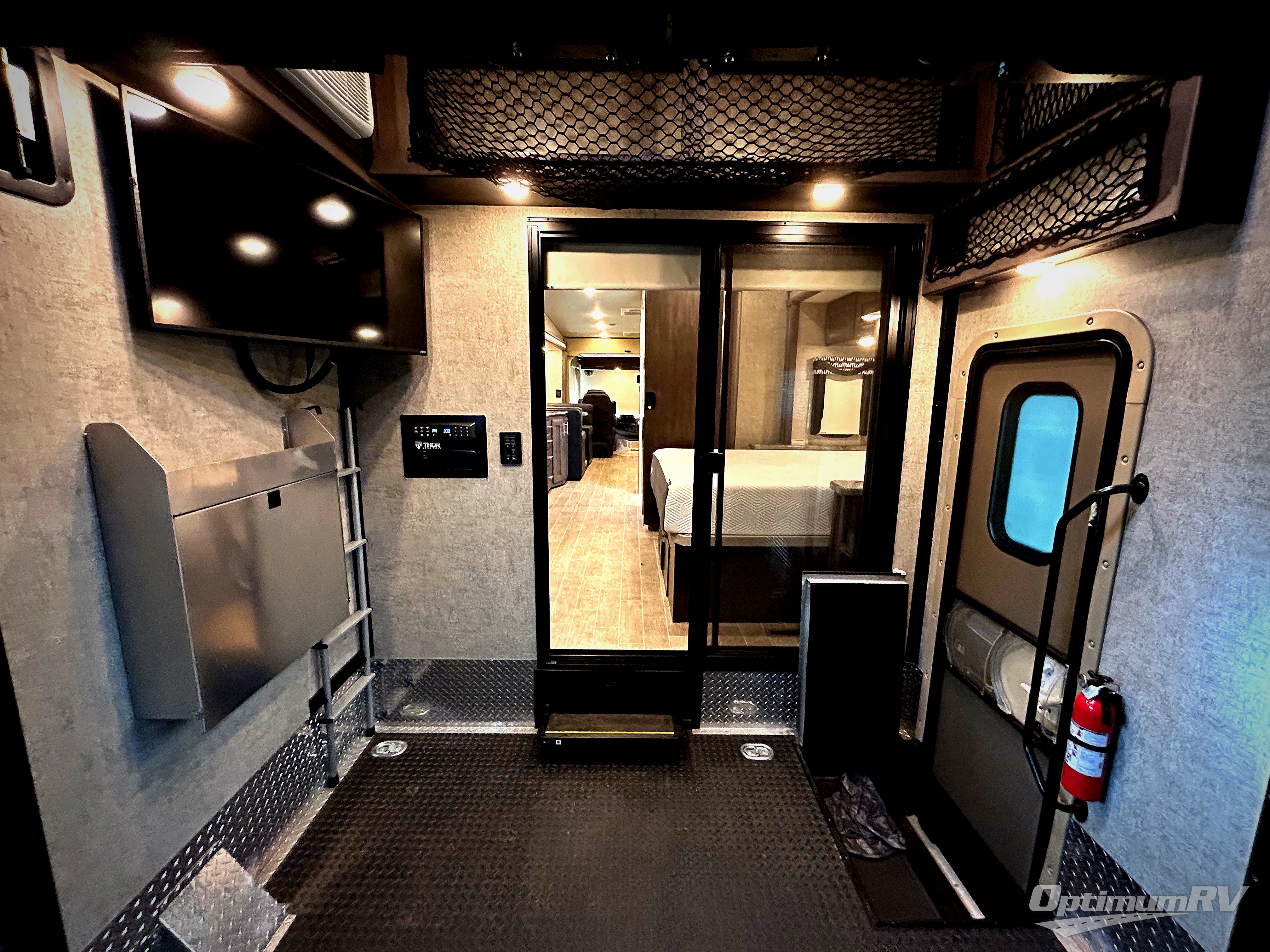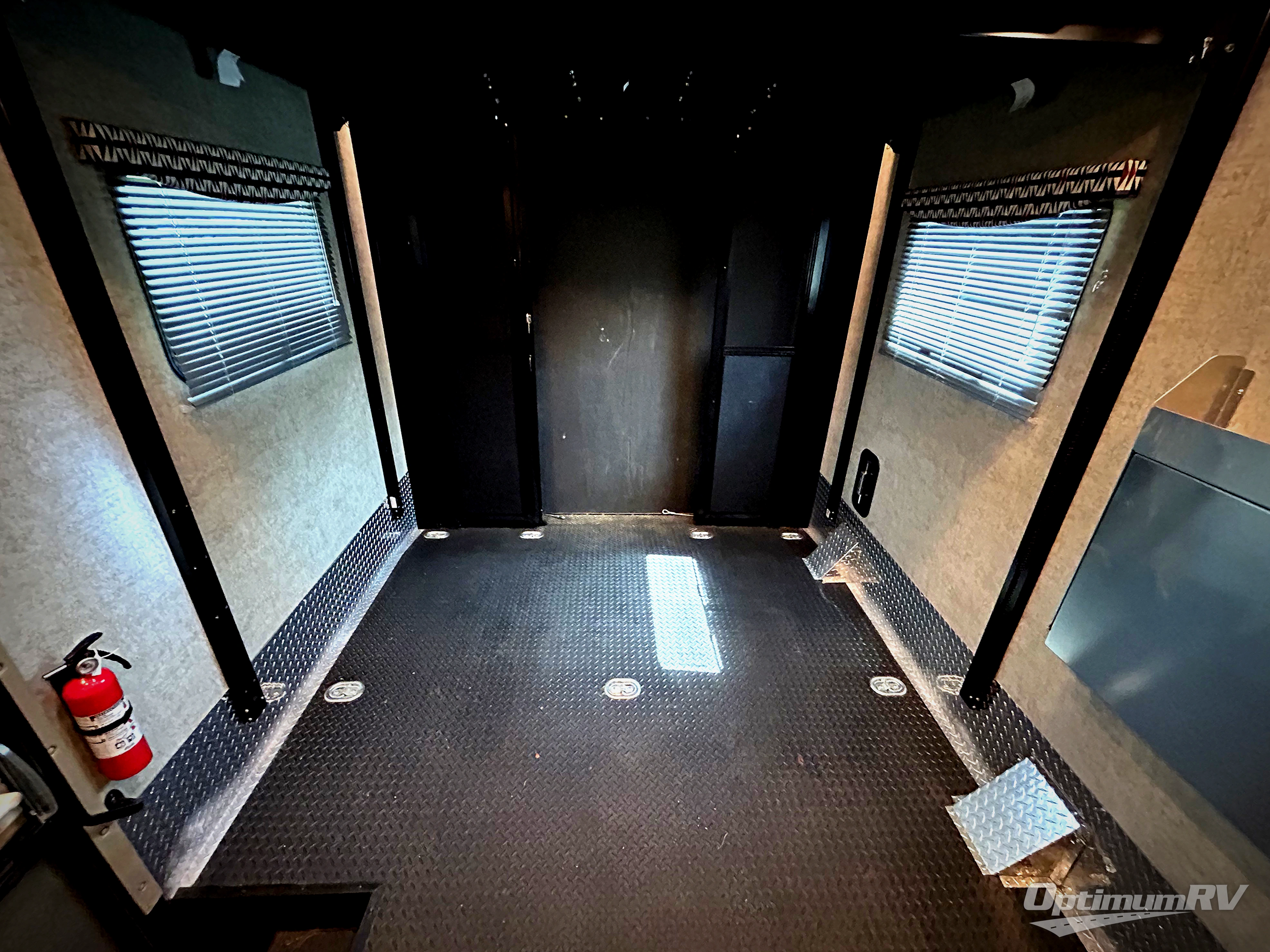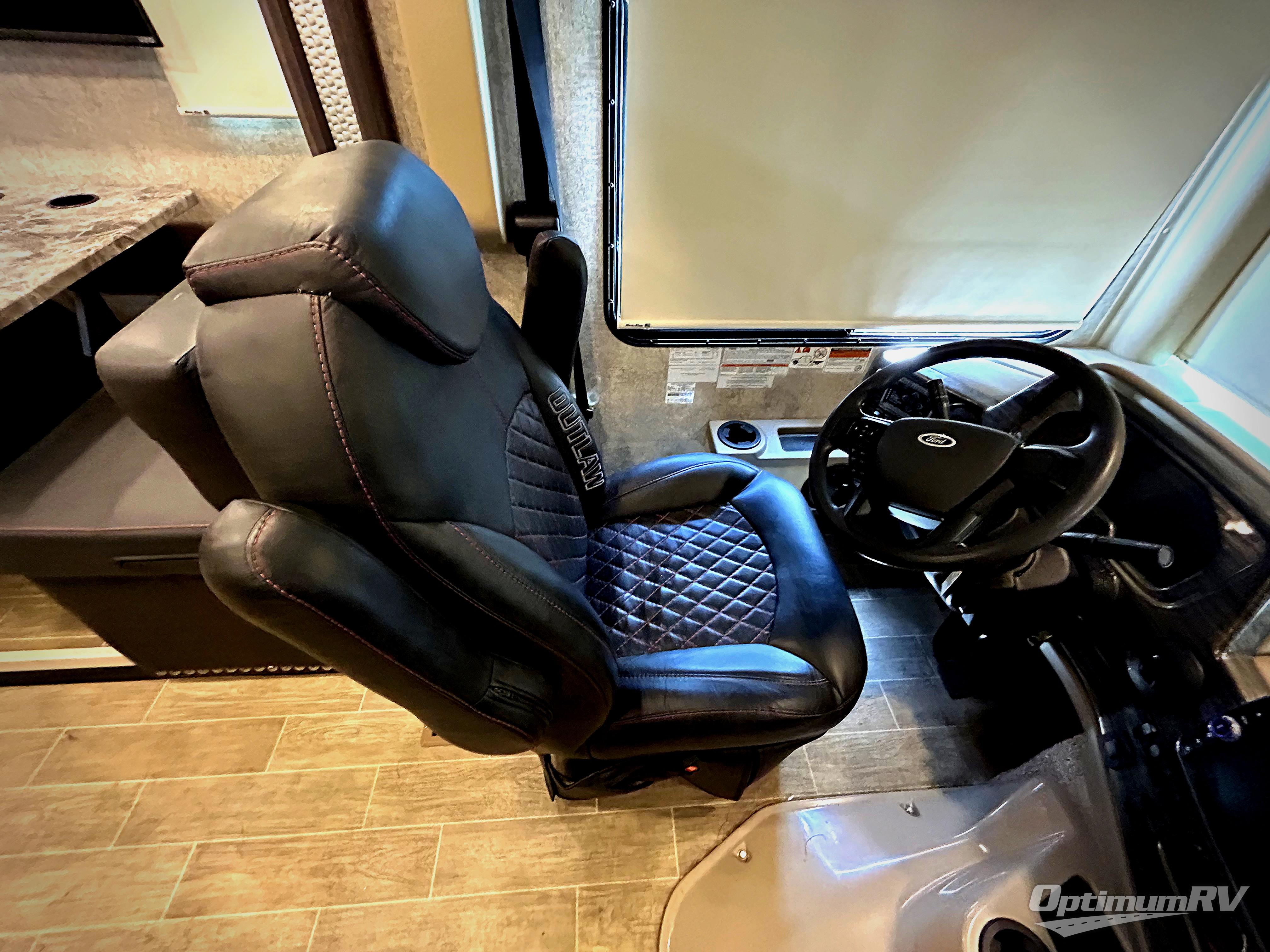 When you take a trip in this Outlaw Class A gas motorhome toy hauler, you are taking a trip in an RV that breaks all of the rules of traditional motorhomes. With four LED TVs, this unit gives you the ability to stay modern even while living in the great outdoors, yet the skylight over the shower in the bathroom gives you the chance to bring in a little bit of that outdoor sunshine to brighten up the space. And no longer do you have to leave part of your family at home while you travel because this unit can sleep eight people comfortably anytime needed. Even the residential refrigerator adds extra space where you need it most so that you can store fresh dairy and leftovers without the risk of them spoiling. You will also love having the two entry doors to give you a smooth flow of traffic in and out of this unit throughout your trip!