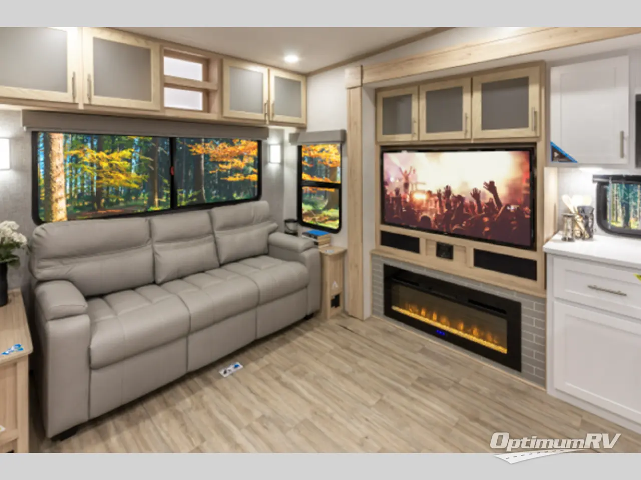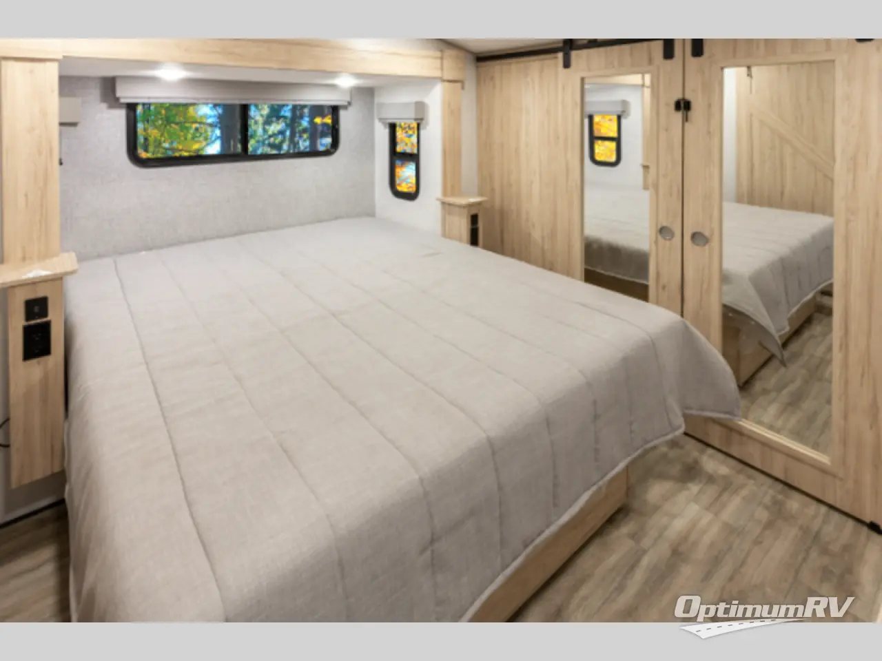 A benchmark chassis creates a space saver upper deck with each one of these Avenue fifth wheels by Alliance RV! The 101 in. wide-body construction gives you more room to walk around and the flush slide out floors throughout prevent any tripping. There are Azdel composite sidewalls inside and out, and a seamless fully walkable PVC roof for extreme durability, zero maintenance, and it is more solar reflective because of the bright white color. Twin 13,500 BTU A/C units provide 27,000 BTUs of cooling power which are ultra quiet and independently controlled keeping you comfortable during your entire trip. And, the fully enclosed and heated underbelly means that you can extend your camping season into the colder months if you like. You are sure to love the "no carpet zone" making each Avenue easy to clean and allergen free, not to mention pet friendly with vinyl flooring throughout. And, strategically placed Atrium windows in the bedroom and living area will not only provide more light, cross ventilation and fresh air, but bring a spectacular view of your surroundings right inside. You can maximize your space throughout with innovative storage solutions like the hidden storage behind the TV, inside the end tables, ottoman, and dinette chairs. Come choose your favorite model today!